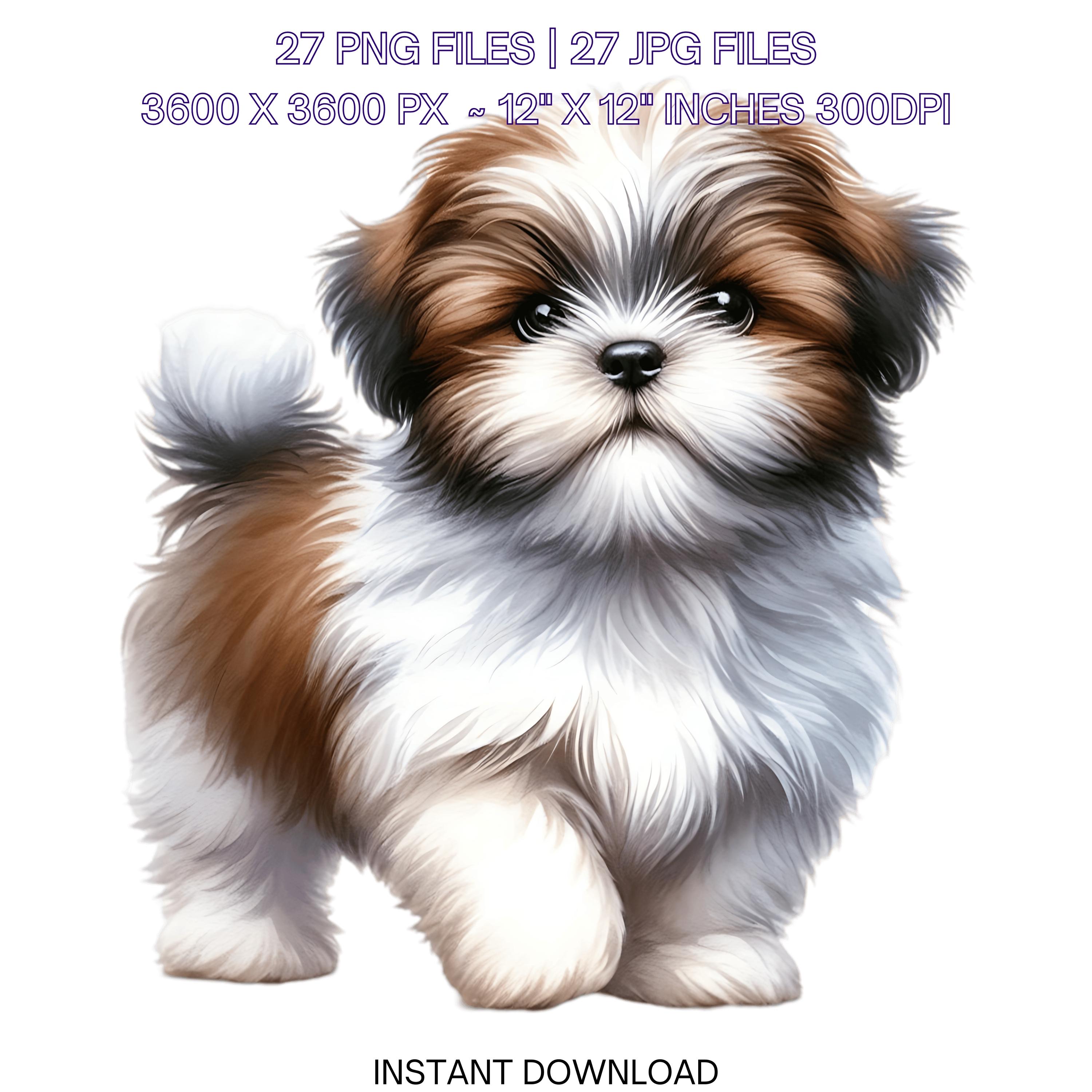27 Shih Tzu Puppy Dog PNG Clipart | Watercolor Shih Tzu Baby Dog for Card Making, Scrapbooking Junk Journaling, Sublimation Commercial Use is an eye-catching, high-resolution digital asset designed for creators, crafters, teachers, and small business owners looking to elevate their visuals.