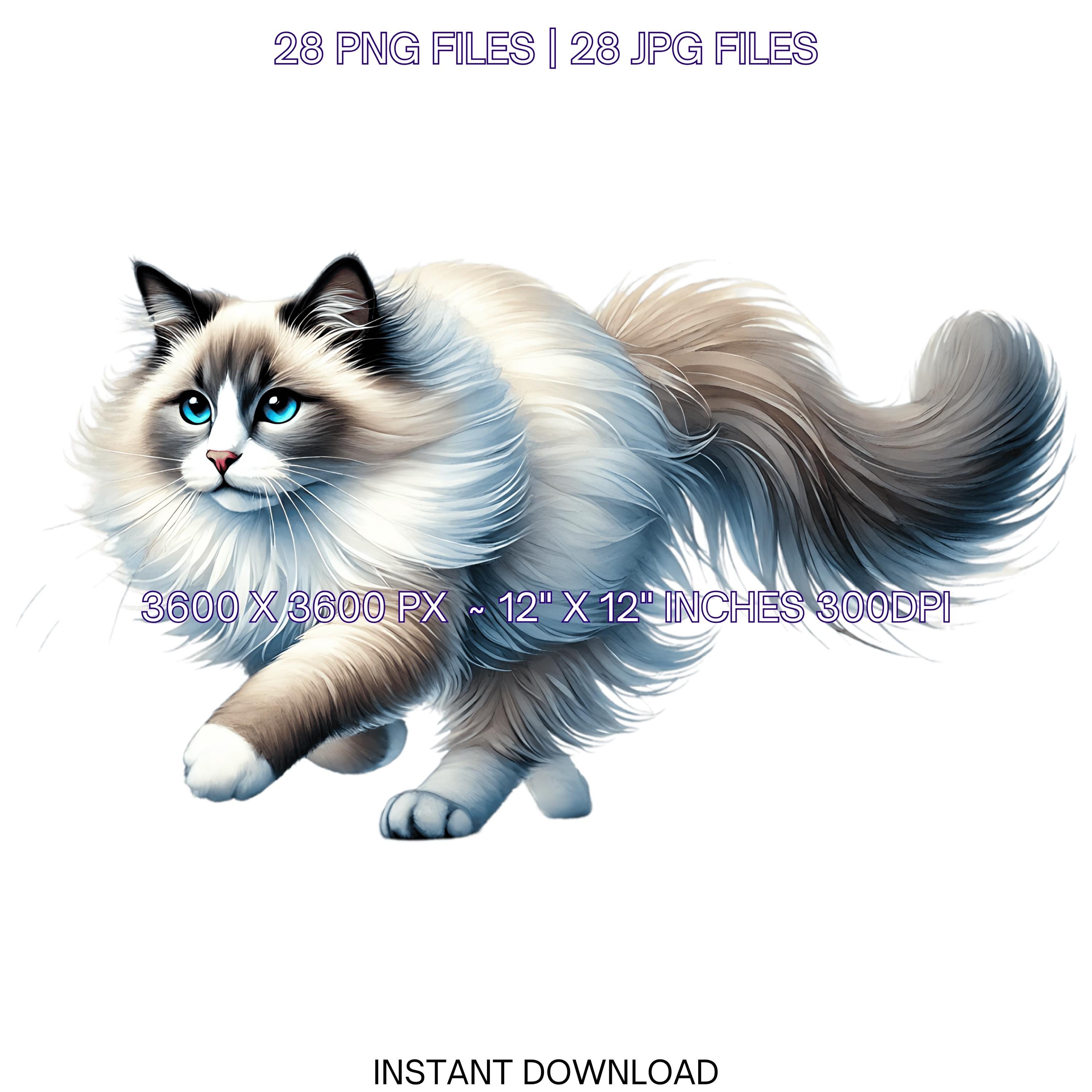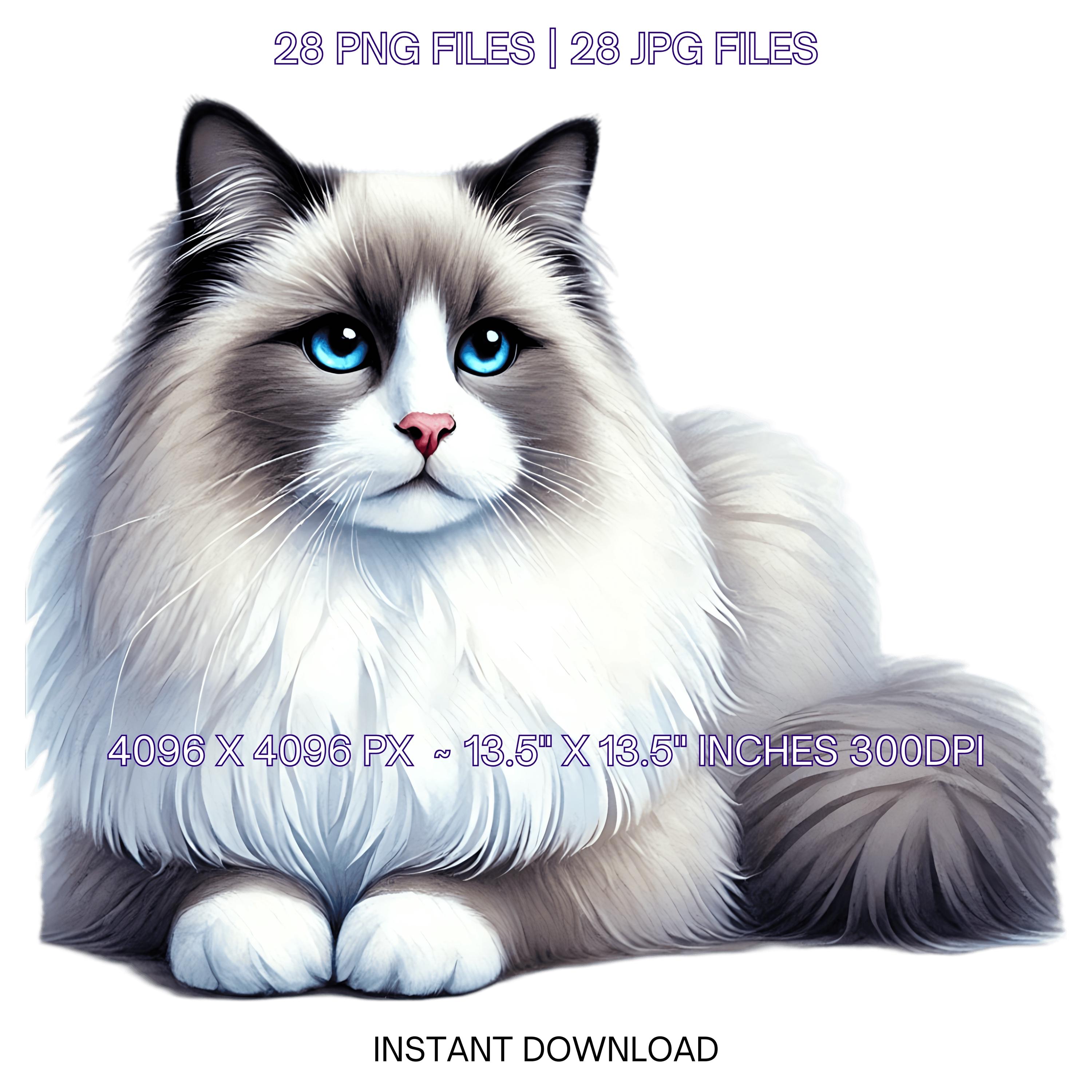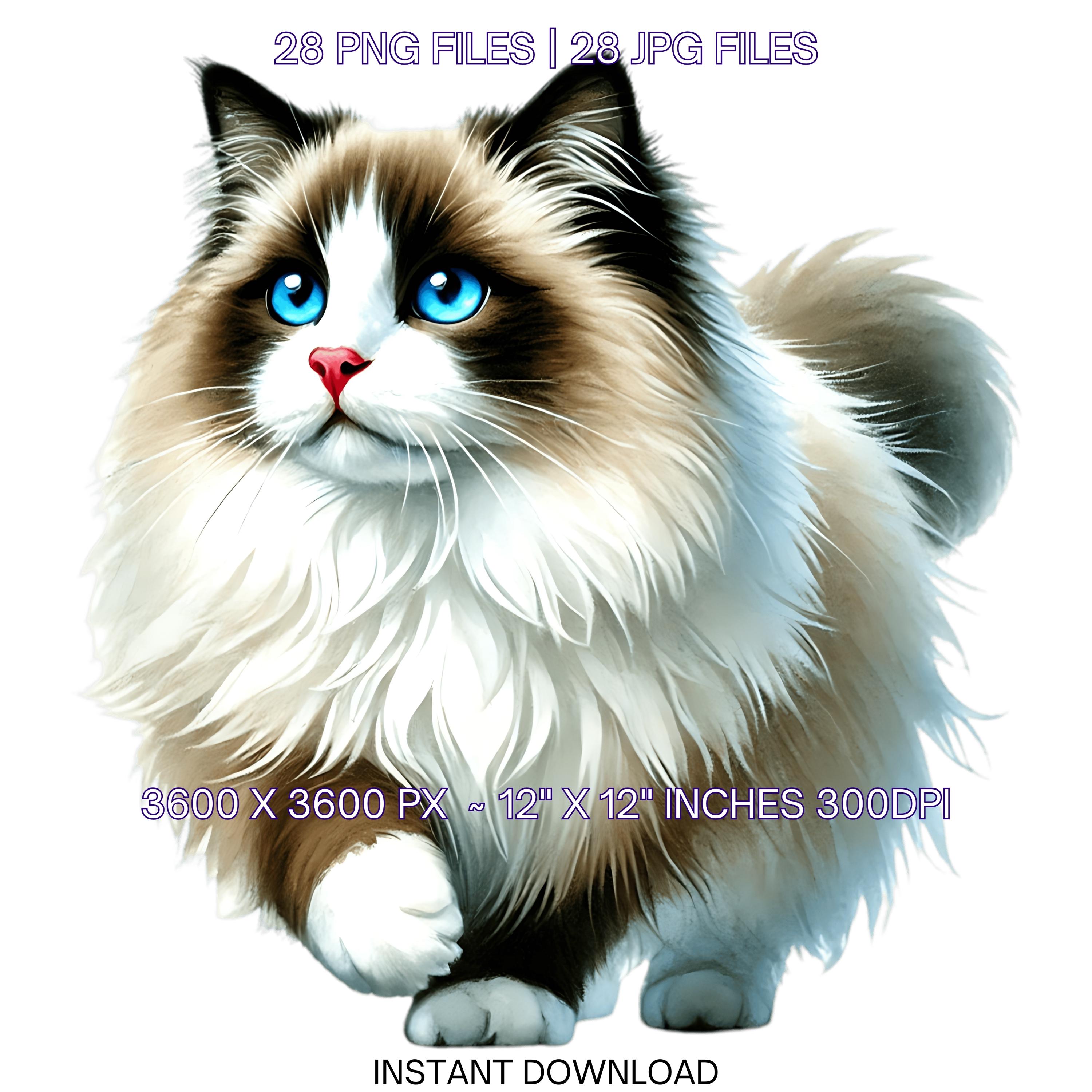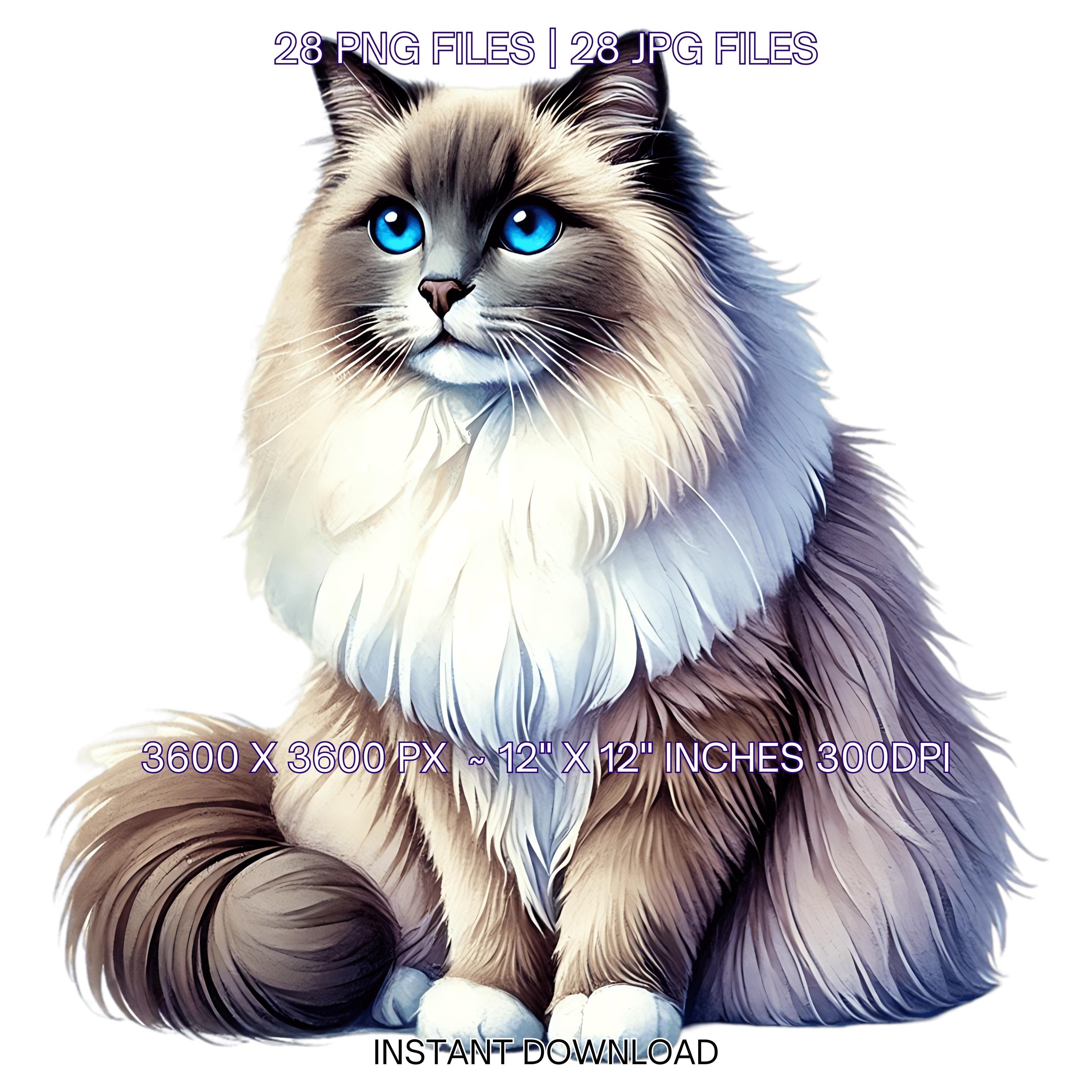 28 Ragdoll Cat PNG Clipart, Watercolor Cats as Pets for Card Making, Scrapbooking, Junk Journaling, Sublimation Illustrations Commercial Use is an eye-catching, high-resolution digital asset designed for creators, crafters, teachers, and small business owners looking to elevate their visuals.