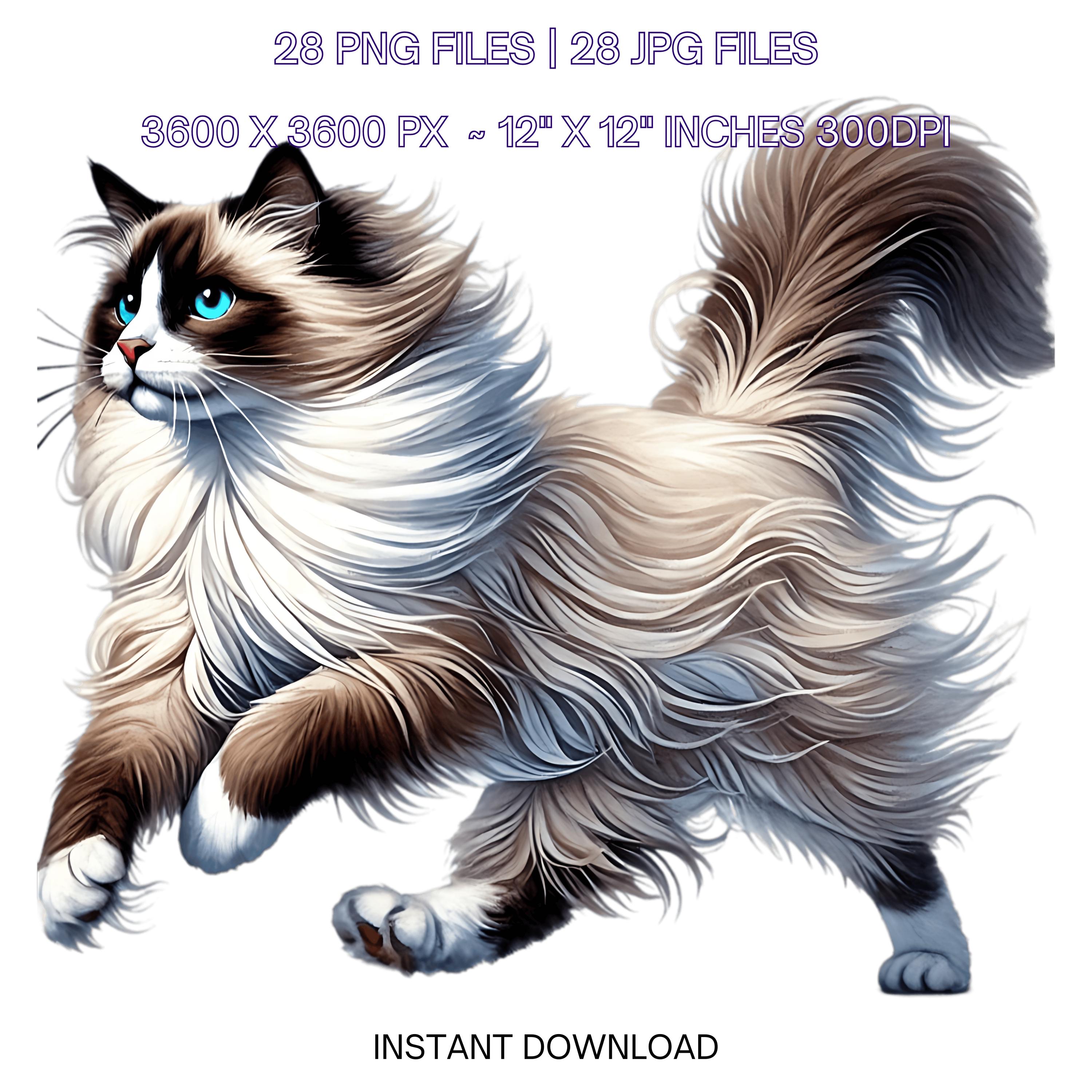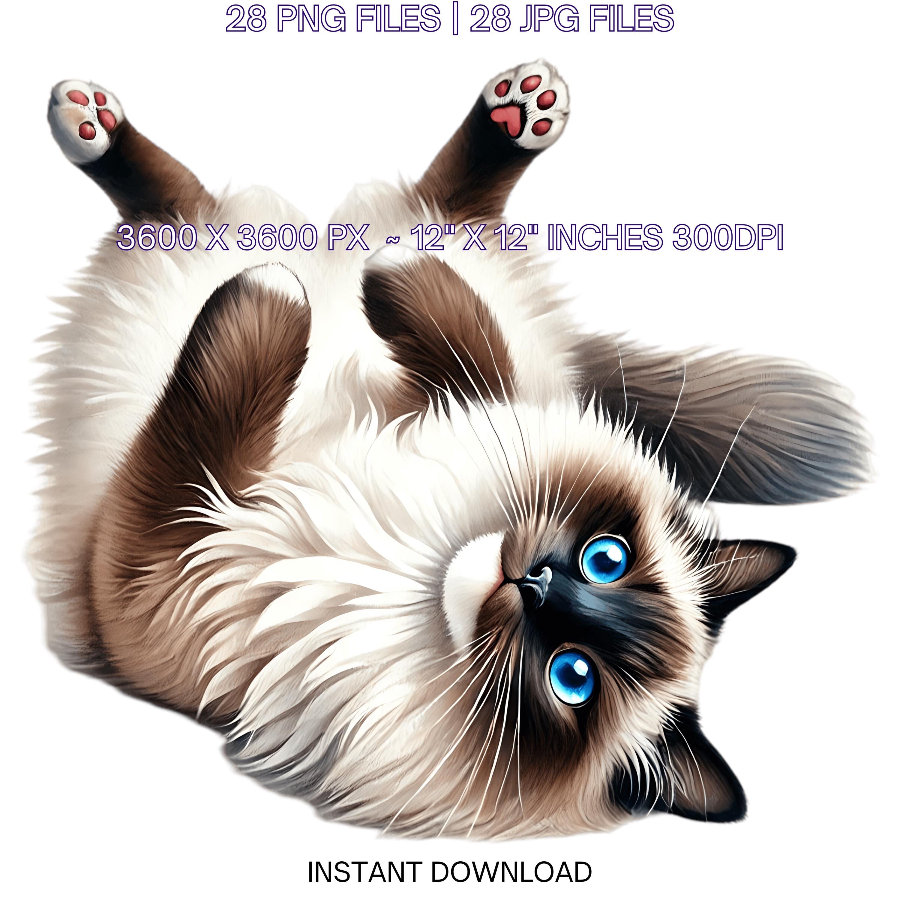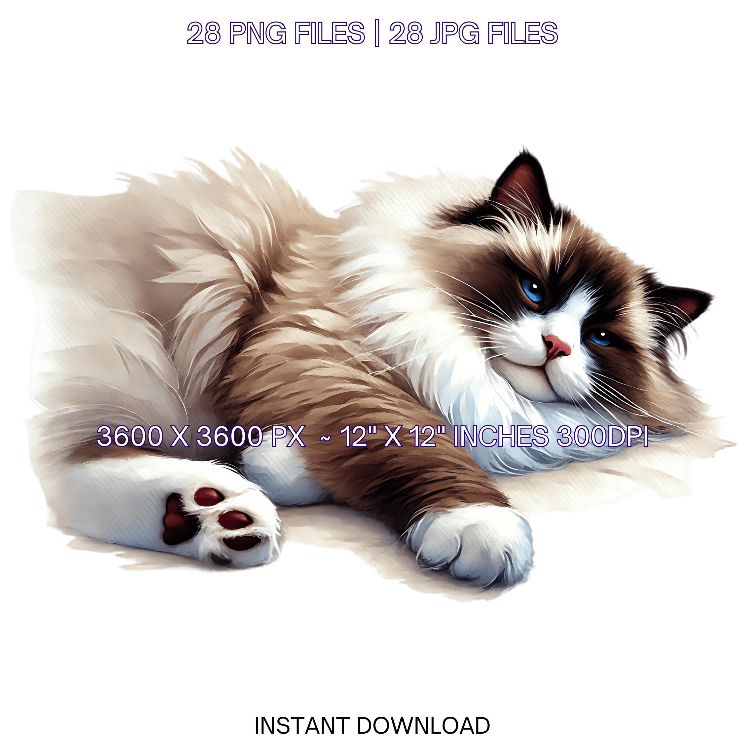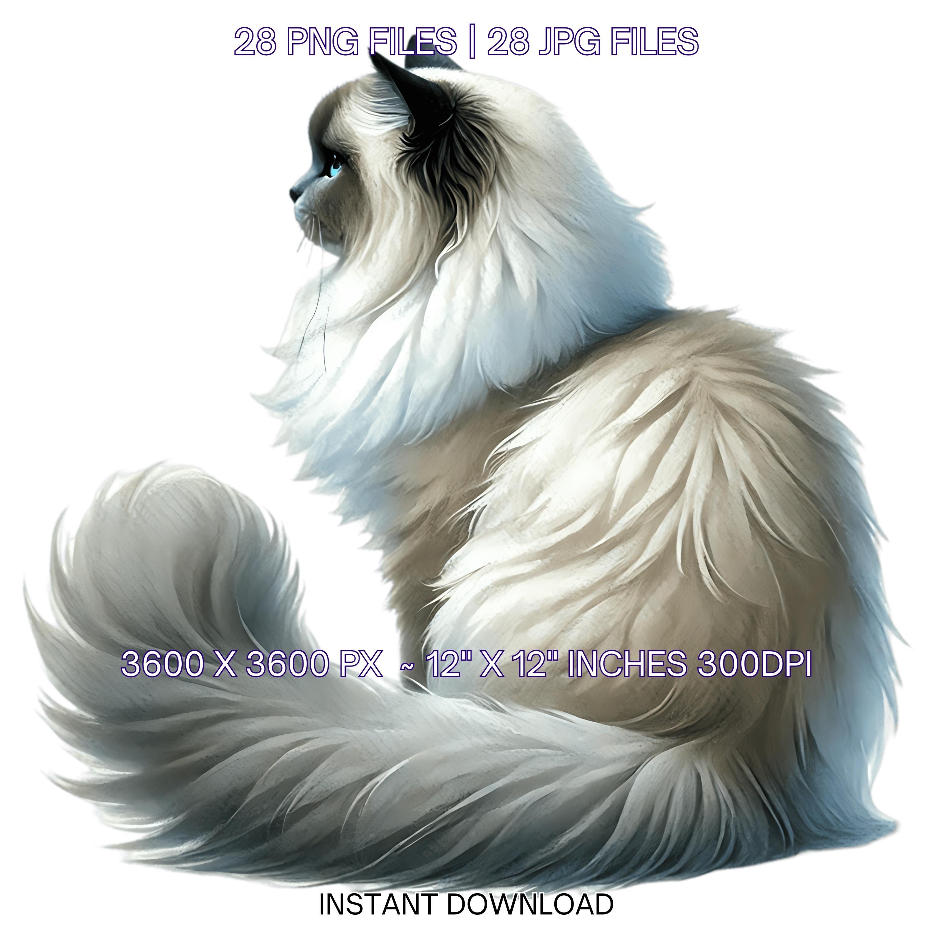 28 Ragdoll Cat PNG Clipart, Watercolor Cats as Pets for Card Making, Scrapbooking, Junk Journaling, Sublimation Illustrations Commercial Use is an eye-catching, high-resolution digital asset designed for creators, crafters, teachers, and small business owners looking to elevate their visuals.