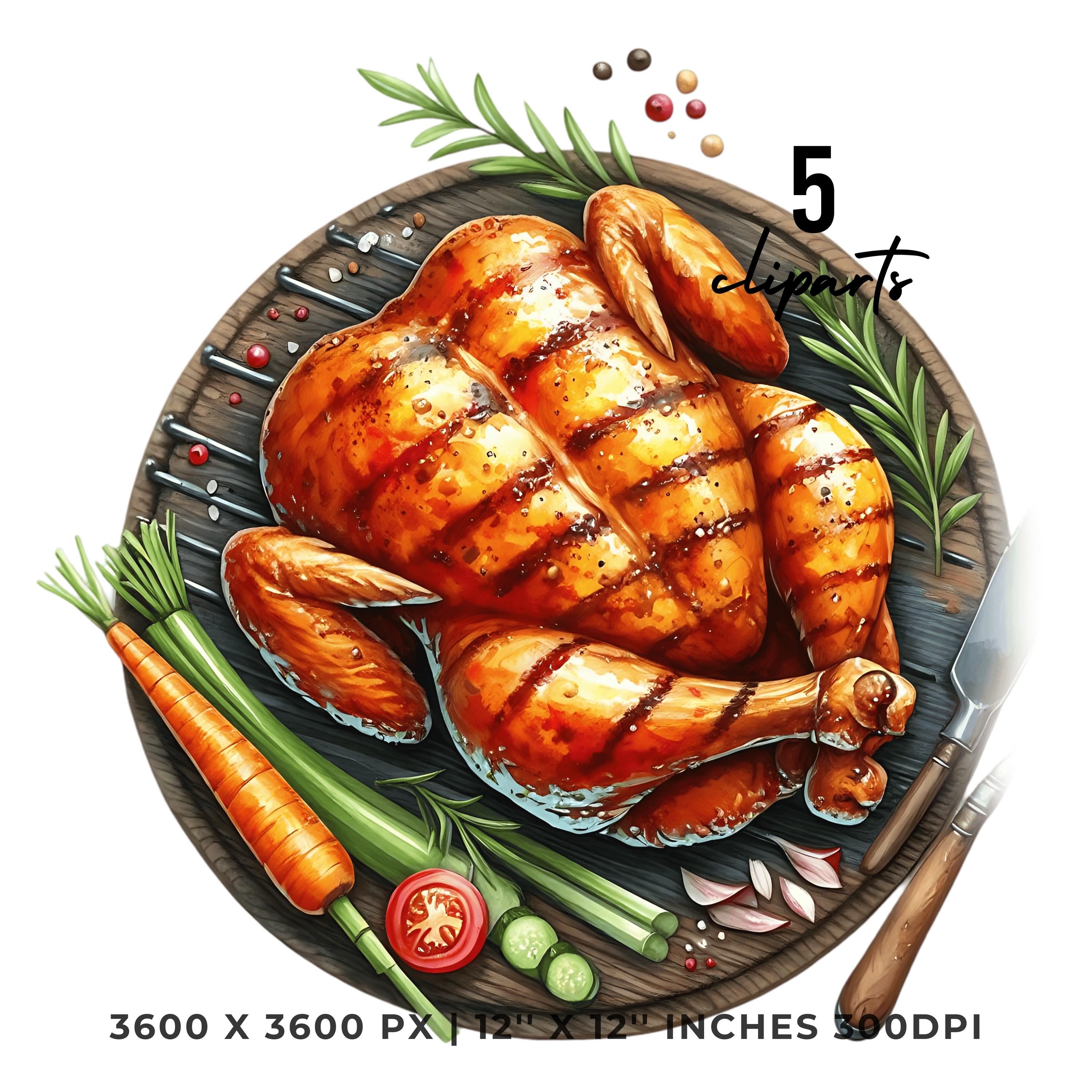 5 BBQ Chicken Clipart | Watercolor Fast Food Clipart | Backyard Party | American Culture PNGs JPGs Bundle Digital Download Commercial Use is an eye-catching, high-resolution digital asset designed for creators, crafters, teachers, and small business owners looking to elevate their visuals.