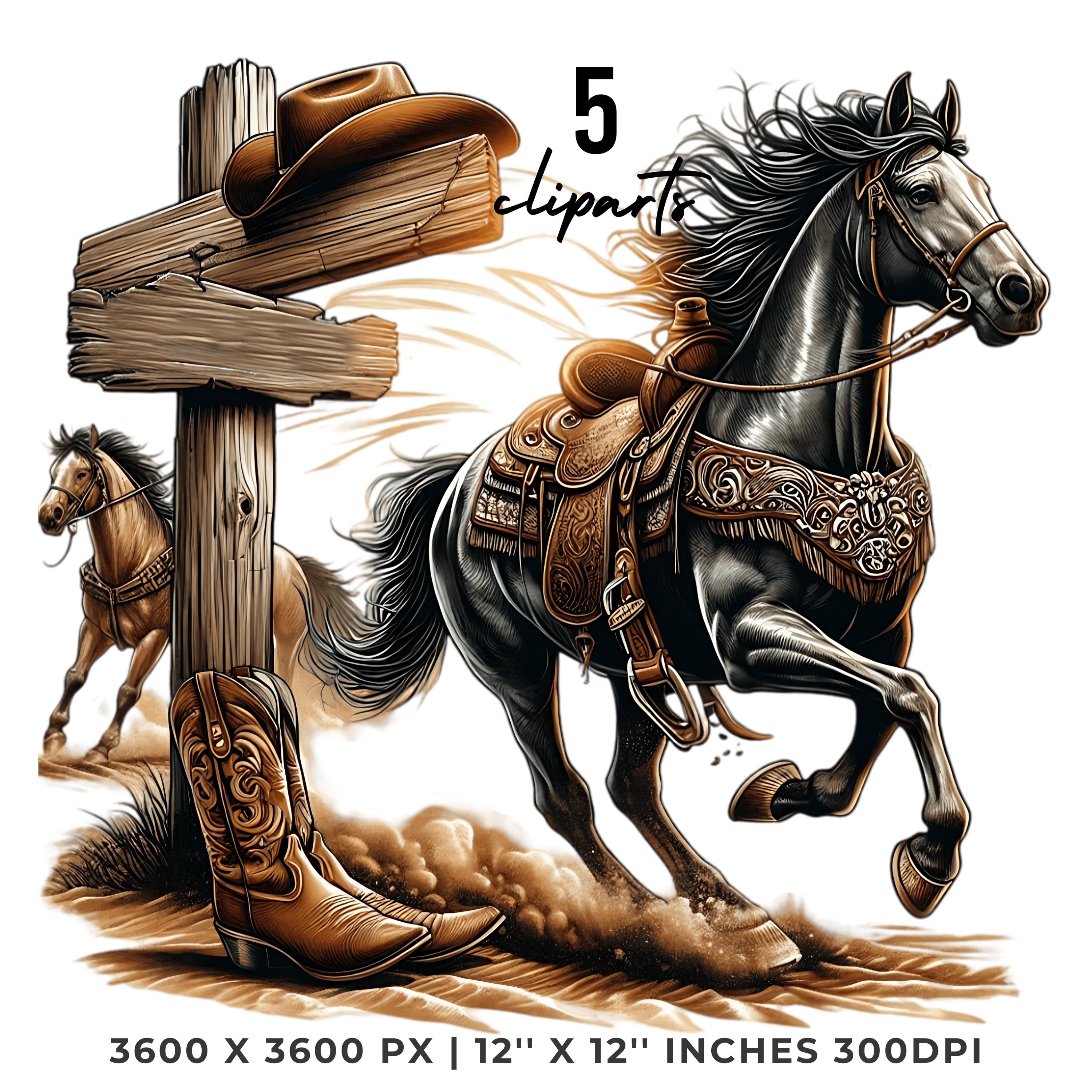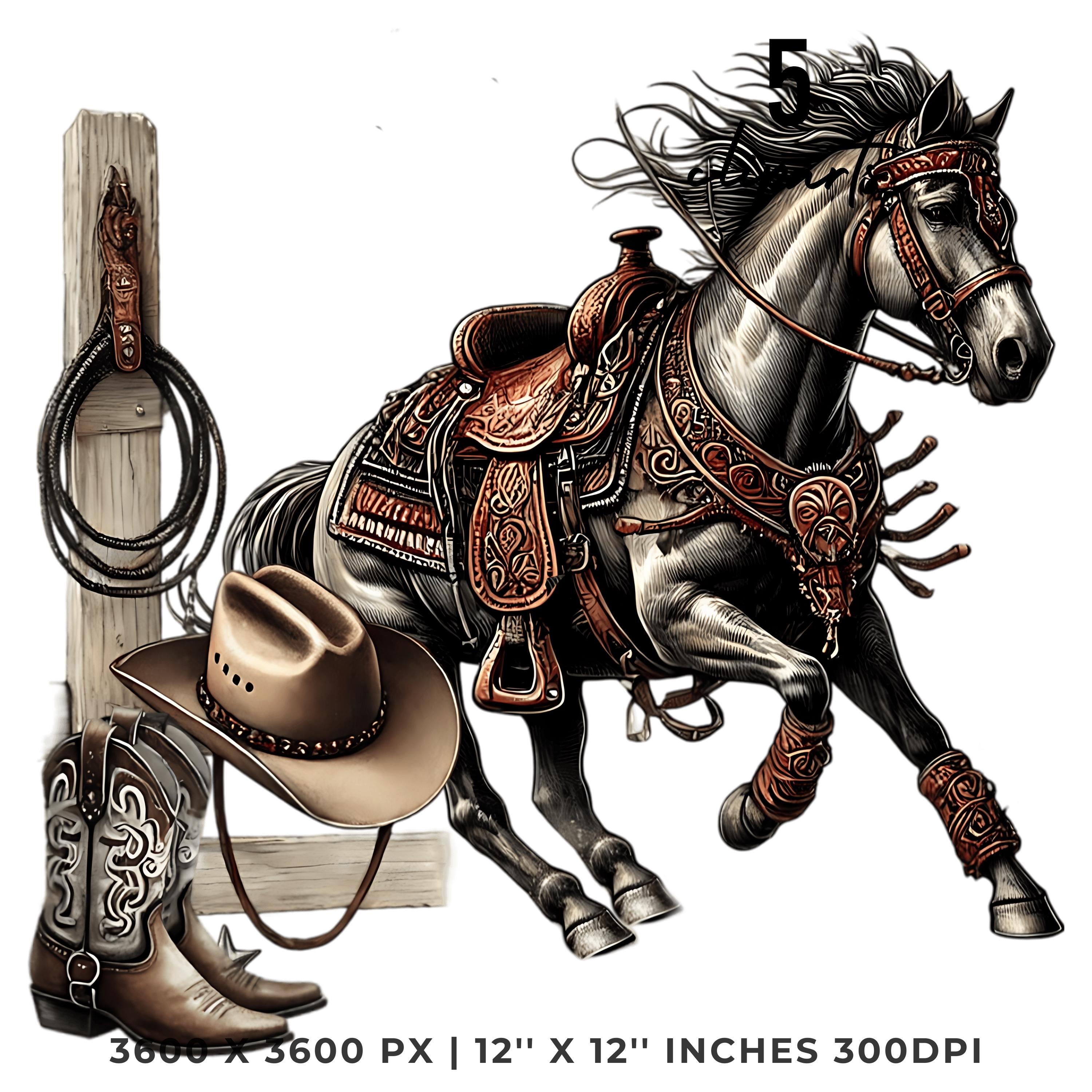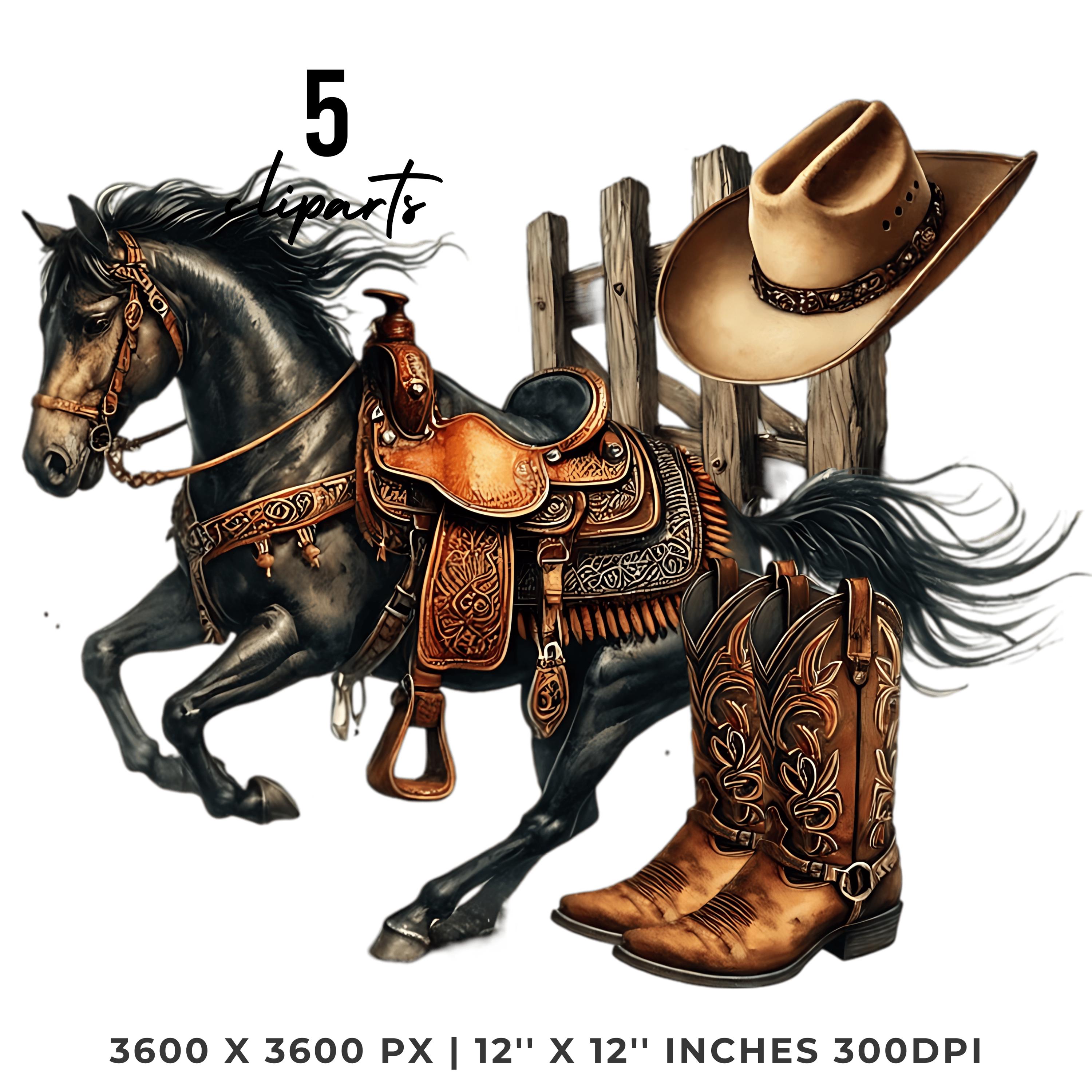 5 Western Horse with Saddle & Cowboy Hat Hanging on the Fence Clipart PNG Sublimation | Watercolor Country Cowboy Goods | Country Boy Things – Instant Digital Download - TumblersGalaxy