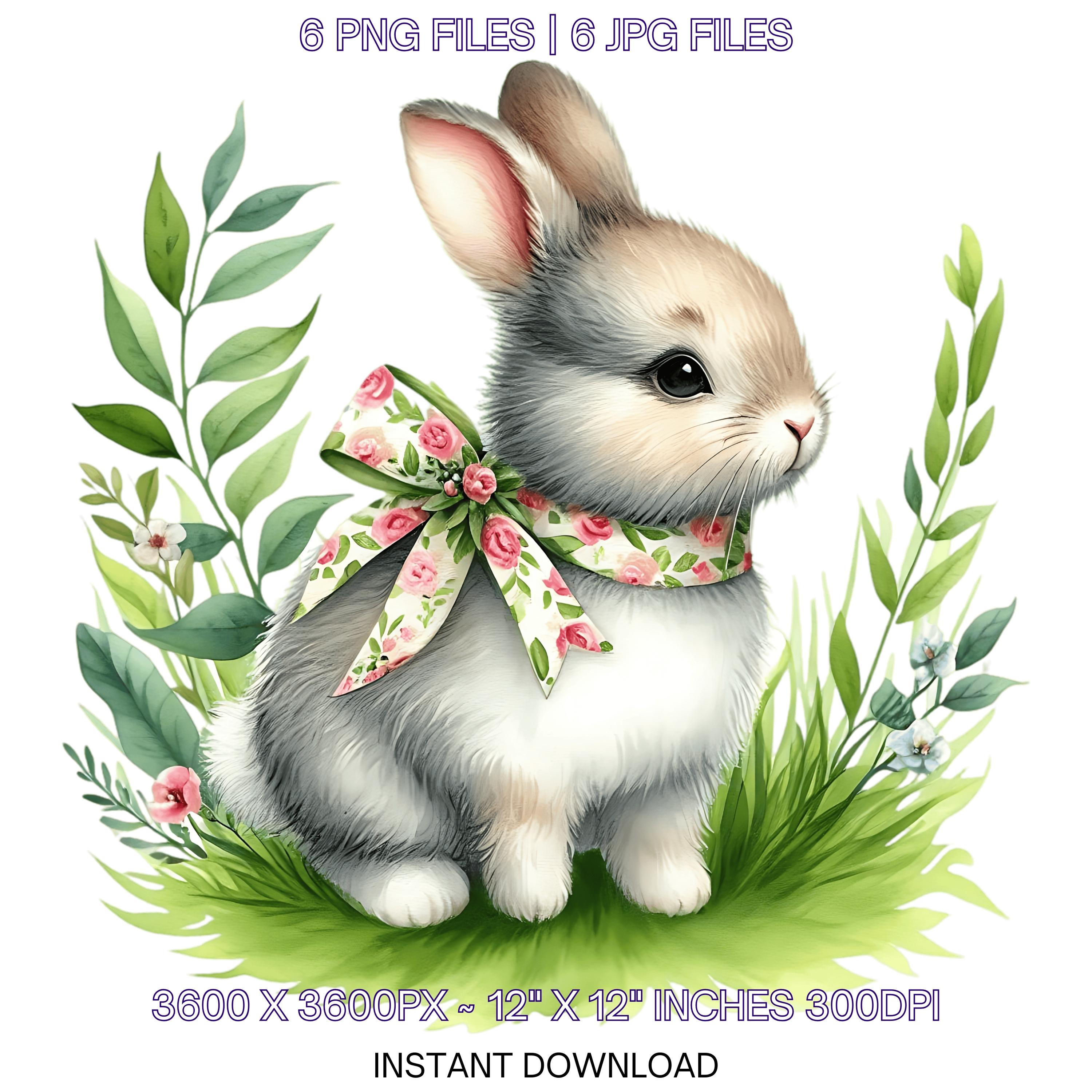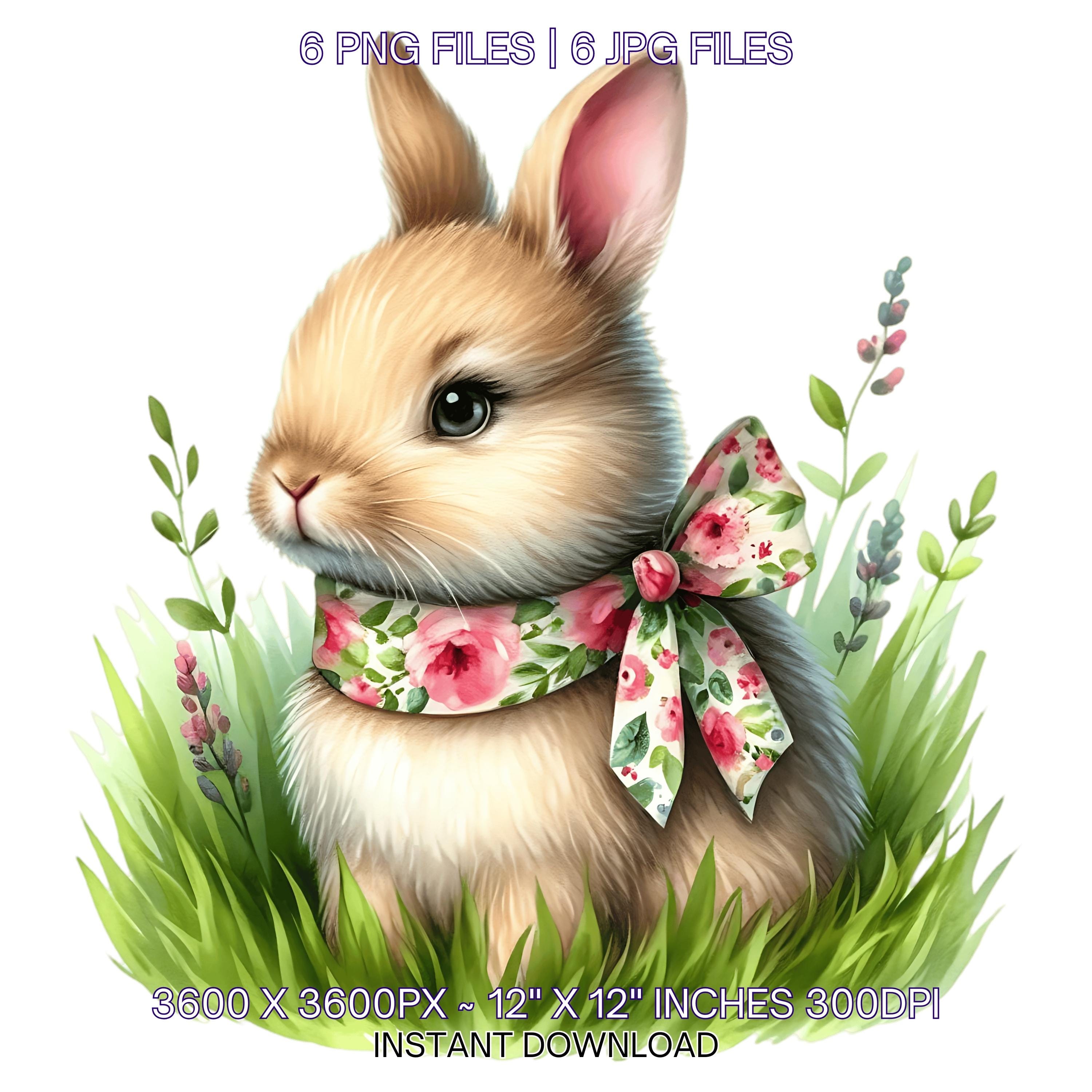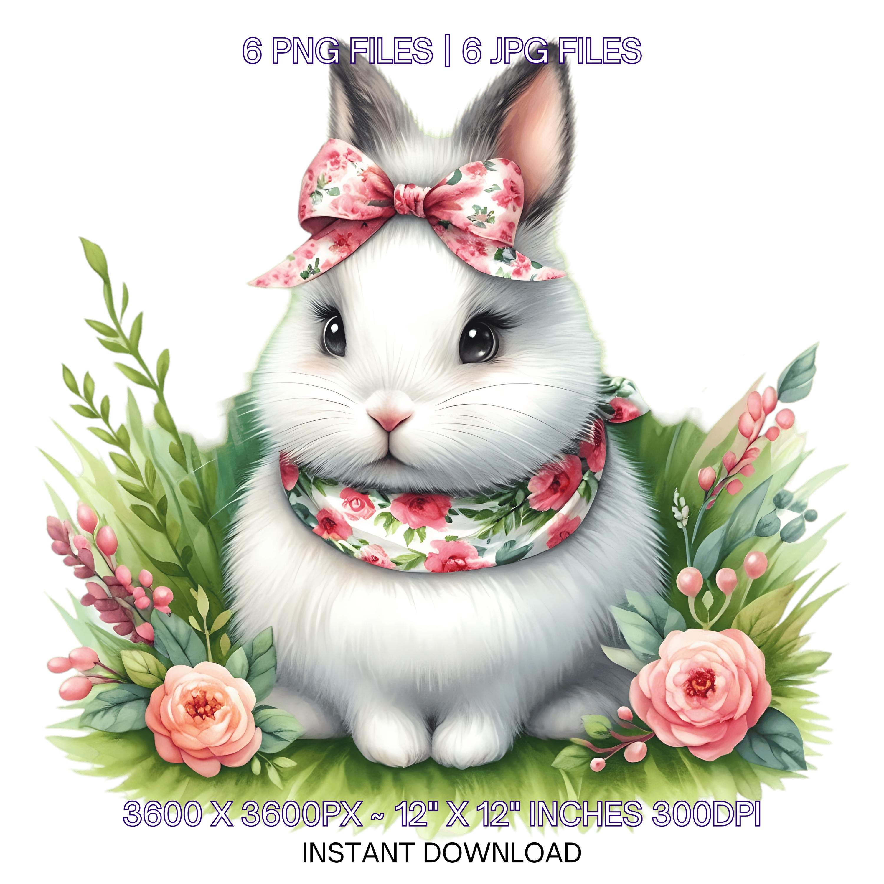 6 Spring Little Rabbit PNG Clipart, Watercolor Coney, Farm Bunny, Card Making, Scrapbooking, Junk Journaling, Sublimation, Commercial Use is an eye-catching, high-resolution digital asset designed for creators, crafters, teachers, and small business owners looking to elevate their visuals.