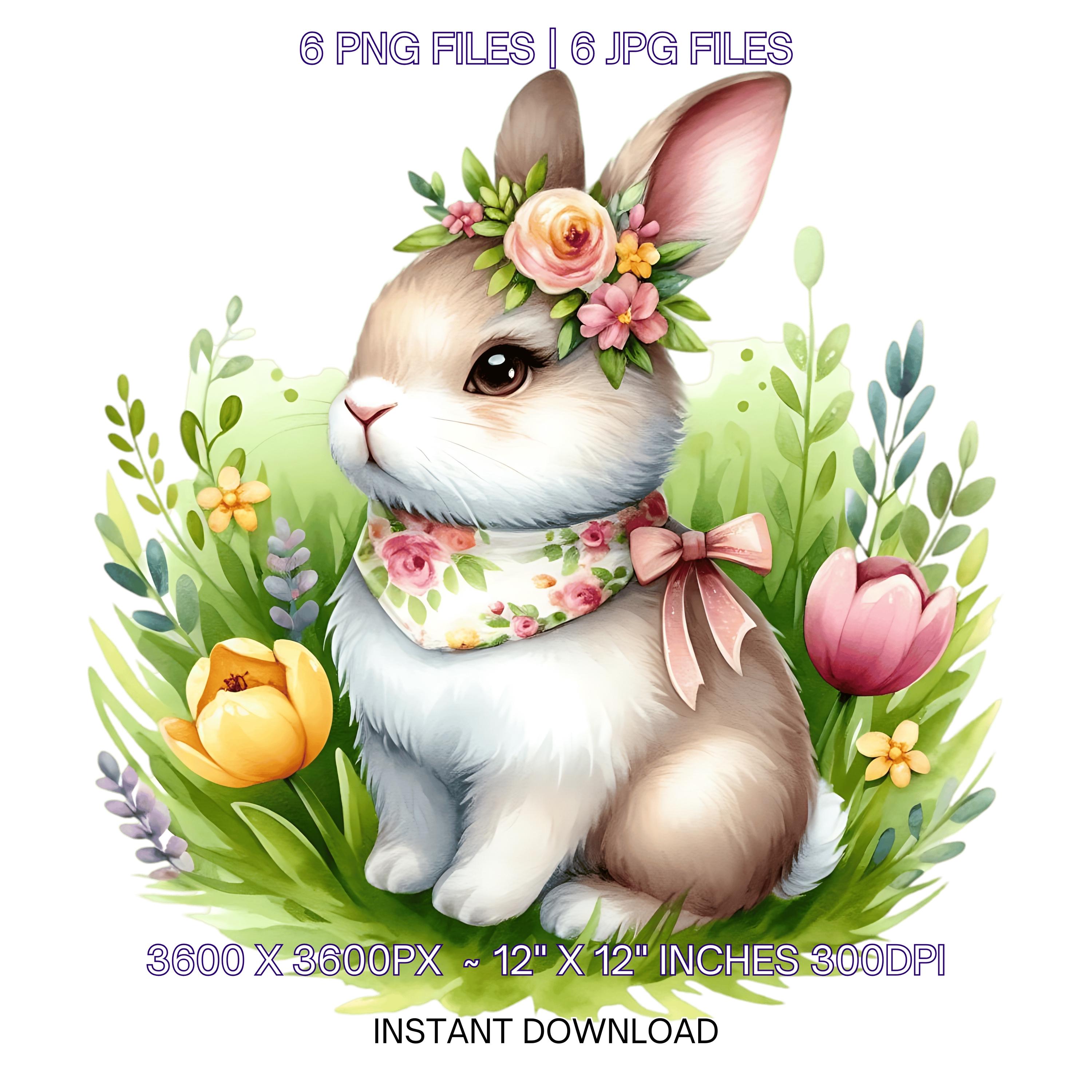 6 Spring Little Rabbit PNG Clipart, Watercolor Coney, Farm Bunny, Card Making, Scrapbooking, Junk Journaling, Sublimation, Commercial Use – Instant Digital Download - TumblersGalaxy