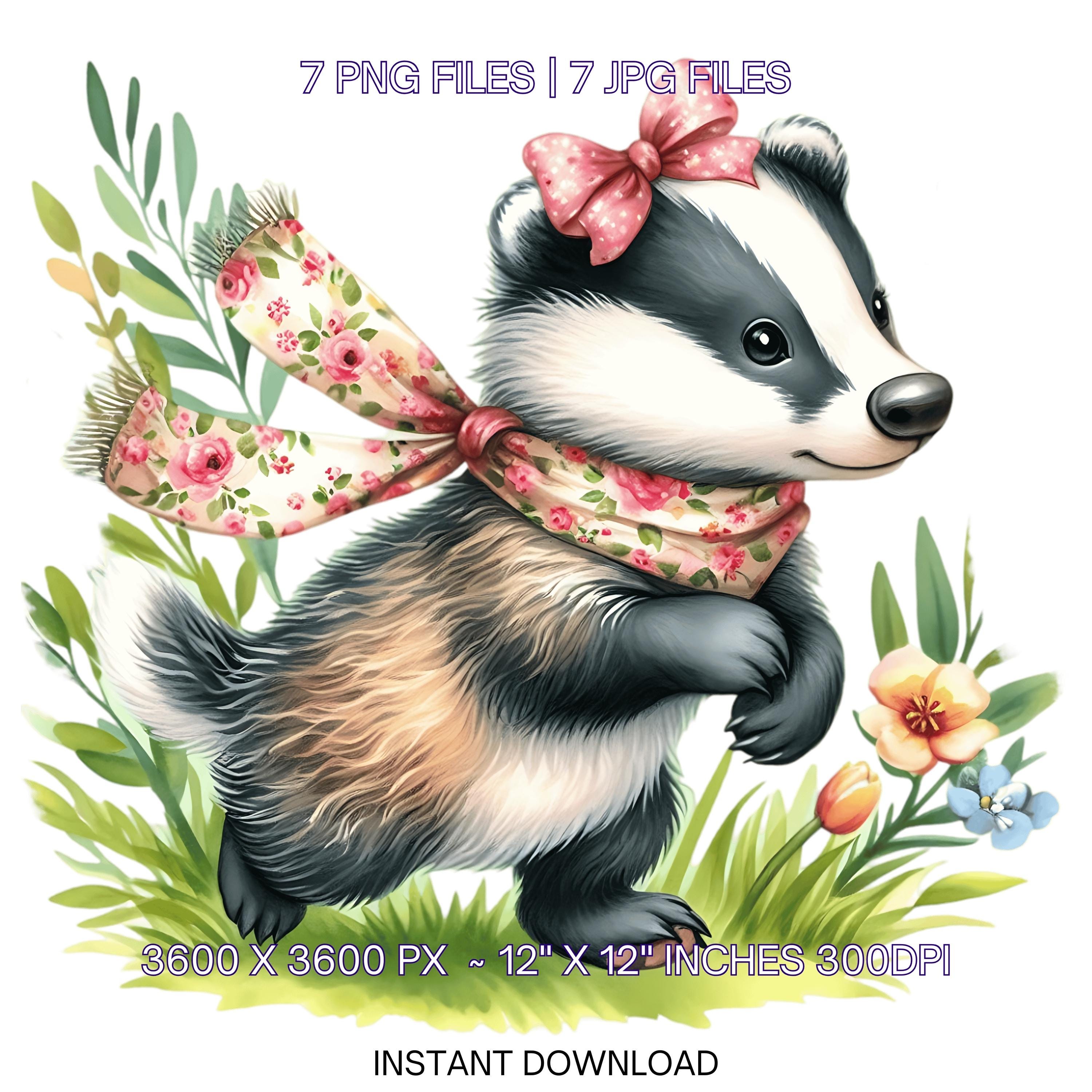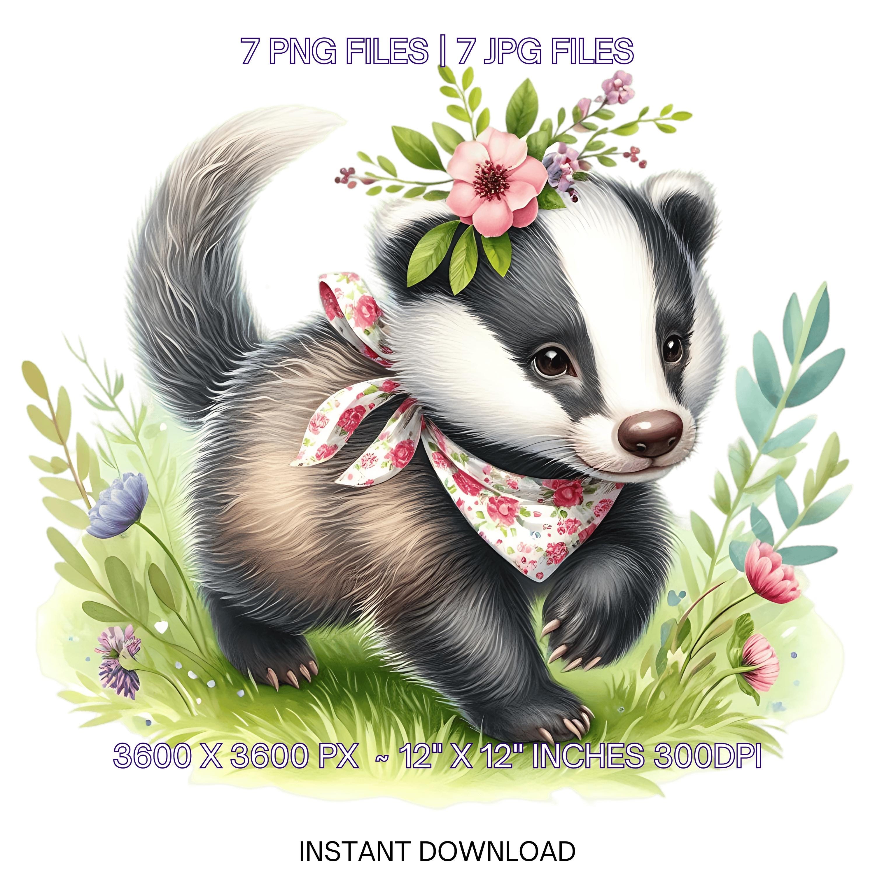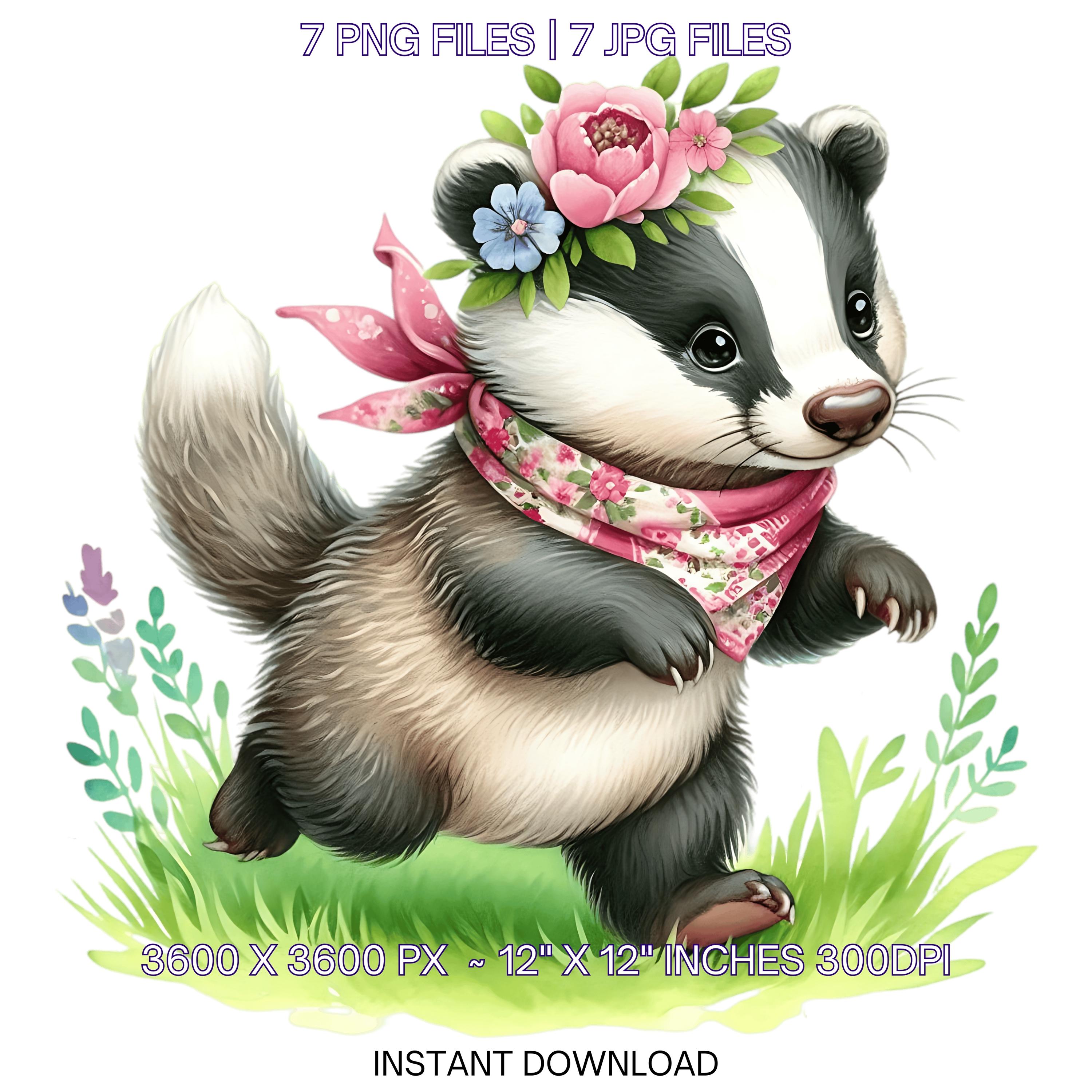 7 Spring Little Badger PNG Clipart, Watercolor Badger, Wild Life Animal, Card Making, Scrapbooking, Junk Journal, Sublimation Commercial Use is an eye-catching, high-resolution digital asset designed for creators, crafters, teachers, and small business owners looking to elevate their visuals.