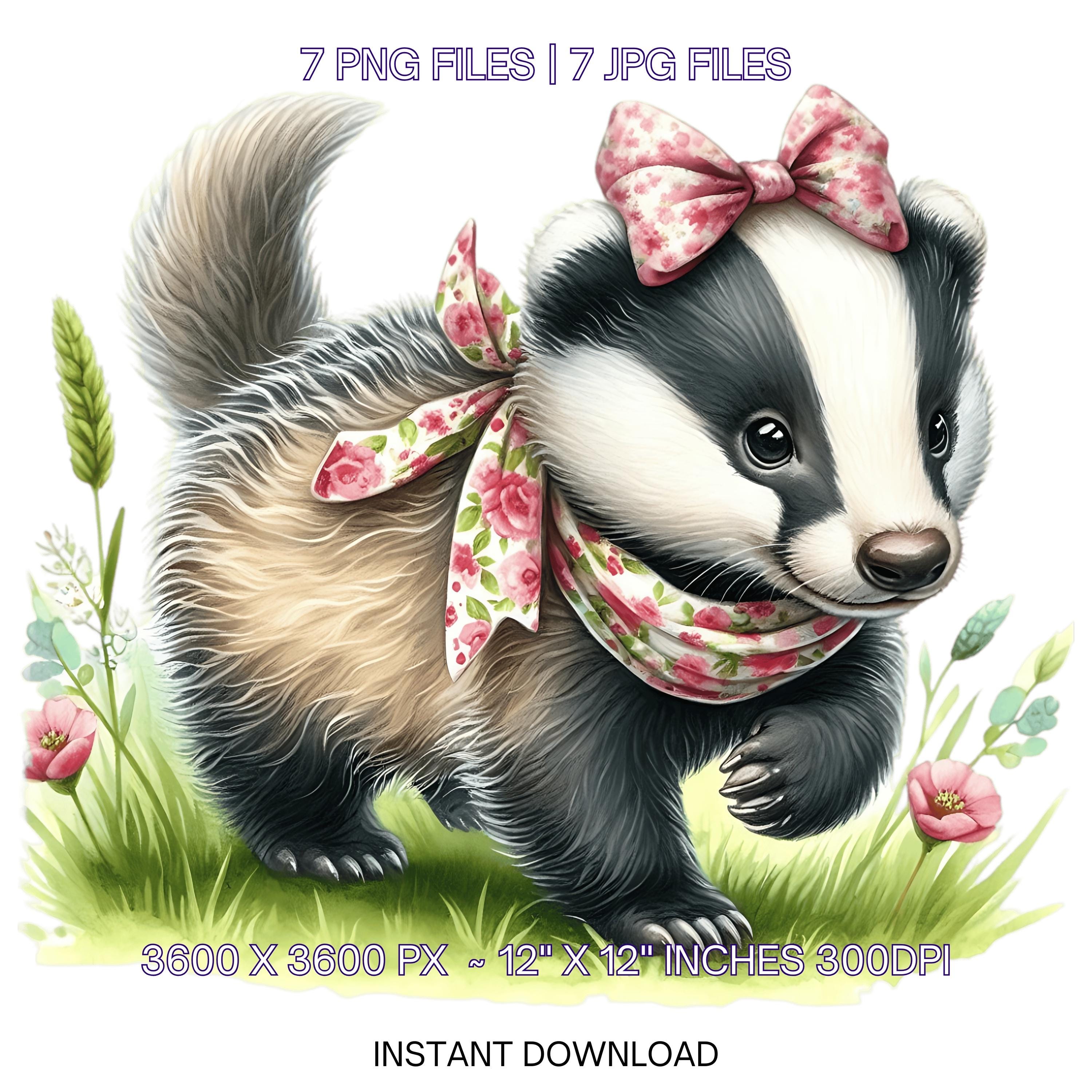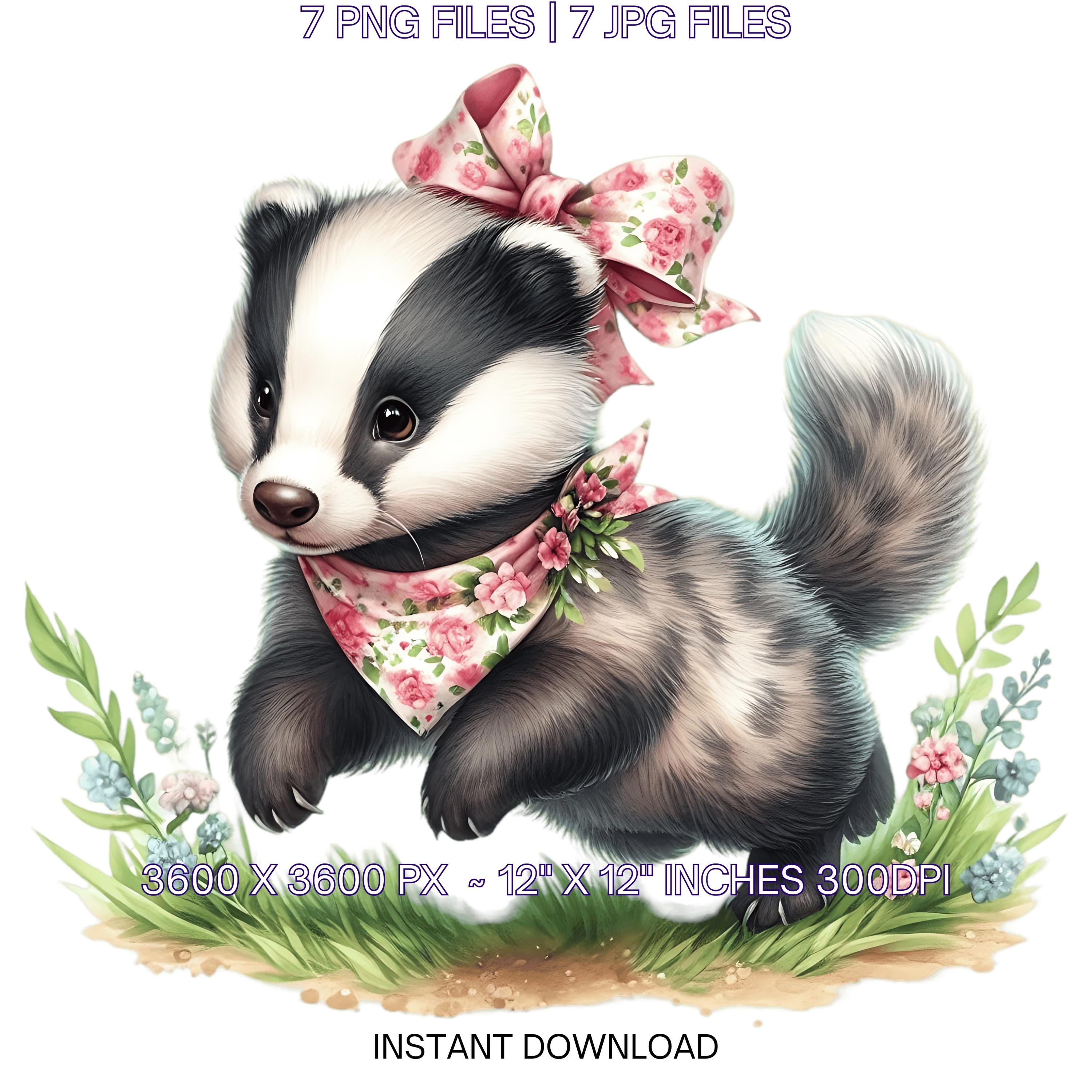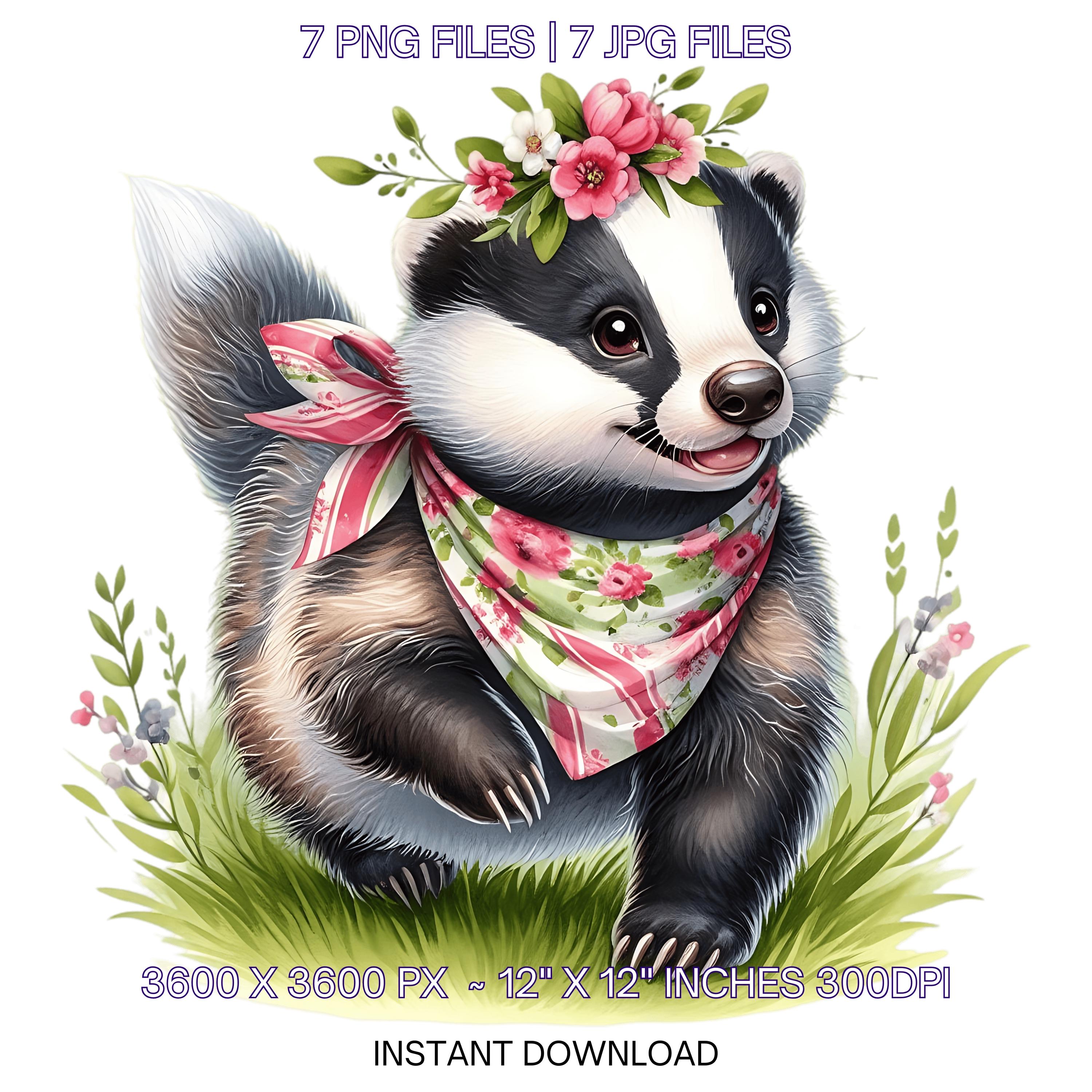 7 Spring Little Badger PNG Clipart, Watercolor Badger, Wild Life Animal, Card Making, Scrapbooking, Junk Journal, Sublimation Commercial Use is an eye-catching, high-resolution digital asset designed for creators, crafters, teachers, and small business owners looking to elevate their visuals.