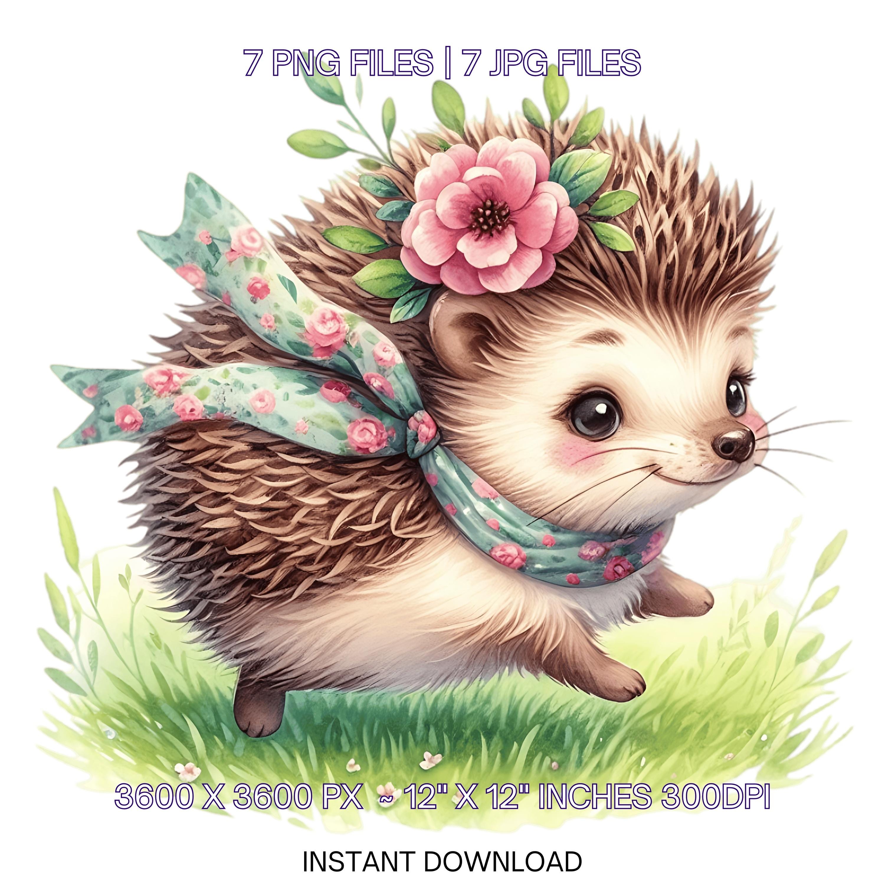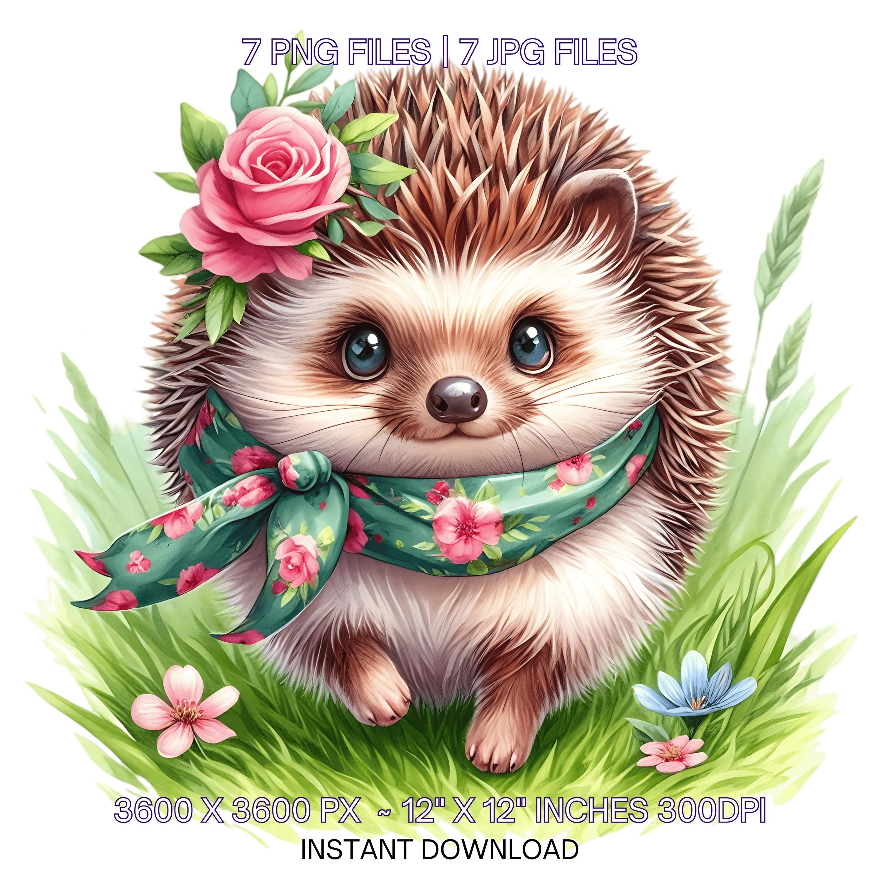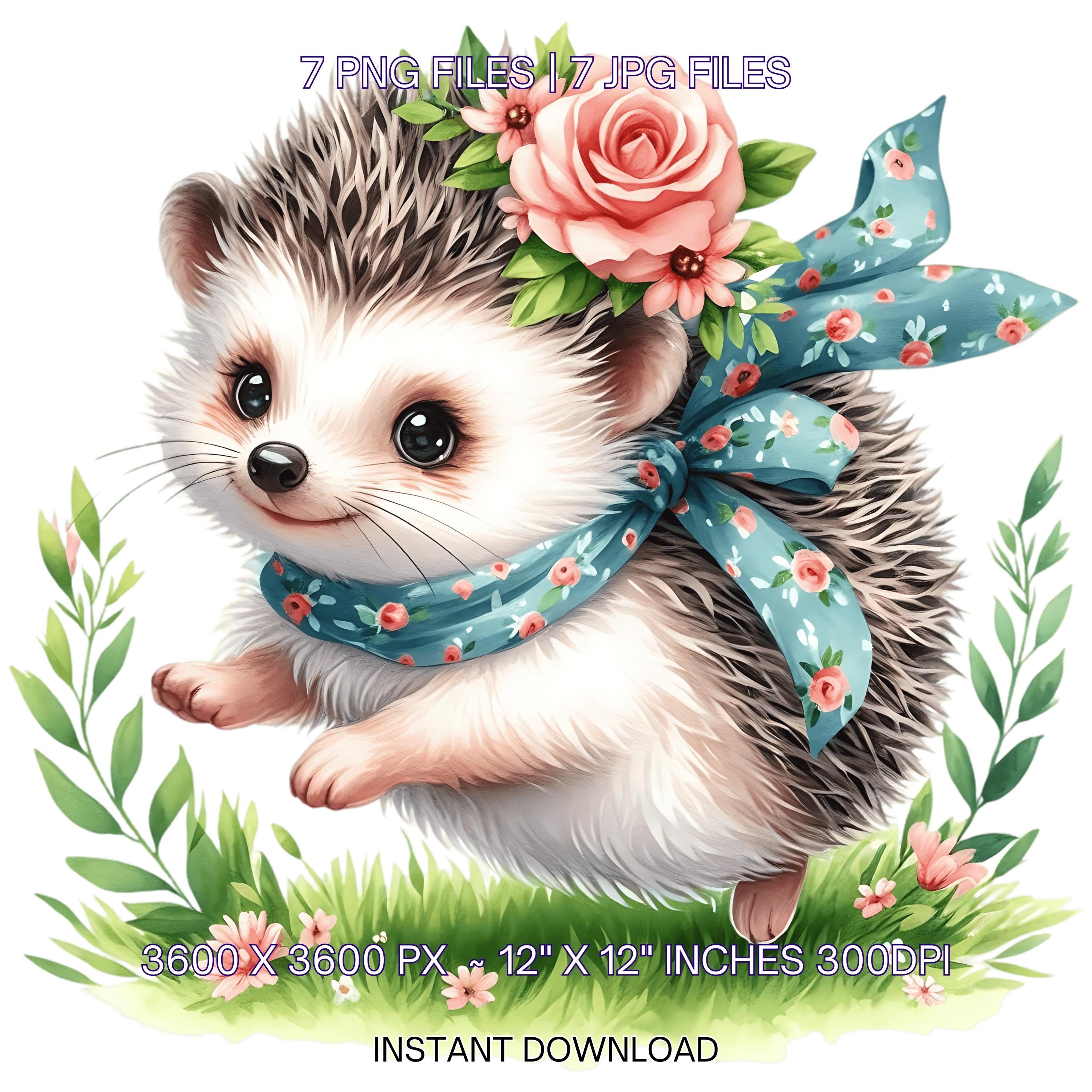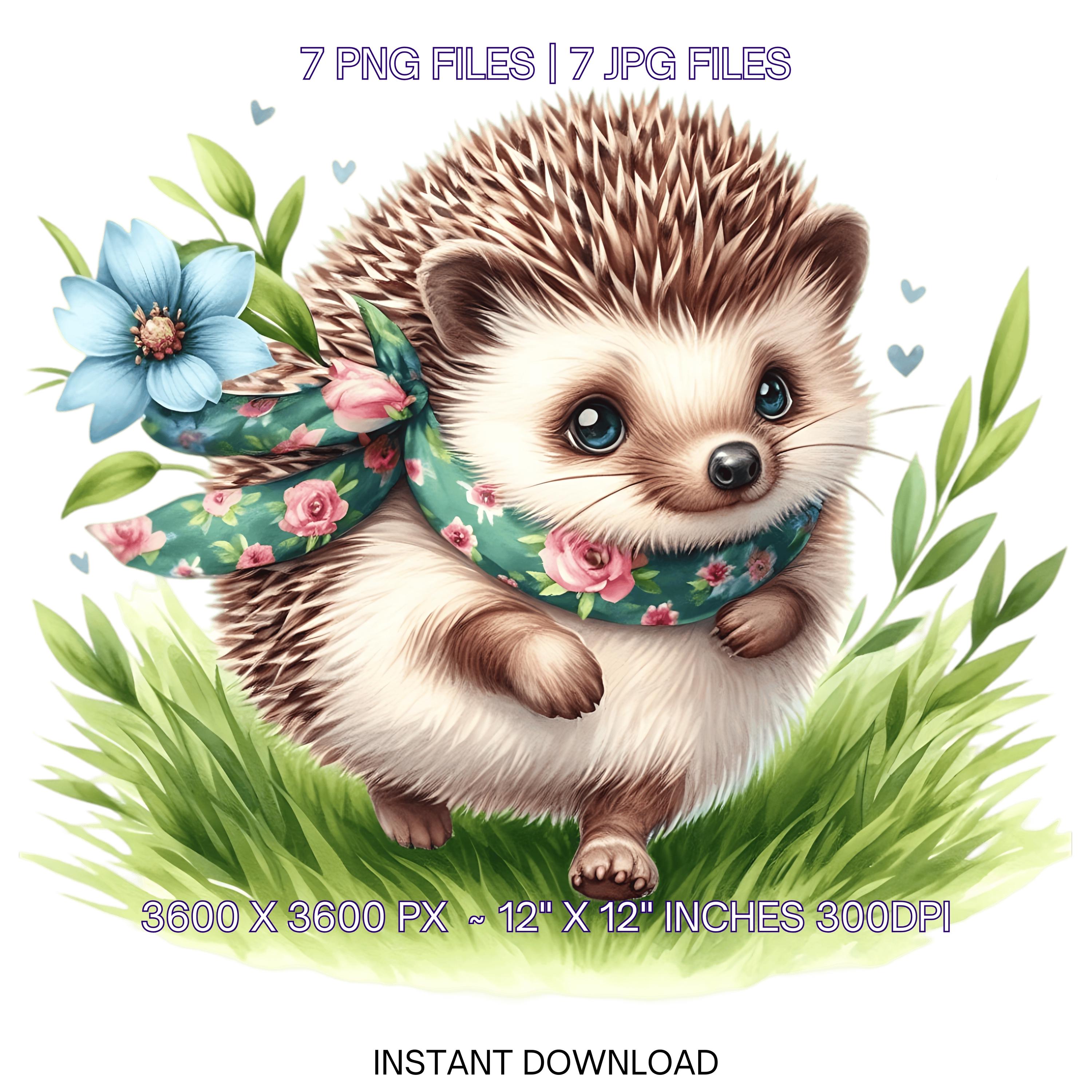 7 Spring Little Hedgehog PNG Clipart, Watercolor Hedgehog, Wild Life Animal, Card Making, Scrapbooking Junk, Sublimation Commercial Use is an eye-catching, high-resolution digital asset designed for creators, crafters, teachers, and small business owners looking to elevate their visuals.