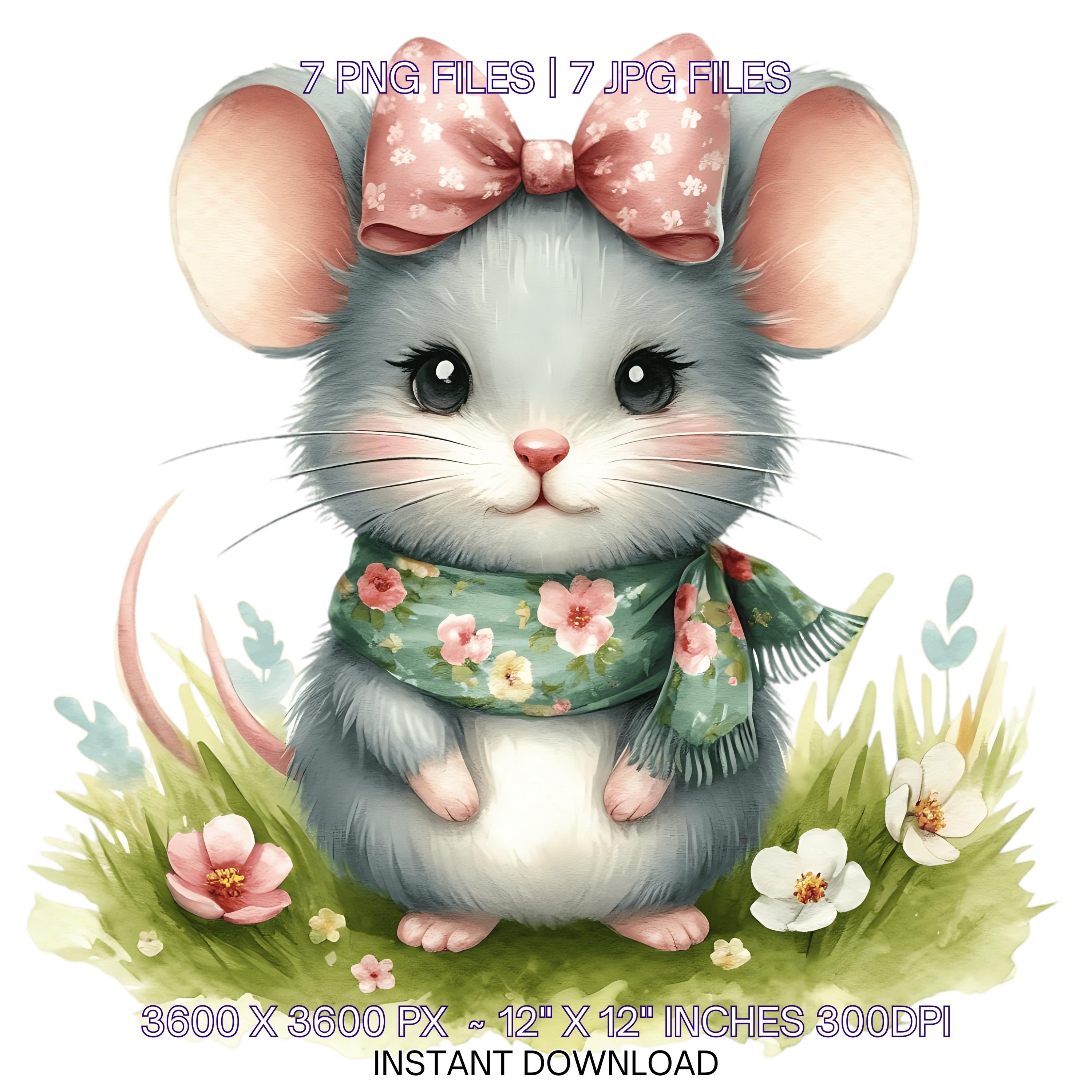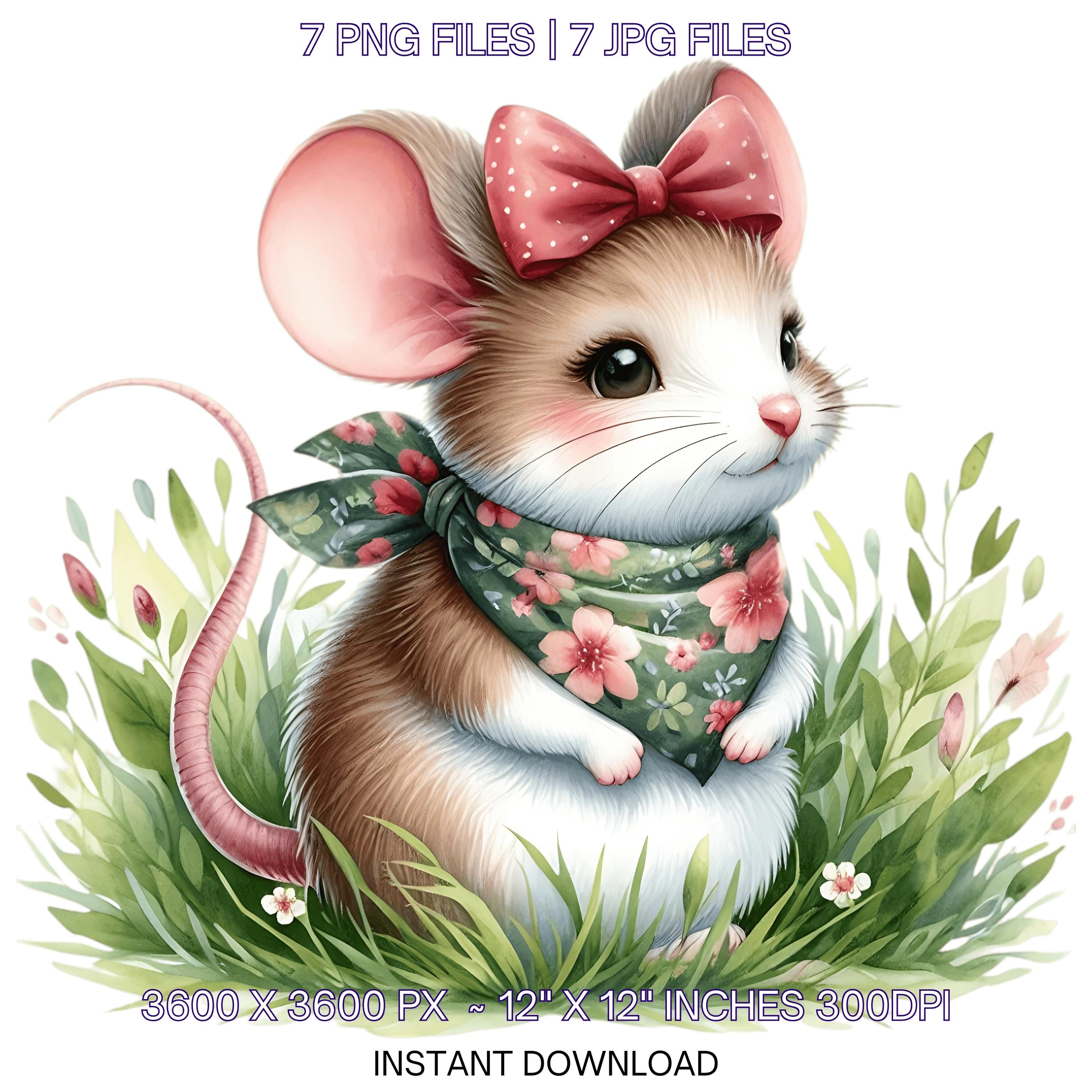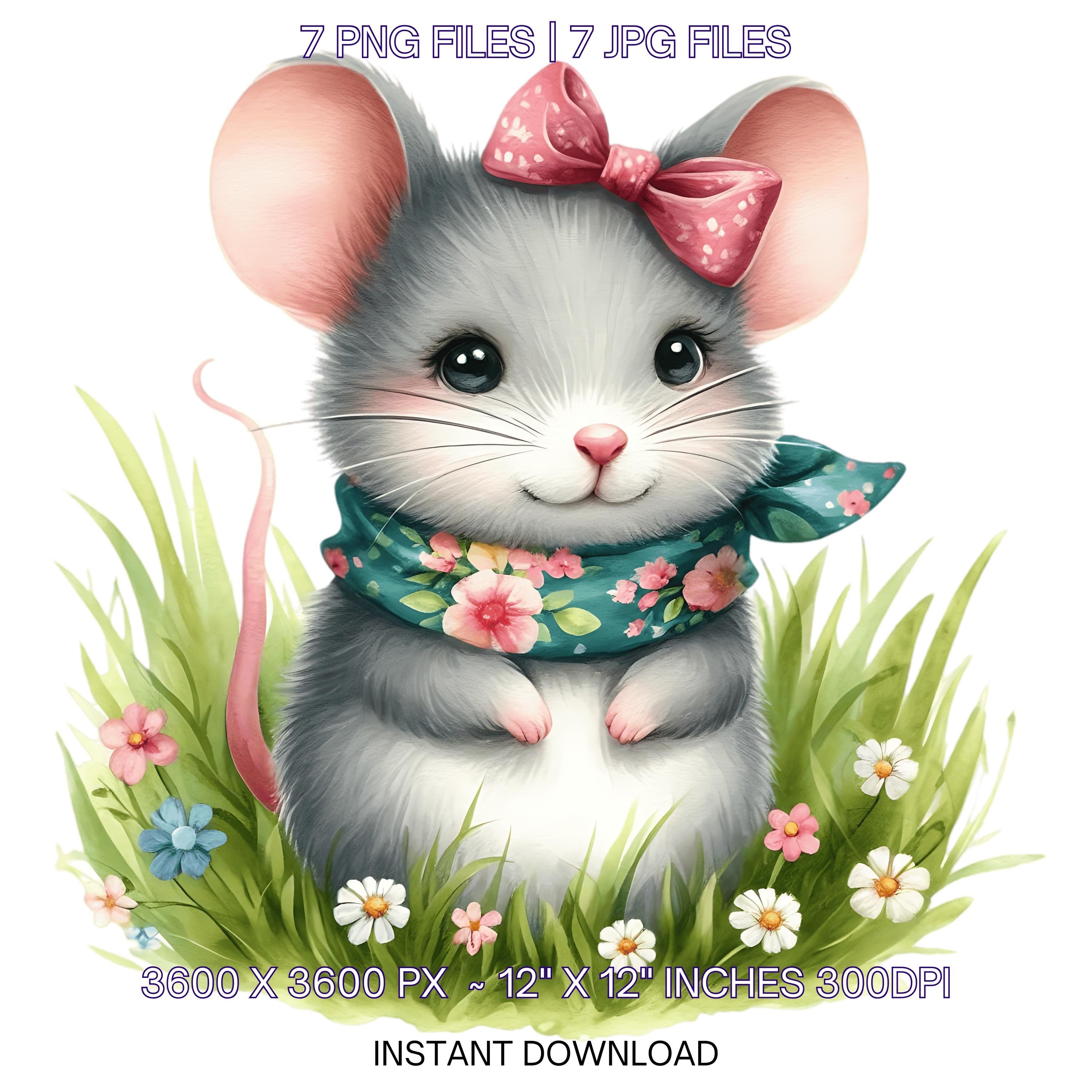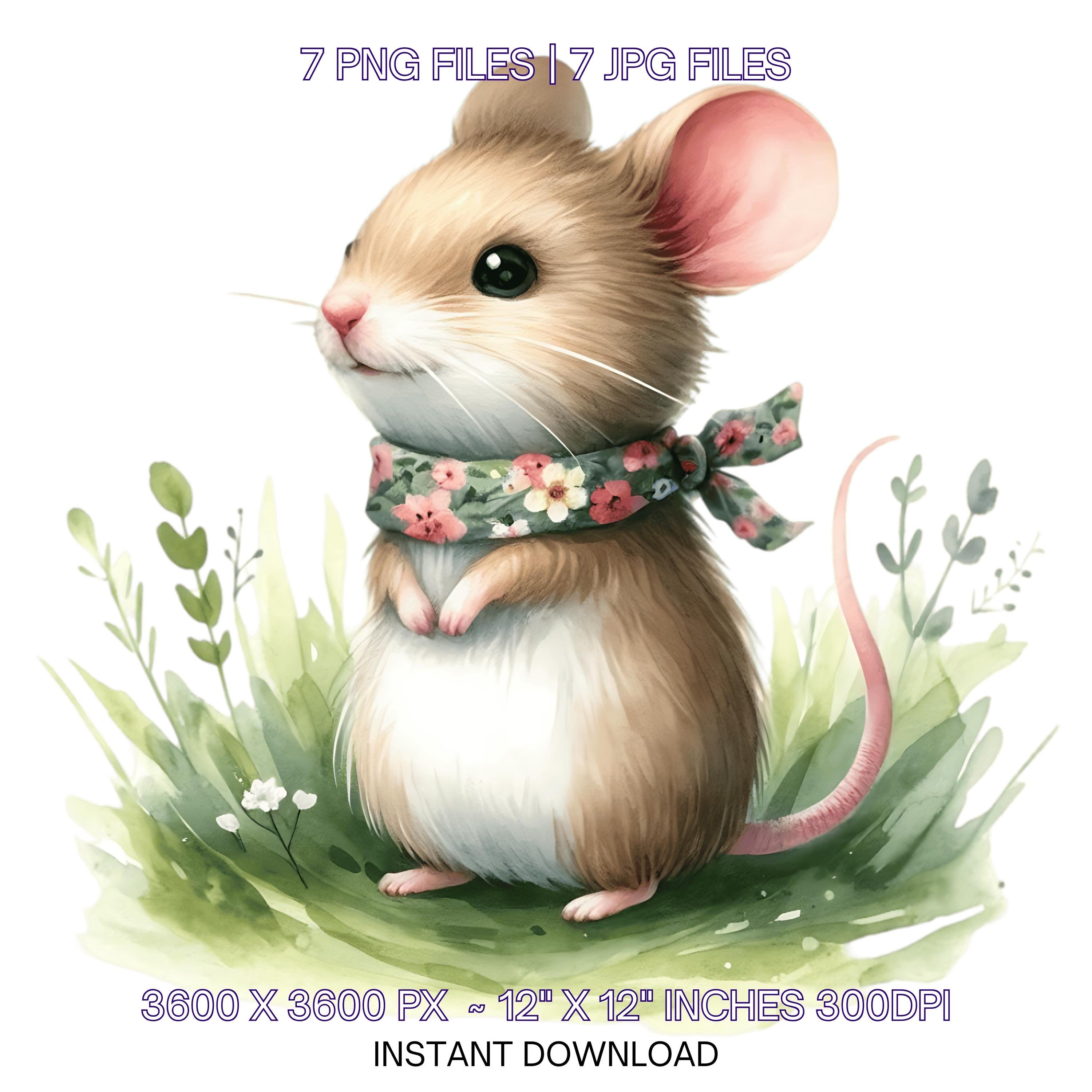 7 Spring Little Mouse PNG Clipart, Watercolor Mouse, Farm Animal, Hen Card Making, Scrapbooking, Junk Journaling, Sublimation Commercial Use is an eye-catching, high-resolution digital asset designed for creators, crafters, teachers, and small business owners looking to elevate their visuals.