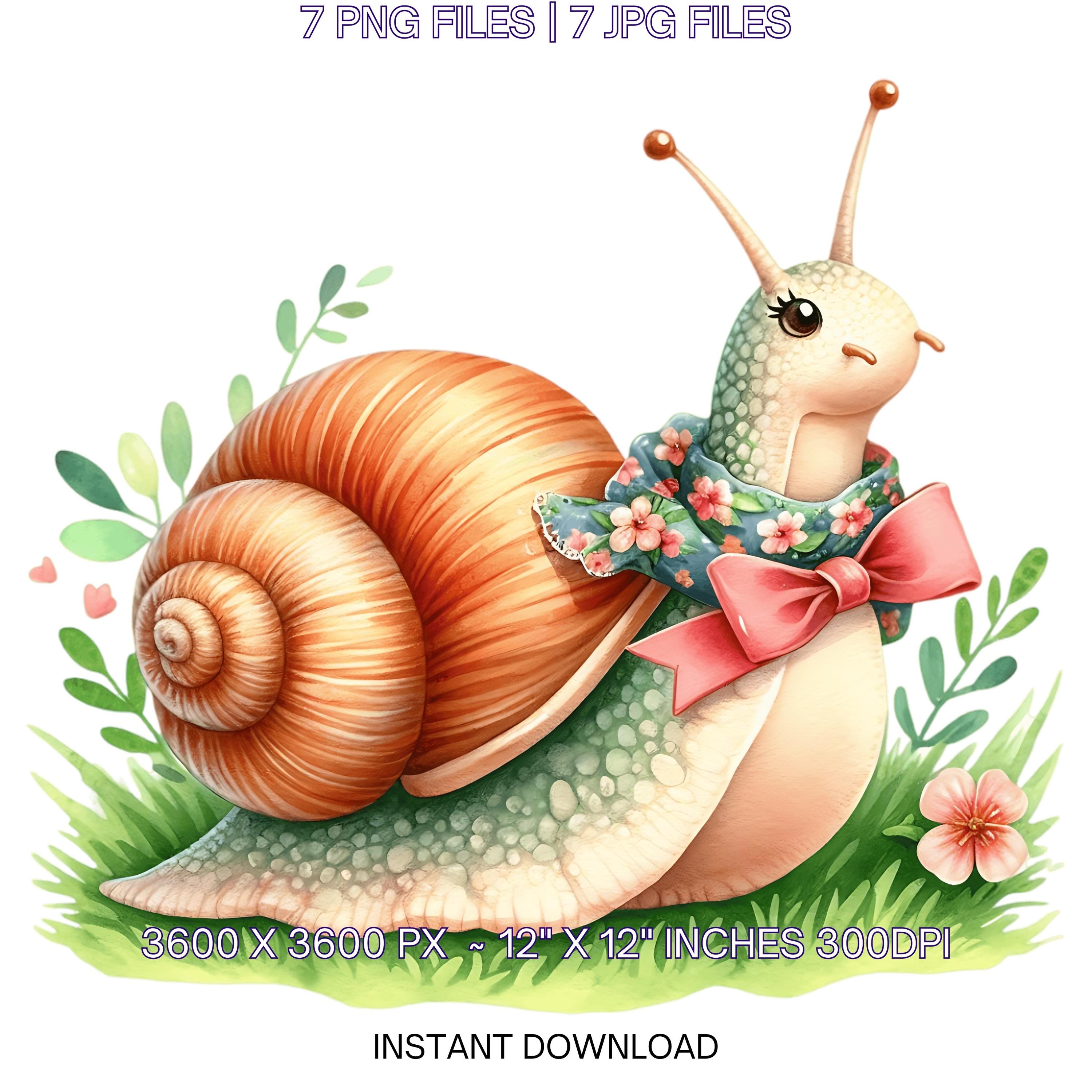 7 Spring Little Snail PNG Clipart, Watercolor Snail, Wild Life Animal, Card Making, Scrapbooking, Junk Journal, Sublimation Commercial Use is an eye-catching, high-resolution digital asset designed for creators, crafters, teachers, and small business owners looking to elevate their visuals.