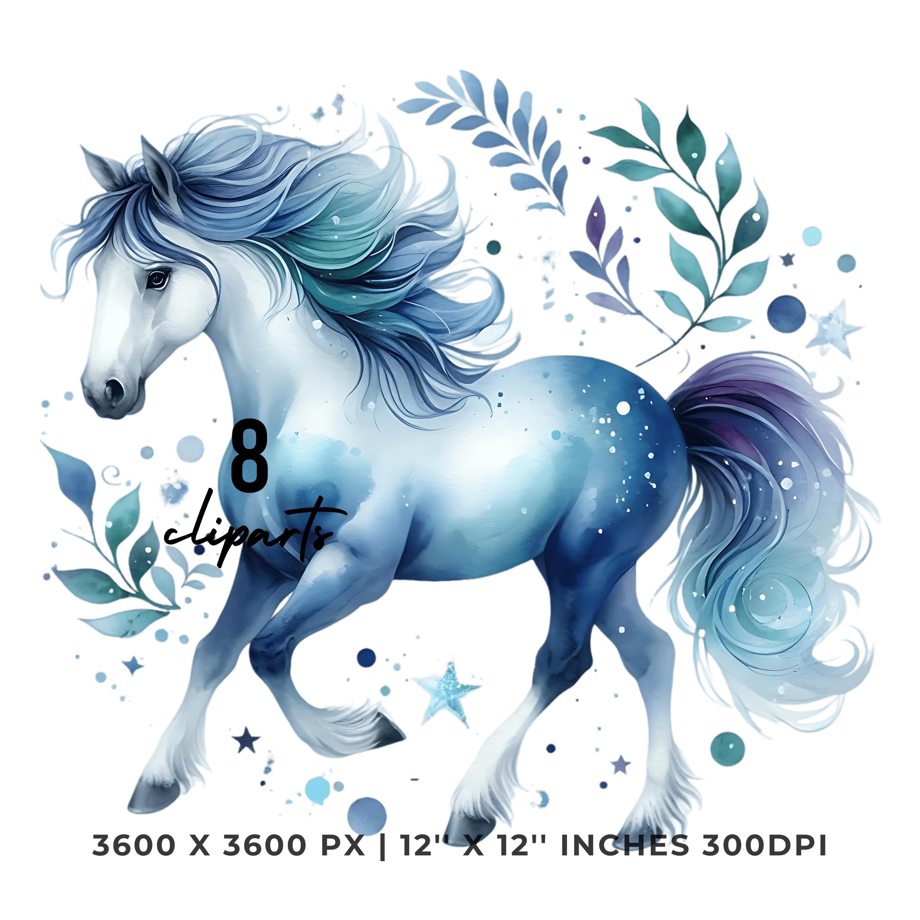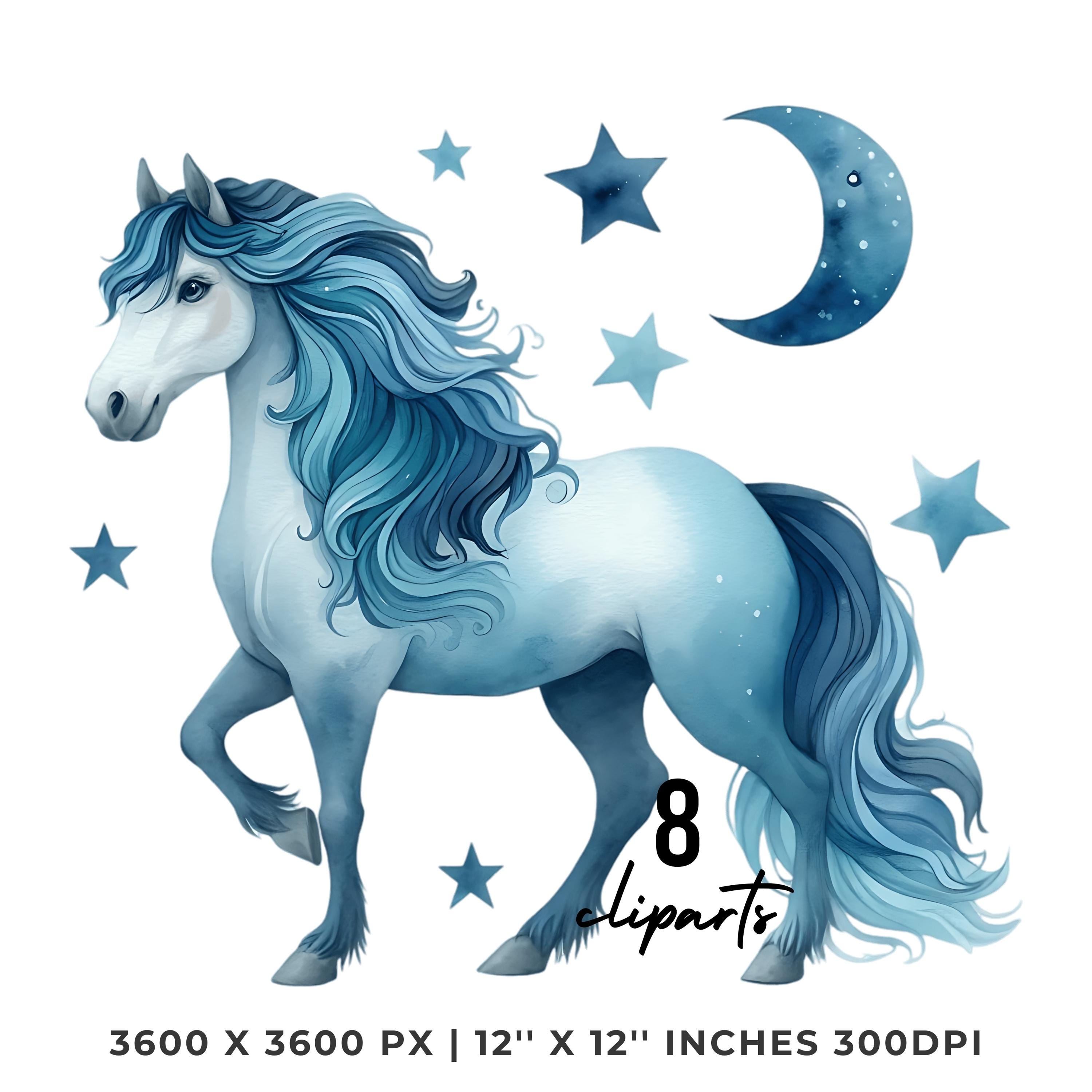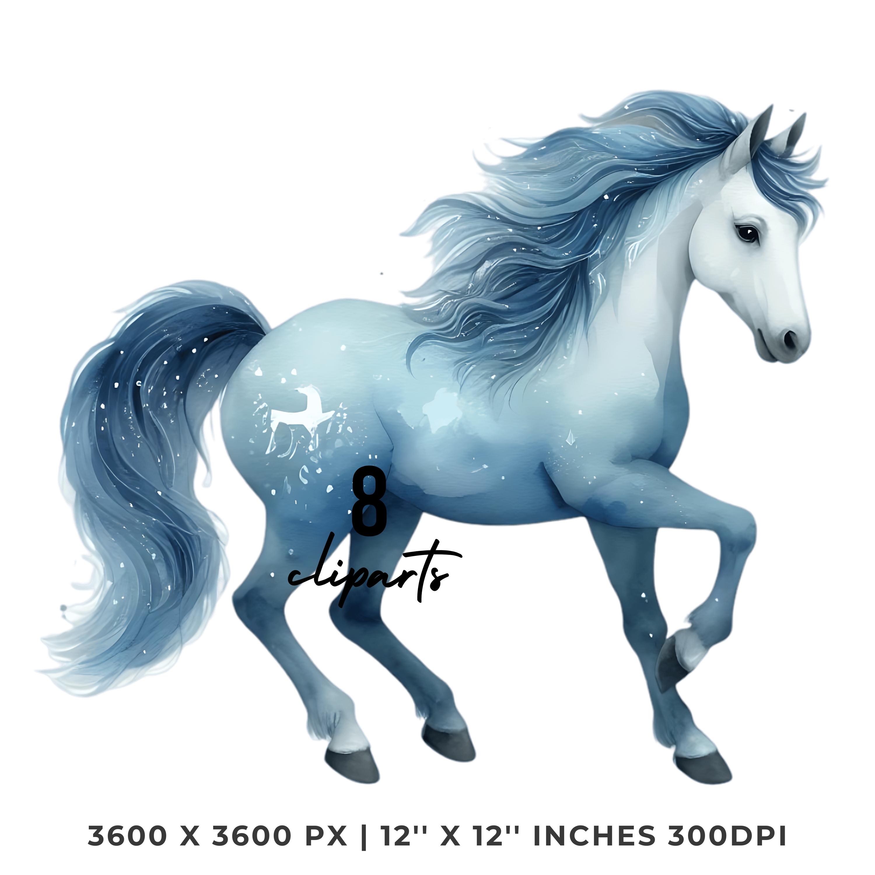 8 Blue Horse Clipart, Watercolor Farm Equine Animals for Card Making, Scrapbooking PNG, Junk Journaling, Sublimation Commercial Use is an eye-catching, high-resolution digital asset designed for creators, crafters, teachers, and small business owners looking to elevate their visuals.