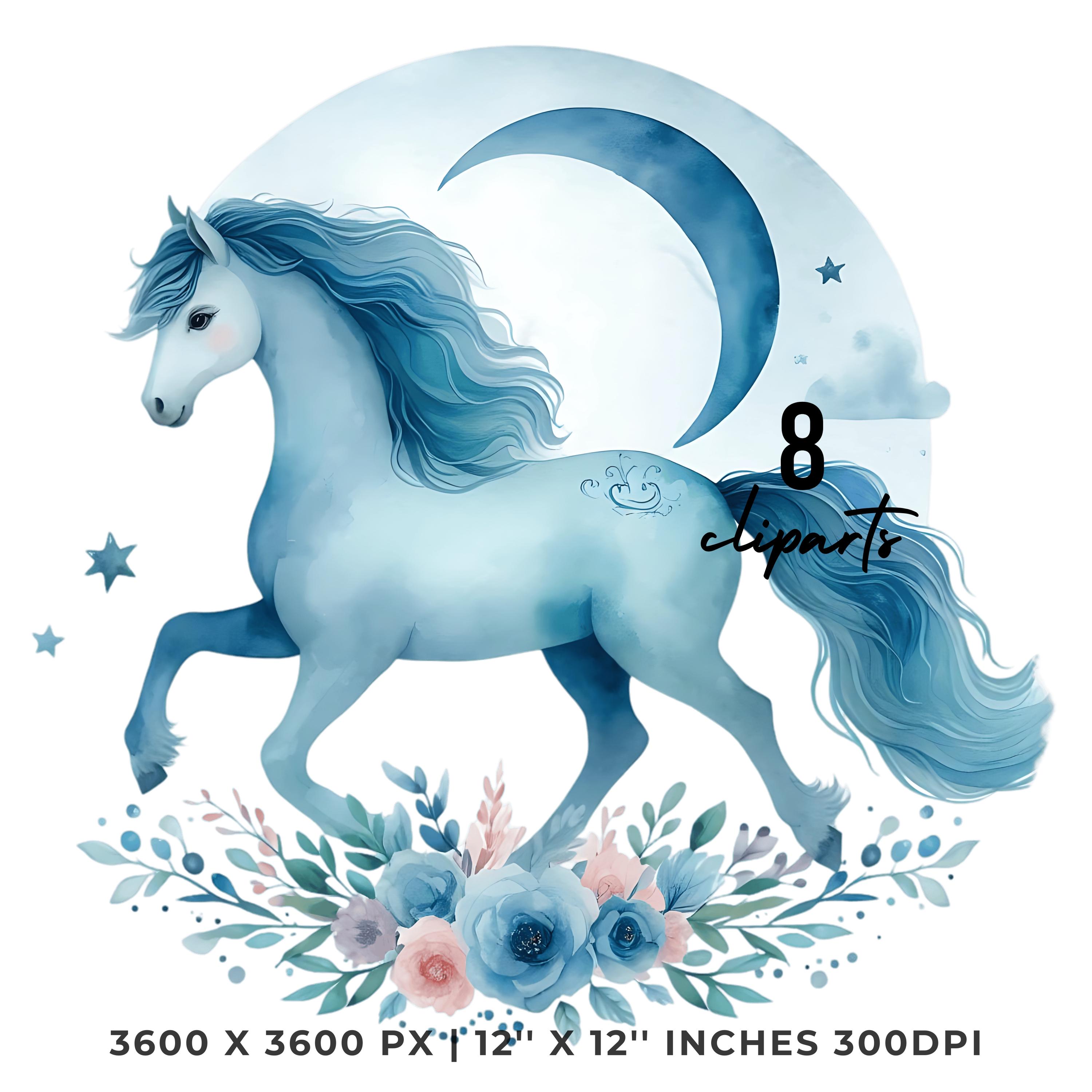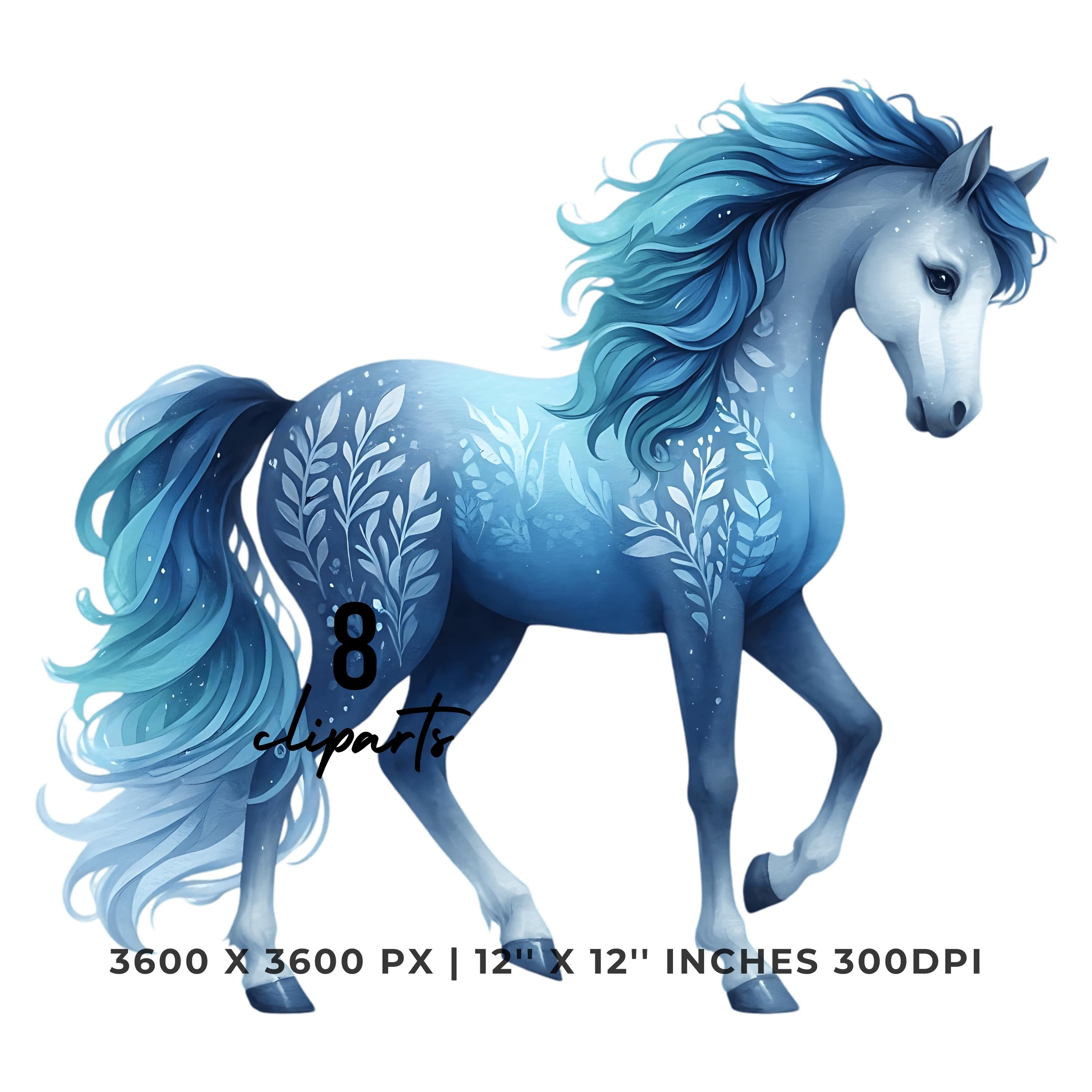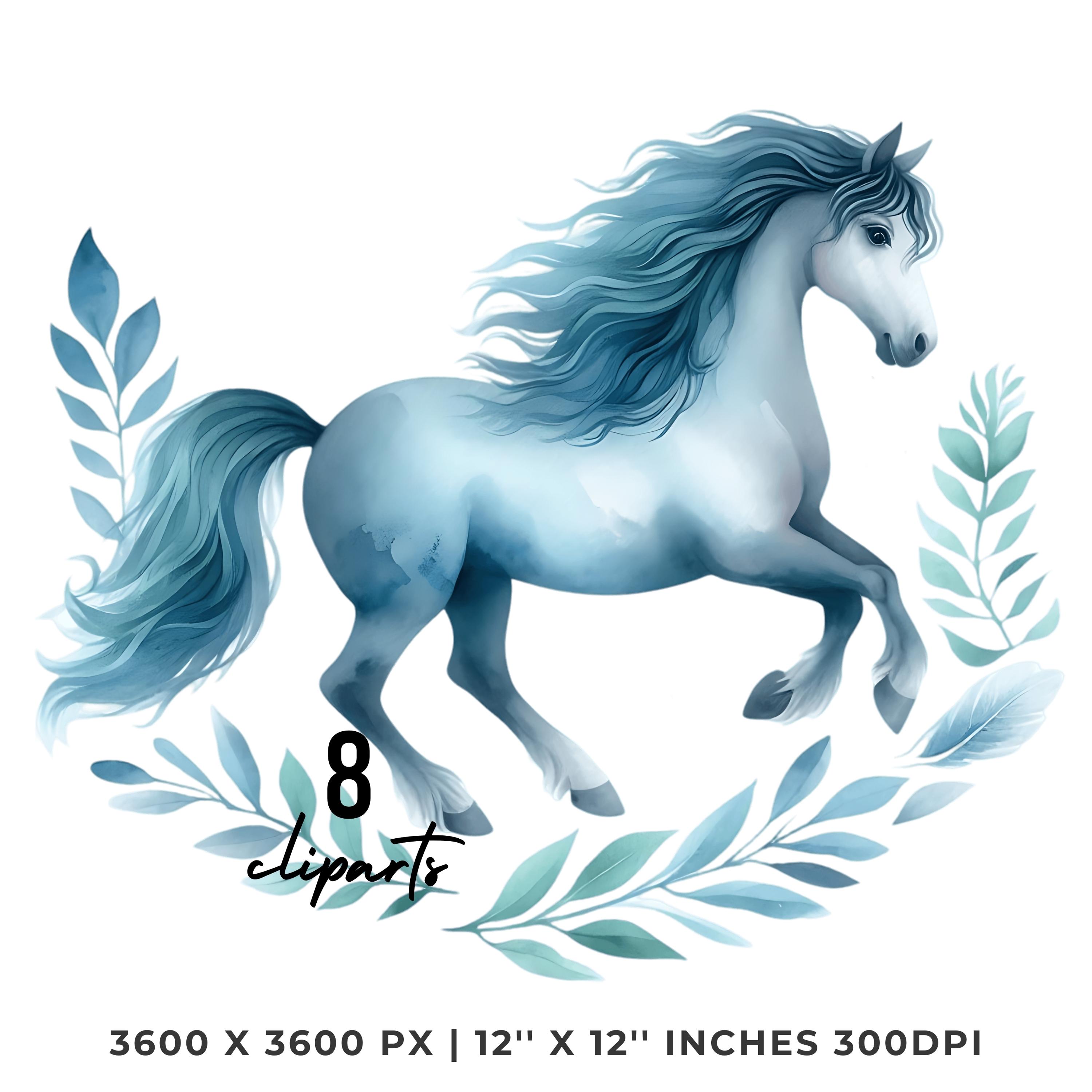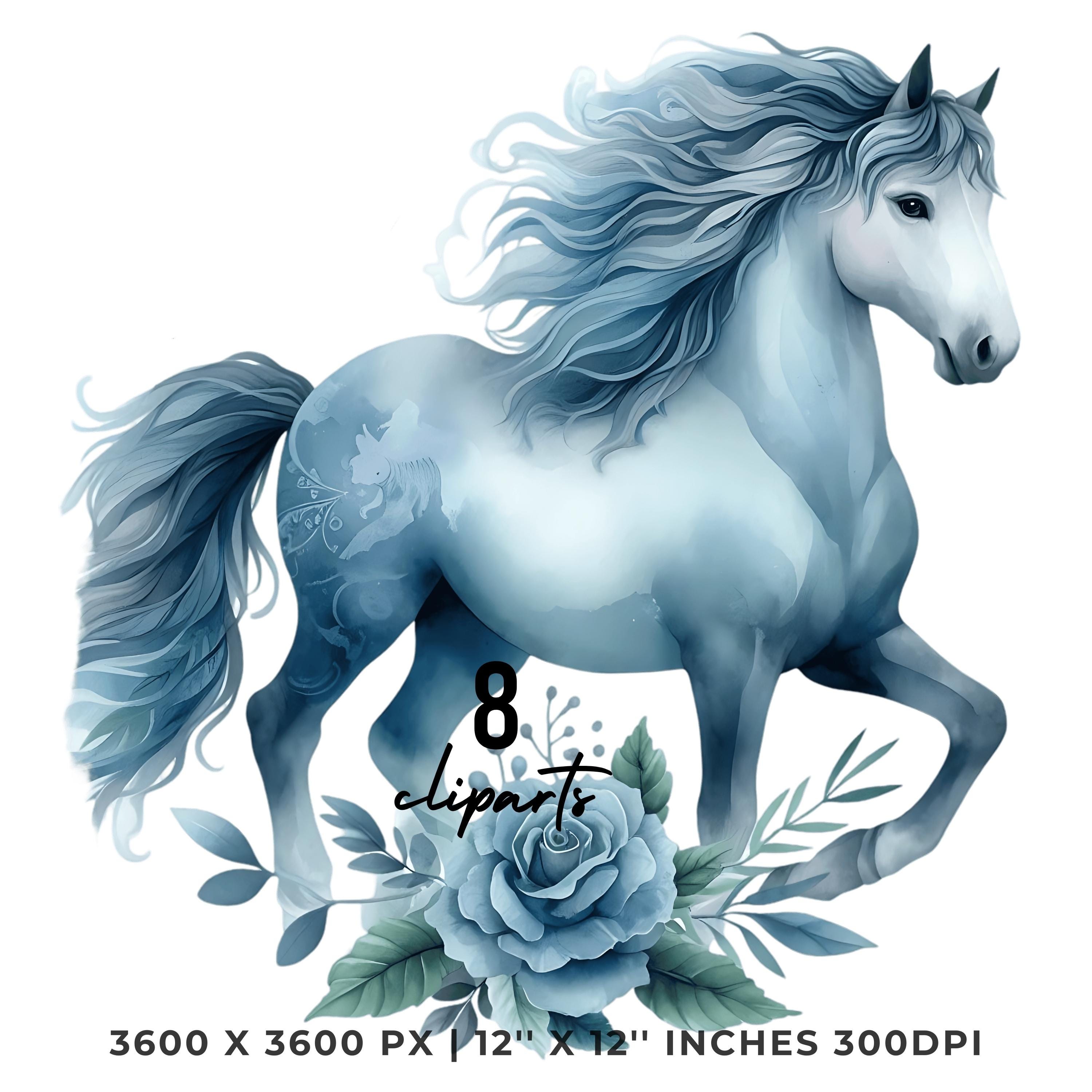 8 Blue Horse Clipart, Watercolor Farm Equine Animals for Card Making, Scrapbooking PNG, Junk Journaling, Sublimation Commercial Use is an eye-catching, high-resolution digital asset designed for creators, crafters, teachers, and small business owners looking to elevate their visuals.