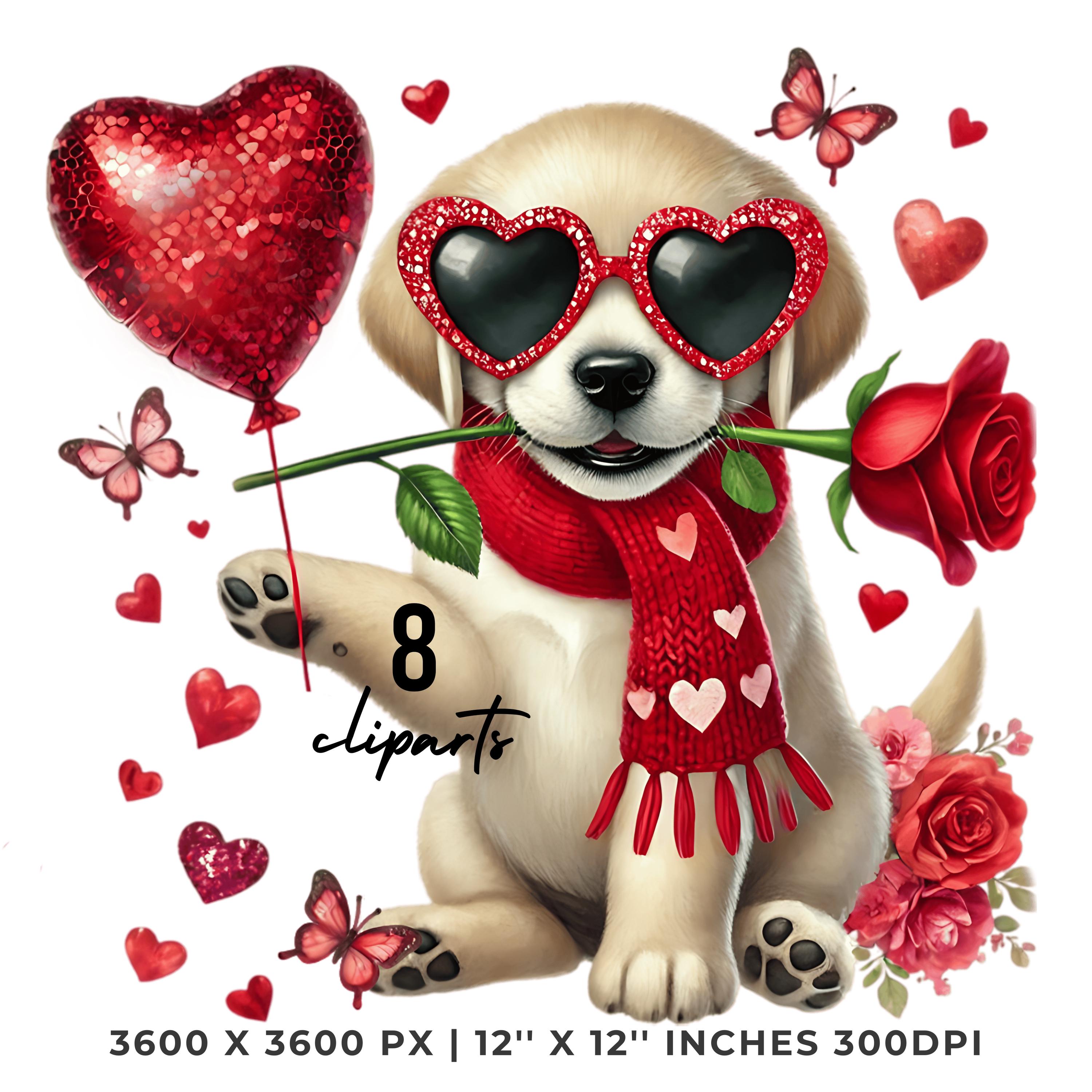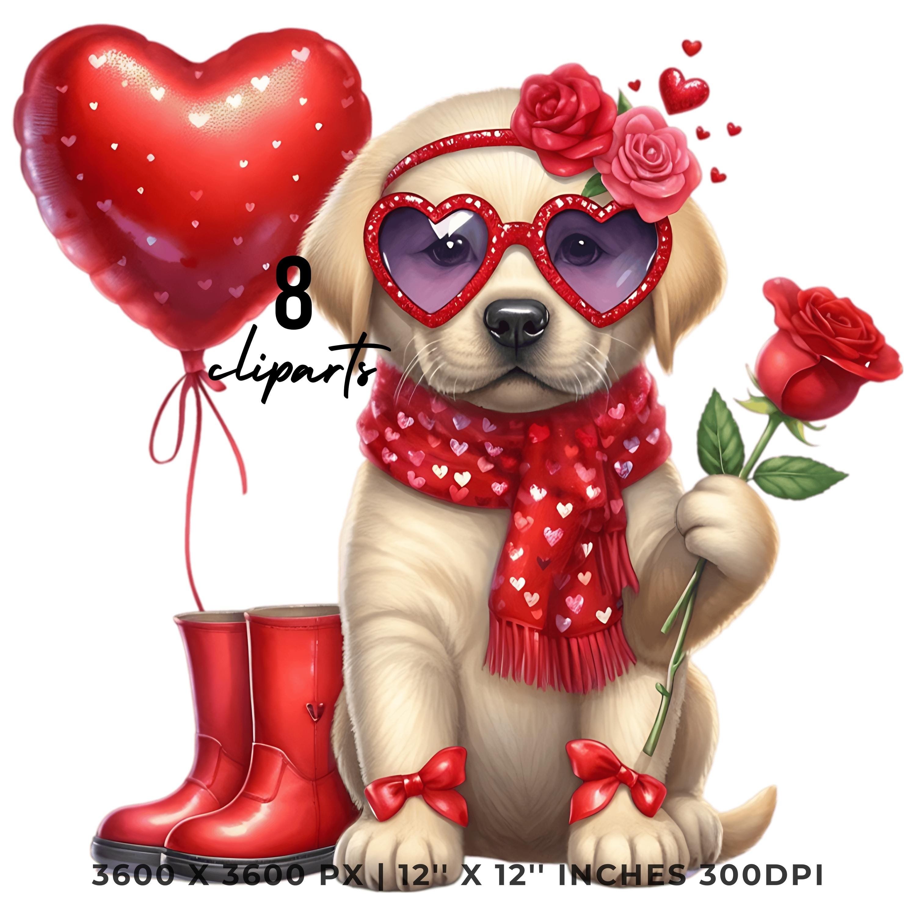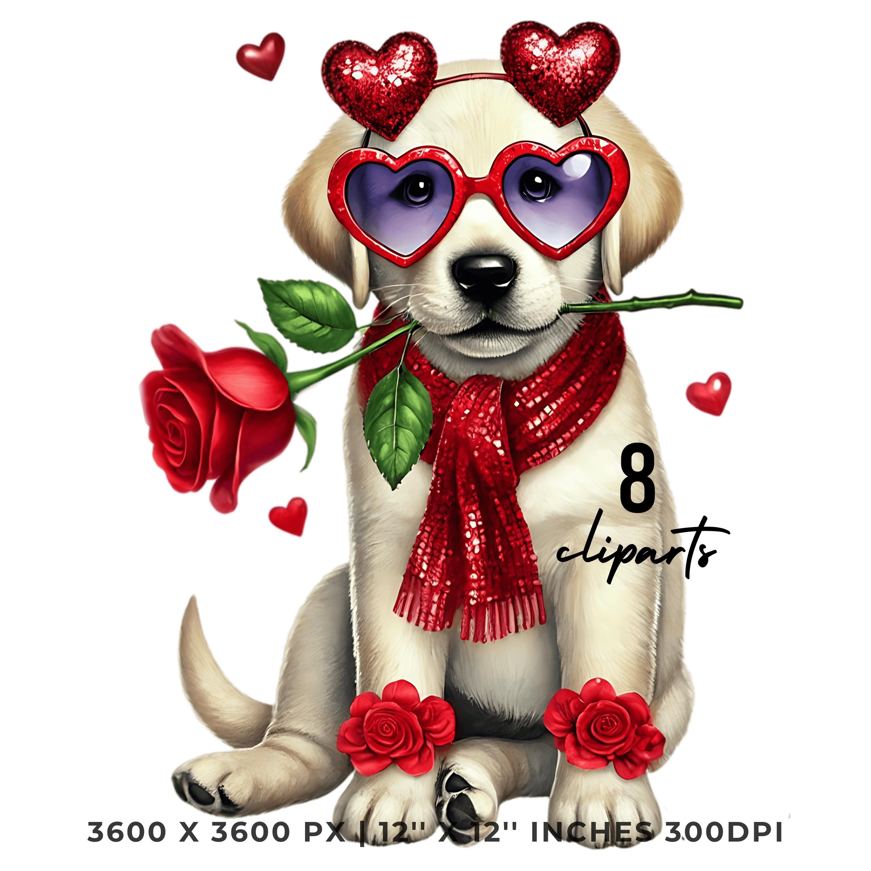 8 Cute Valentine Labrador Puppy Dog Clip Art PNG for Labrador Dog Lover | Quirky Whimsical Labrador Sublimation Scrapbooking Commercial Use is an eye-catching, high-resolution digital asset designed for creators, crafters, teachers, and small business owners looking to elevate their visuals.