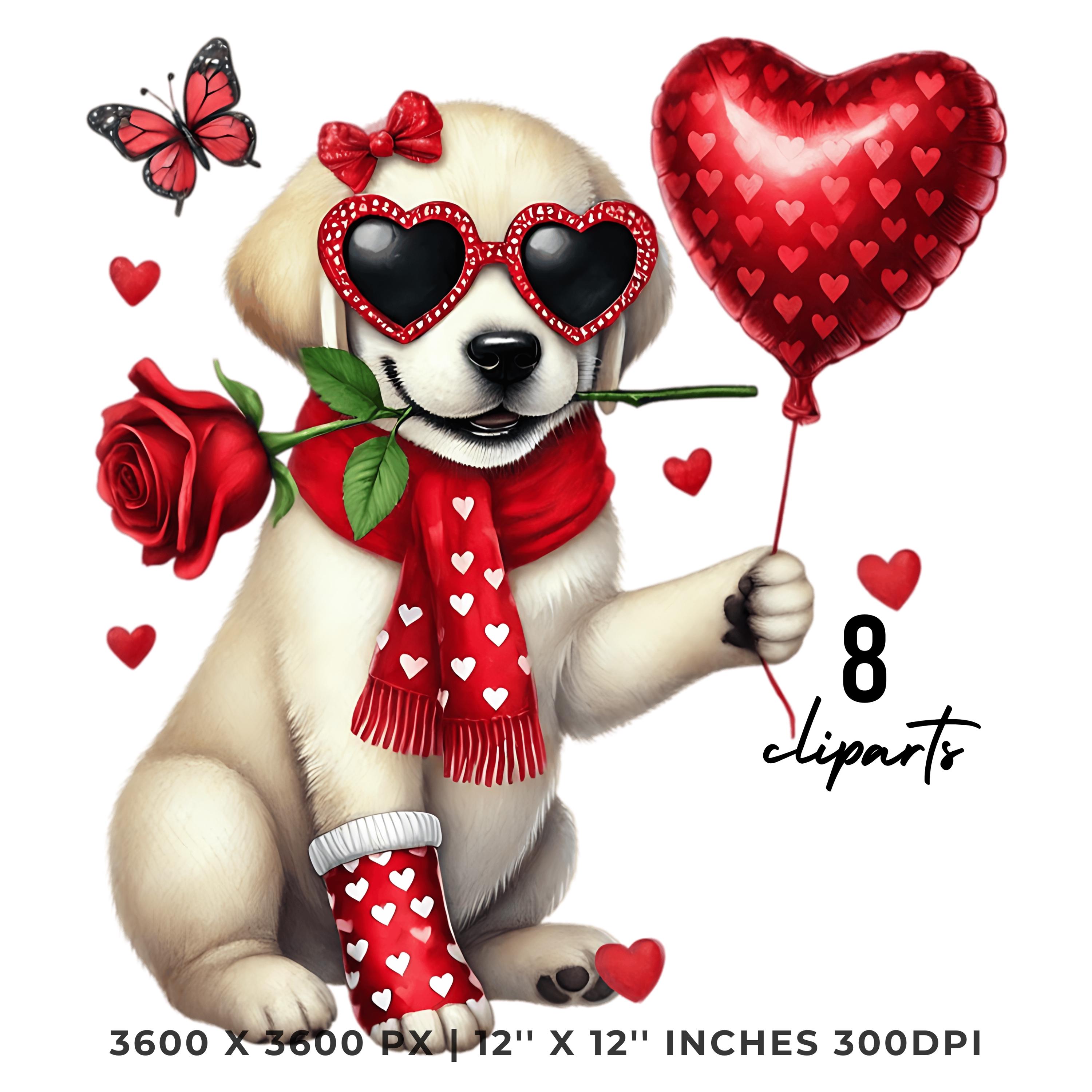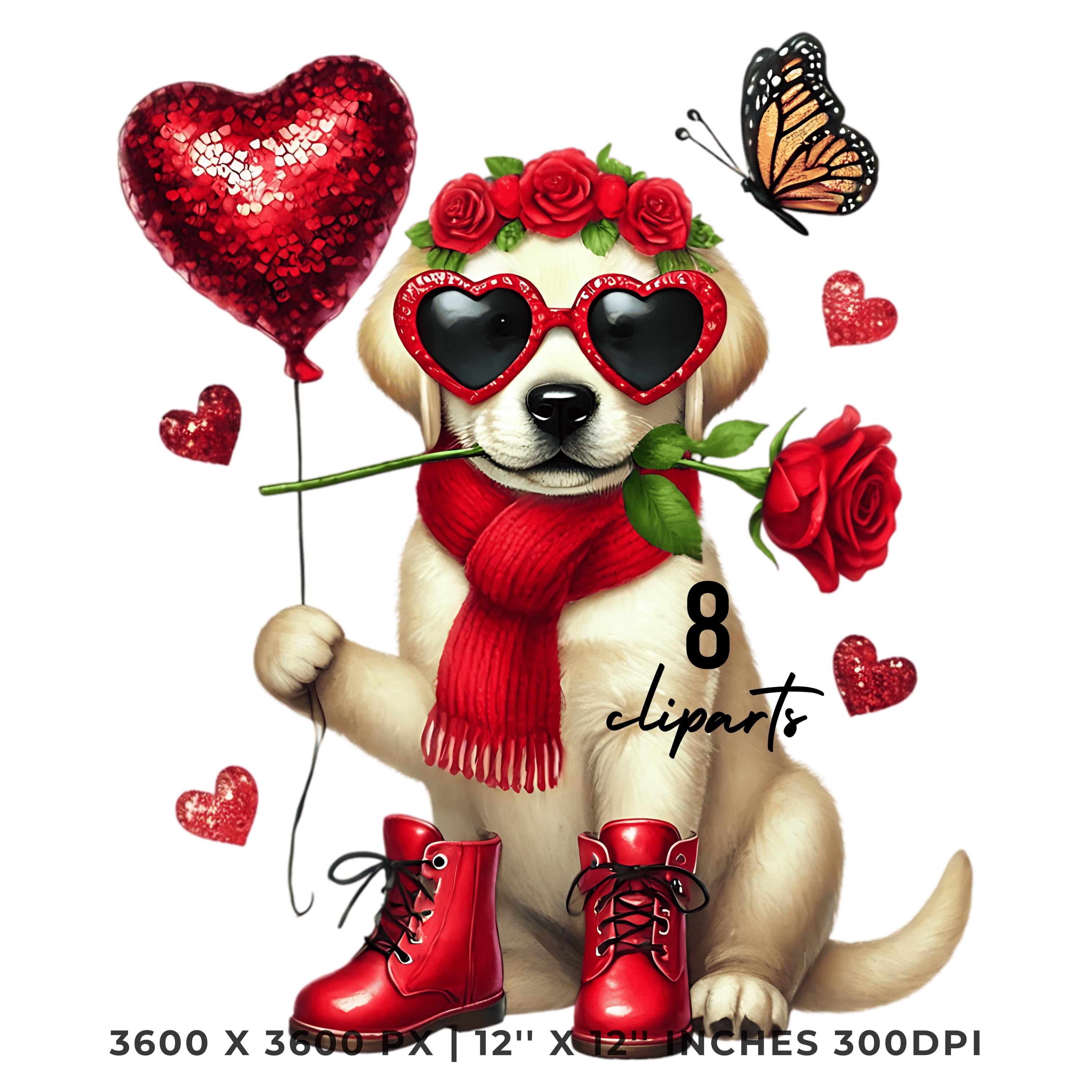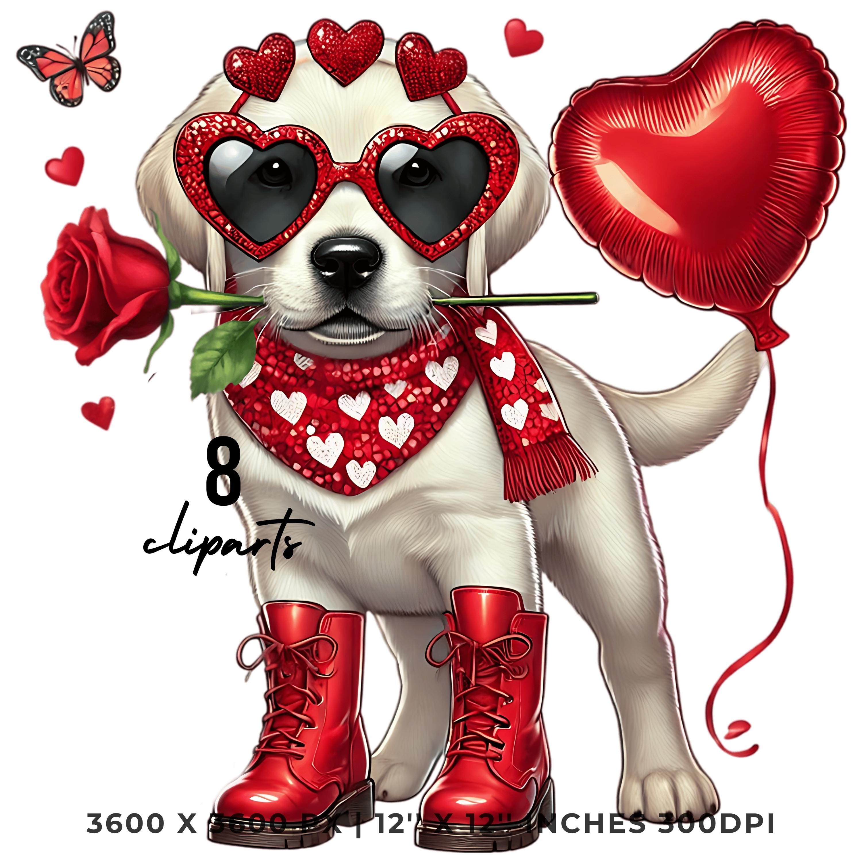 8 Cute Valentine Labrador Puppy Dog Clip Art PNG for Labrador Dog Lover | Quirky Whimsical Labrador Sublimation Scrapbooking Commercial Use is an eye-catching, high-resolution digital asset designed for creators, crafters, teachers, and small business owners looking to elevate their visuals.