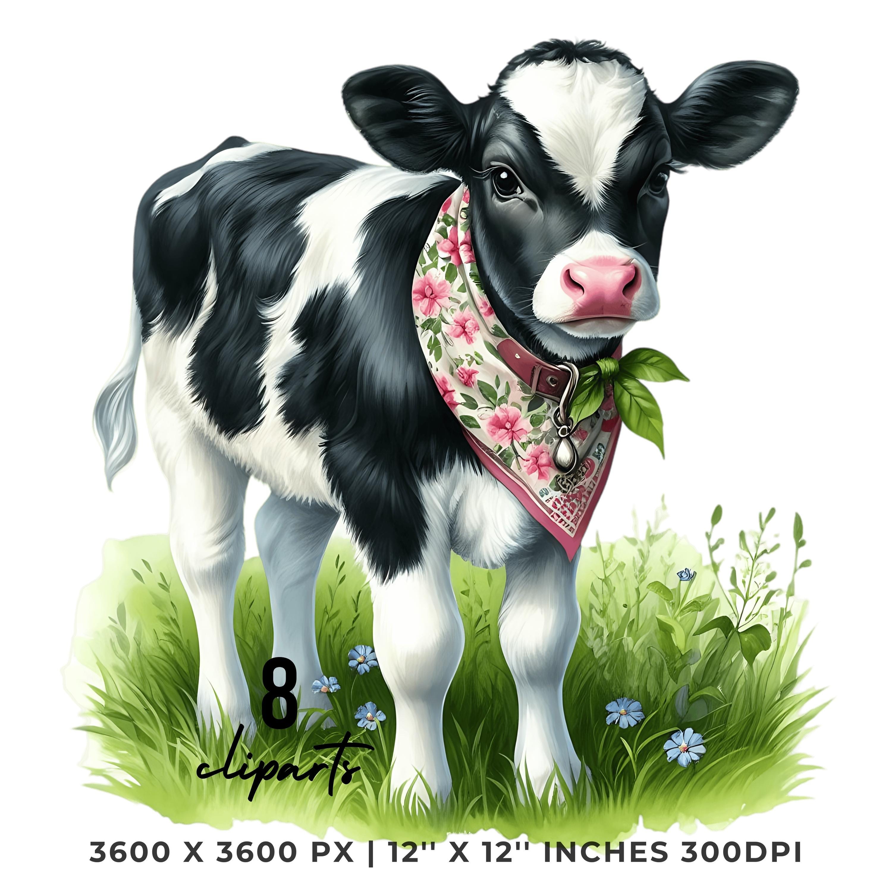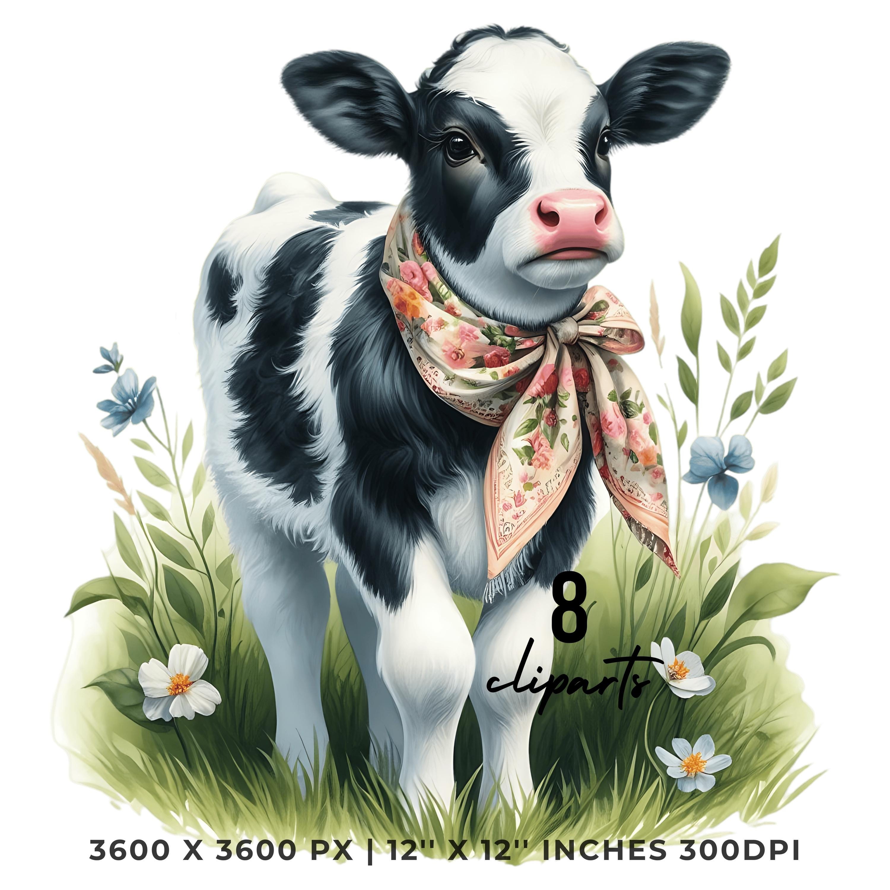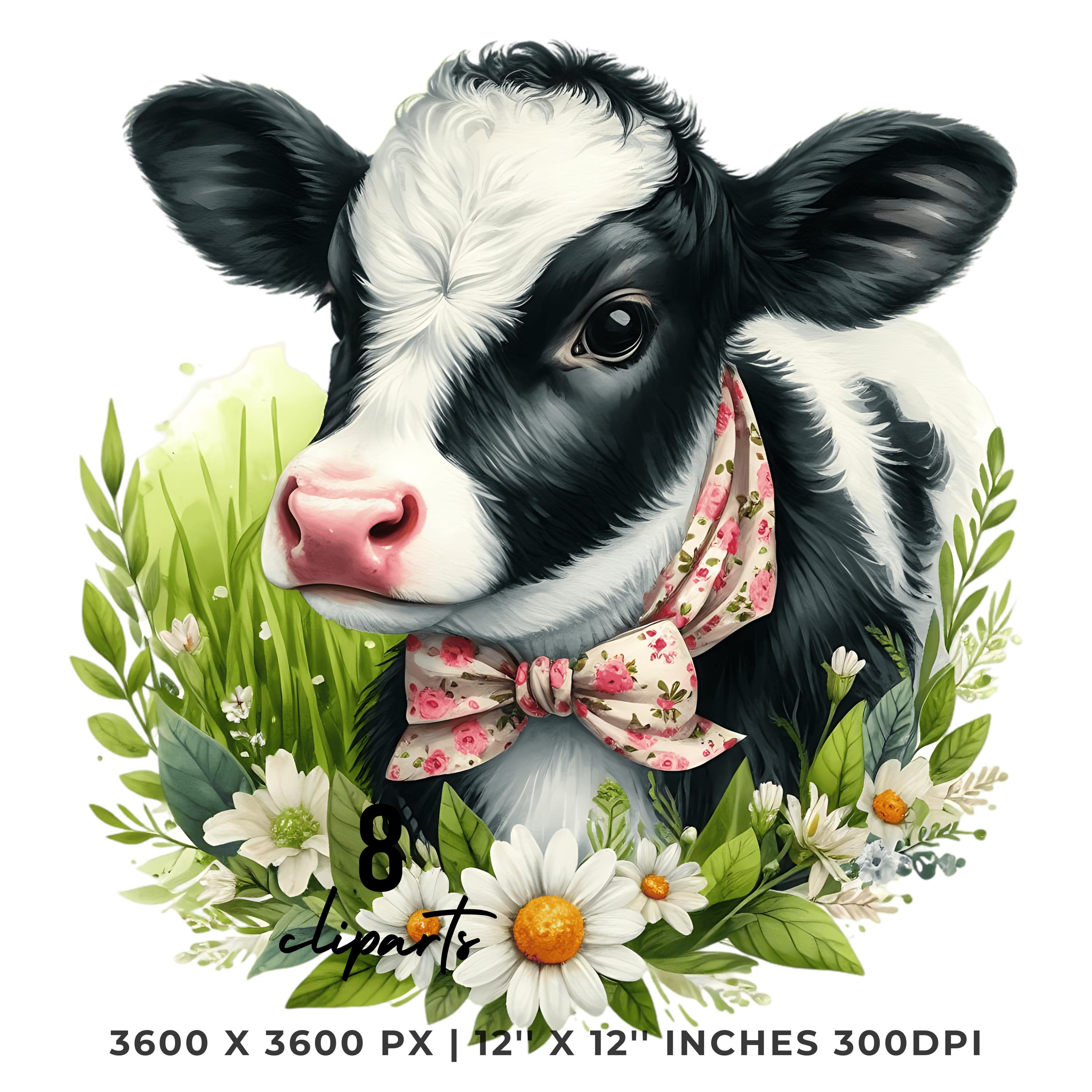 8 Spring Dairy Black & White Calf PNG Clipart, Watercolor Cow, Farm Animals, Card Making, Scrapbooking Junk, Sublimation Commercial Use is an eye-catching, high-resolution digital asset designed for creators, crafters, teachers, and small business owners looking to elevate their visuals.