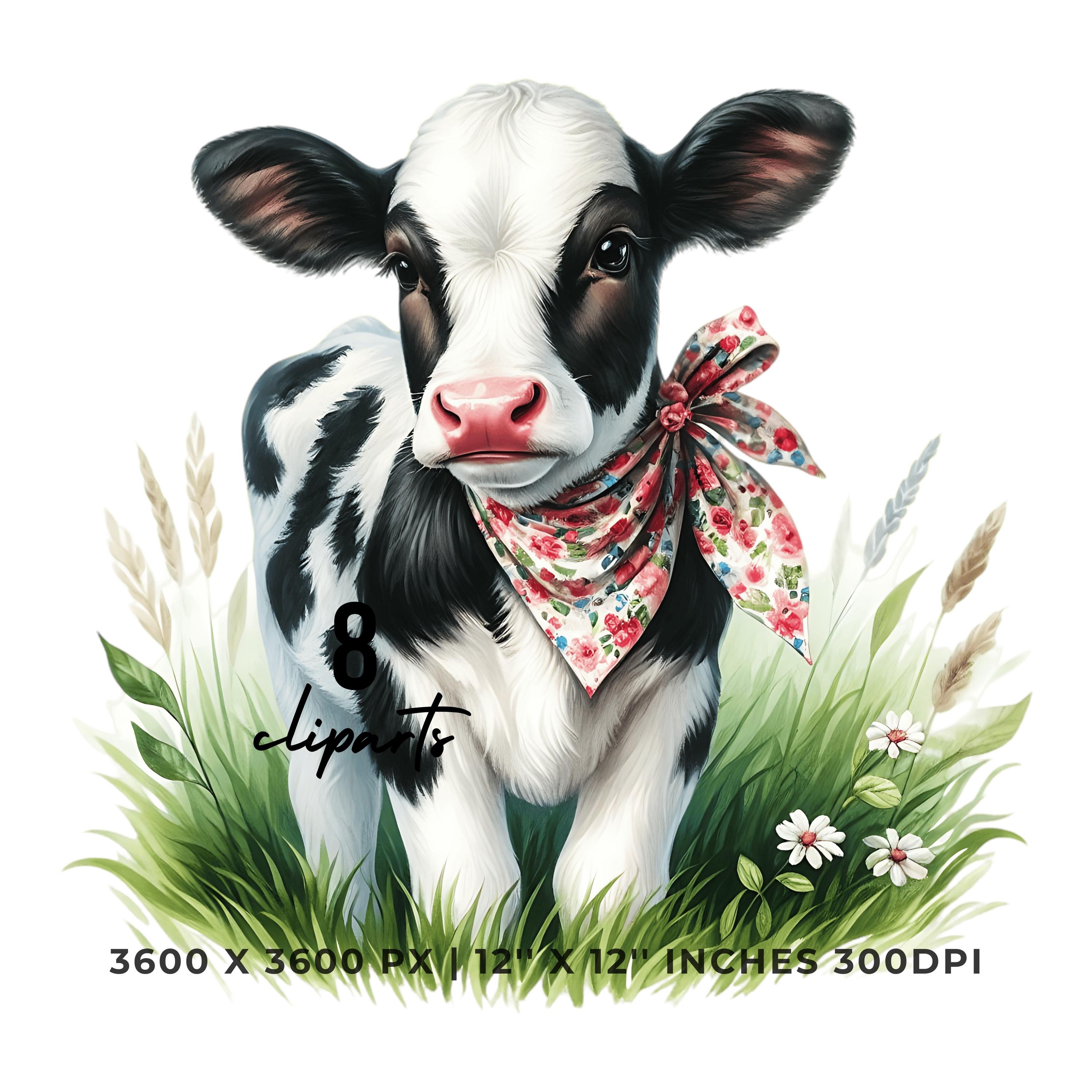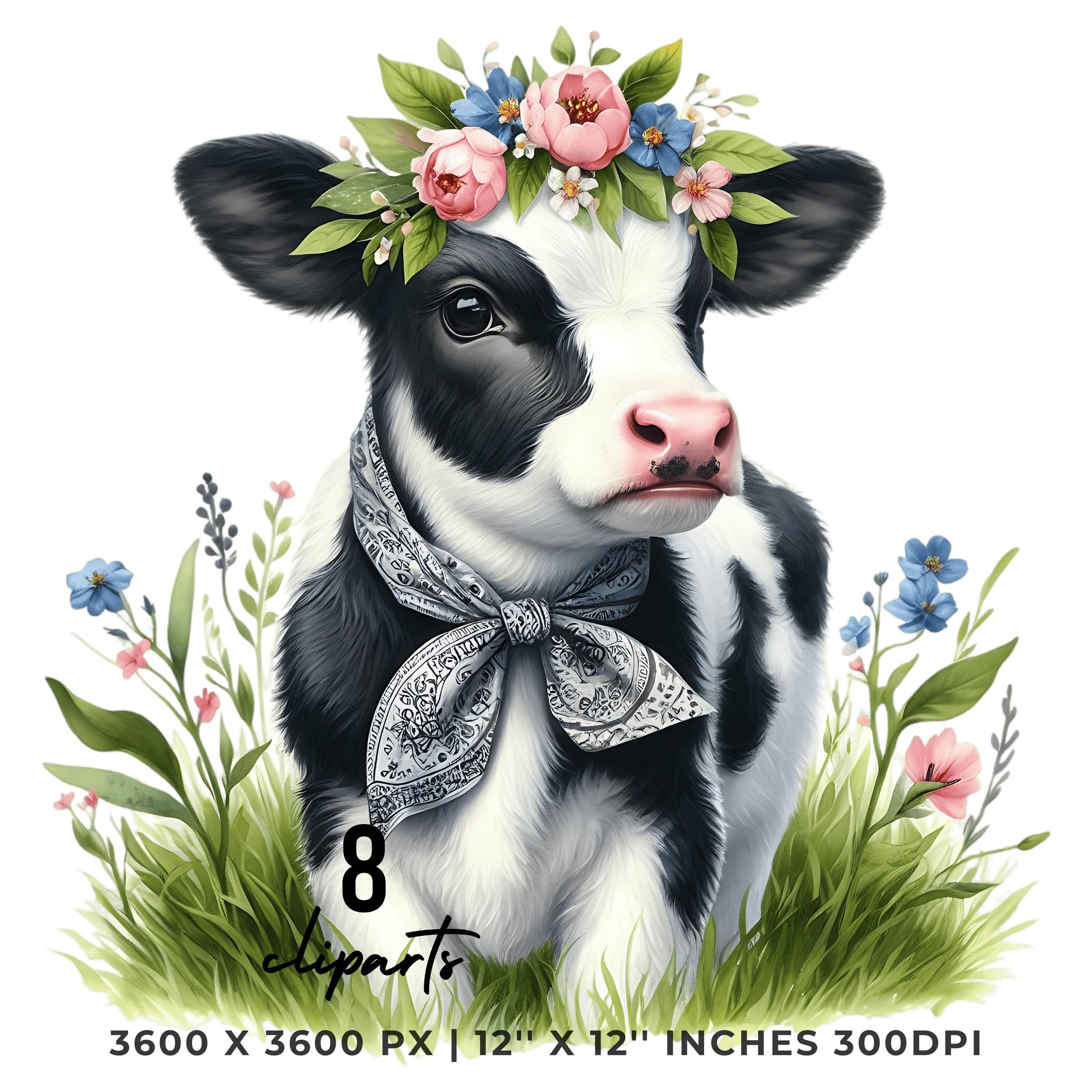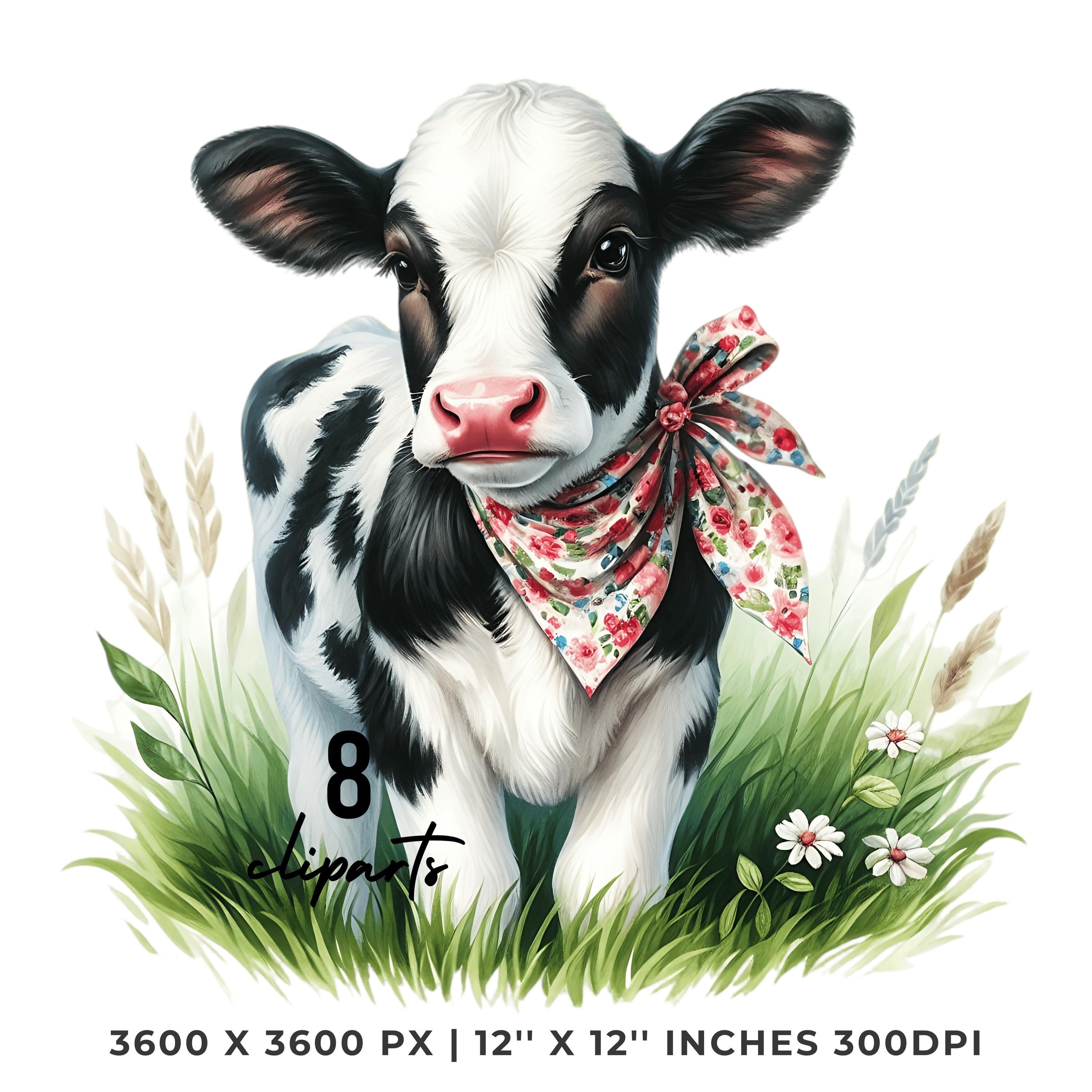 8 Spring Dairy Black & White Calf PNG Clipart, Watercolor Cow, Farm Animals, Card Making, Scrapbooking Junk, Sublimation Commercial Use is an eye-catching, high-resolution digital asset designed for creators, crafters, teachers, and small business owners looking to elevate their visuals.
