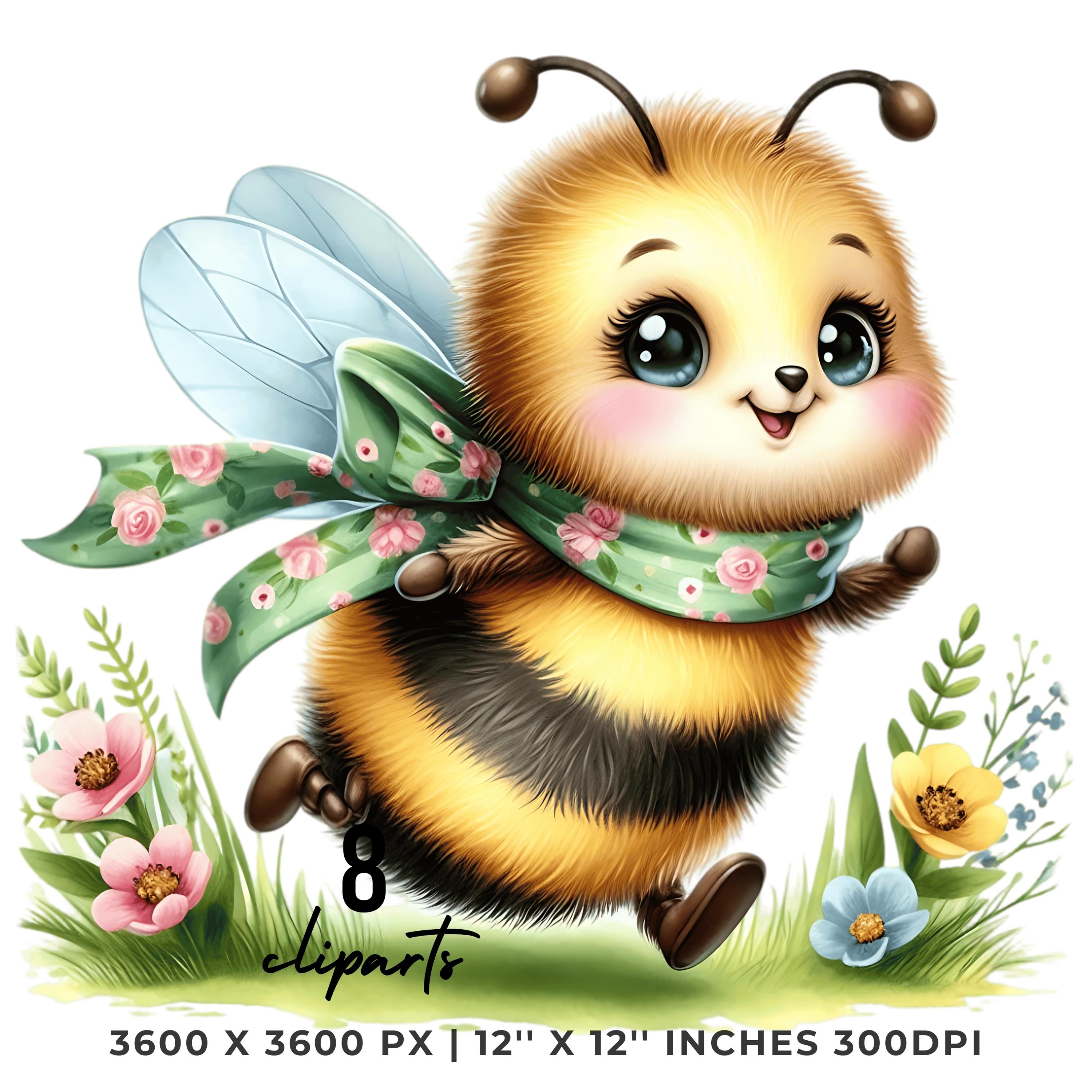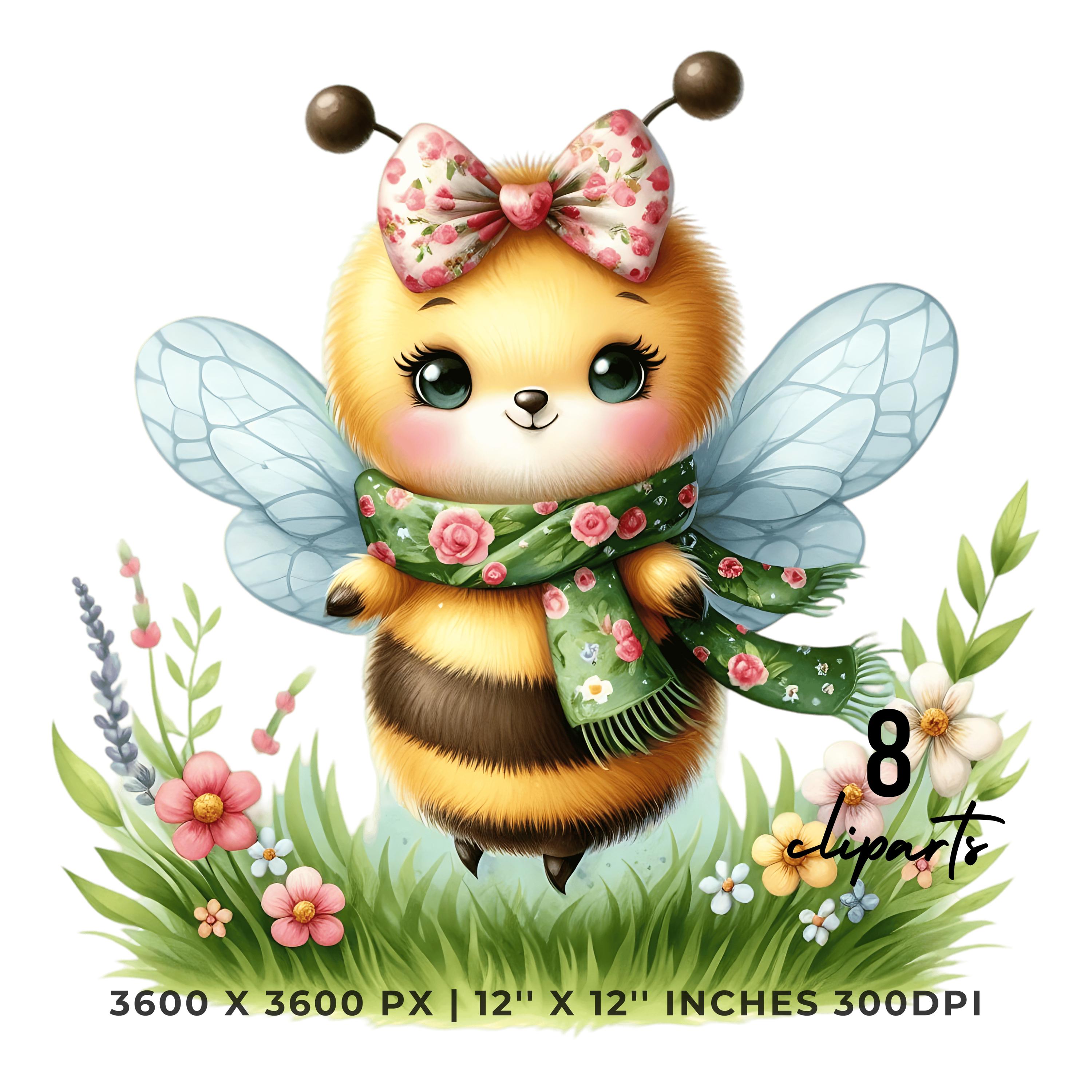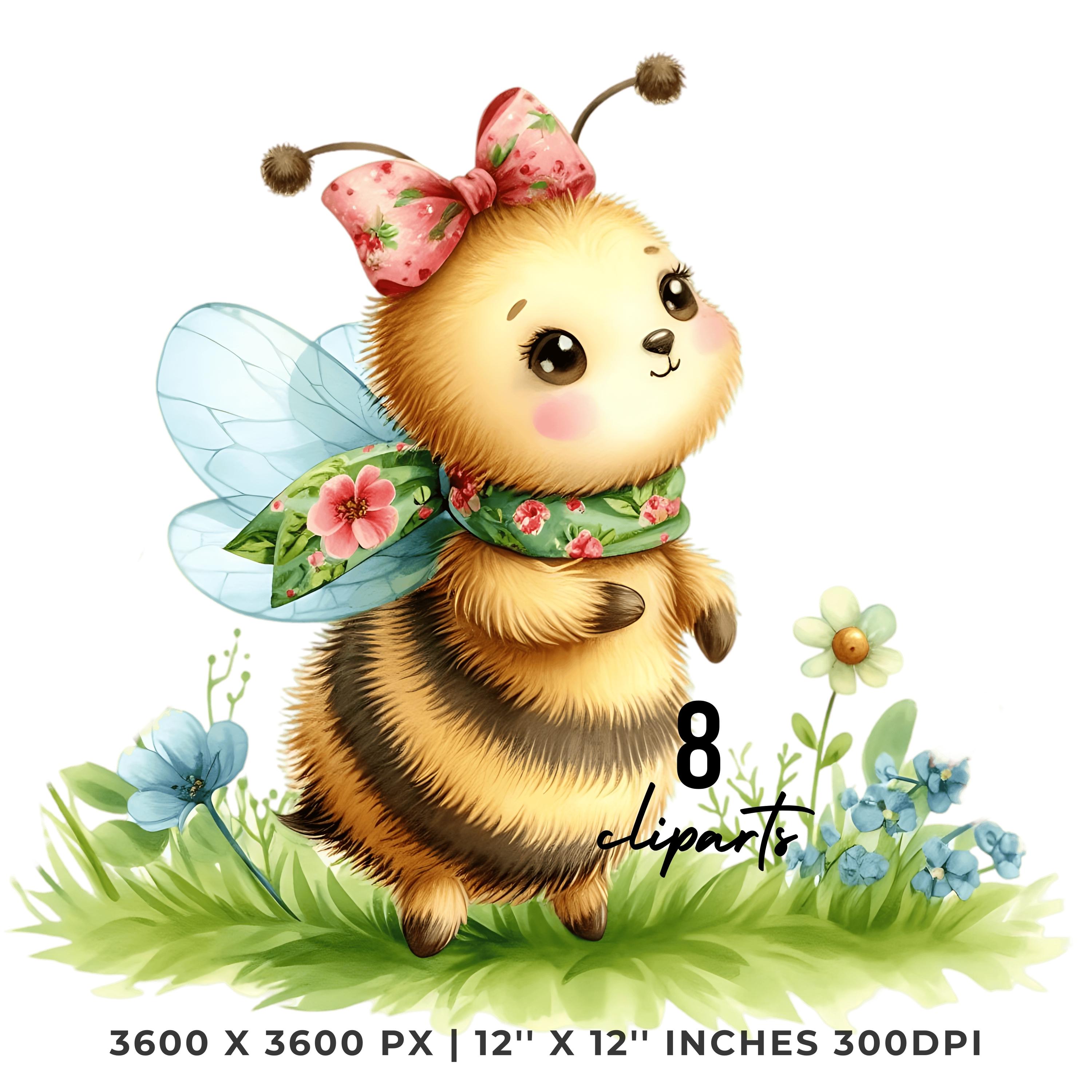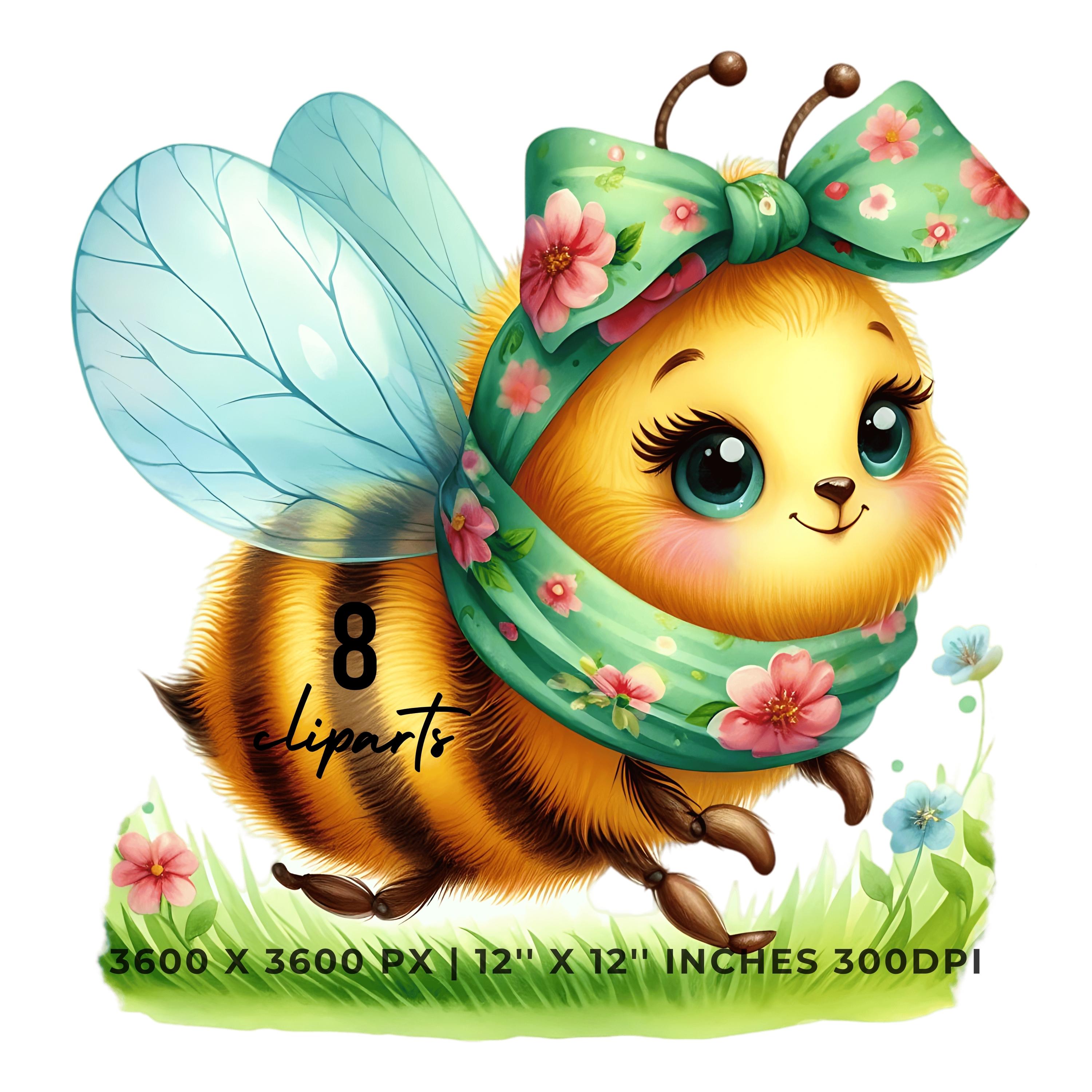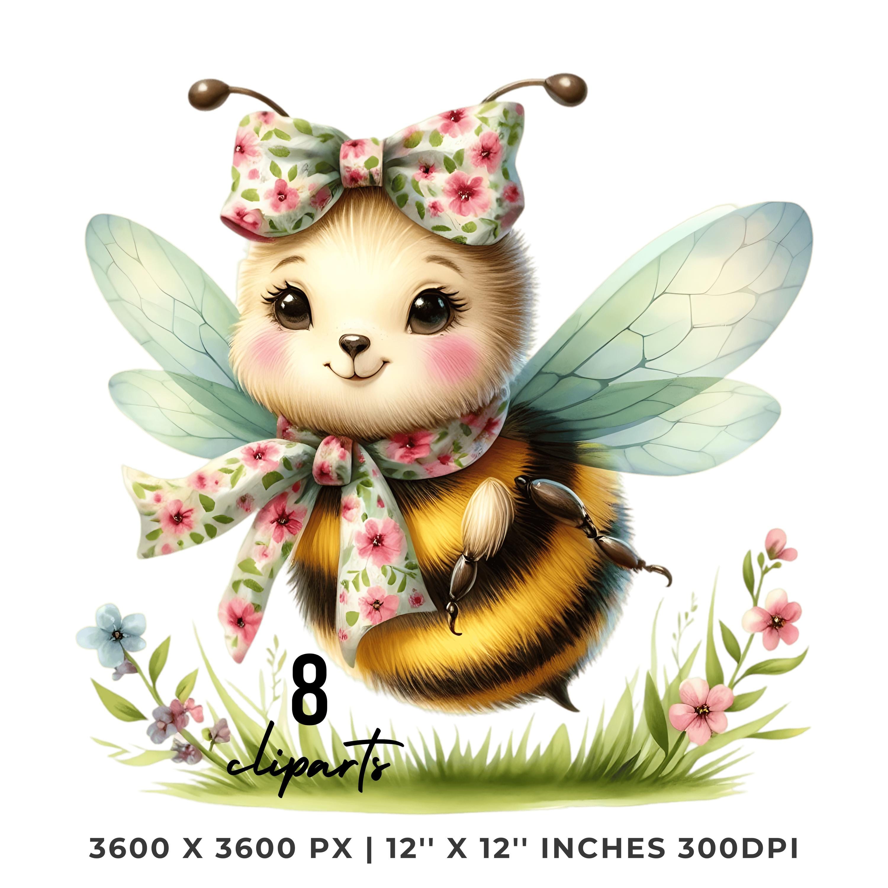8 Spring Little Bee PNG Clipart, Watercolor Bee, Wild Life Animal, Card Making, Scrapbooking, Junk Journaling, Sublimation, Commercial Use is an eye-catching, high-resolution digital asset designed for creators, crafters, teachers, and small business owners looking to elevate their visuals.