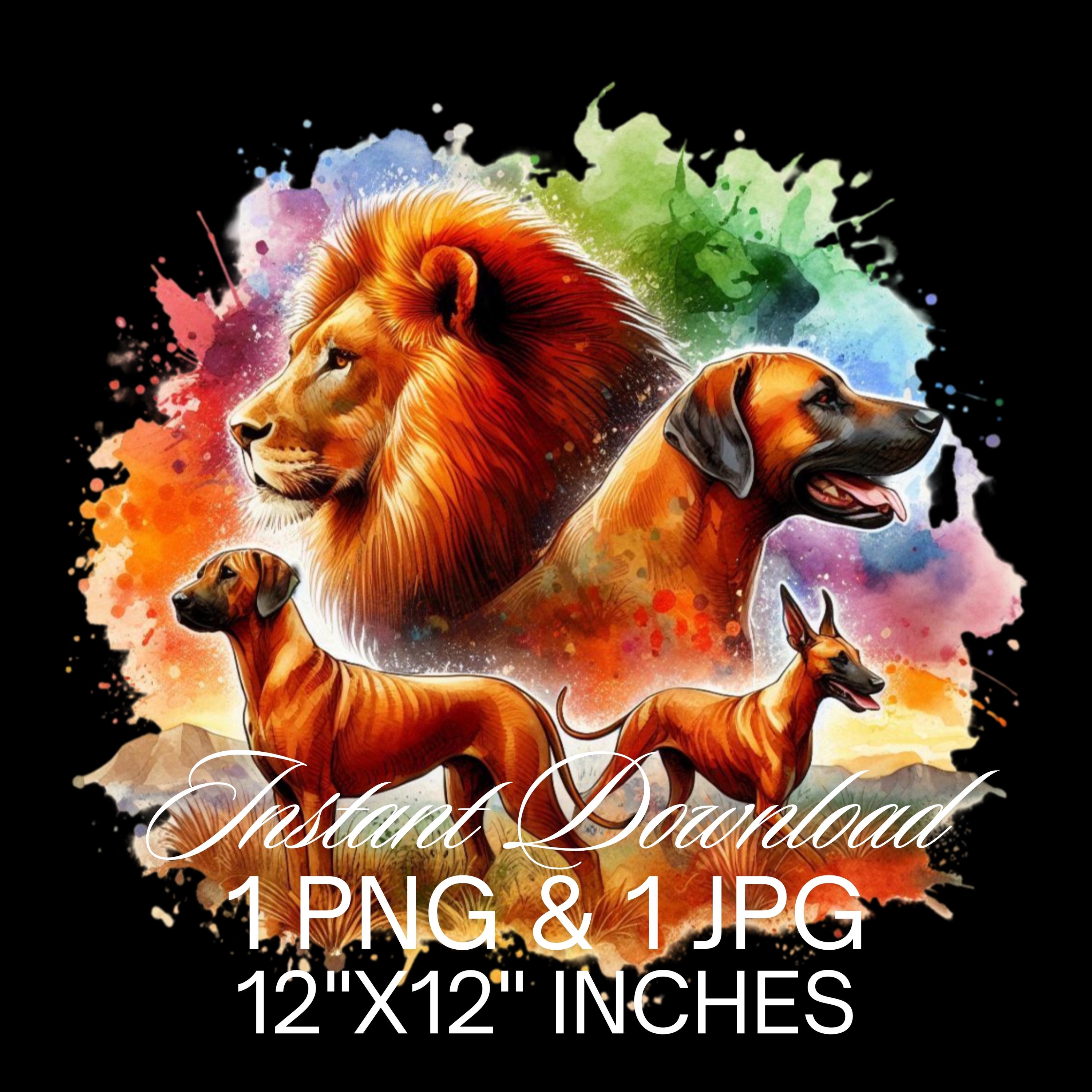 African Lion, Wild Dogs, and Rhodesian Ridgeback Dog PNG Sublimation | African Savanna | Jungle Clipart | Digital Download | Commercial Use