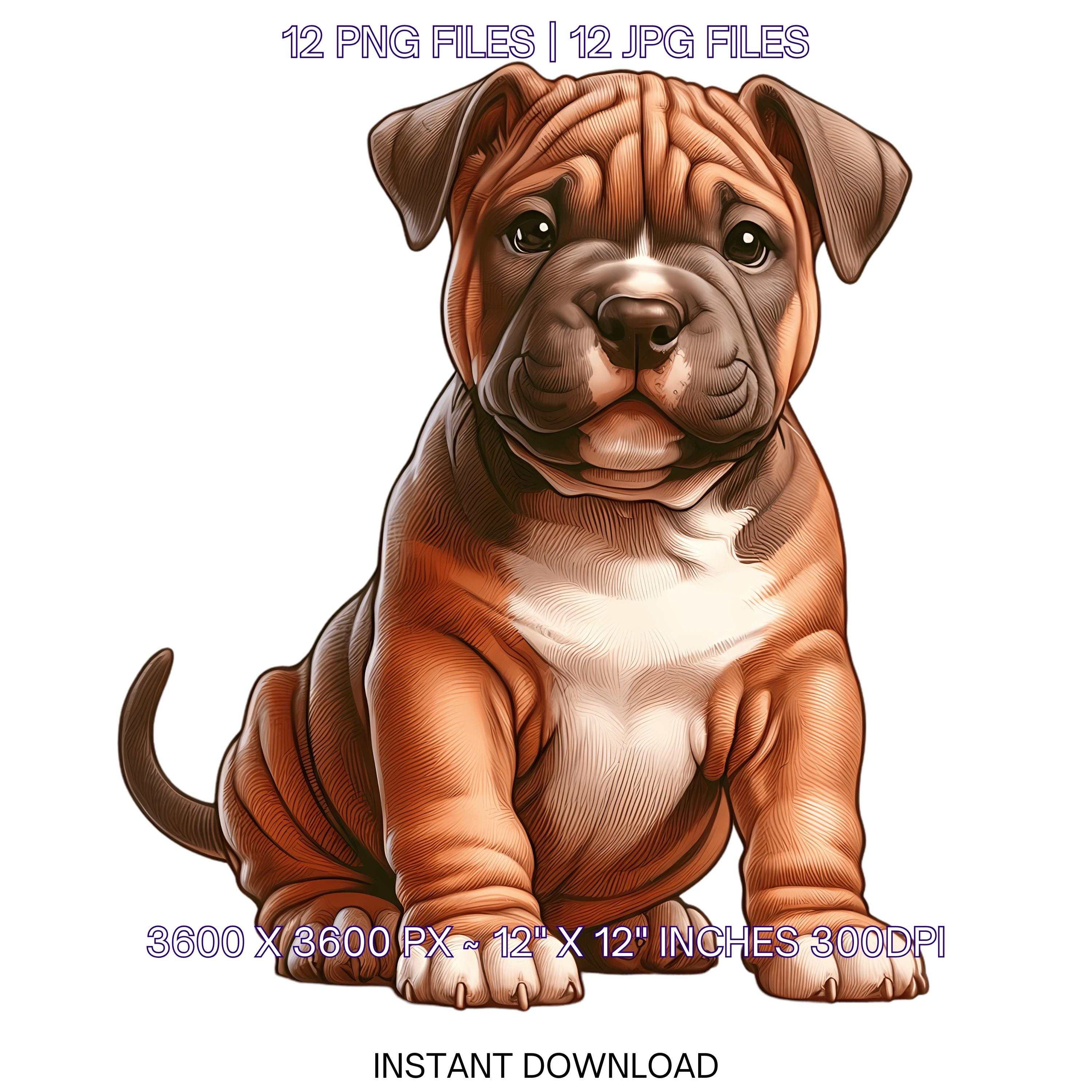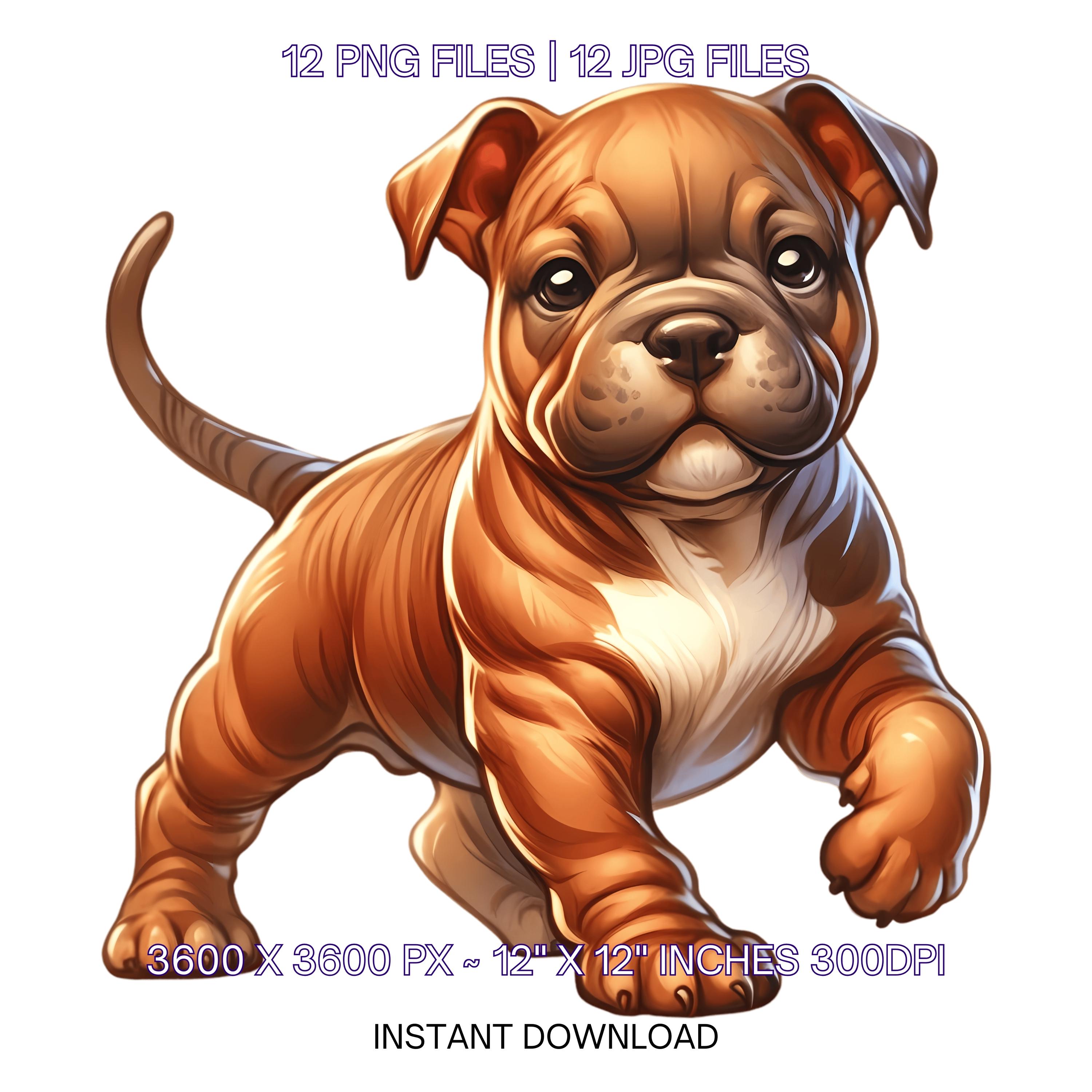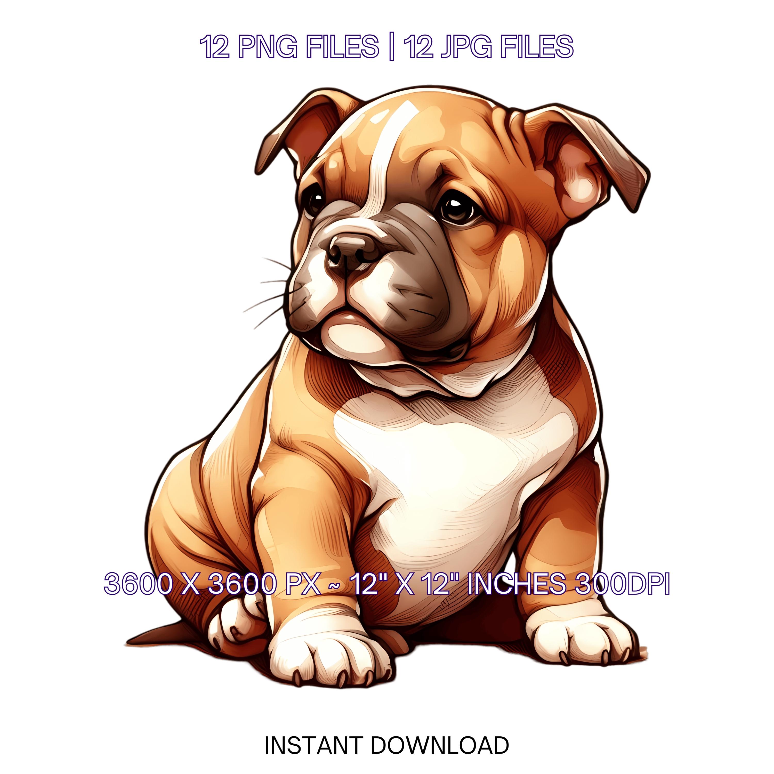 American Bully Dog Clipart | 12 Watercolor American Bully Puppy Dog PNG for Card, Scrapbooking, Sublimation, Commercial Use is an eye-catching, high-resolution digital asset designed for creators, crafters, teachers, and small business owners looking to elevate their visuals.
