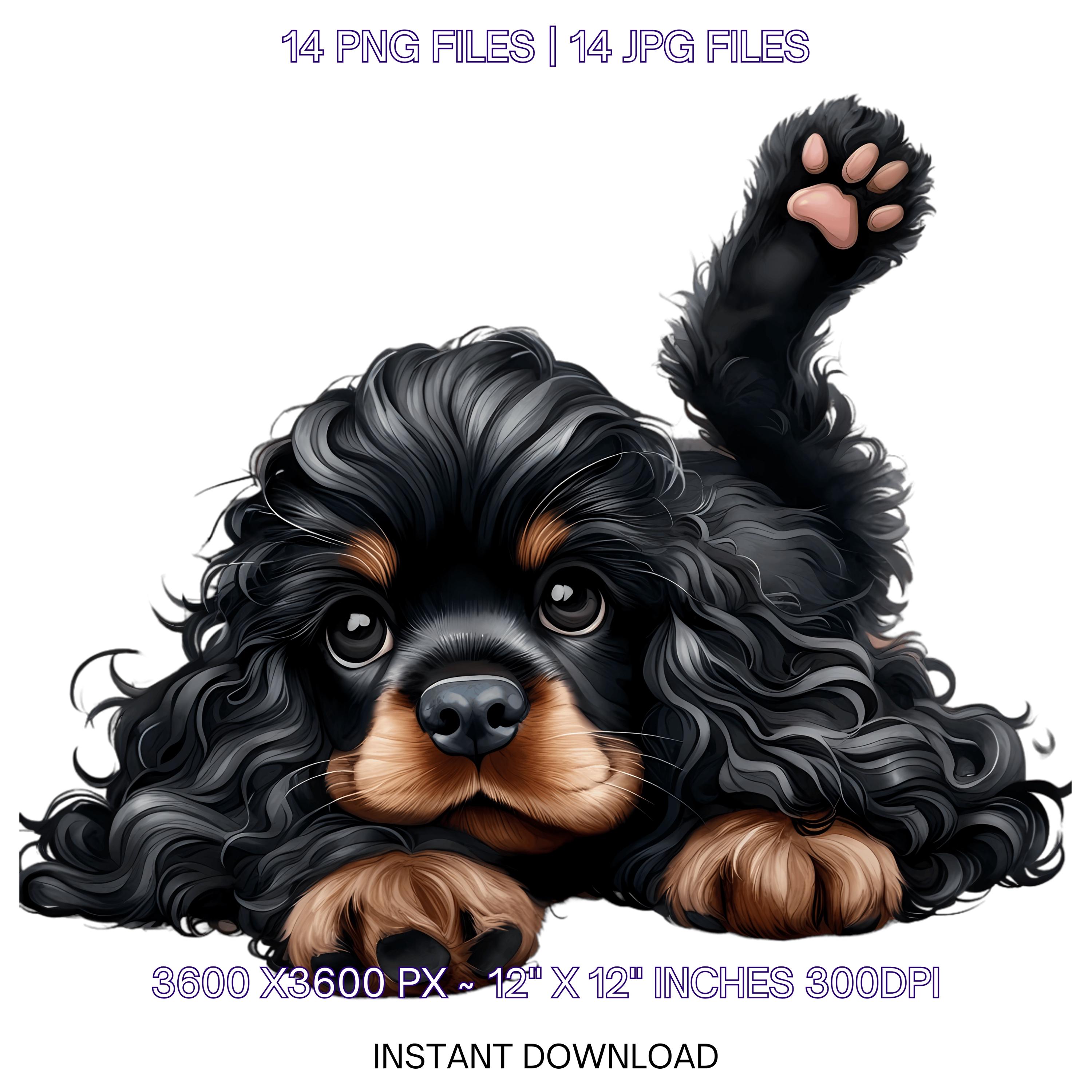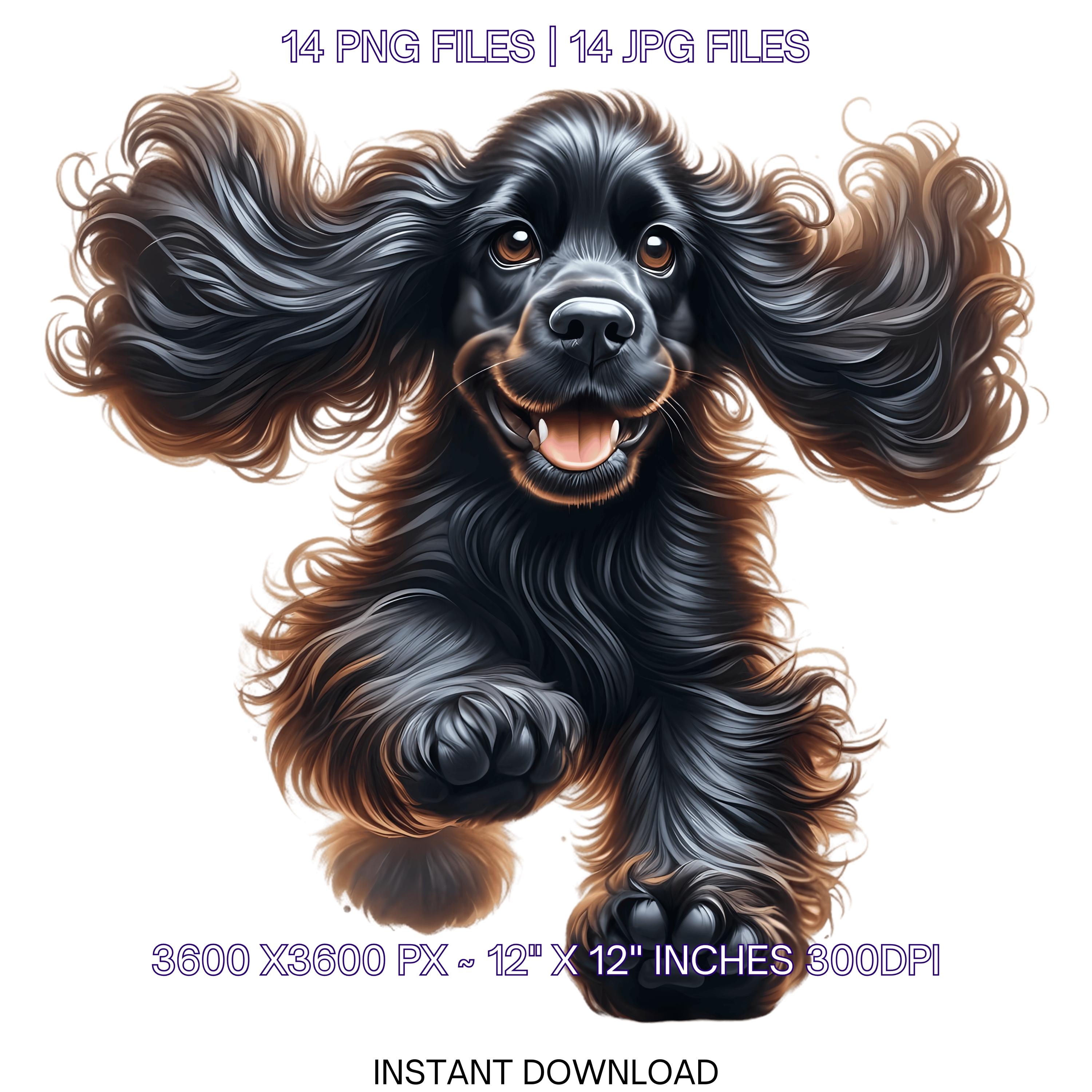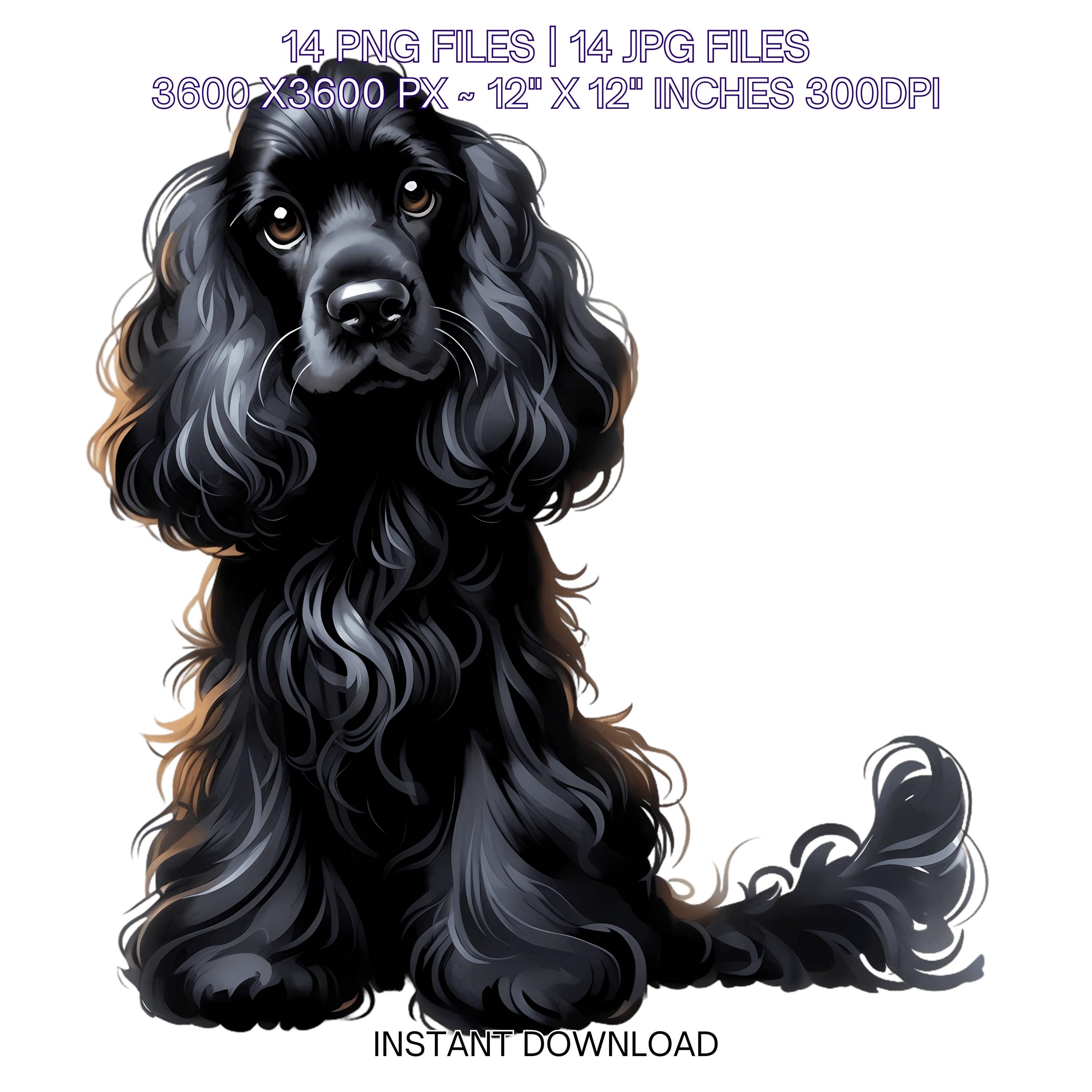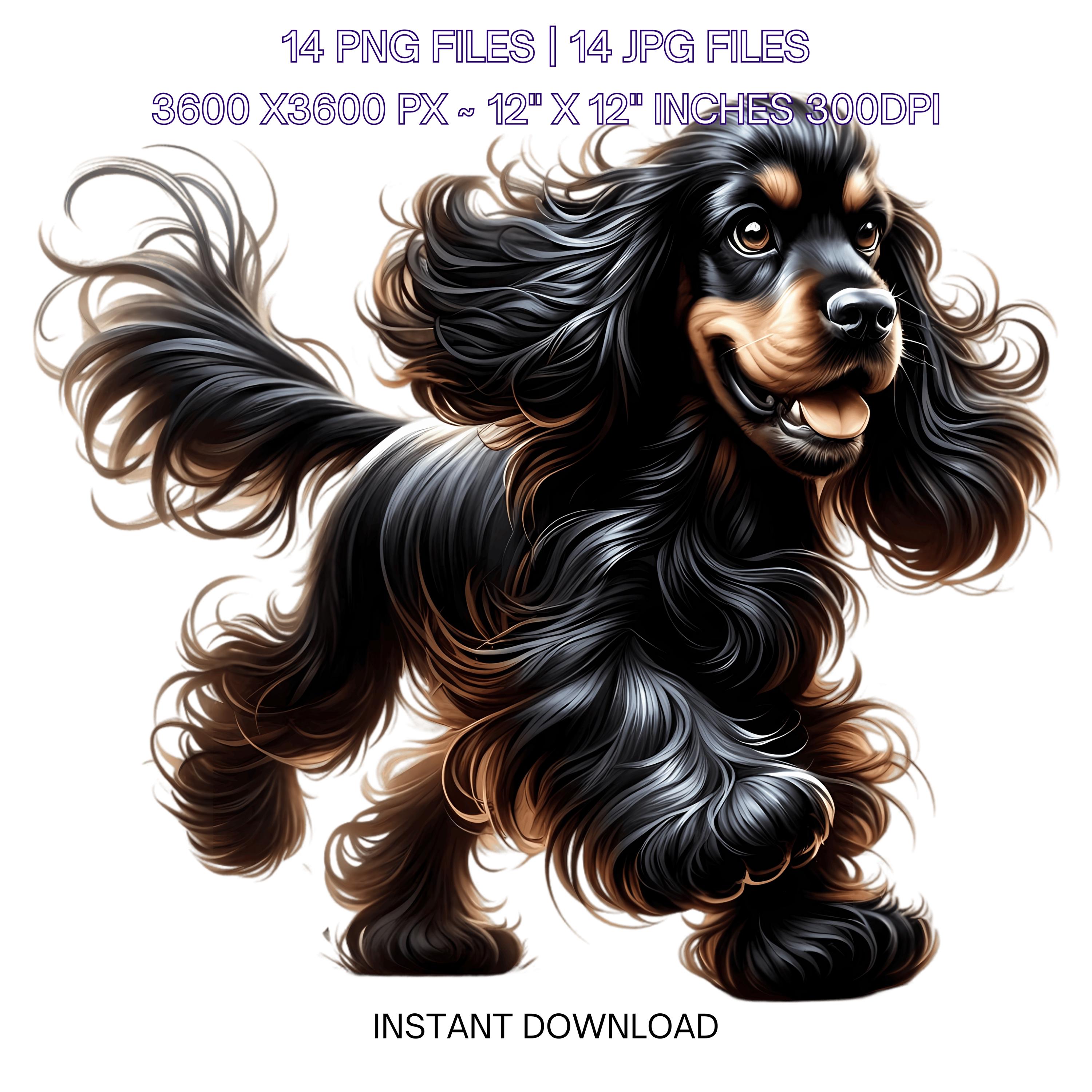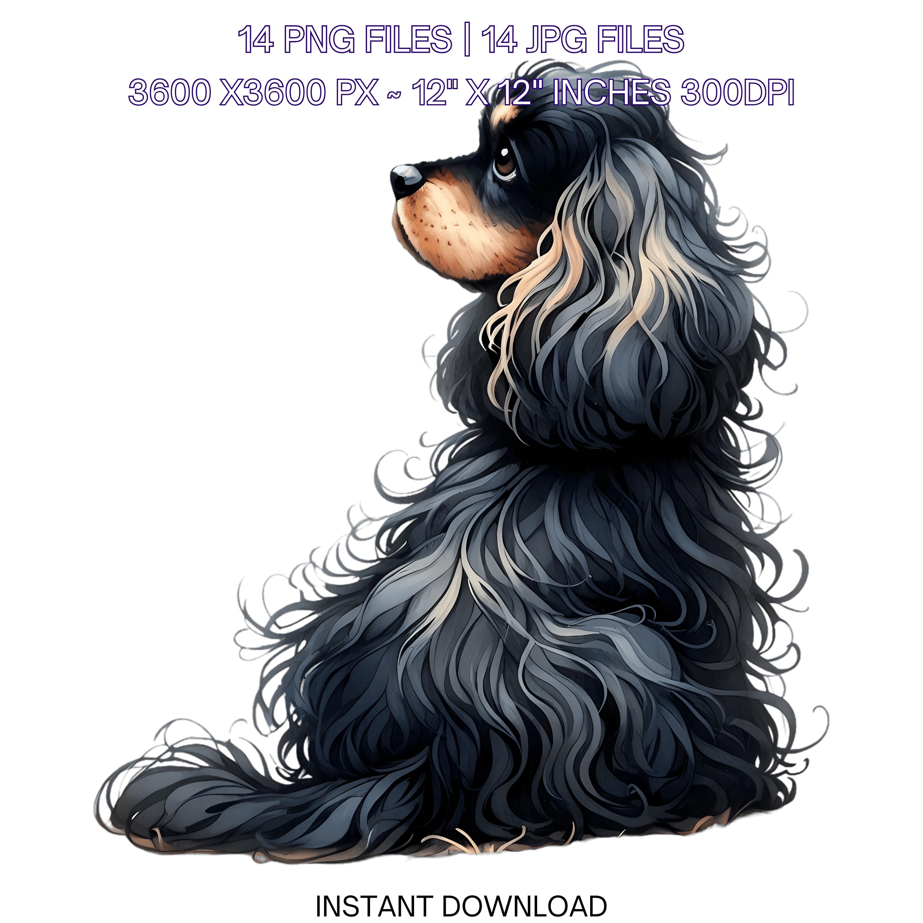 American Cocker Spaniel Clipart | 12 Watercolor American Cocker Spaniel Puppy Dog PNG for Card, Scrapbooking, Sublimation, Commercial Use is an eye-catching, high-resolution digital asset designed for creators, crafters, teachers, and small business owners looking to elevate their visuals.