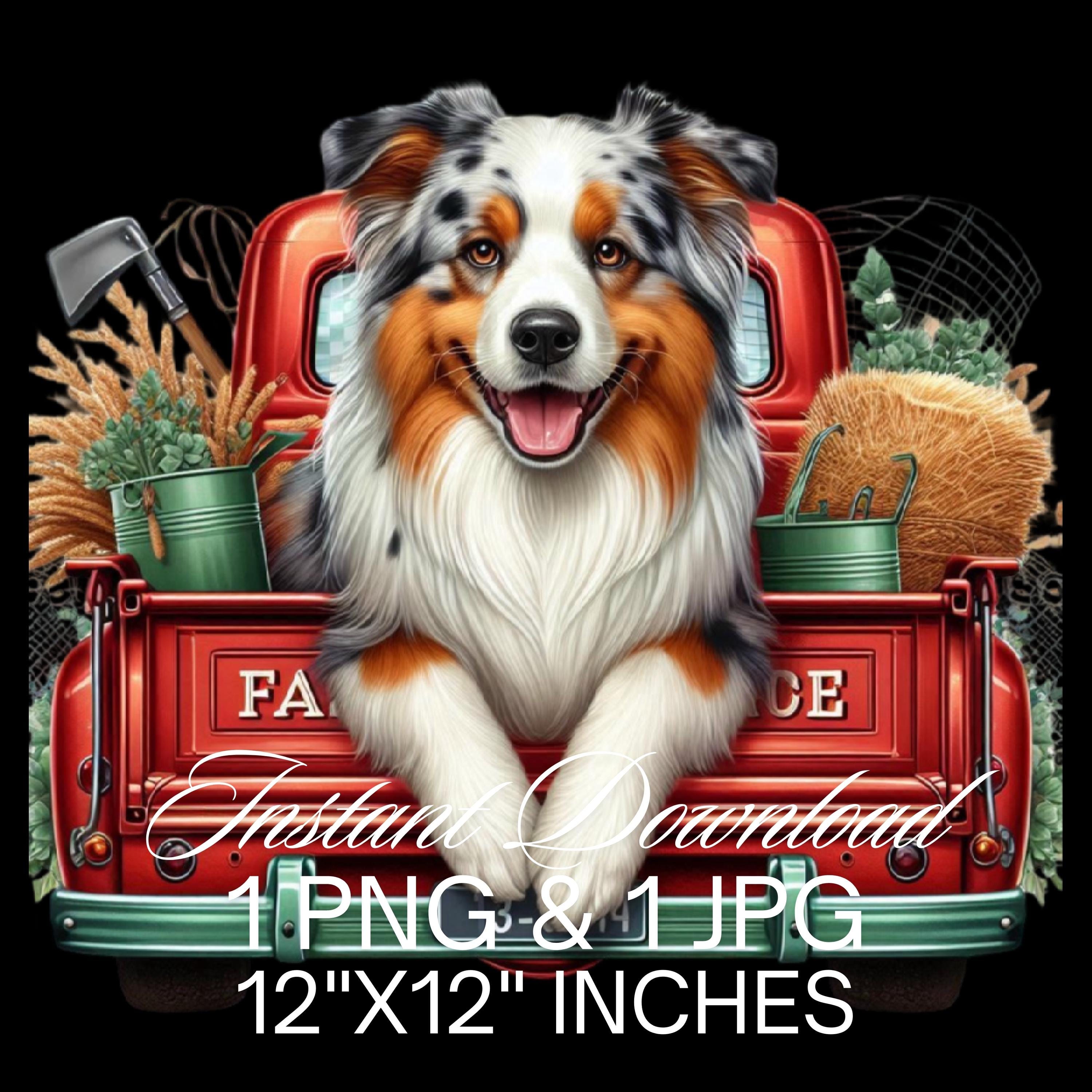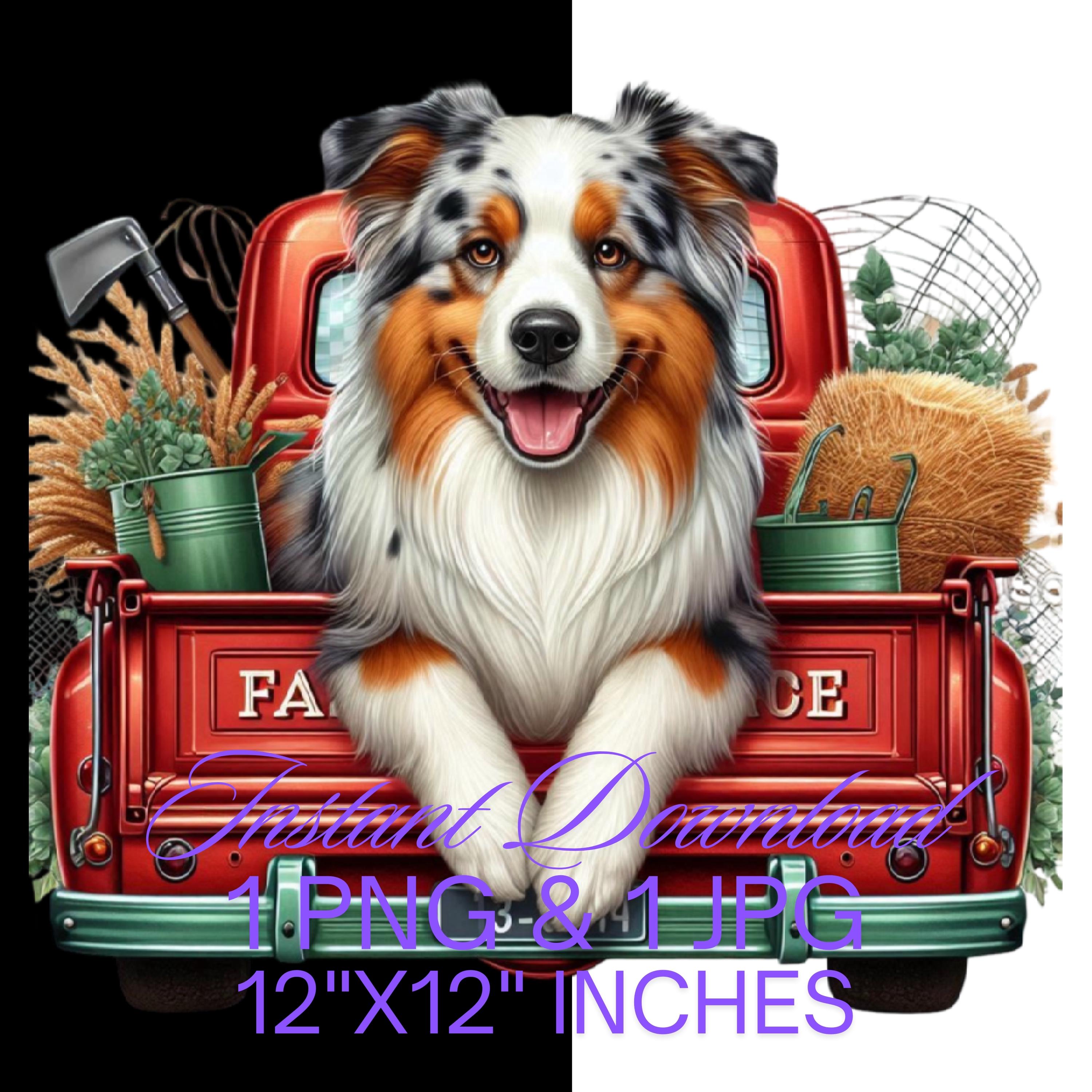 Australian Shepherd Dog Red Truck Sublimation | Cute Shepherd Dog in a Farm Truck PNG | Chores Dog Farm Sublimation PNG | Commercial Use – Instant Digital Download - TumblersGalaxy