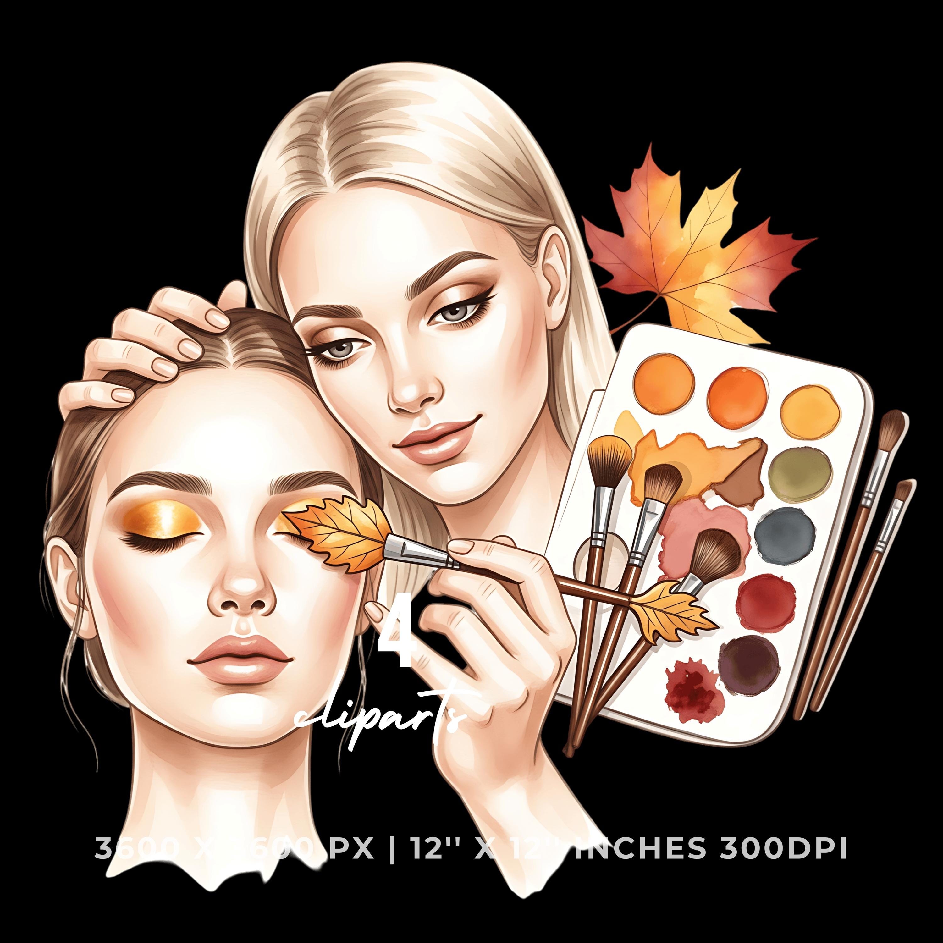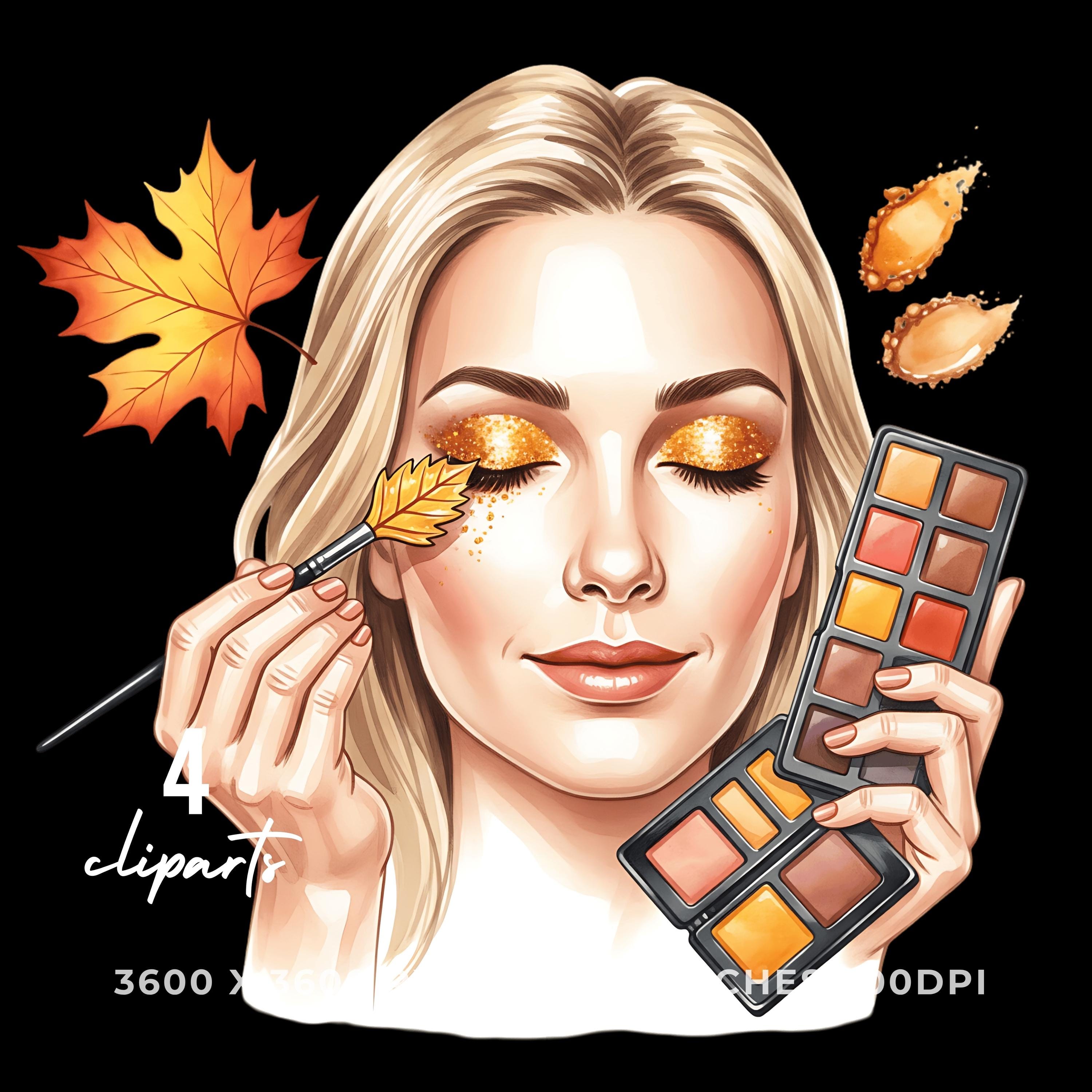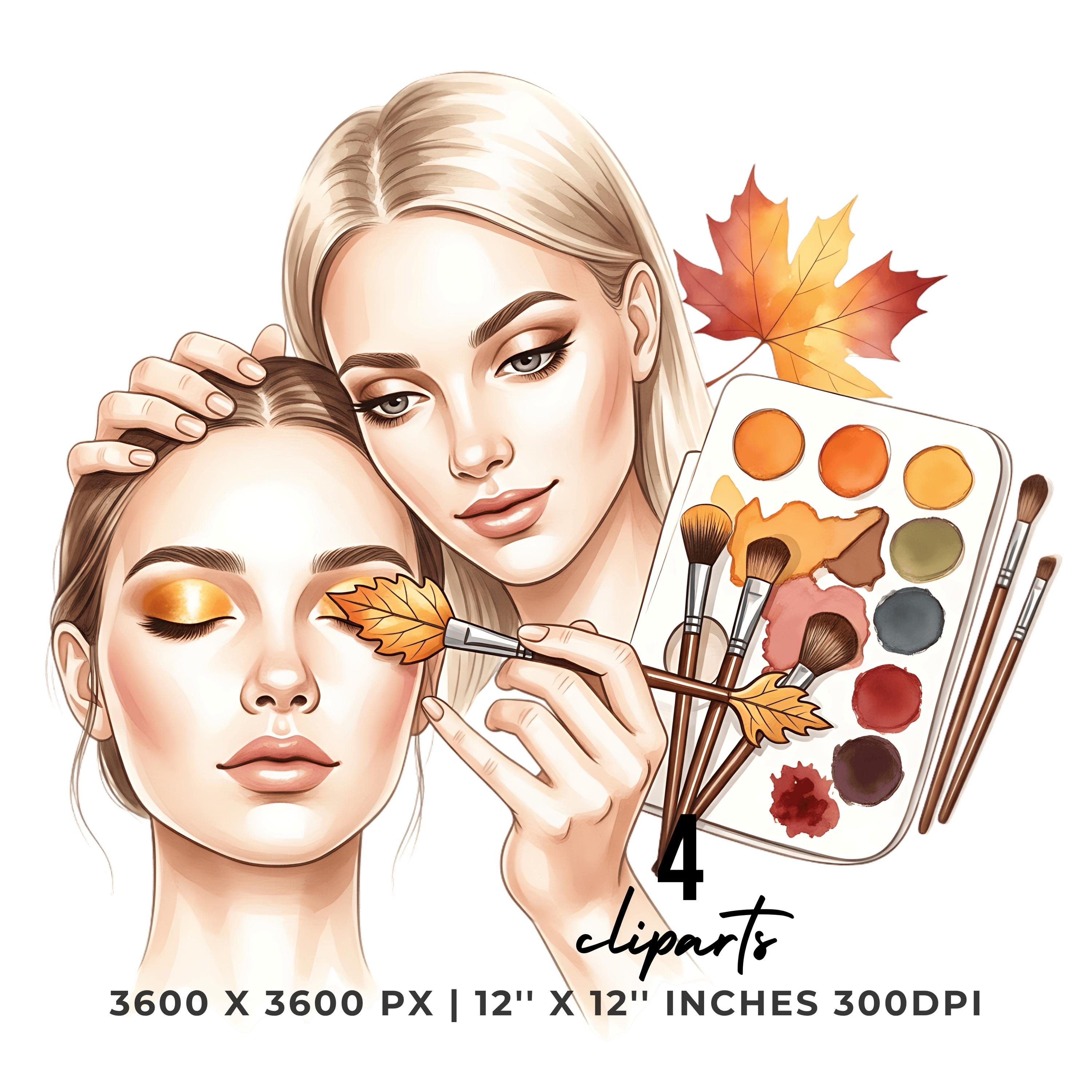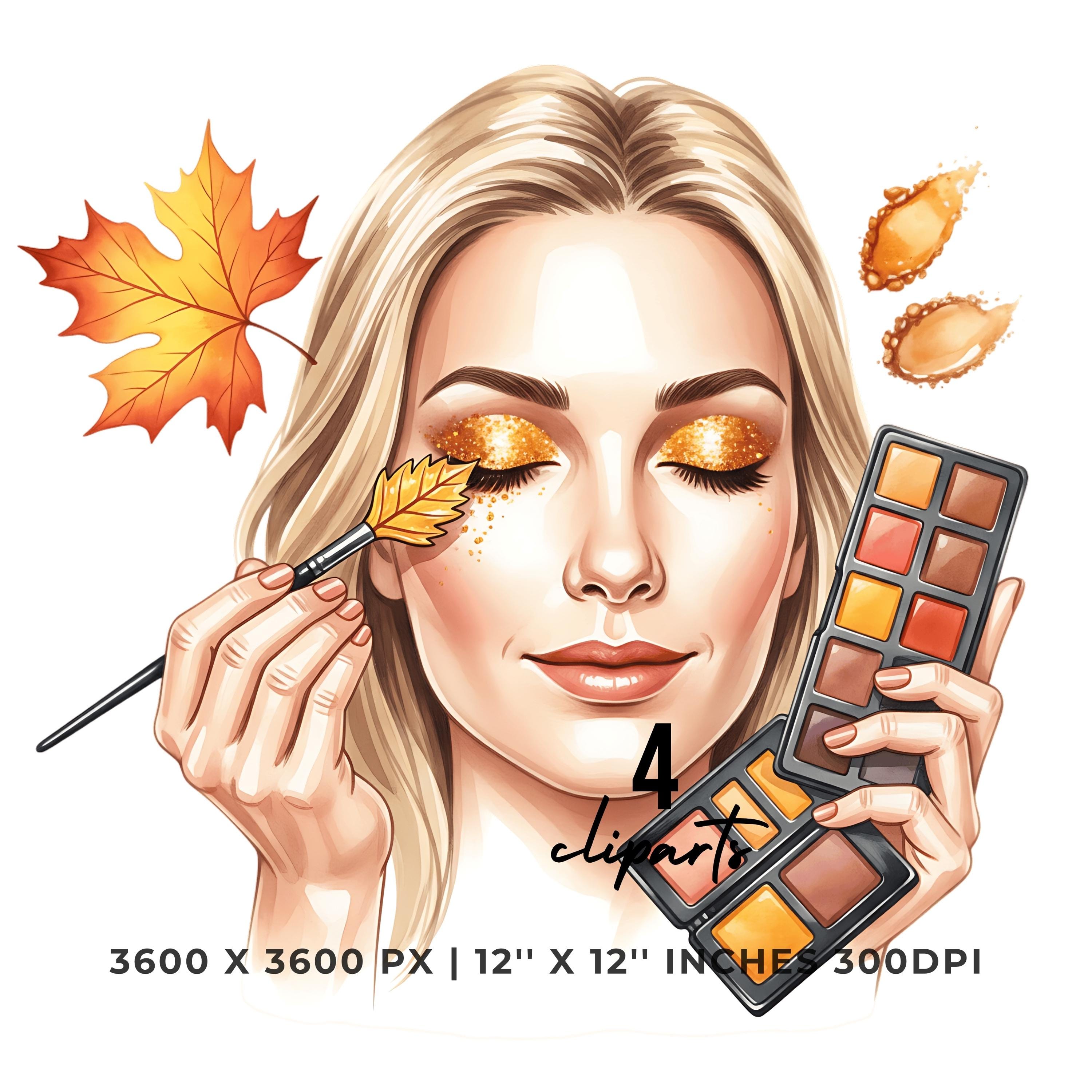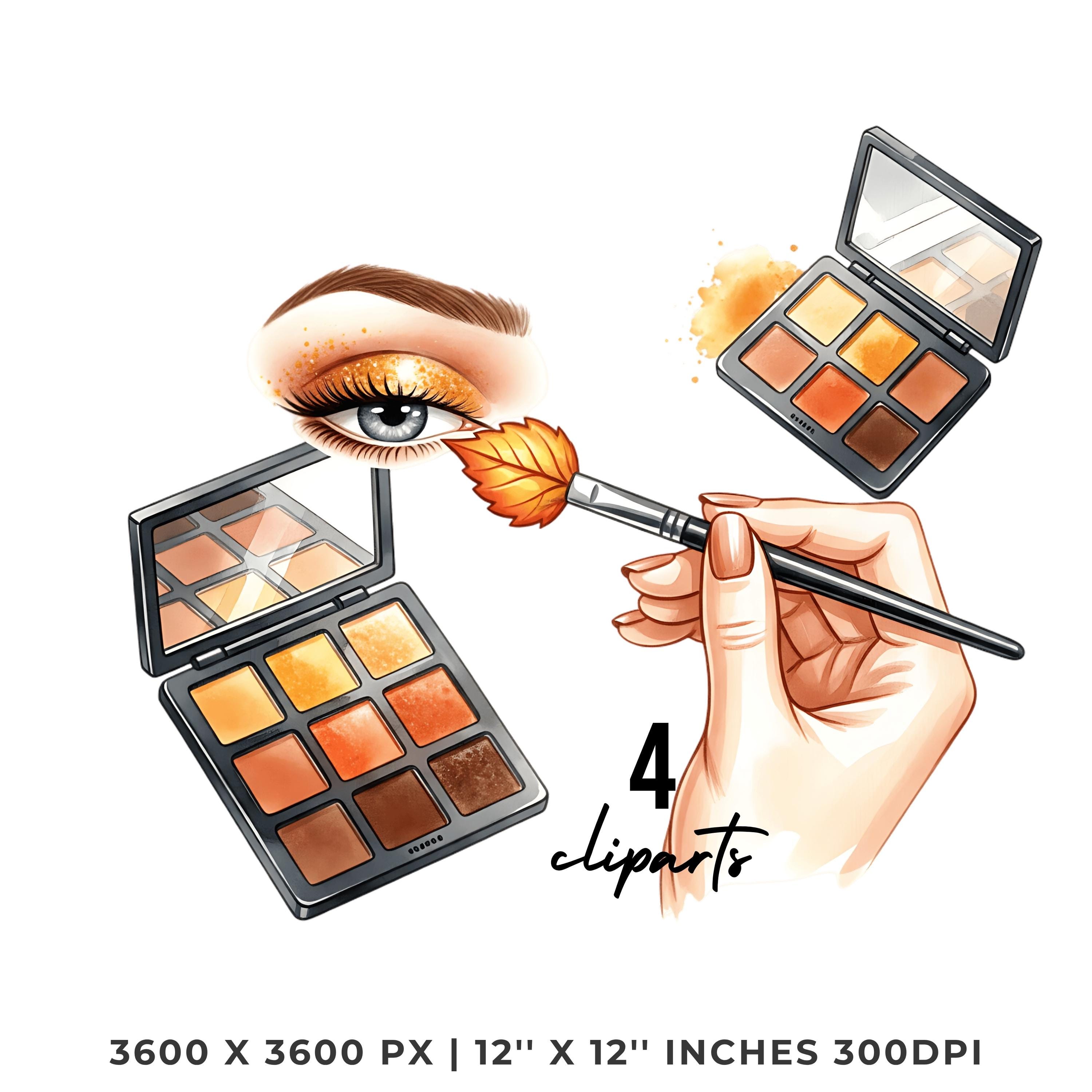 Autumn Makeup Artist Clipart | Fall Eyeshadow Palette | 4 PNG & 4 JPG | Sublimation Design | 12″x12″ 300DPI Commercial Use is an eye-catching, high-resolution digital asset designed for creators, crafters, teachers, and small business owners looking to elevate their visuals.