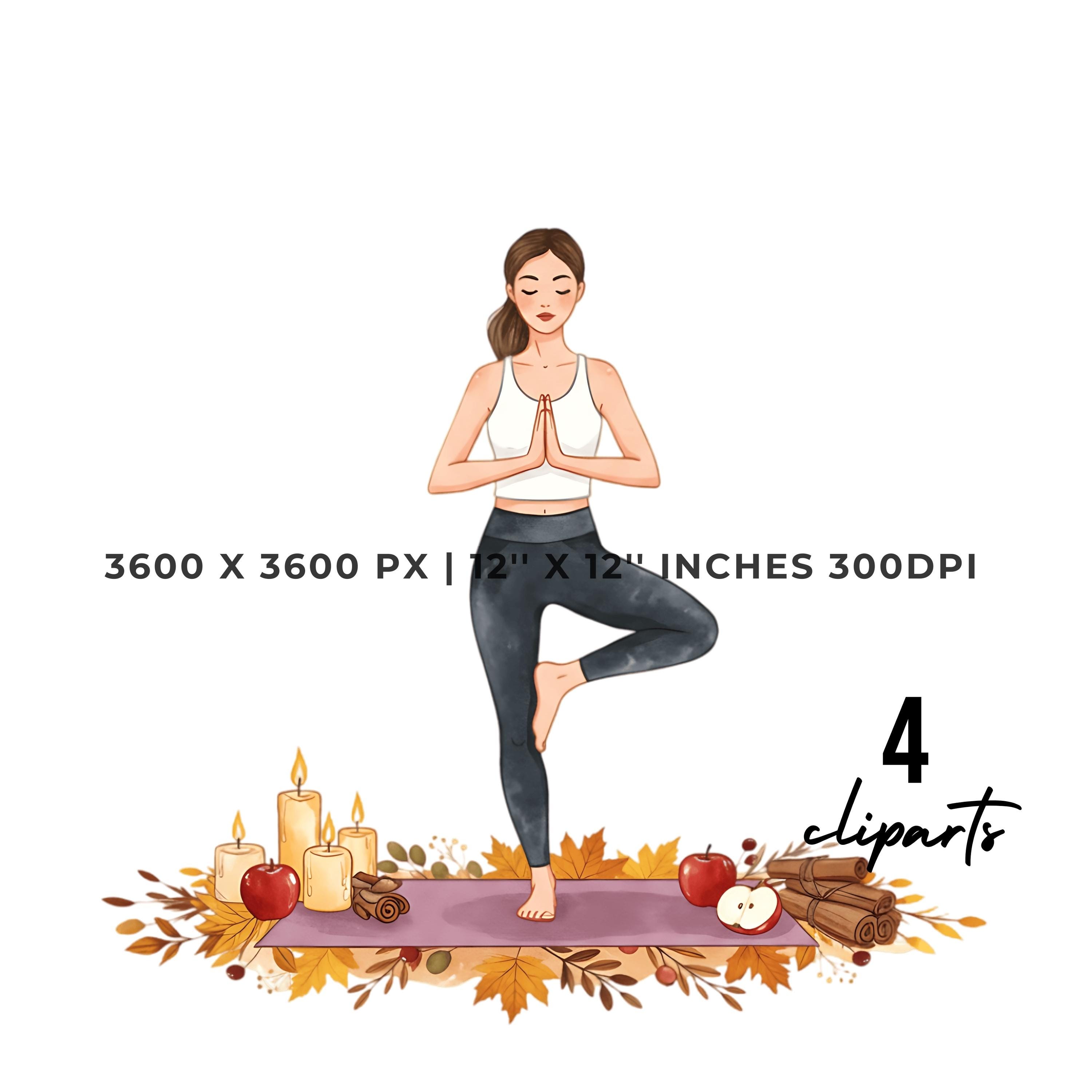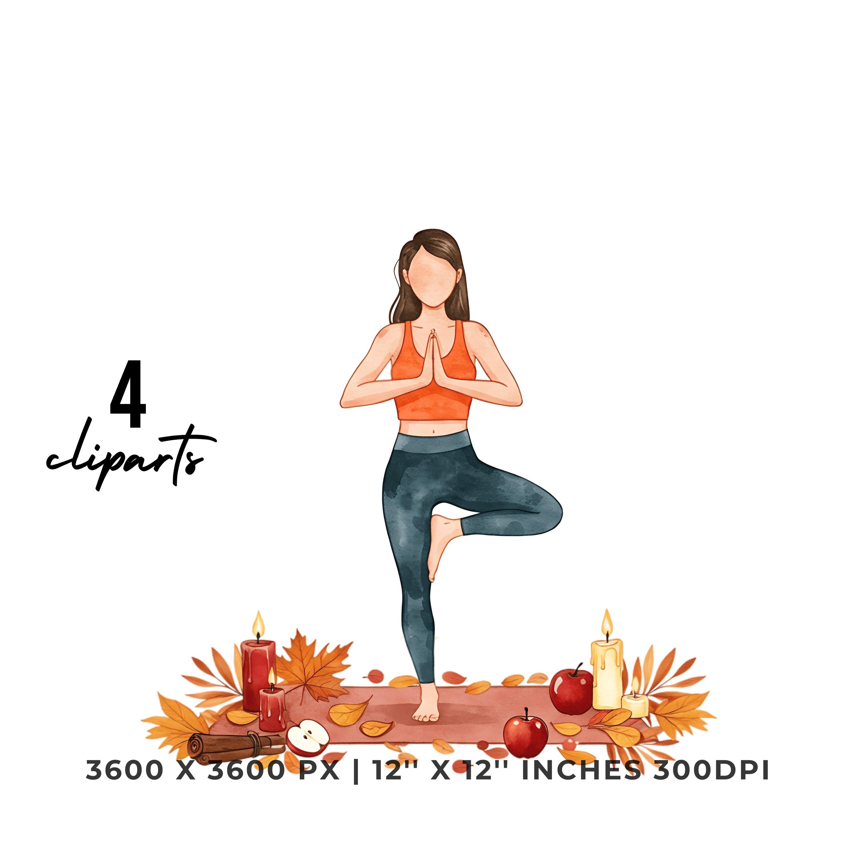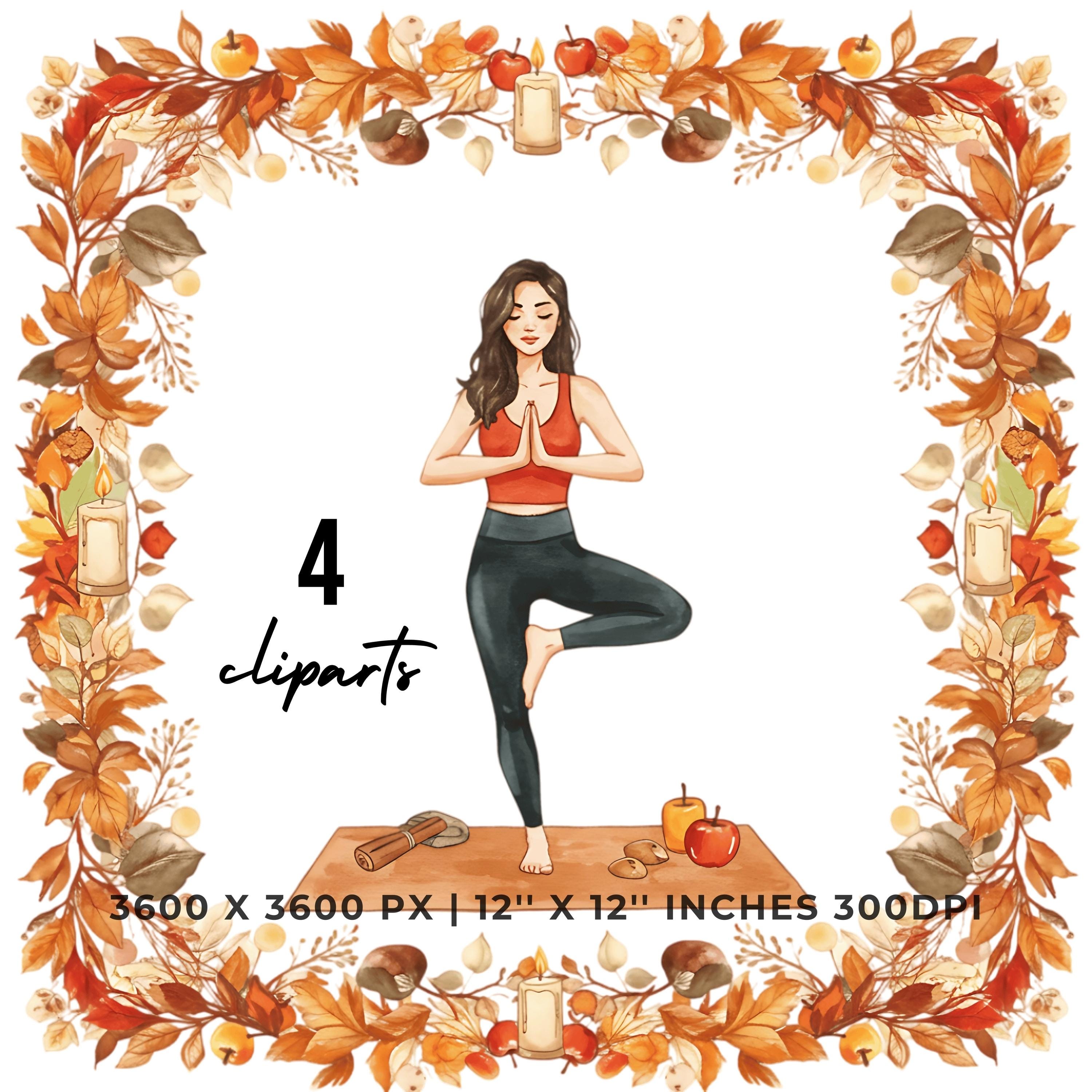 Autumn Yoga Tree Pose Clipart | Fall Woman Meditating | Cozy Fall Fitness Clip Art Bundle | 12″x12″ 300 DPI | 4 JPG – 4 PNG Commercial Use – Instant Digital Download - TumblersGalaxy