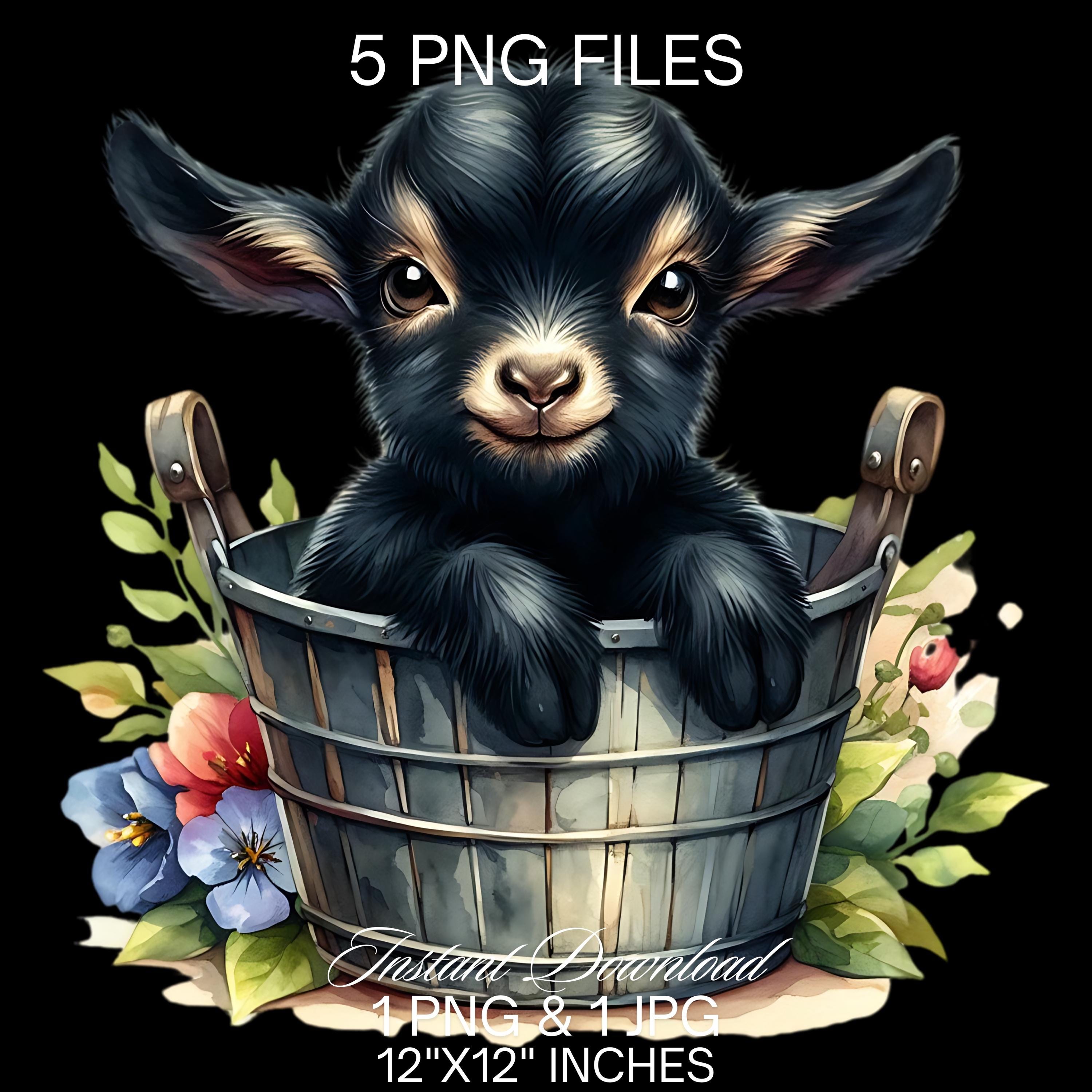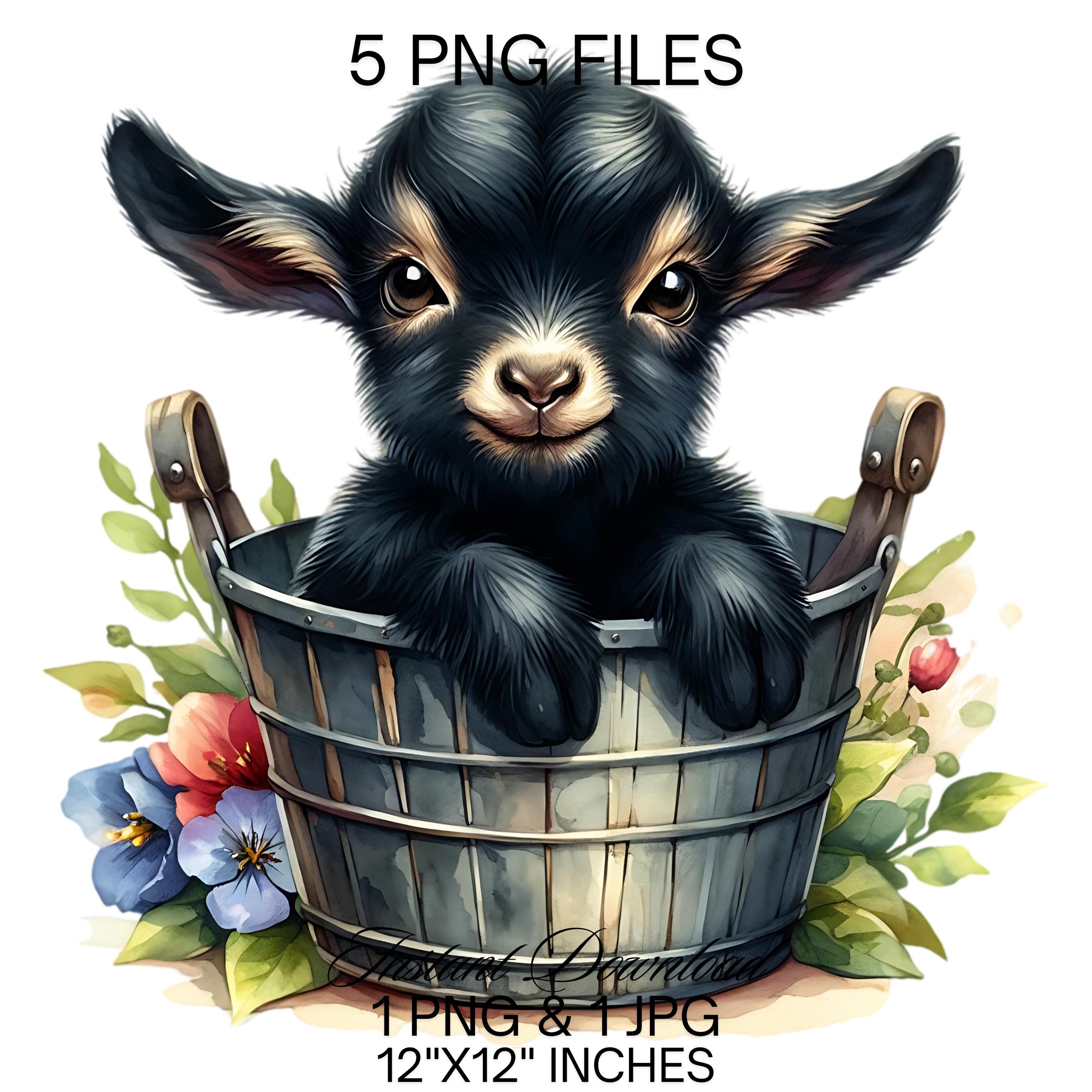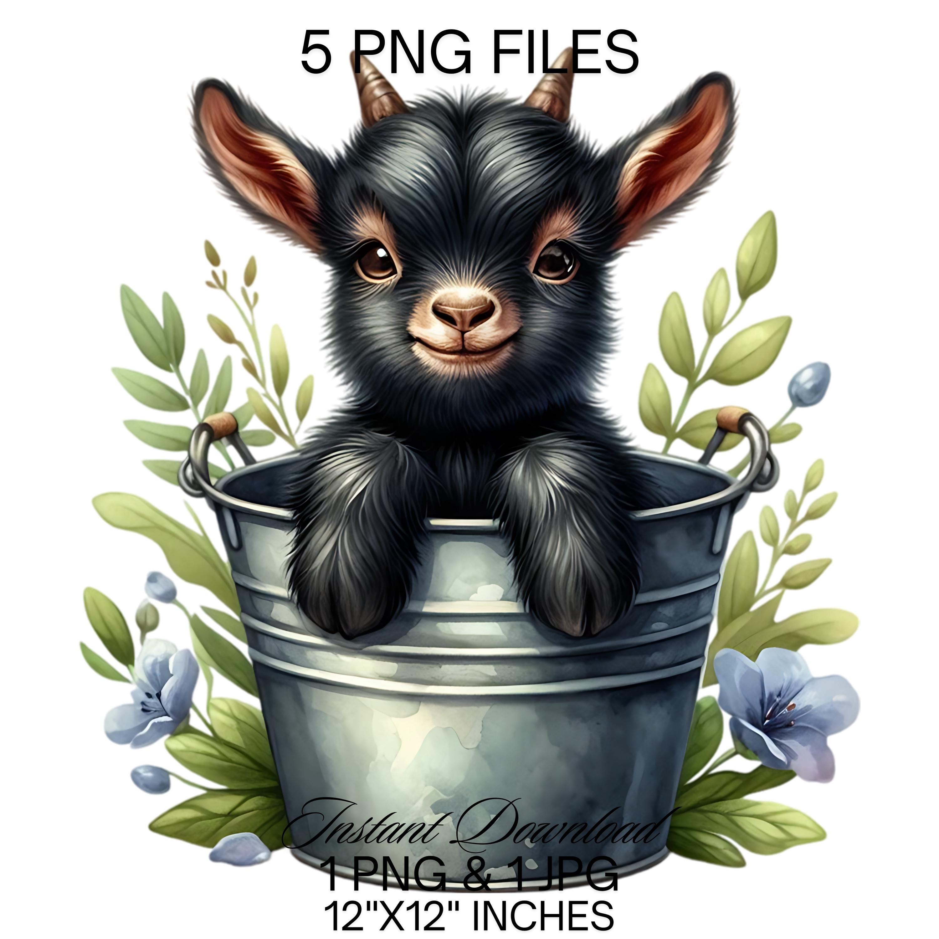 Baby Goat in a Bucket Watercolor Clipart PNG | Cute Black Goat & Bucket PNG Commercial Use | Kid Goat Farm Animals Graphics Illustration PNG is an eye-catching, high-resolution digital asset designed for creators, crafters, teachers, and small business owners looking to elevate their visuals.