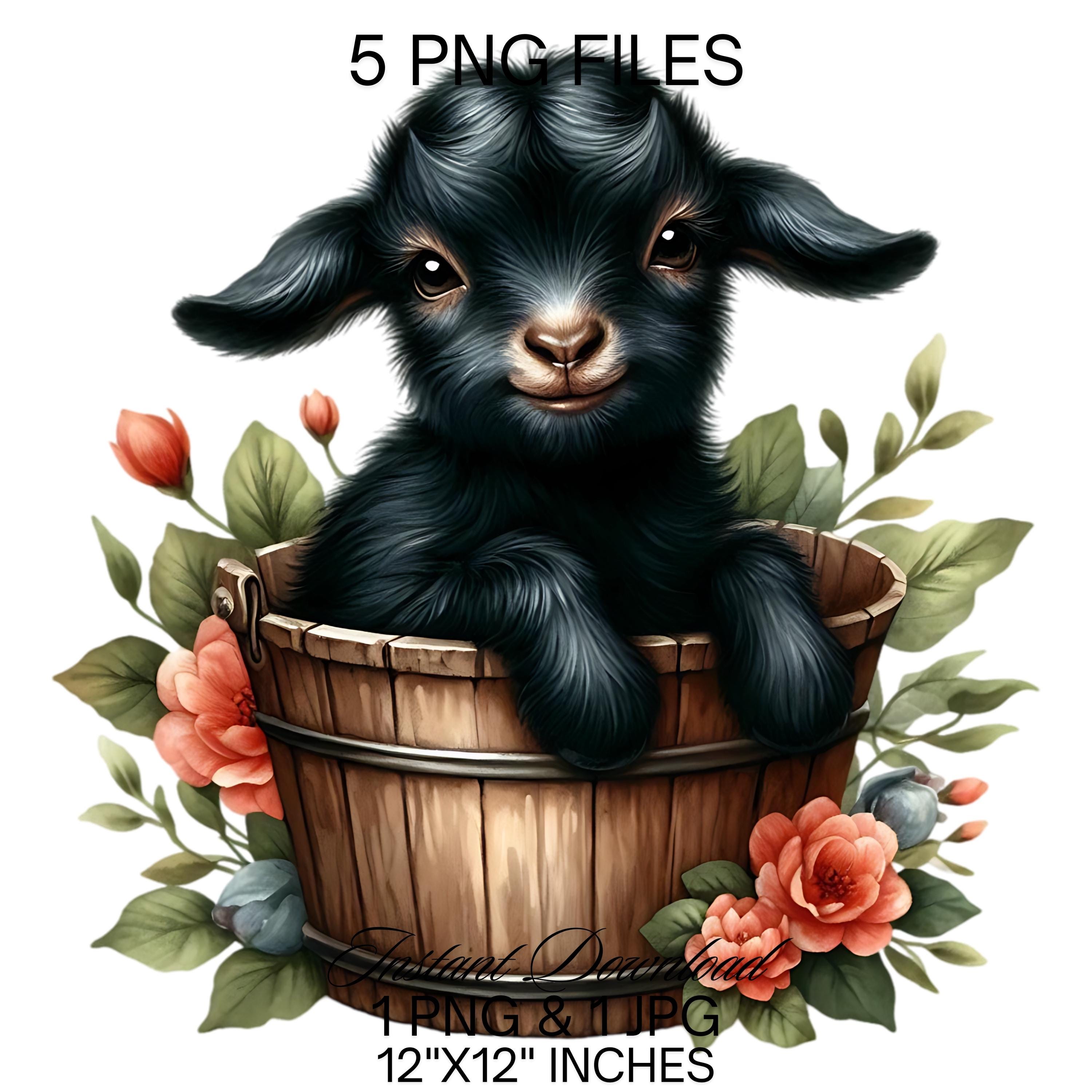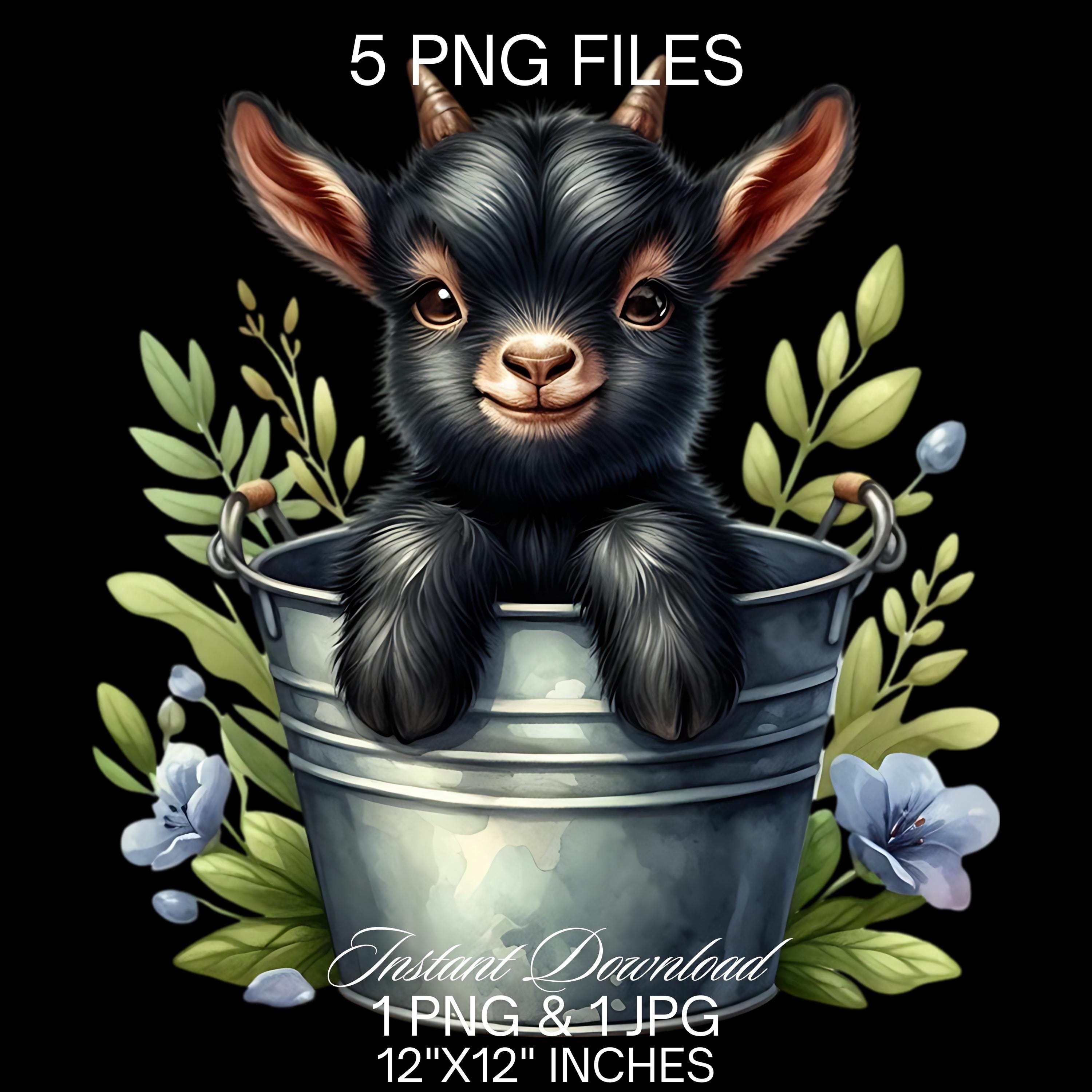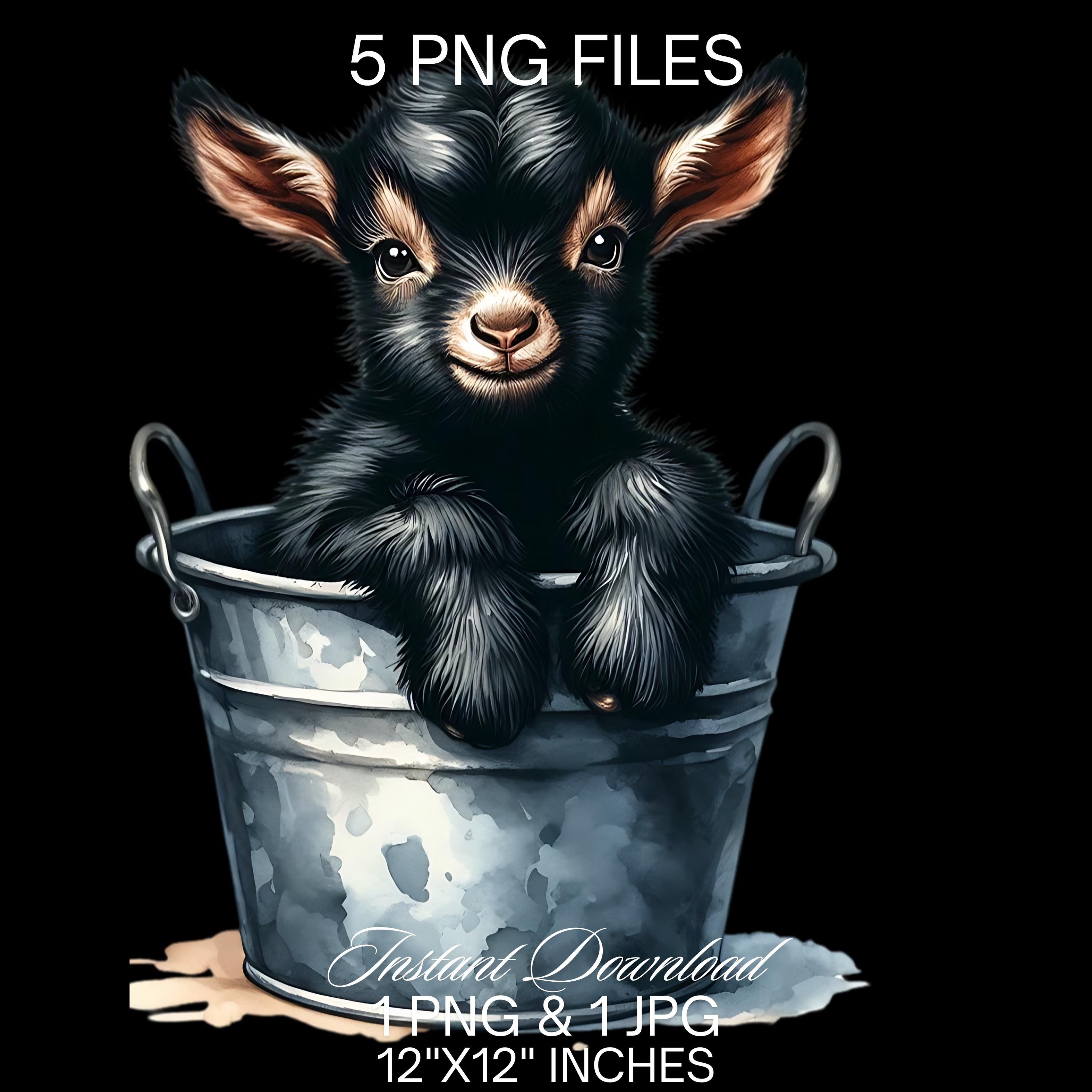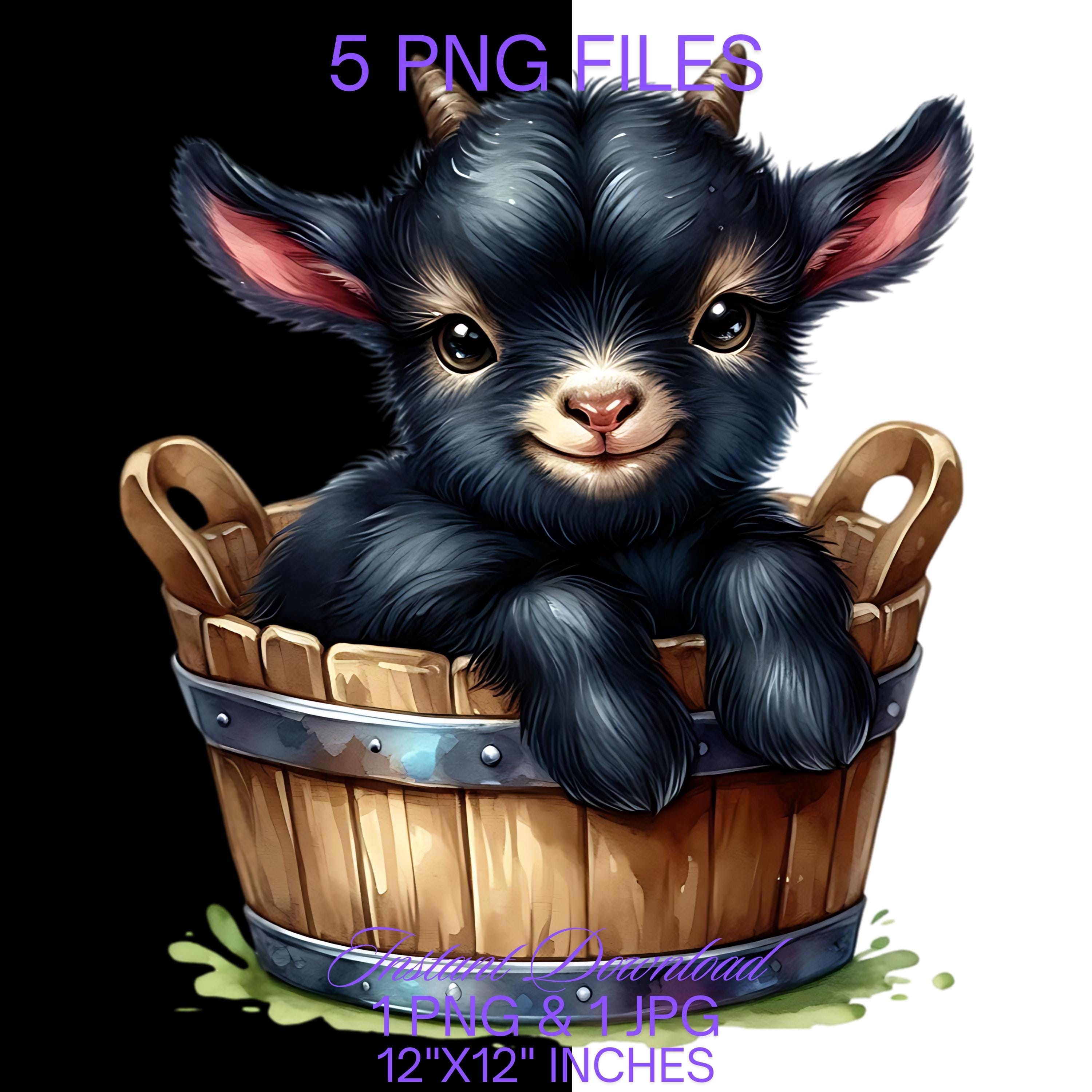 Baby Goat in a Bucket Watercolor Clipart PNG | Cute Black Goat & Bucket PNG Commercial Use | Kid Goat Farm Animals Graphics Illustration PNG is an eye-catching, high-resolution digital asset designed for creators, crafters, teachers, and small business owners looking to elevate their visuals.