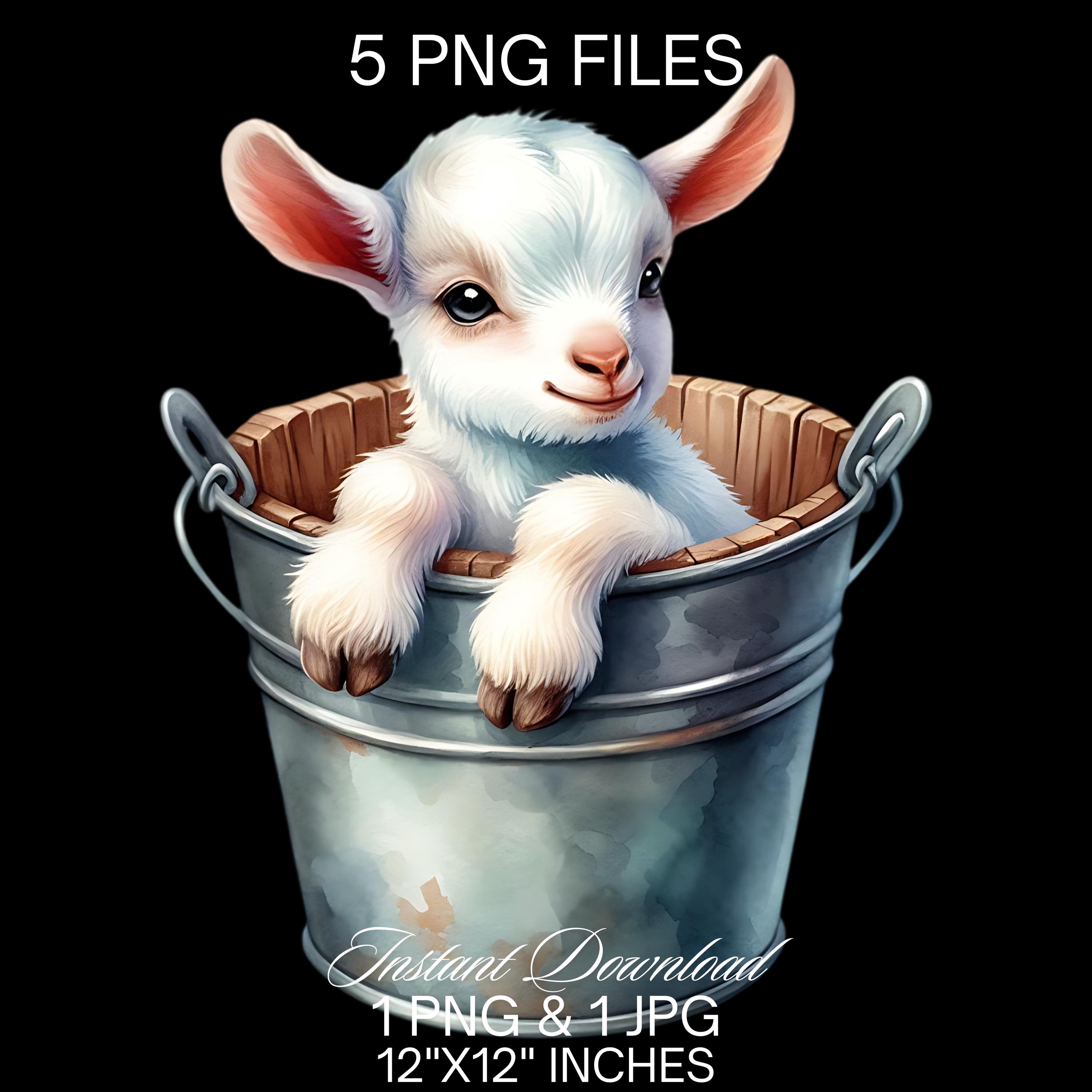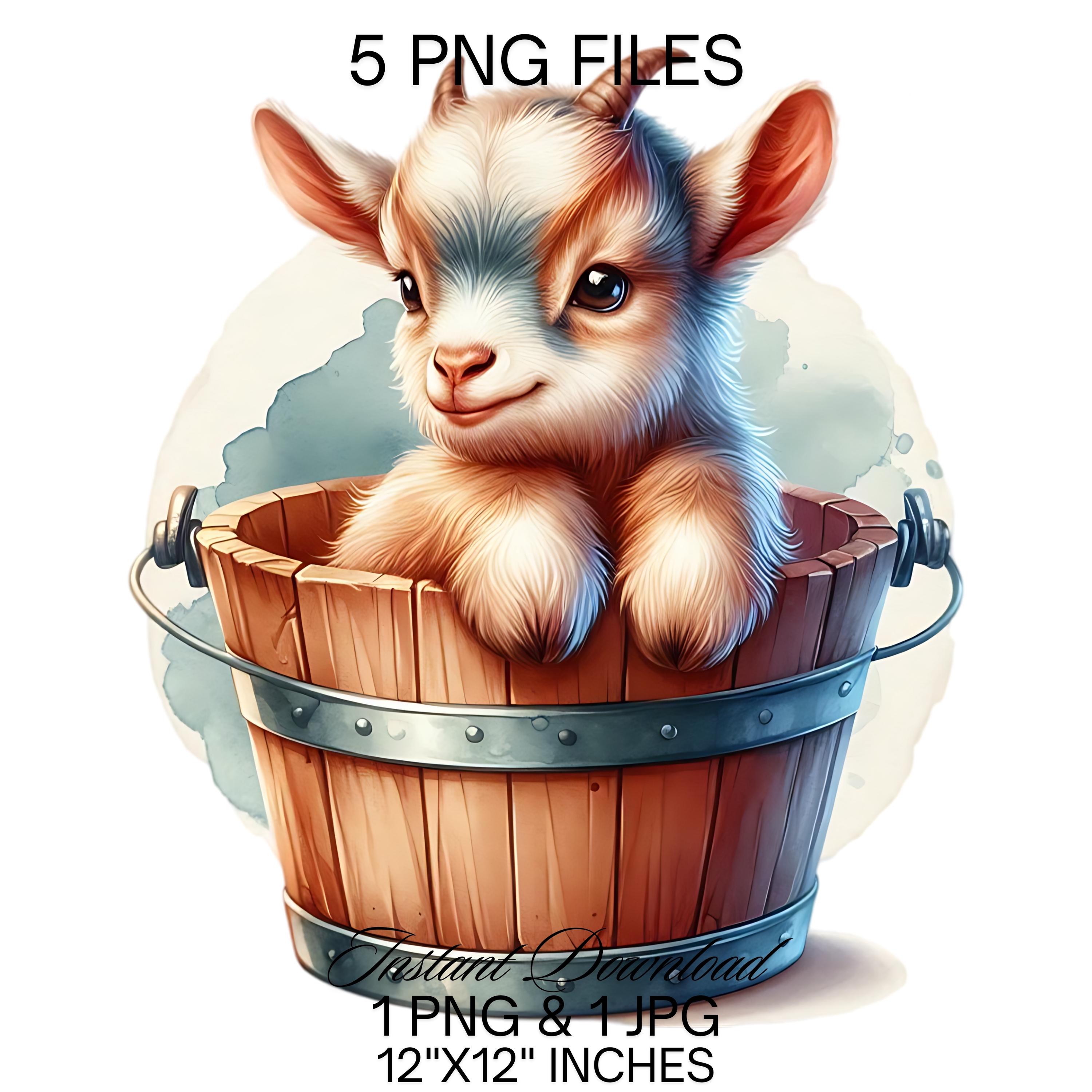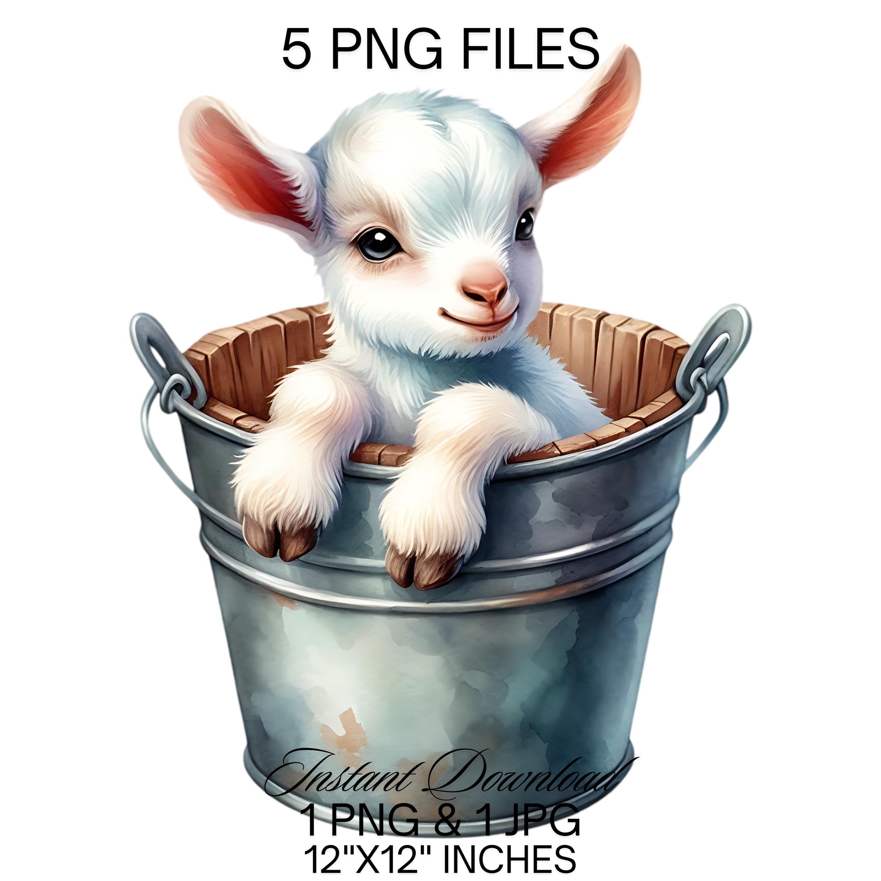 Baby Goat in a Bucket Watercolor Clipart PNG | Cute White Goat & Bucket PNG Commercial Use | Kid Goat Farm Animals Graphics Illustration PNG – Instant Digital Download - TumblersGalaxy