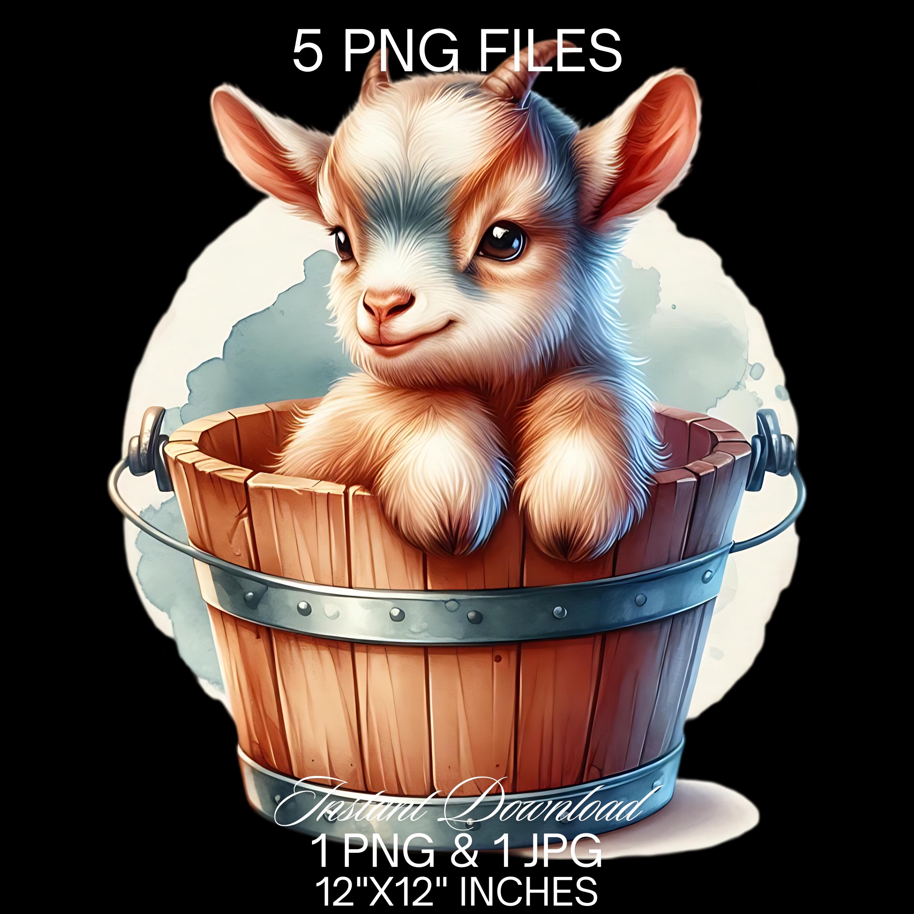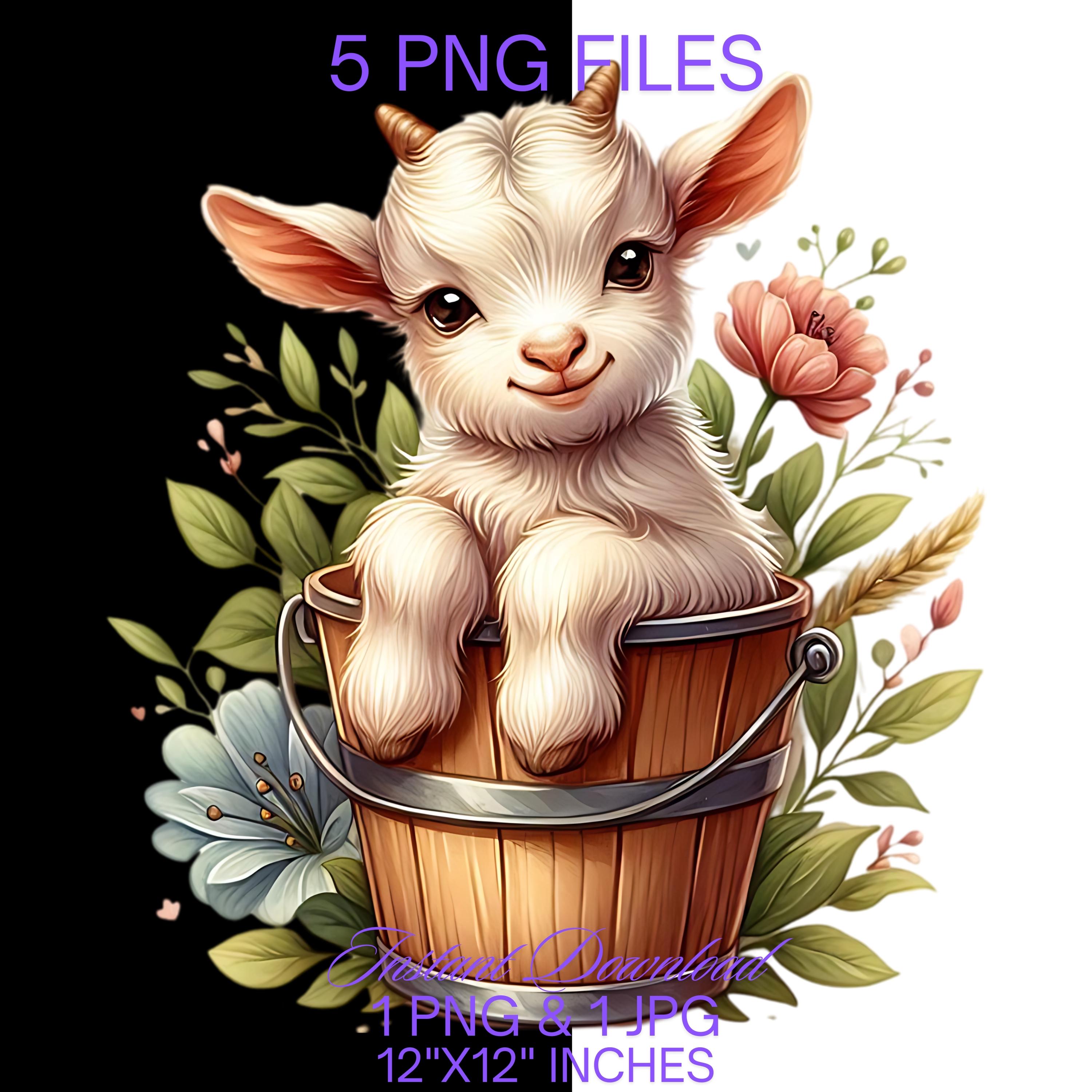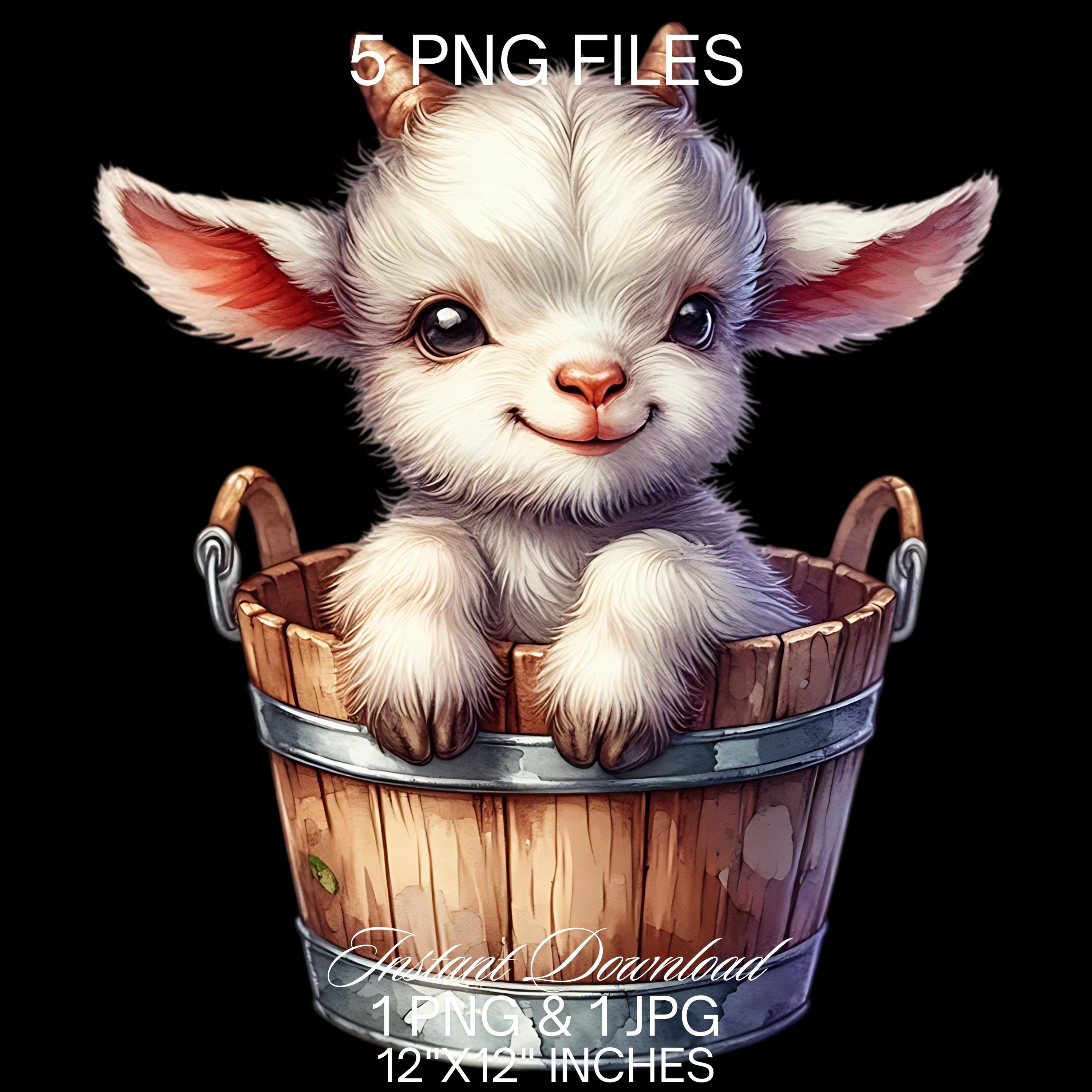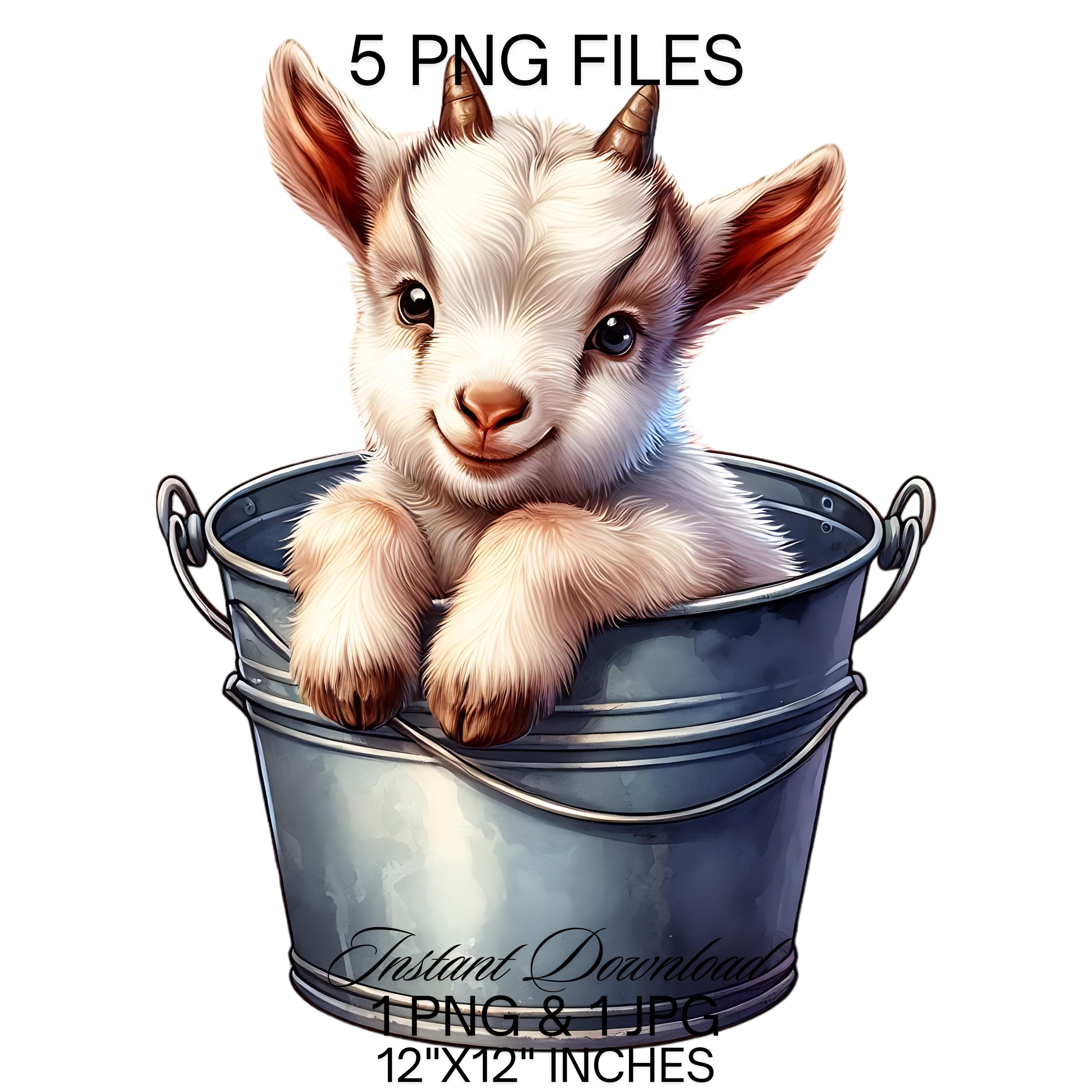 Baby Goat in a Bucket Watercolor Clipart PNG | Cute White Goat & Bucket PNG Commercial Use | Kid Goat Farm Animals Graphics Illustration PNG – Instant Digital Download - TumblersGalaxy
