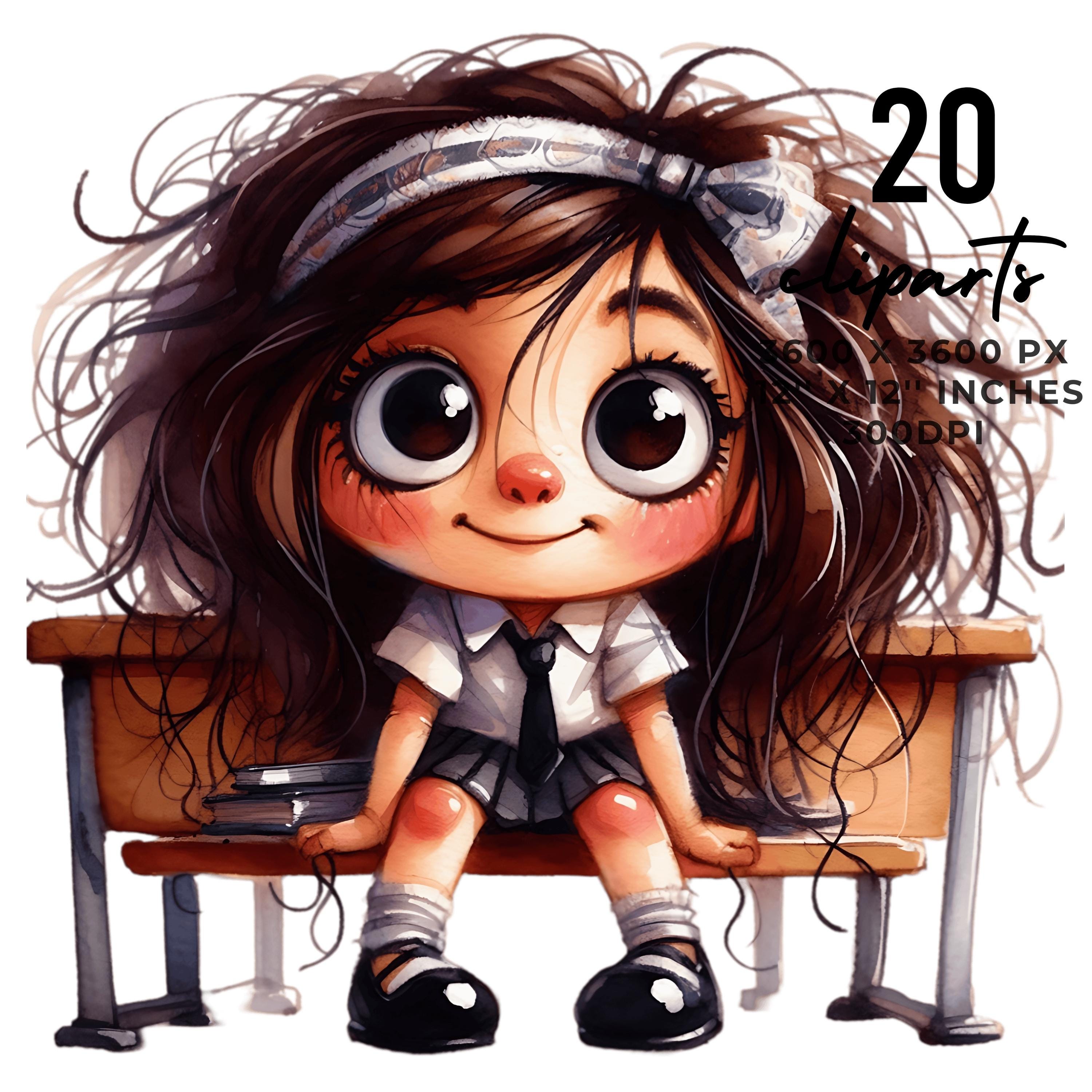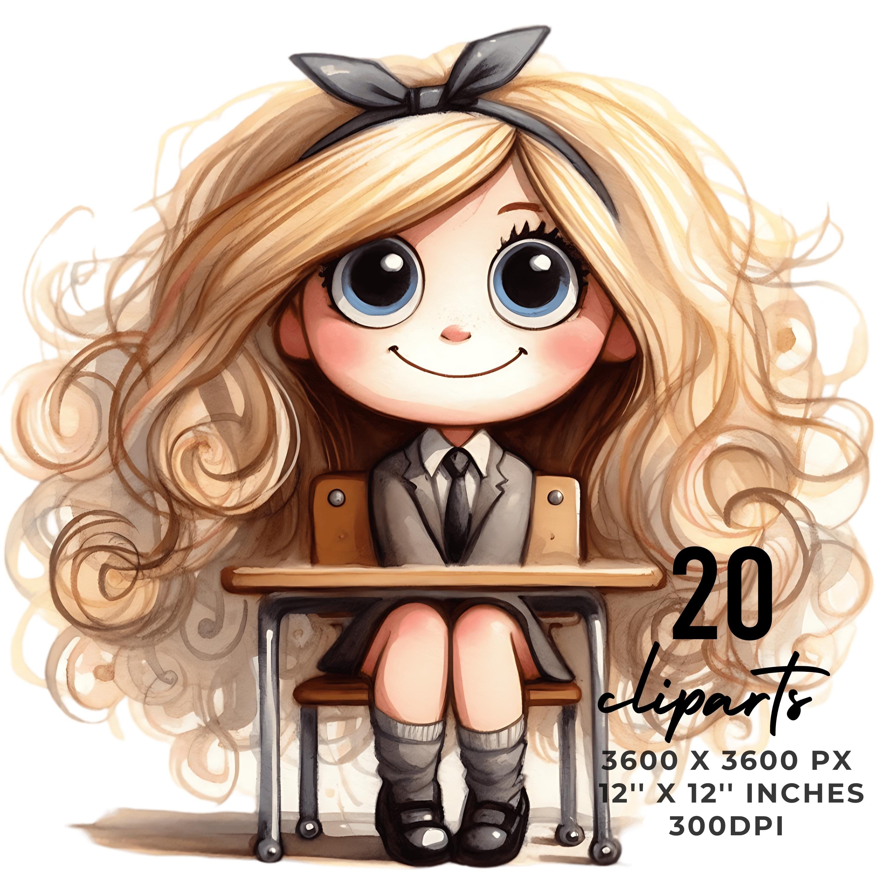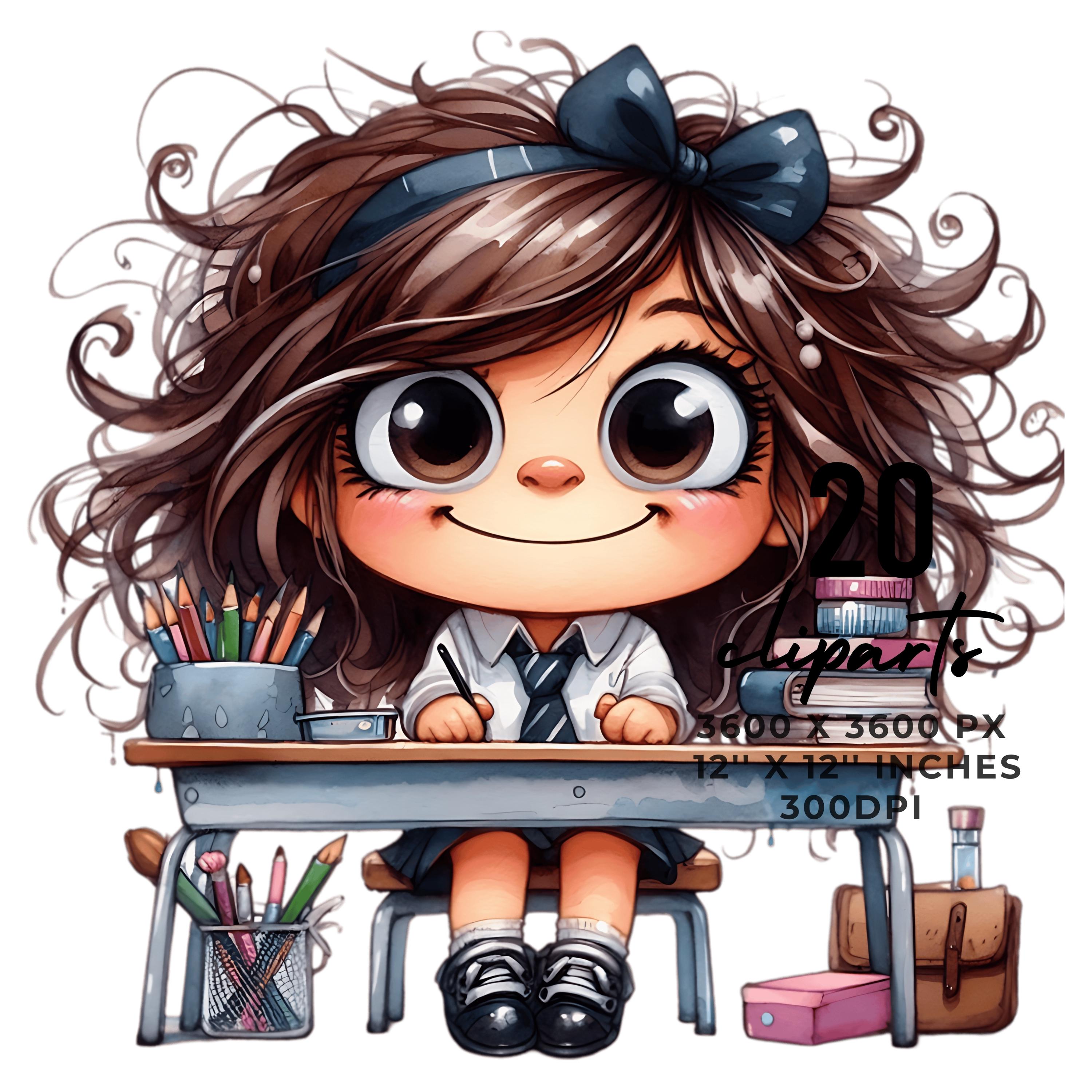 Back to School Girl Clipart | Quirky Schoolgirls Ephemera Set | 20 PNG 20 JPG | Quirky School Girl Clipart | Whimsical Ephemera Cute Educational Graphics PNG | Schoolgirls Printables | Watercolor Junk Journal Card Making Sublimation Commercial Use