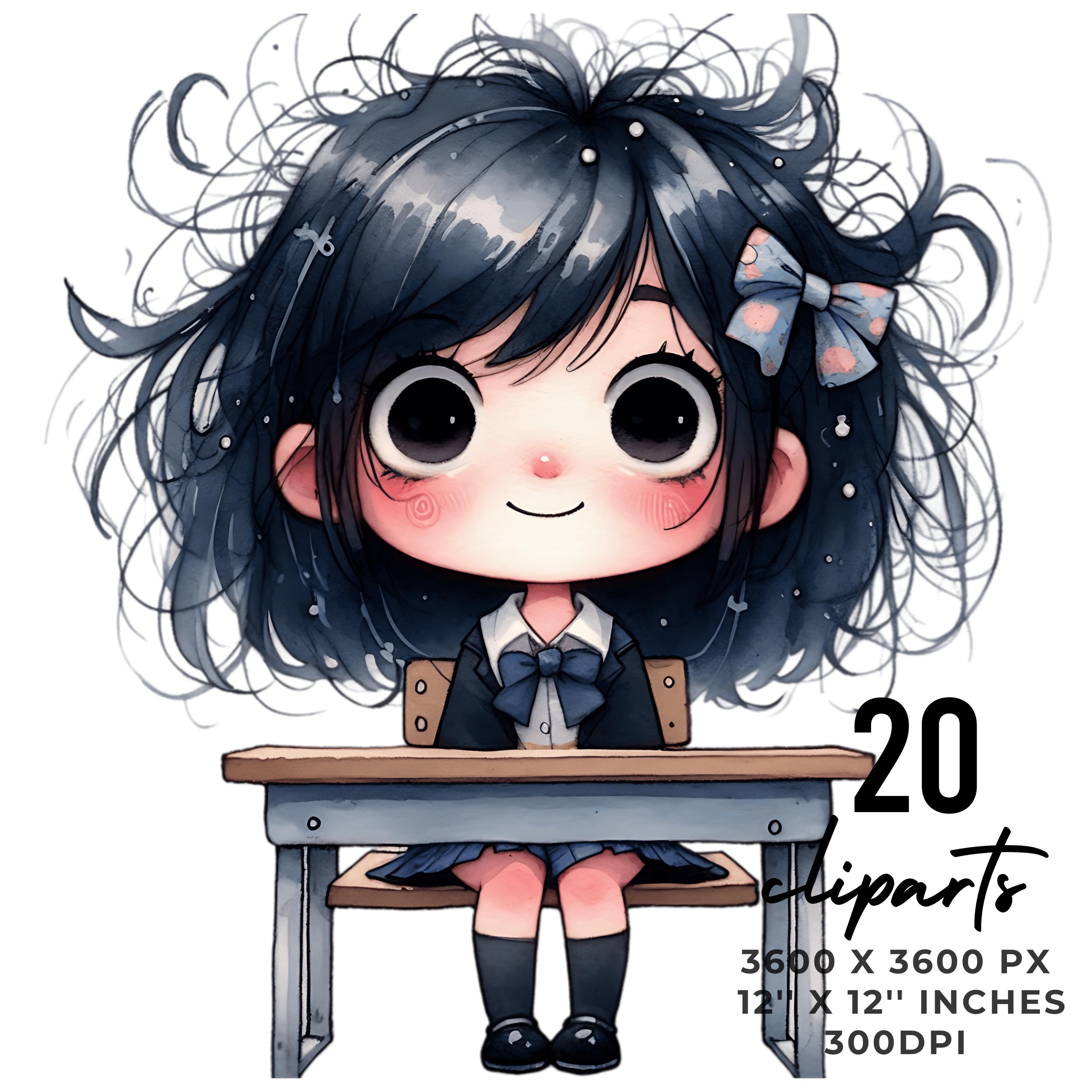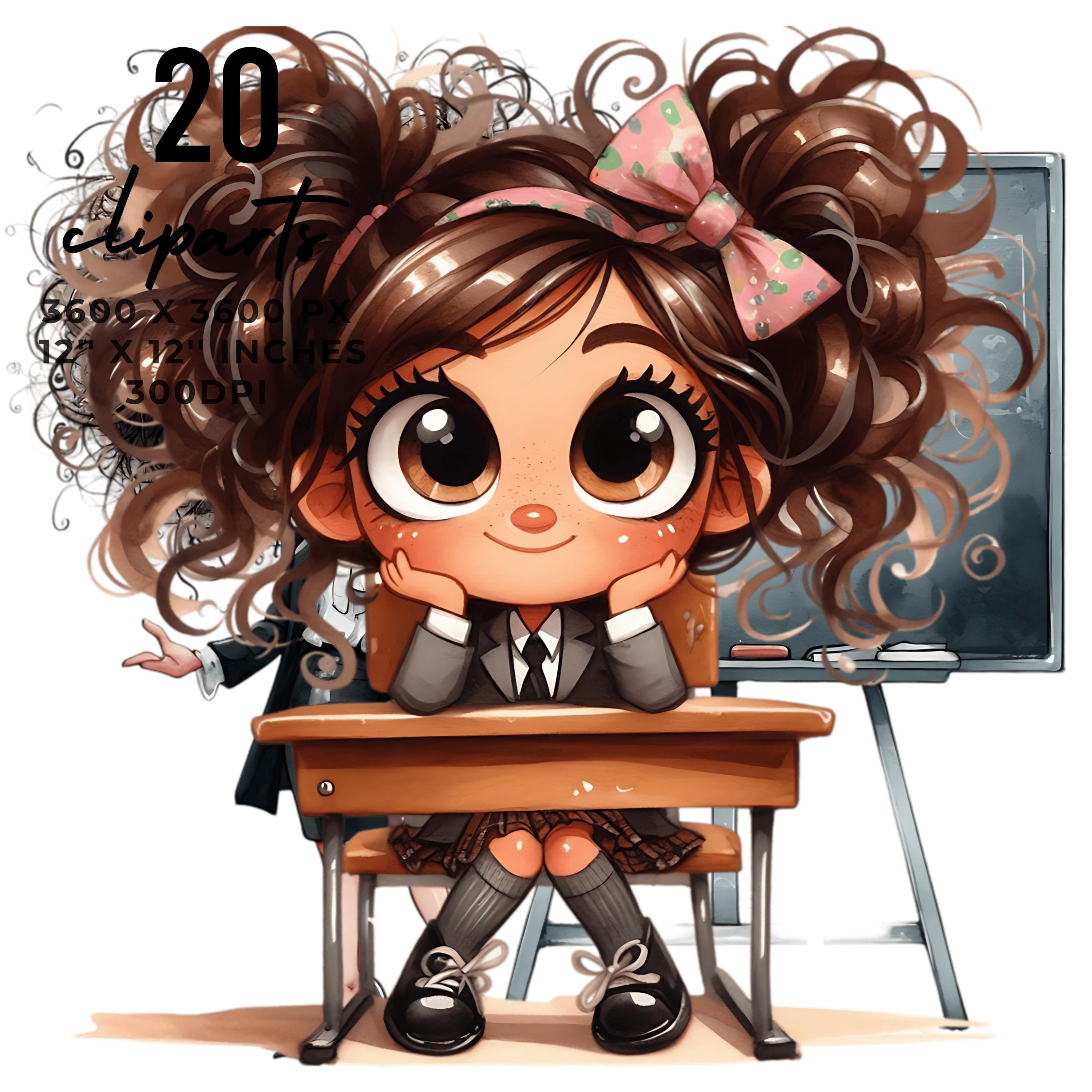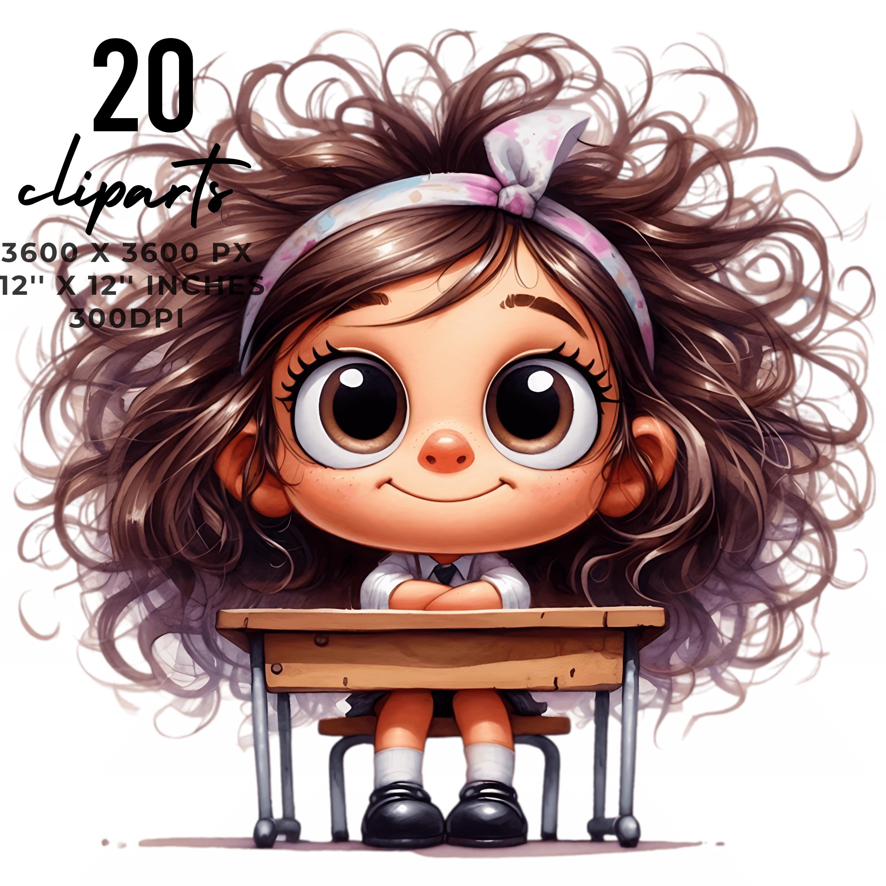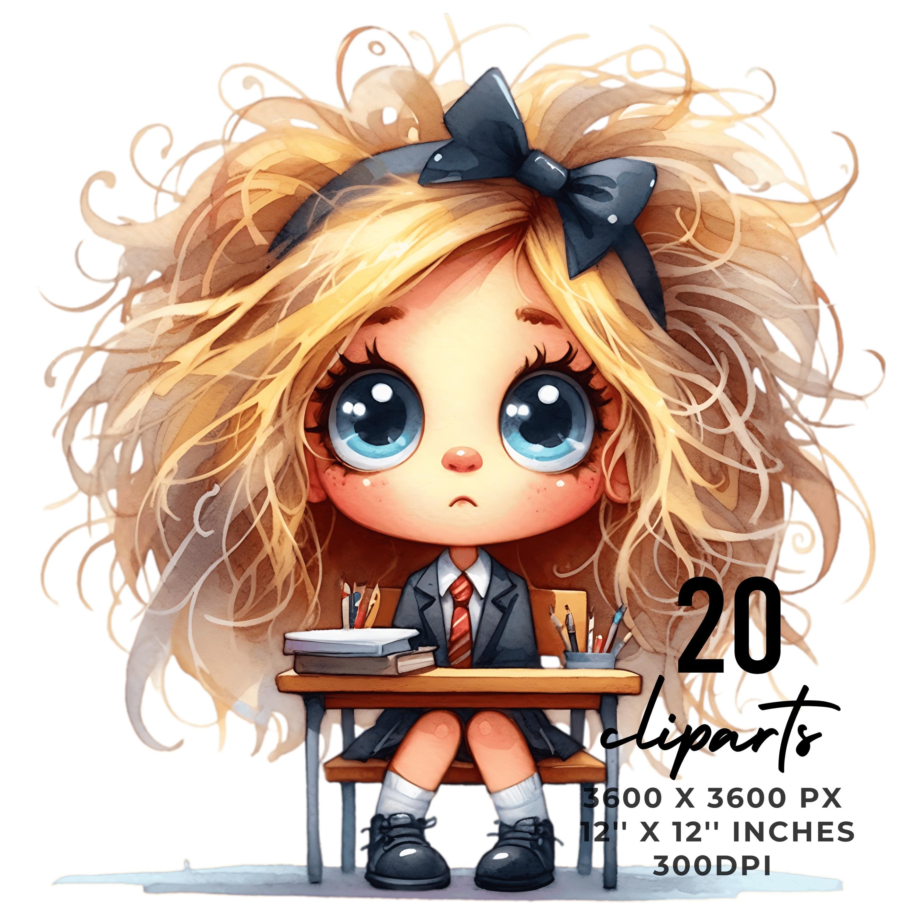 Back to School Girl Clipart | Quirky Schoolgirls Ephemera Set | 20 PNG 20 JPG | Quirky School Girl Clipart | Whimsical Ephemera Cute Educational Graphics PNG | Schoolgirls Printables | Watercolor Junk Journal Card Making Sublimation Commercial Use