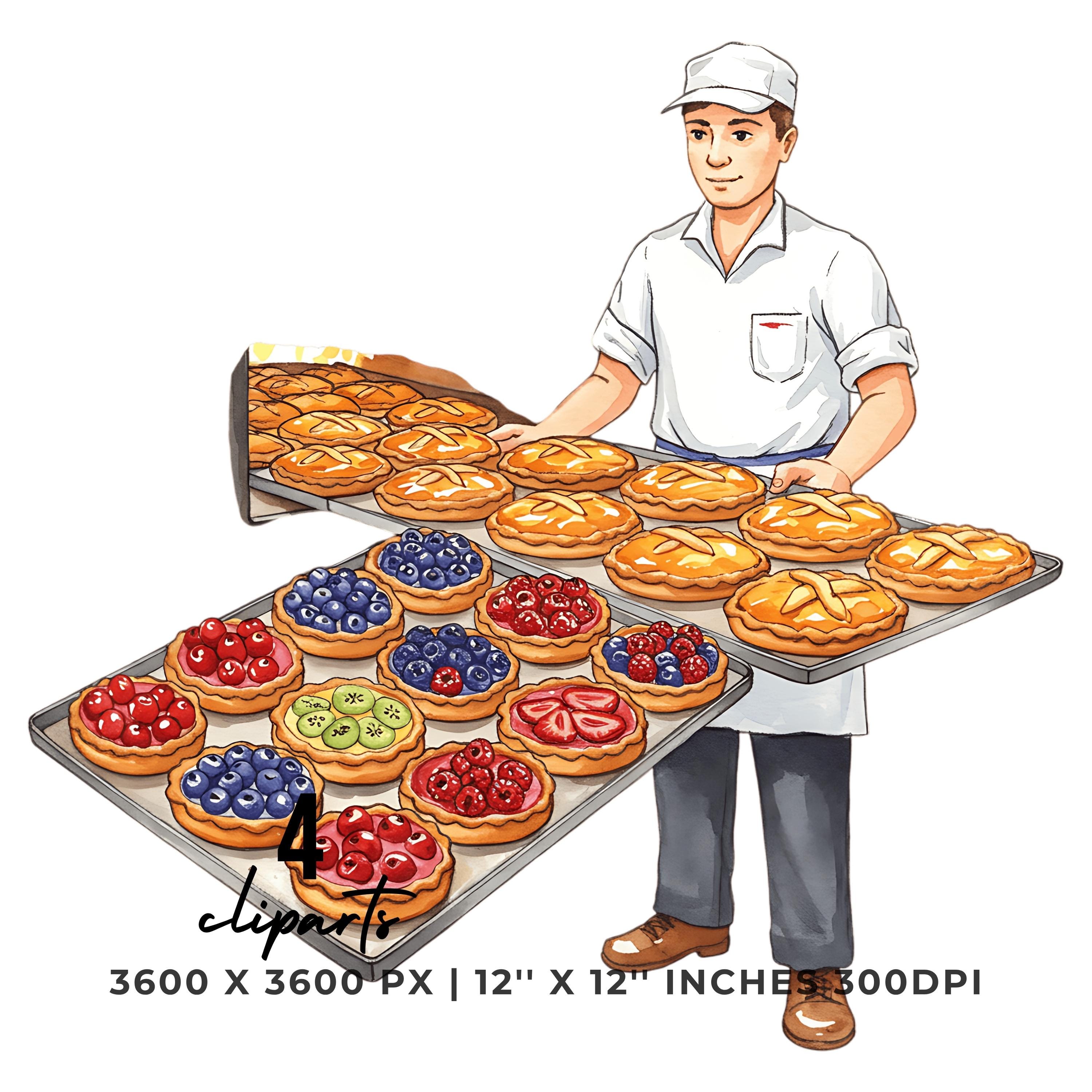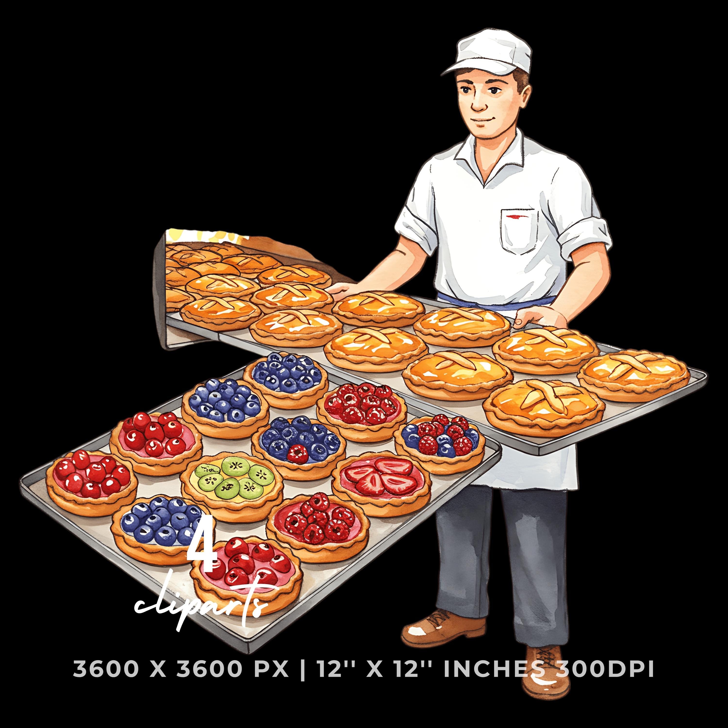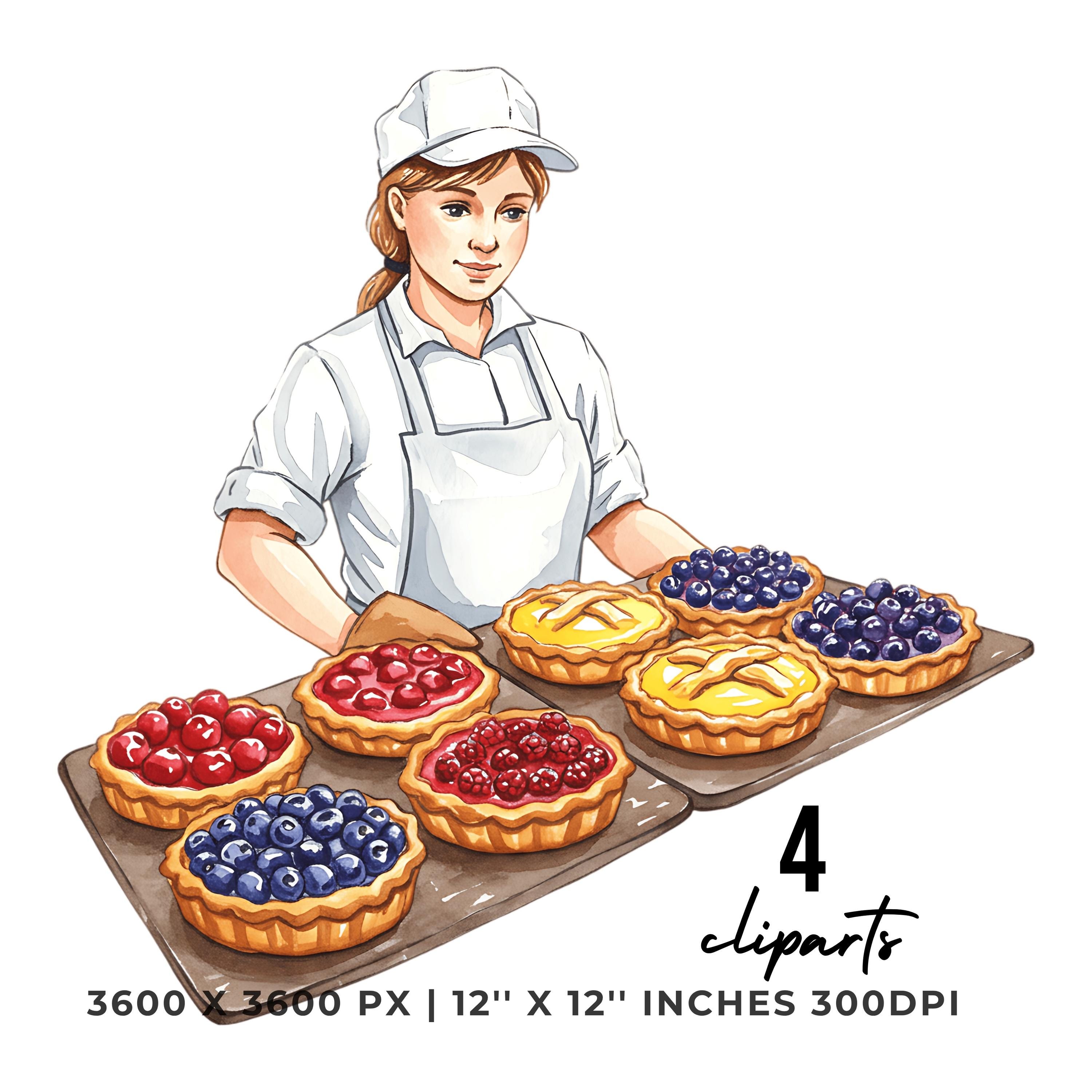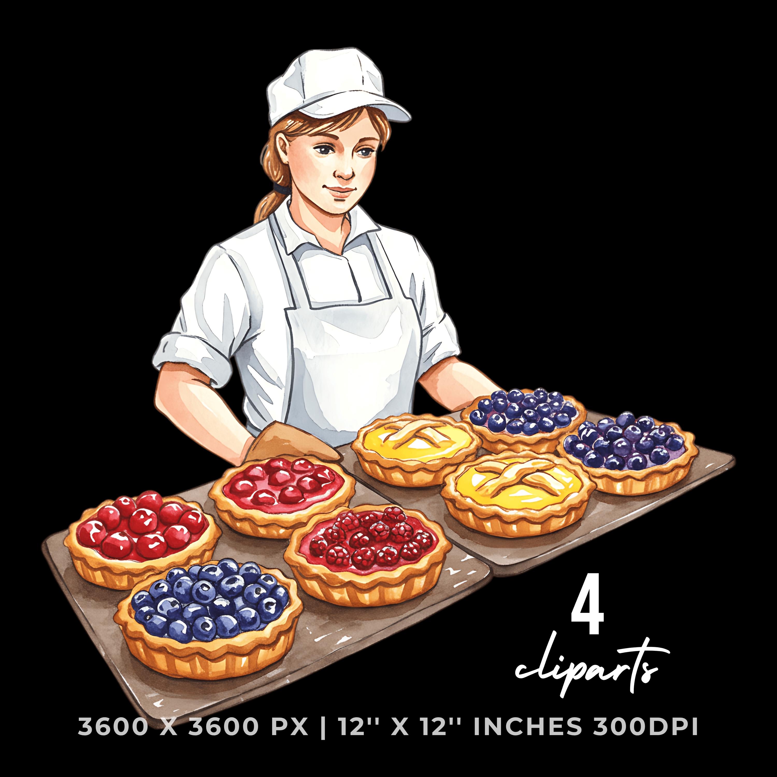 Baker with Fruit Tart Tray Clipart | Baking Illustration Set | 4 PNG & 4 JPG | Sublimation Design | 12″x12″ 300DPI Graphic Commercial Use