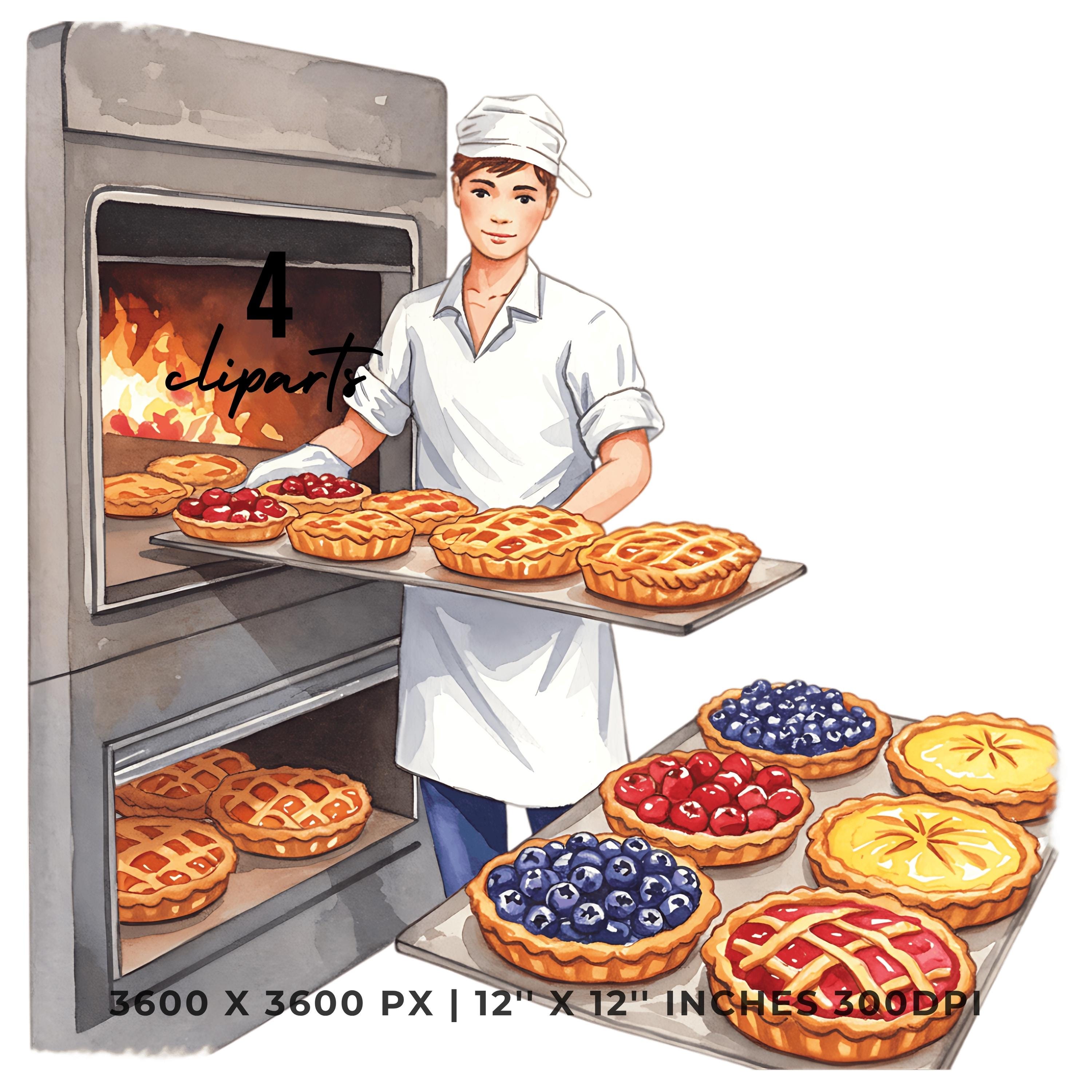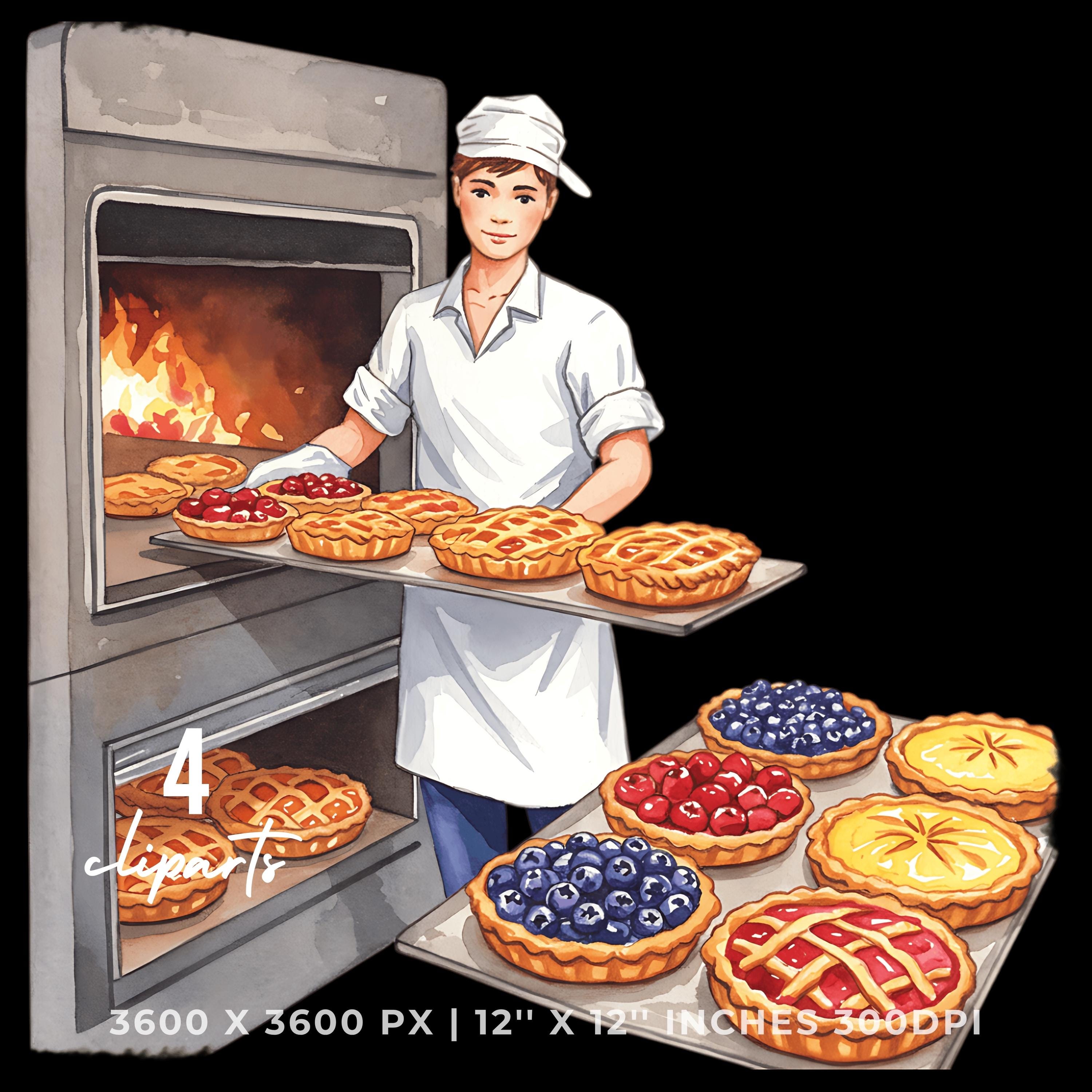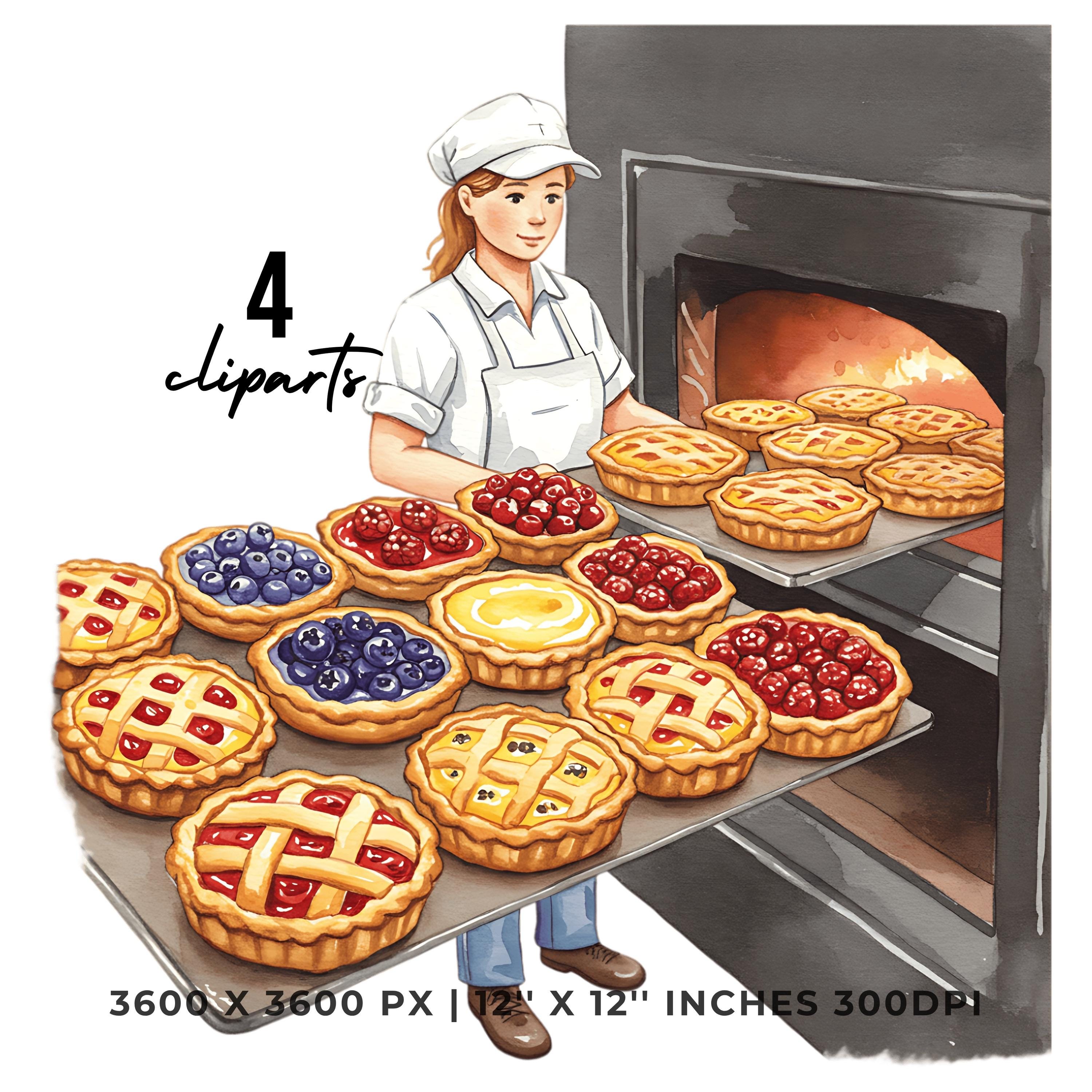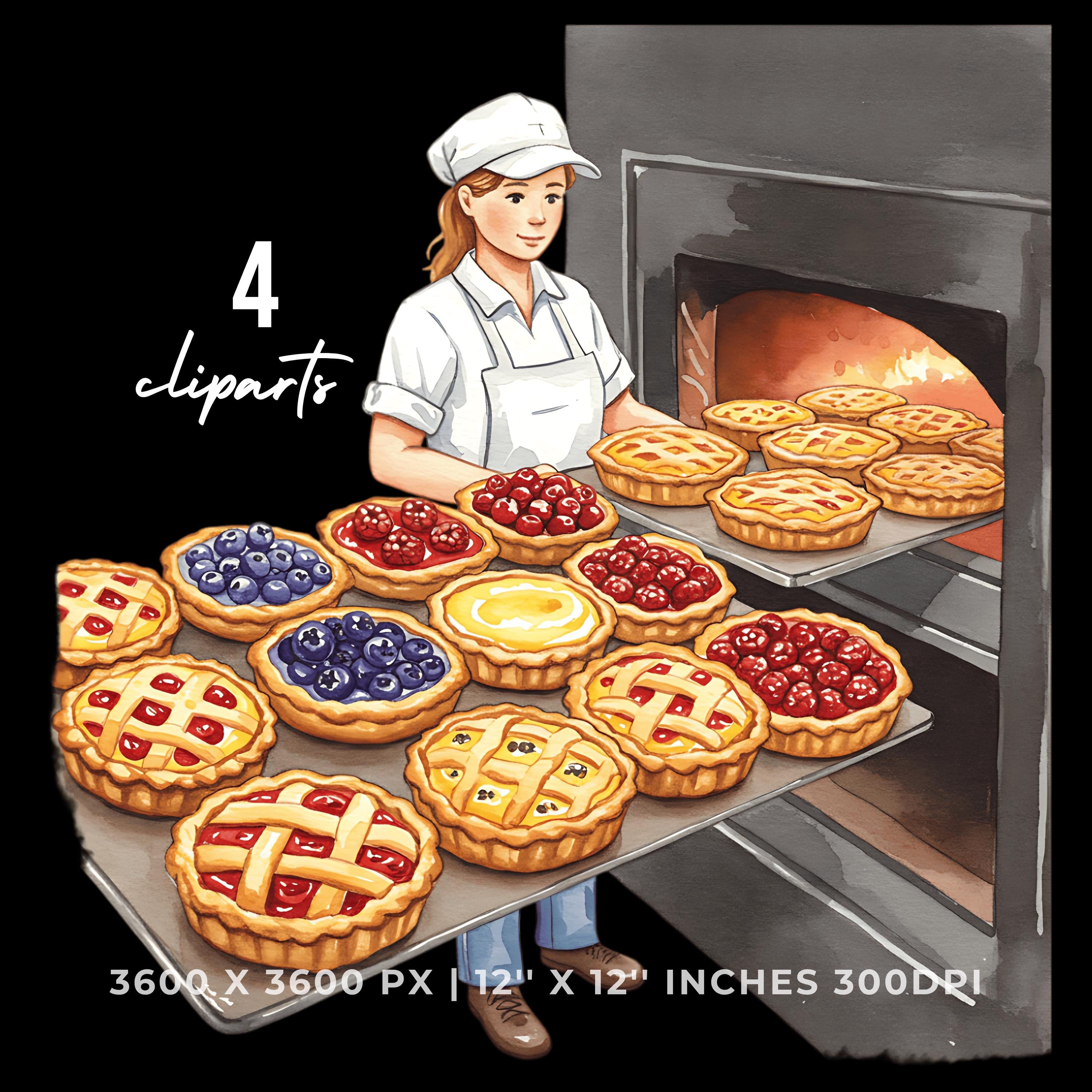 Baker with Fruit Tart Tray Clipart | Baking Illustration Set | 4 PNG & 4 JPG | Sublimation Design | 12″x12″ 300DPI Graphic Commercial Use