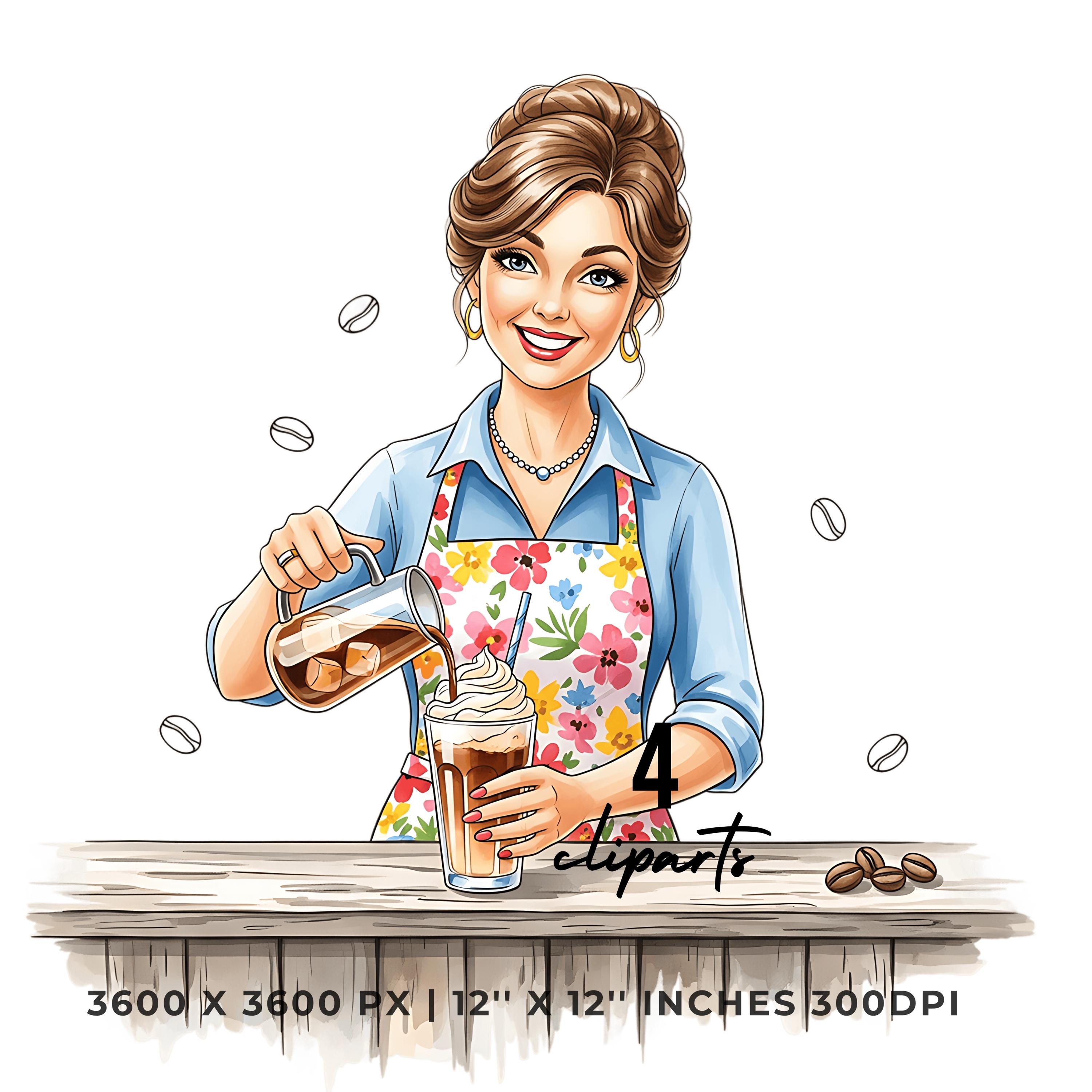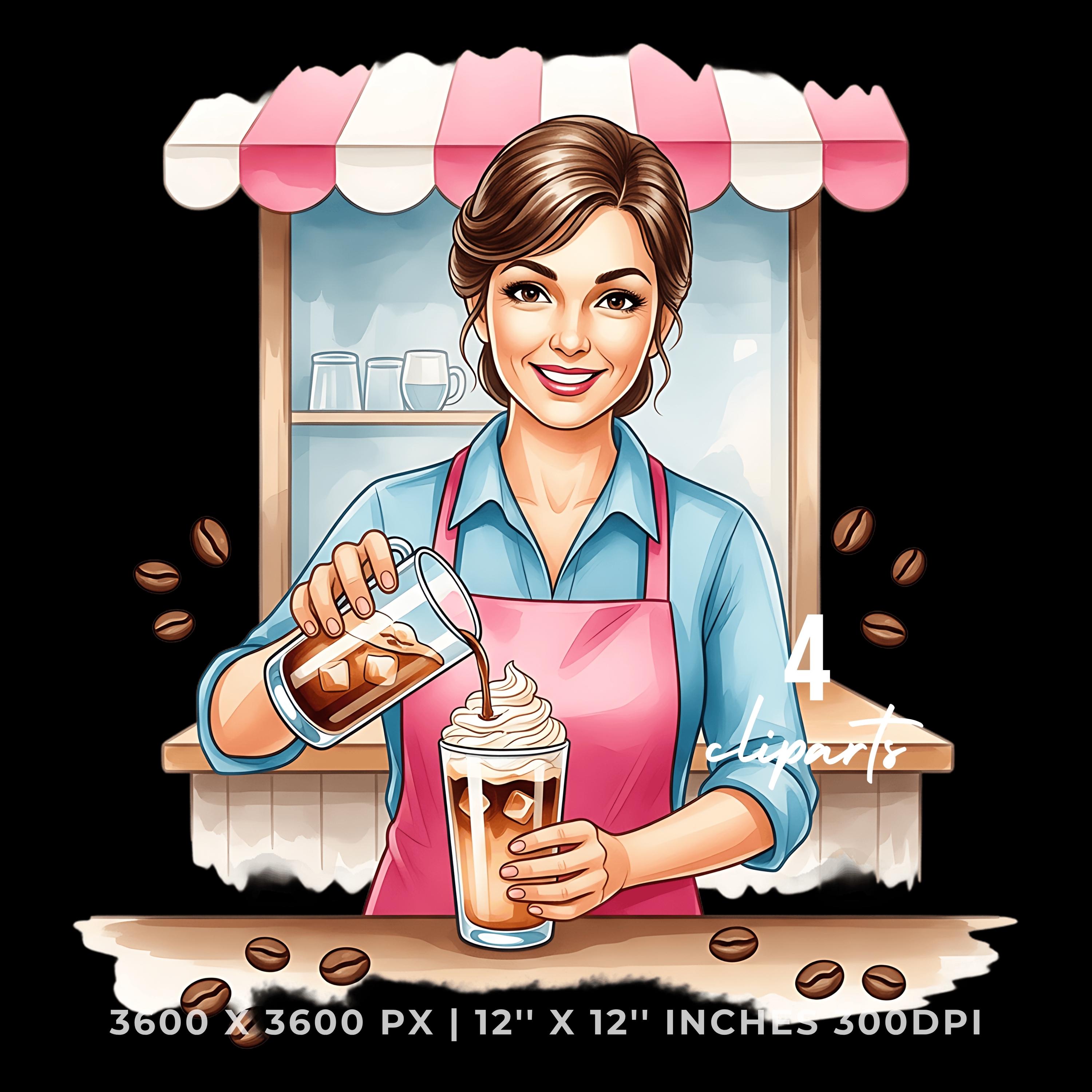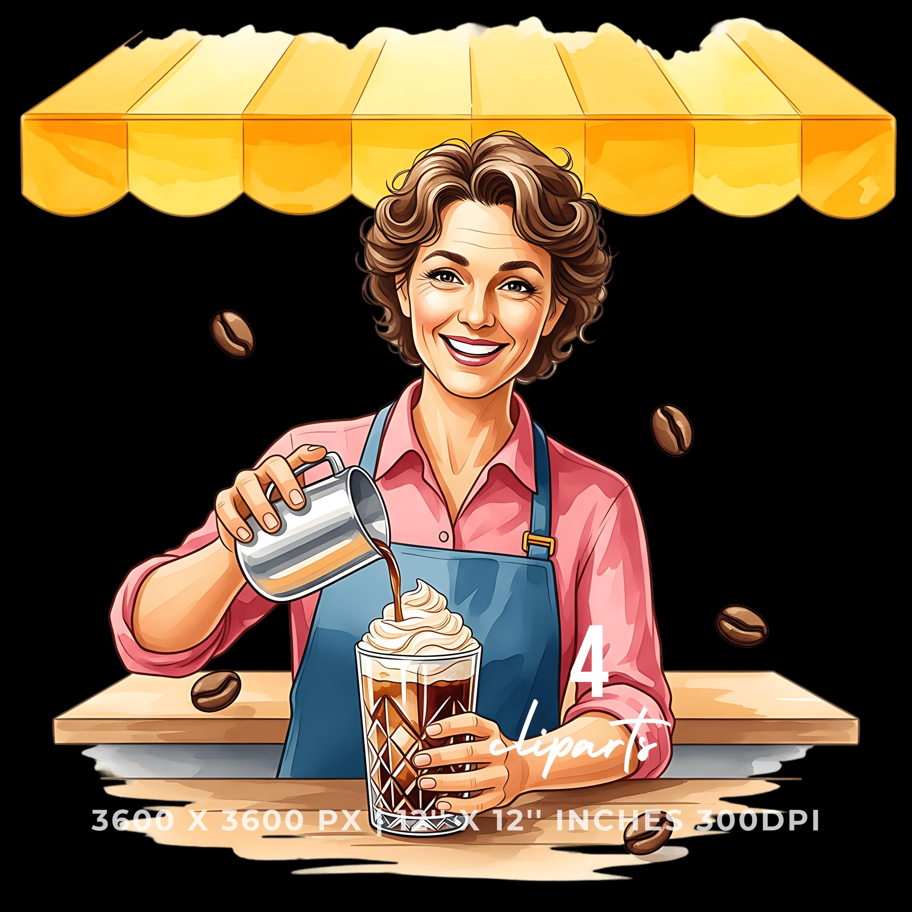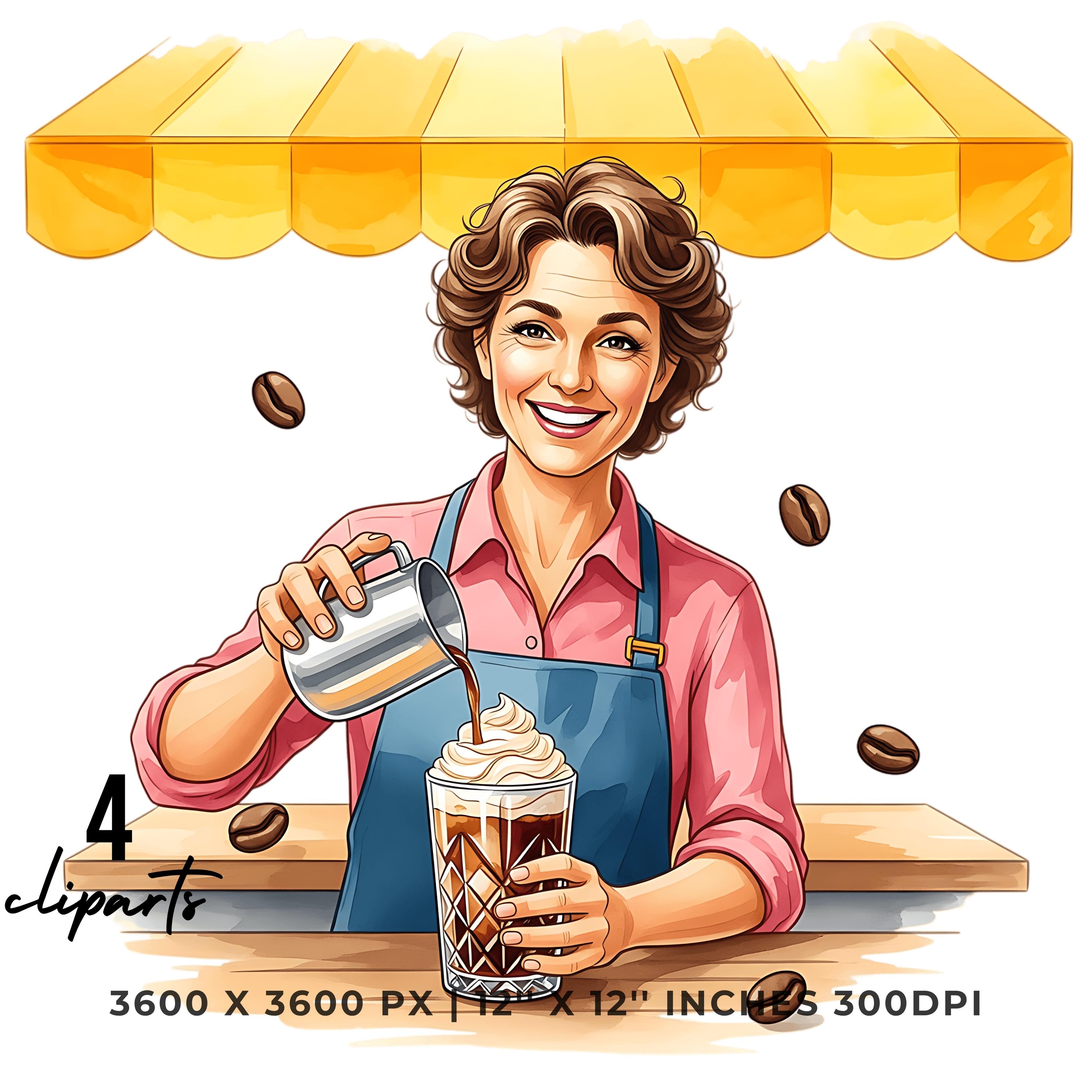 Barista Café PNG Clipart | Watercolor Cheerful barista at an outdoor café | Street Fook Café 4 PNG – 4 JPG Graphic Commercial Use – Instant Digital Download - TumblersGalaxy
