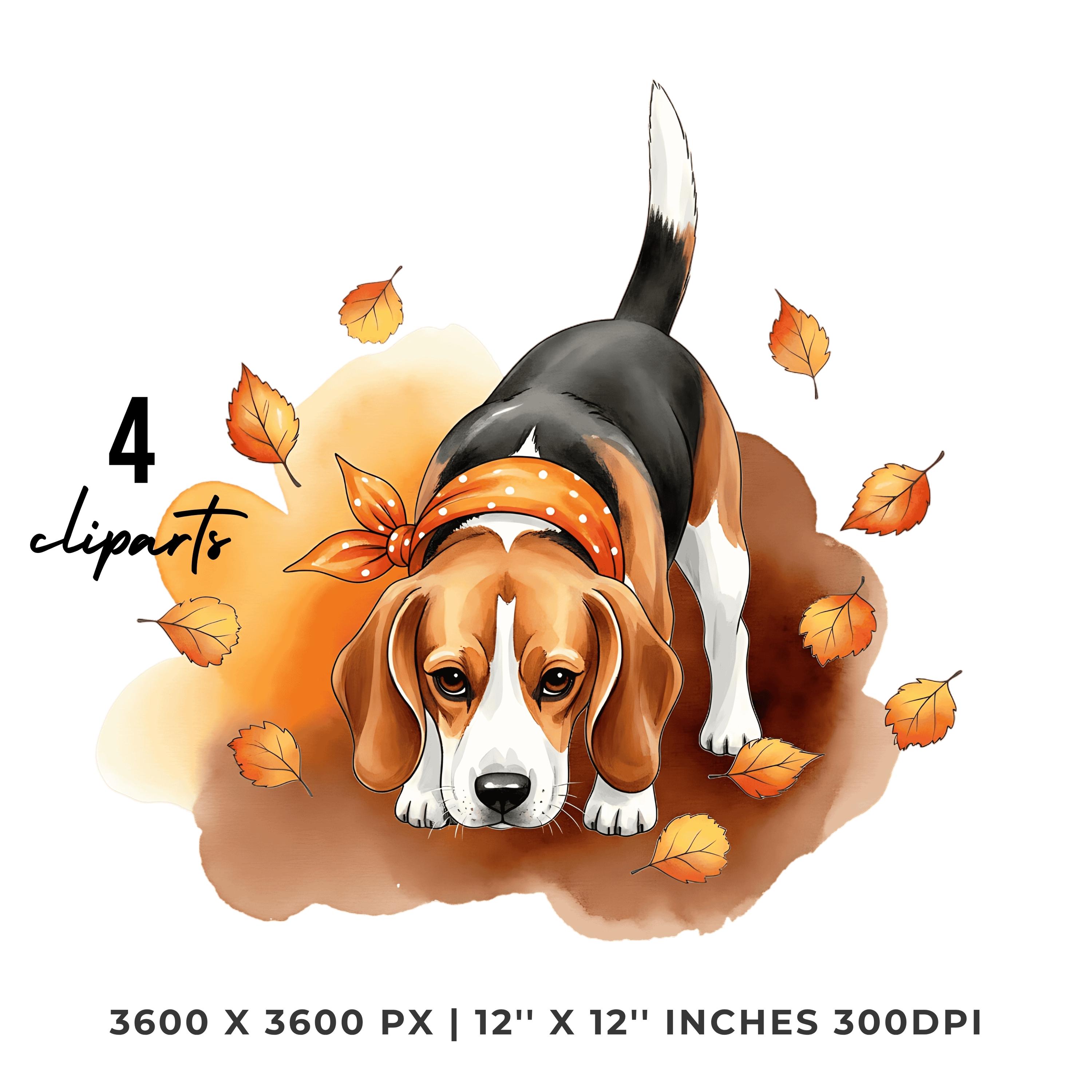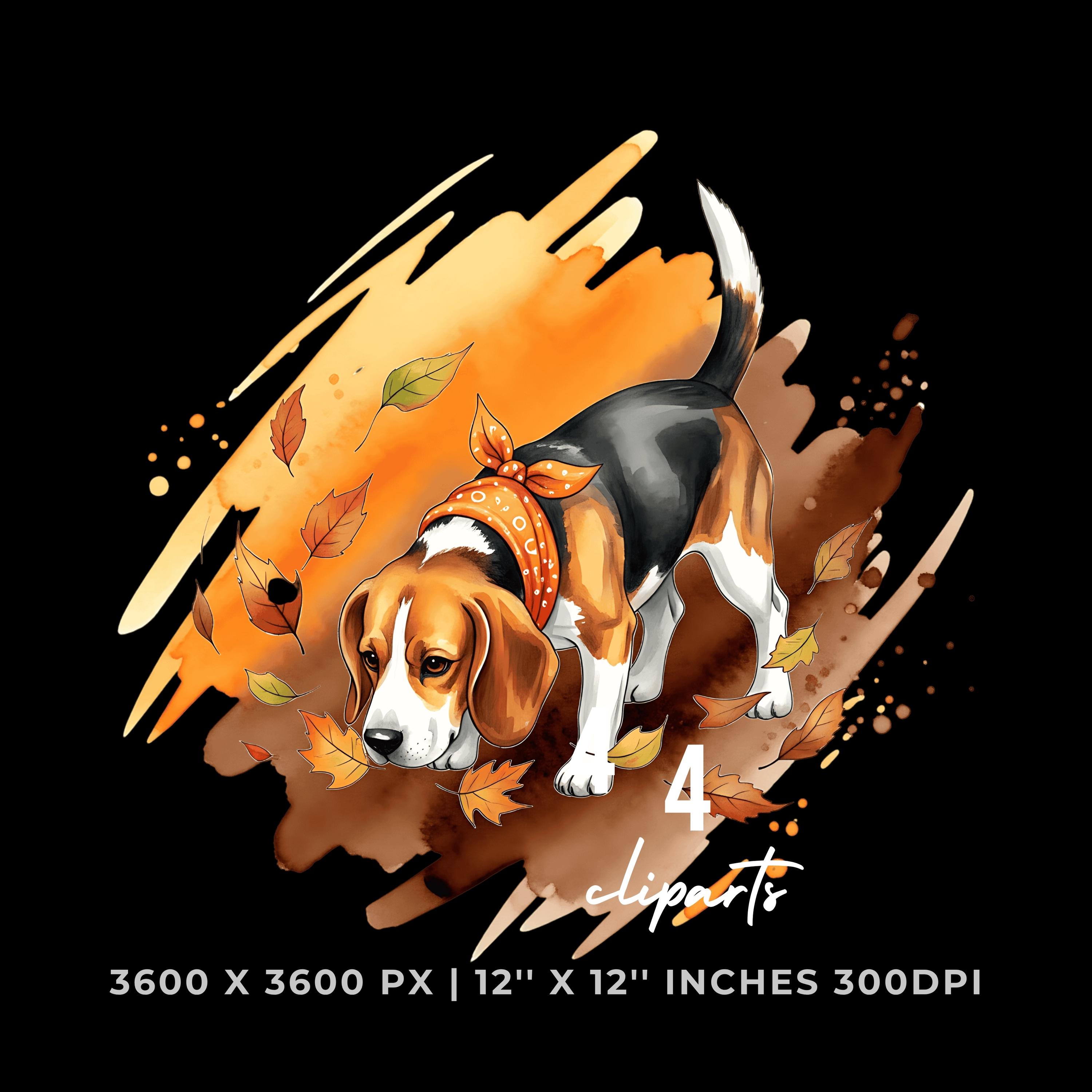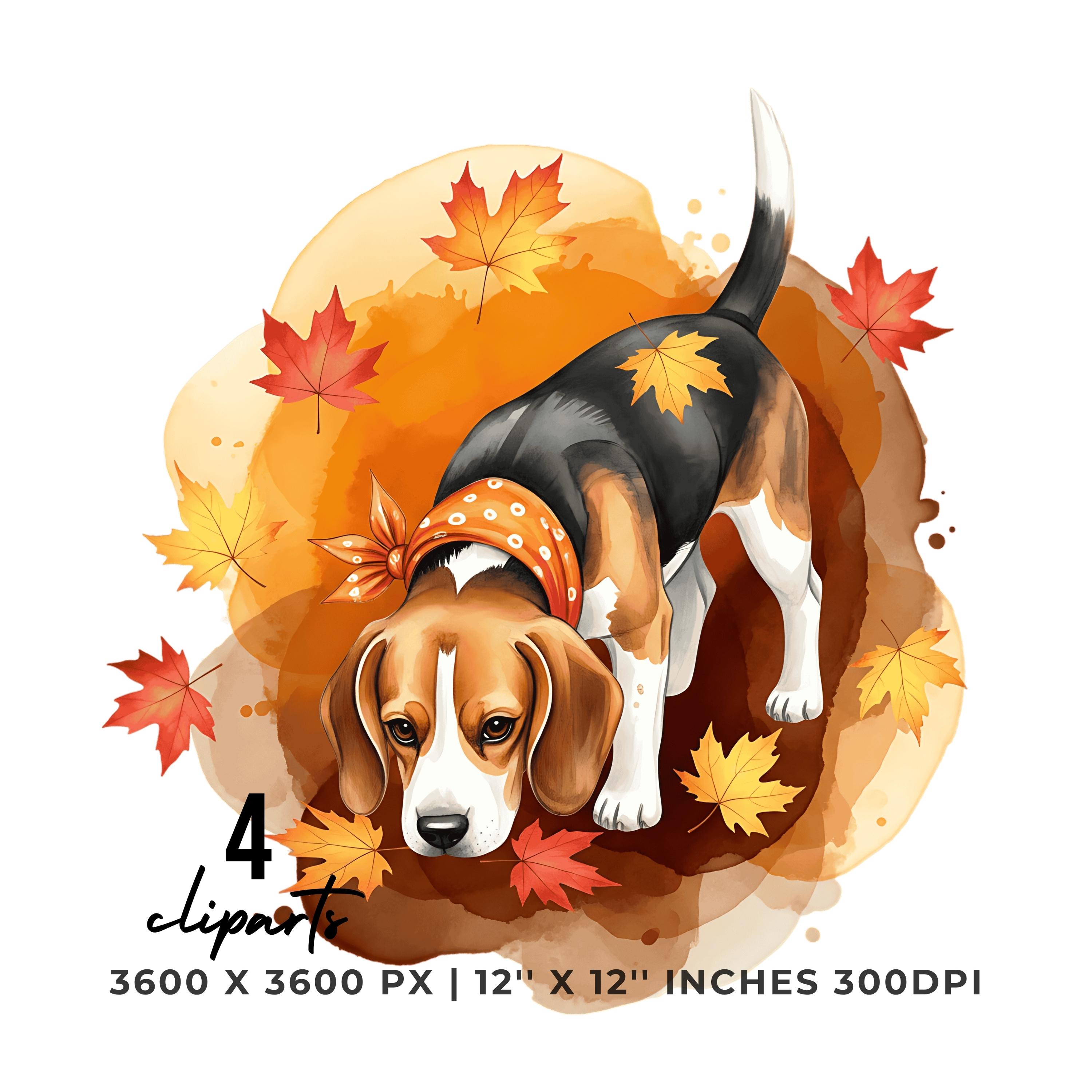 Beagle Clipart PNG | Watercolor Beagle nose to the ground, tracking a scent trail through autumn leaves | Autumn 4 PNG 4 JPG Commercial Use is an eye-catching, high-resolution digital asset designed for creators, crafters, teachers, and small business owners looking to elevate their visuals.