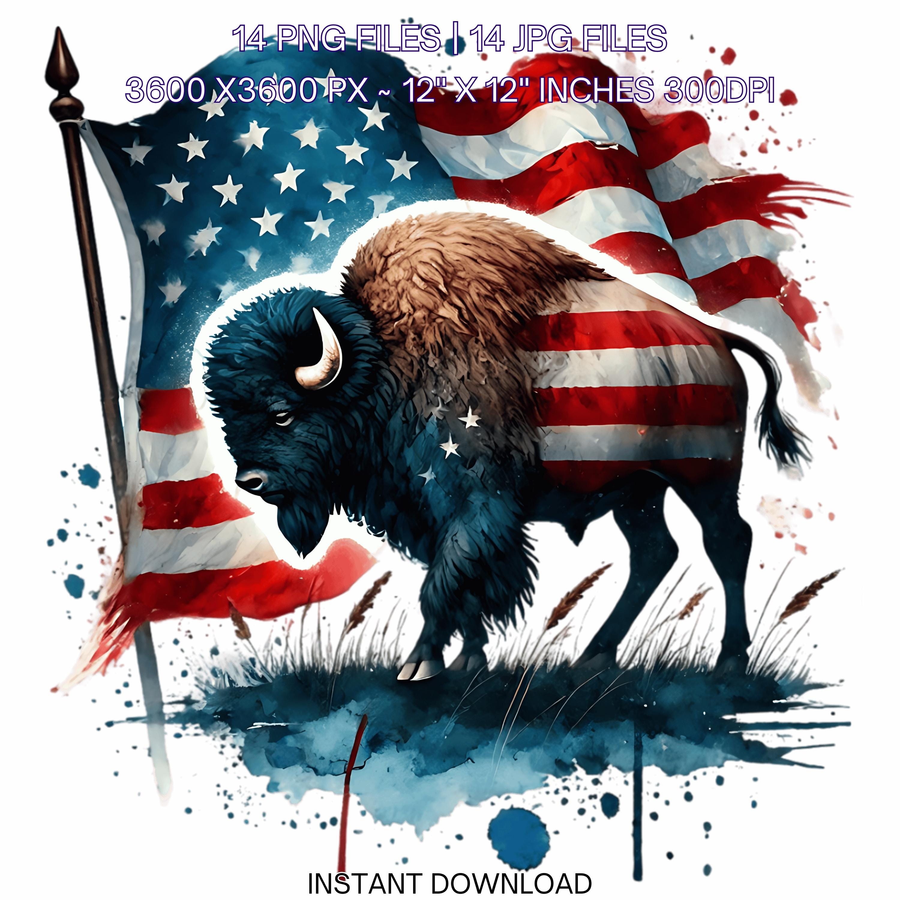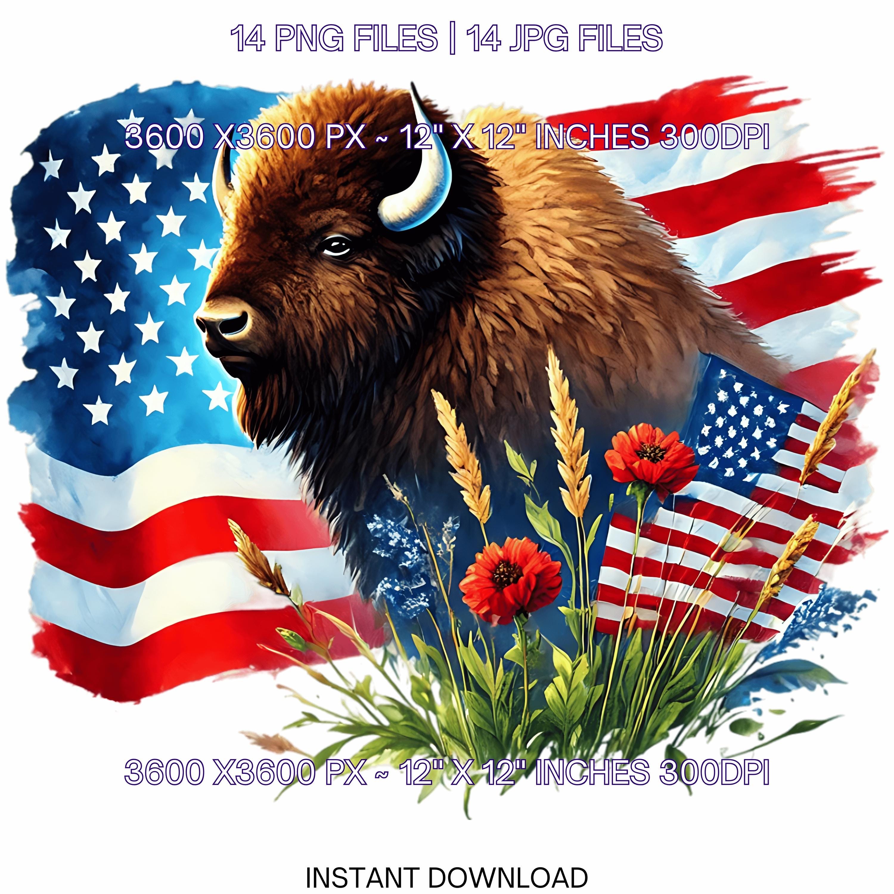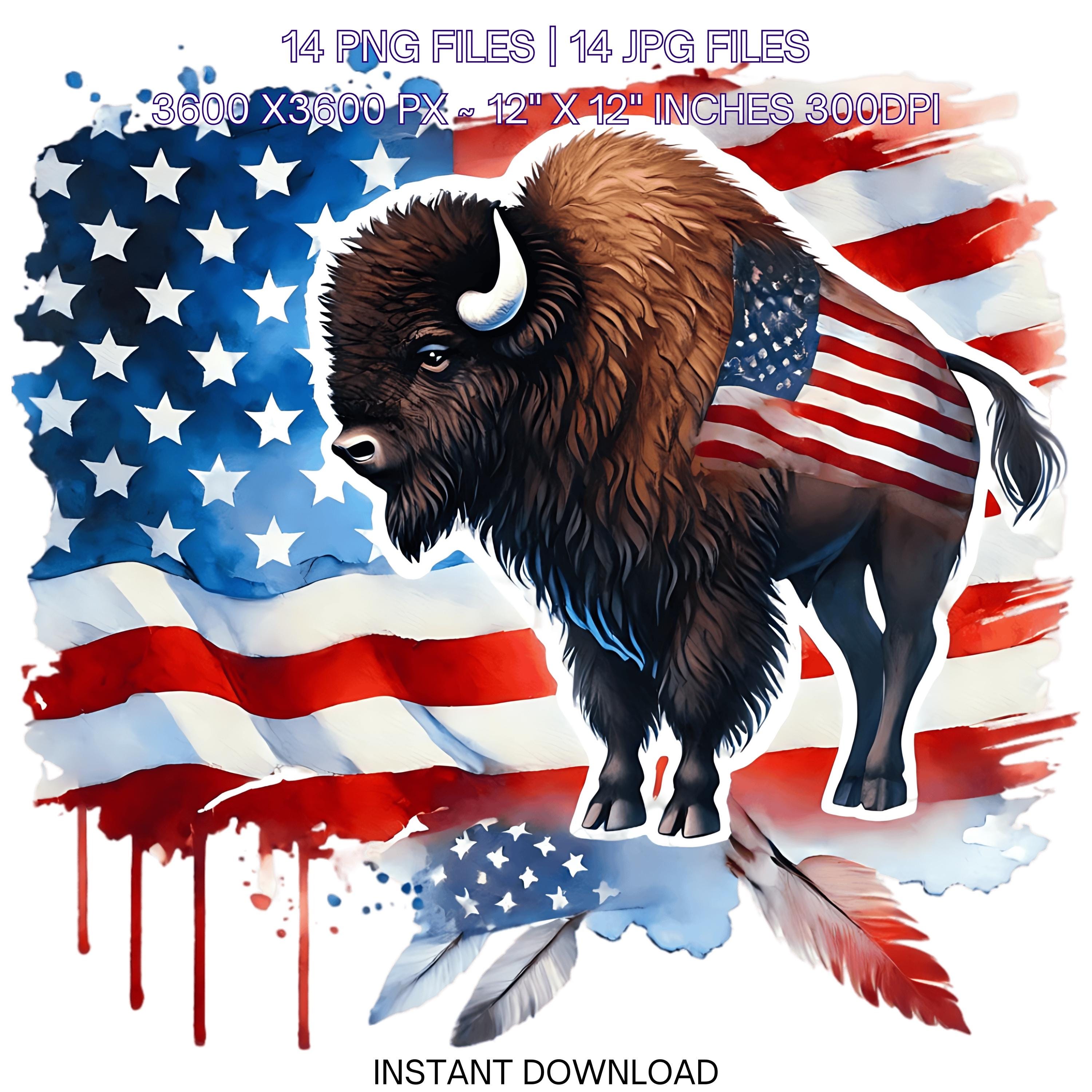 BISON Flag PNG | 14 Patriotic USA Bison Flag Clipart | Wildland Bison Transparent | United States Bison Flag Sublimation Commercial Use is an eye-catching, high-resolution digital asset designed for creators, crafters, teachers, and small business owners looking to elevate their visuals.
