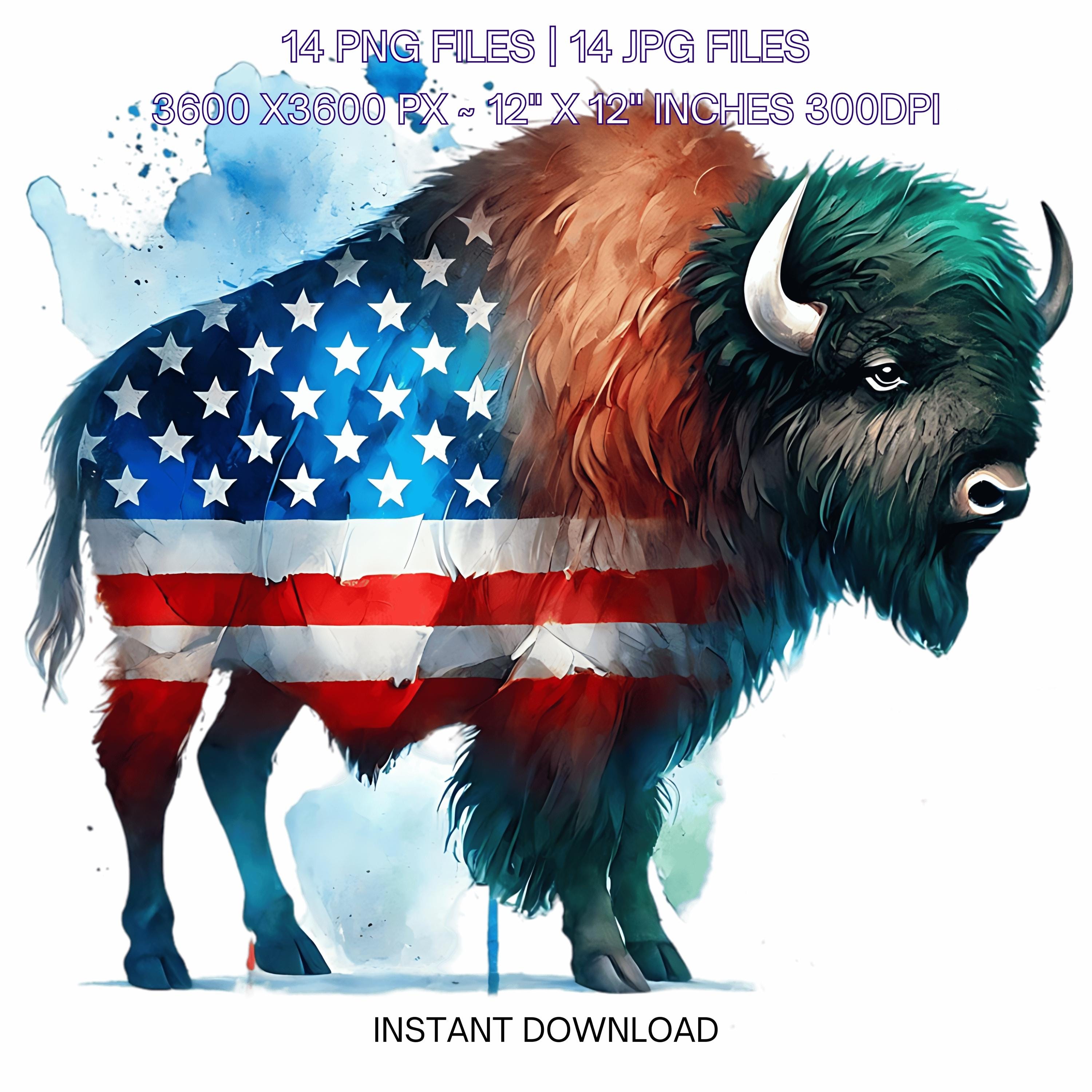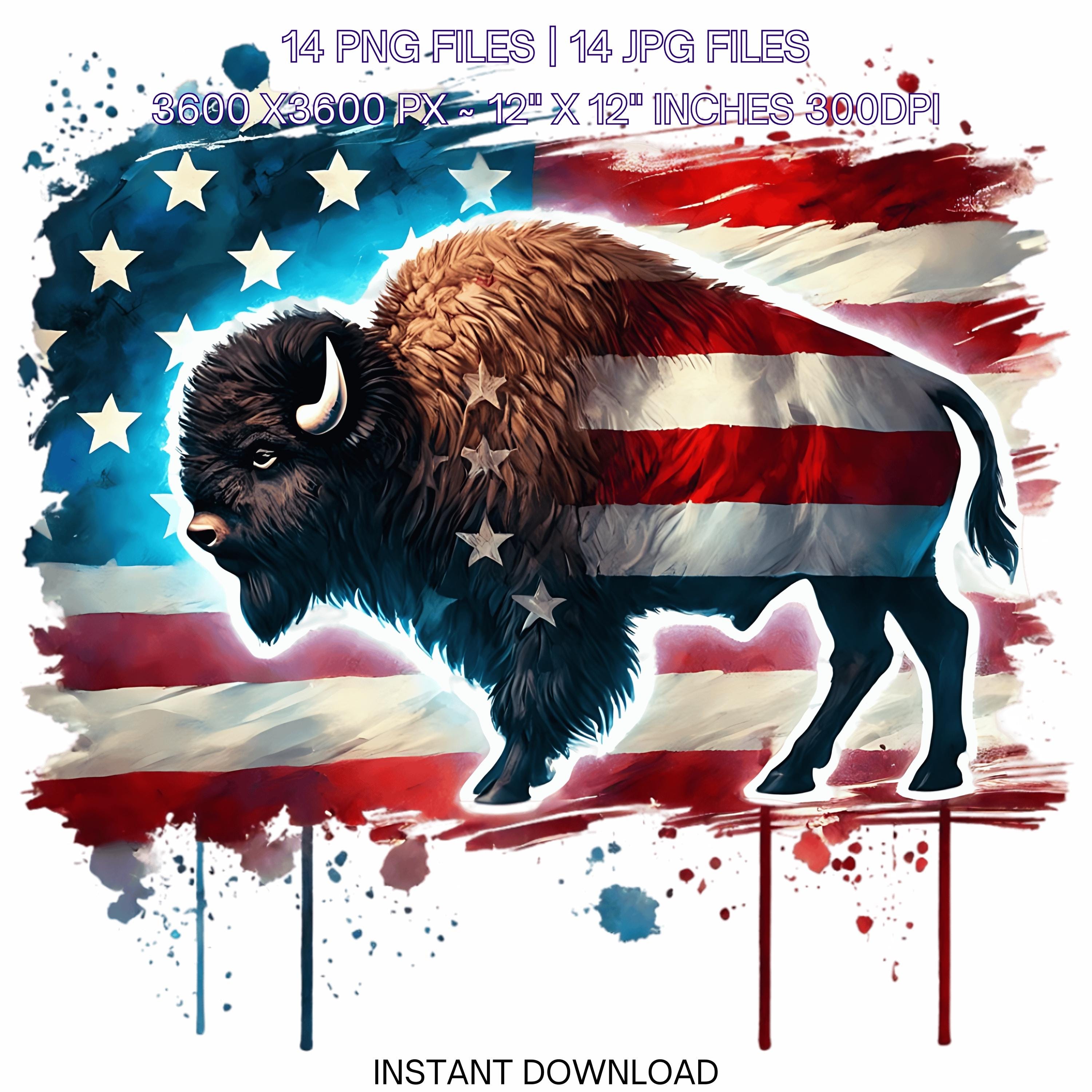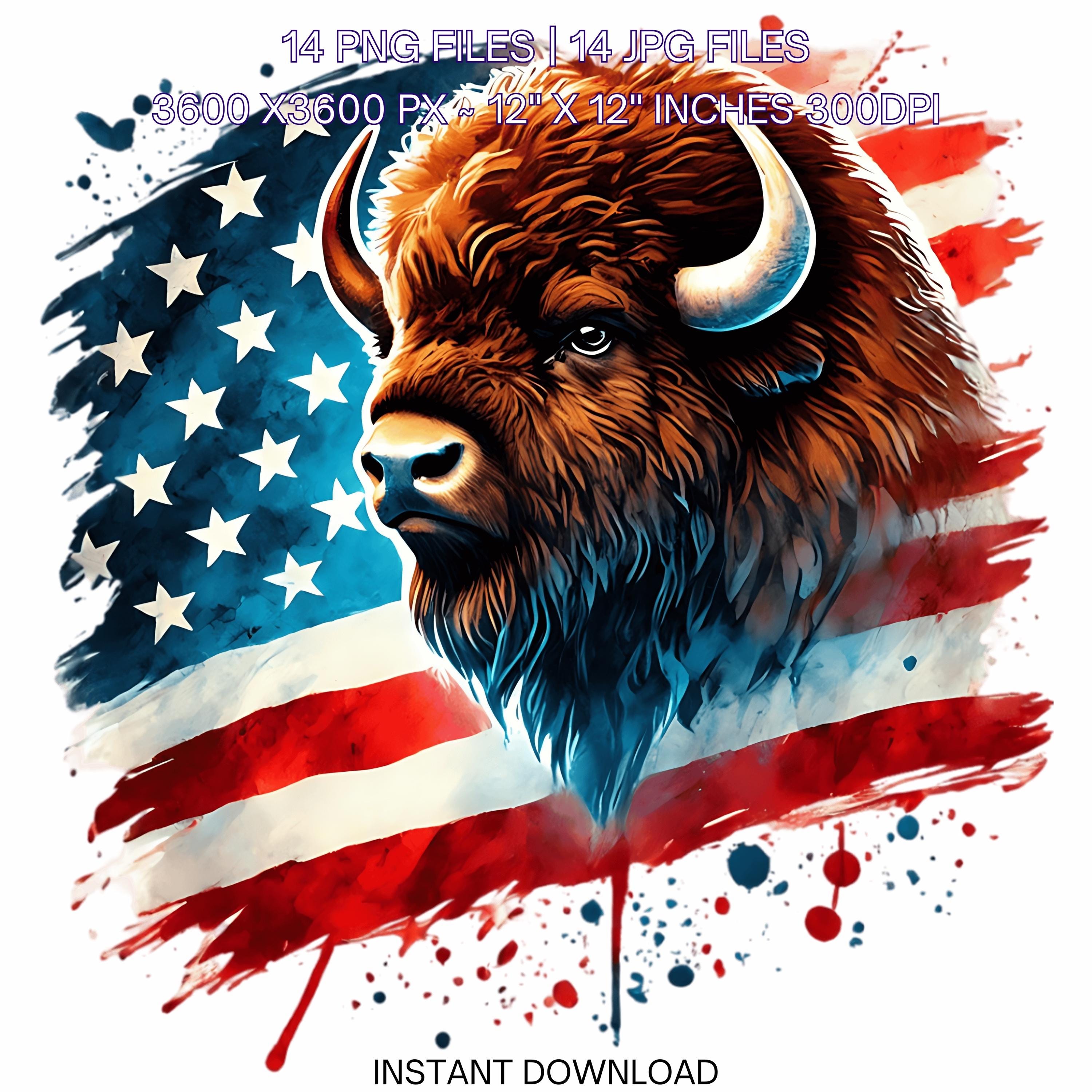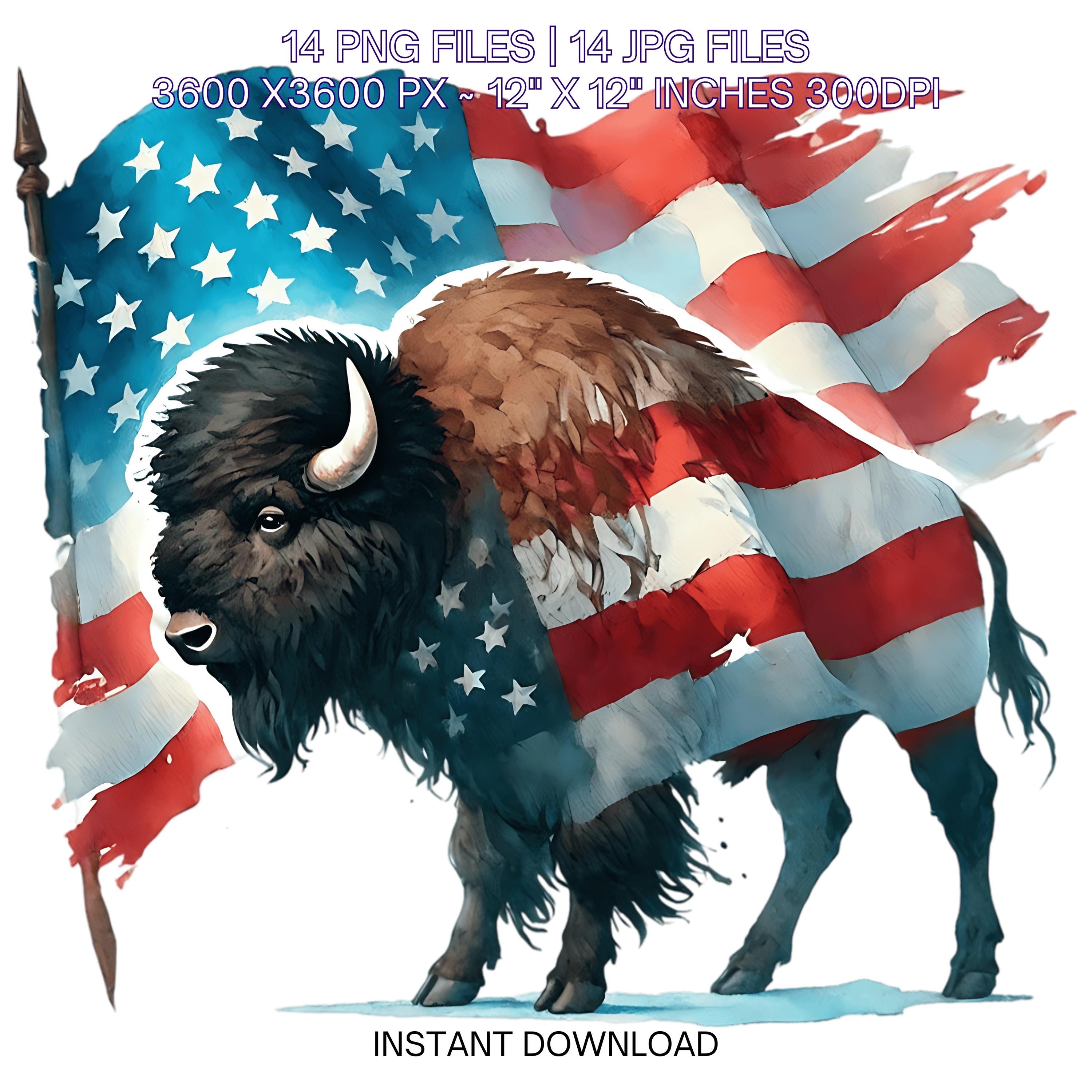 BISON Flag PNG | 14 Patriotic USA Bison Flag Clipart | Wildland Bison Transparent | United States Bison Flag Sublimation Commercial Use is an eye-catching, high-resolution digital asset designed for creators, crafters, teachers, and small business owners looking to elevate their visuals.