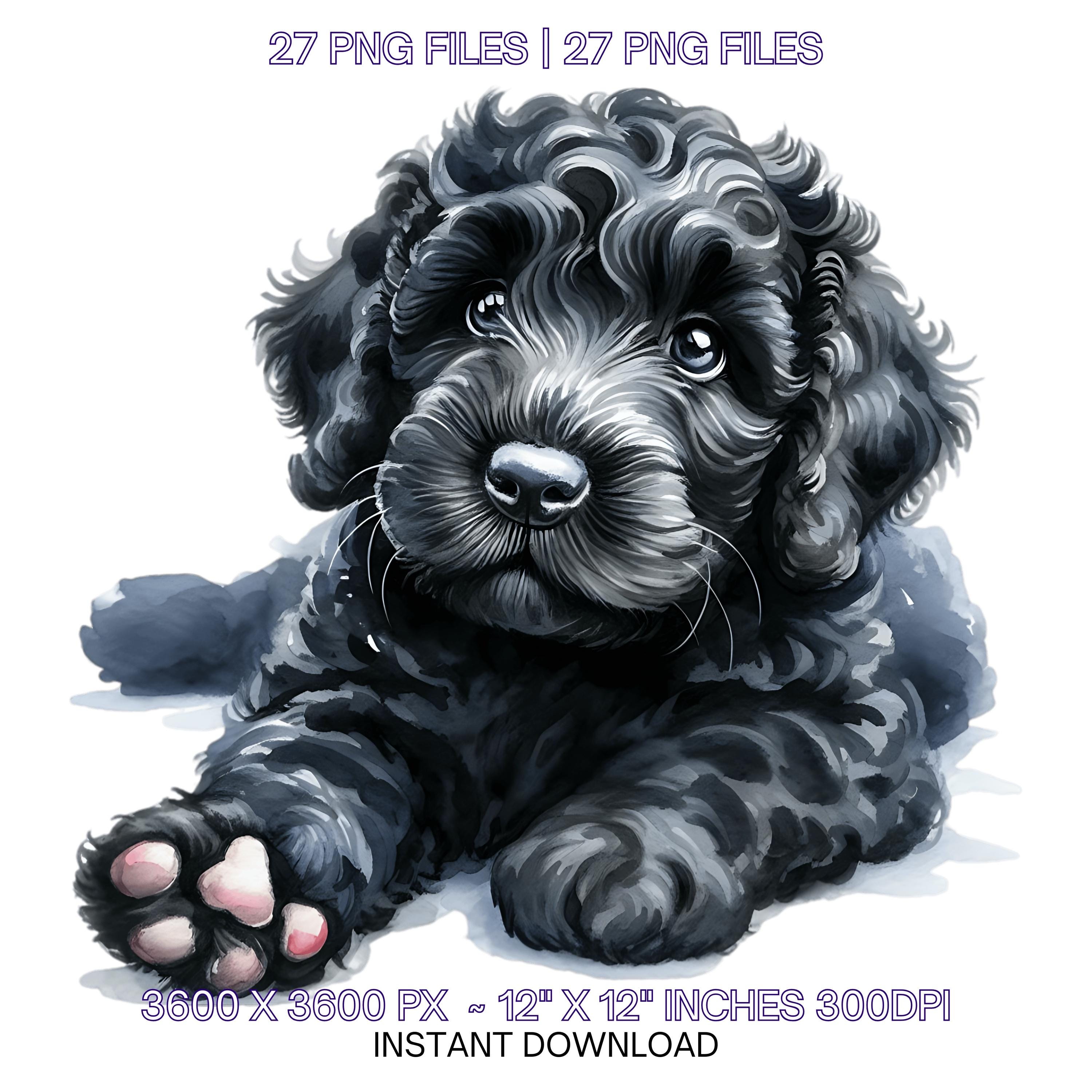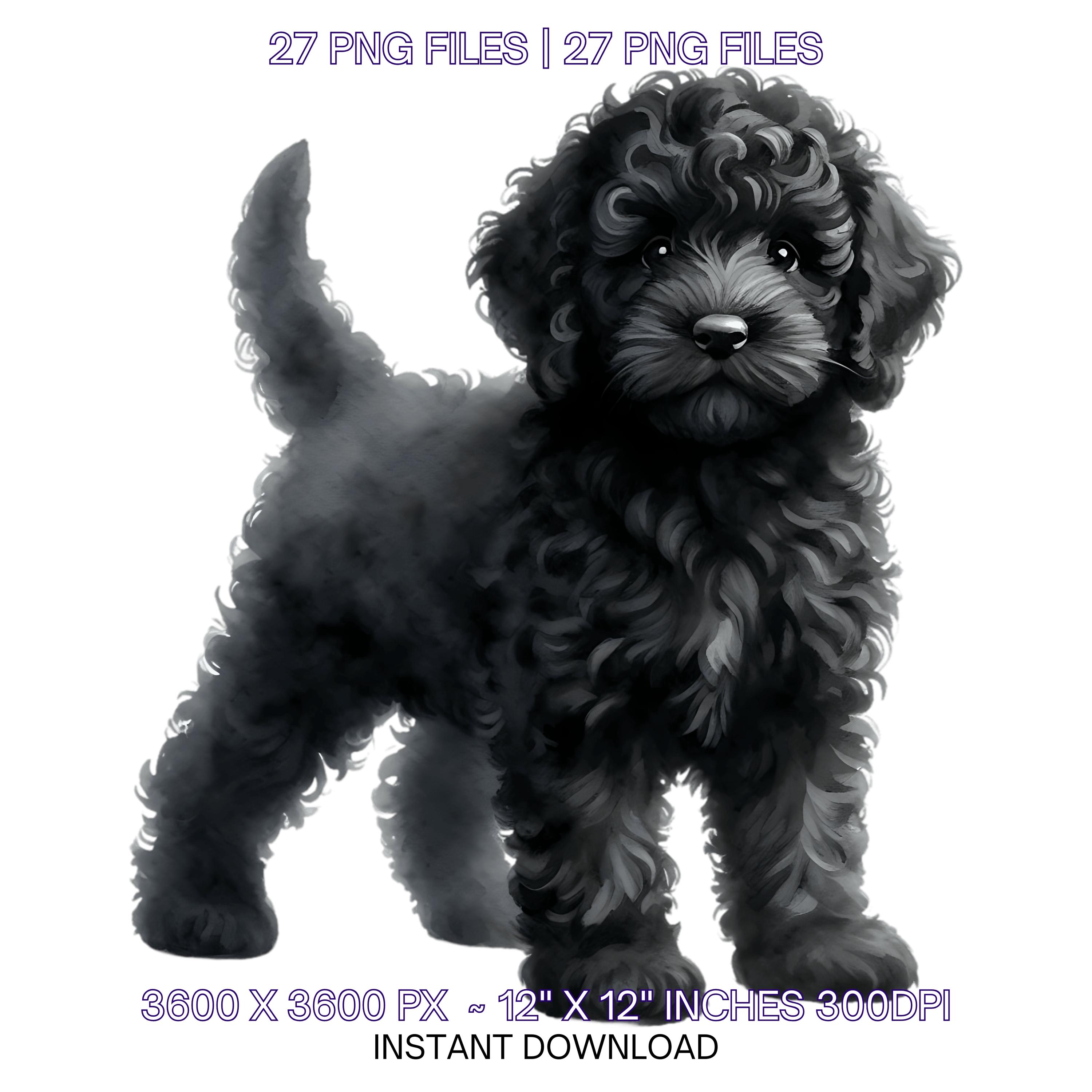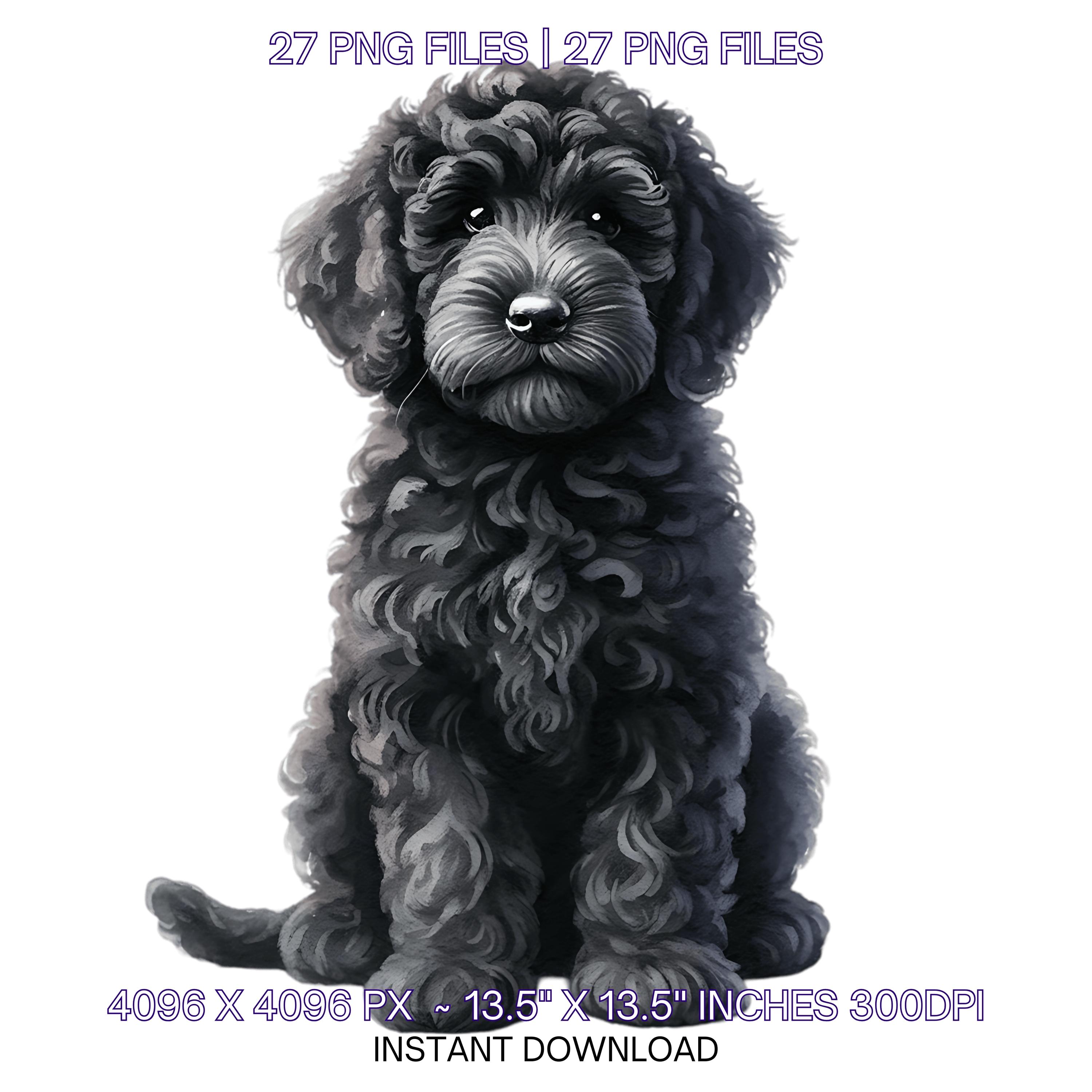Black Goldendoodle Puppy Clipart | 27 PNG 27 JPG | Watercolor Baby Golden Doodle for Sublimation, Card Making, Papercrafts | Commercial Use is an eye-catching, high-resolution digital asset designed for creators, crafters, teachers, and small business owners looking to elevate their visuals.