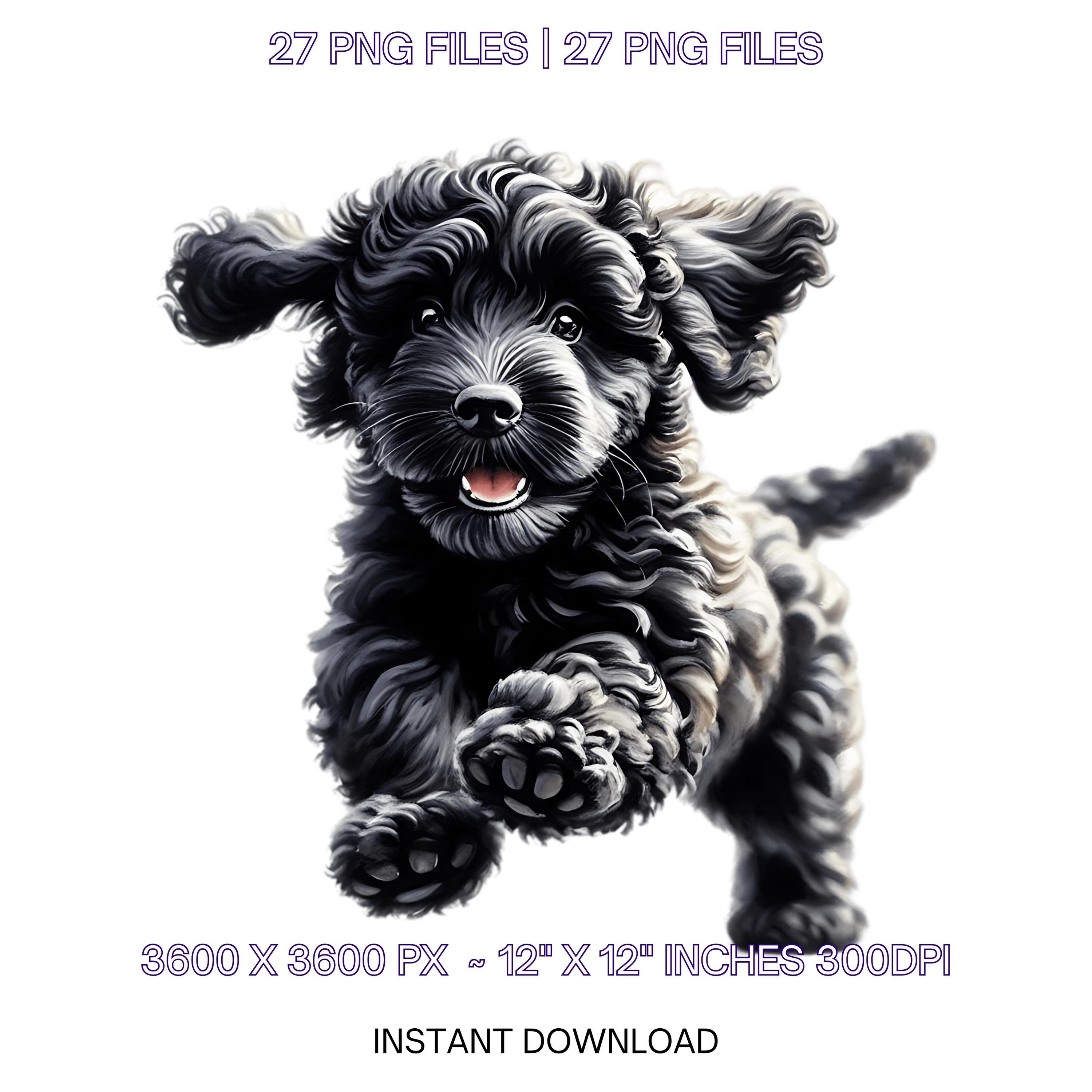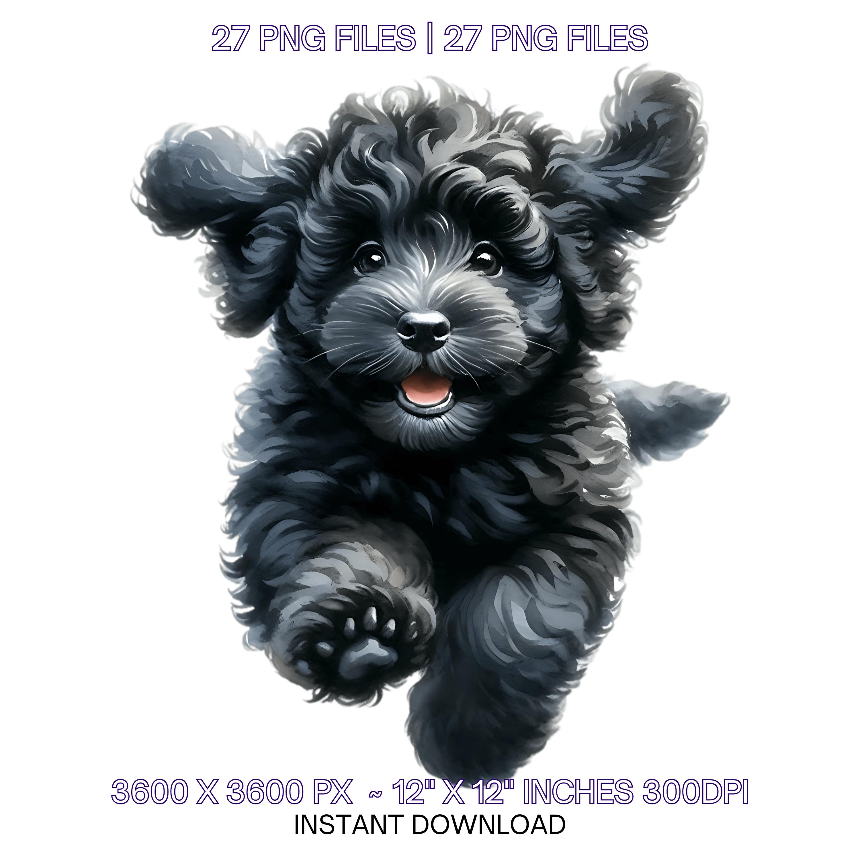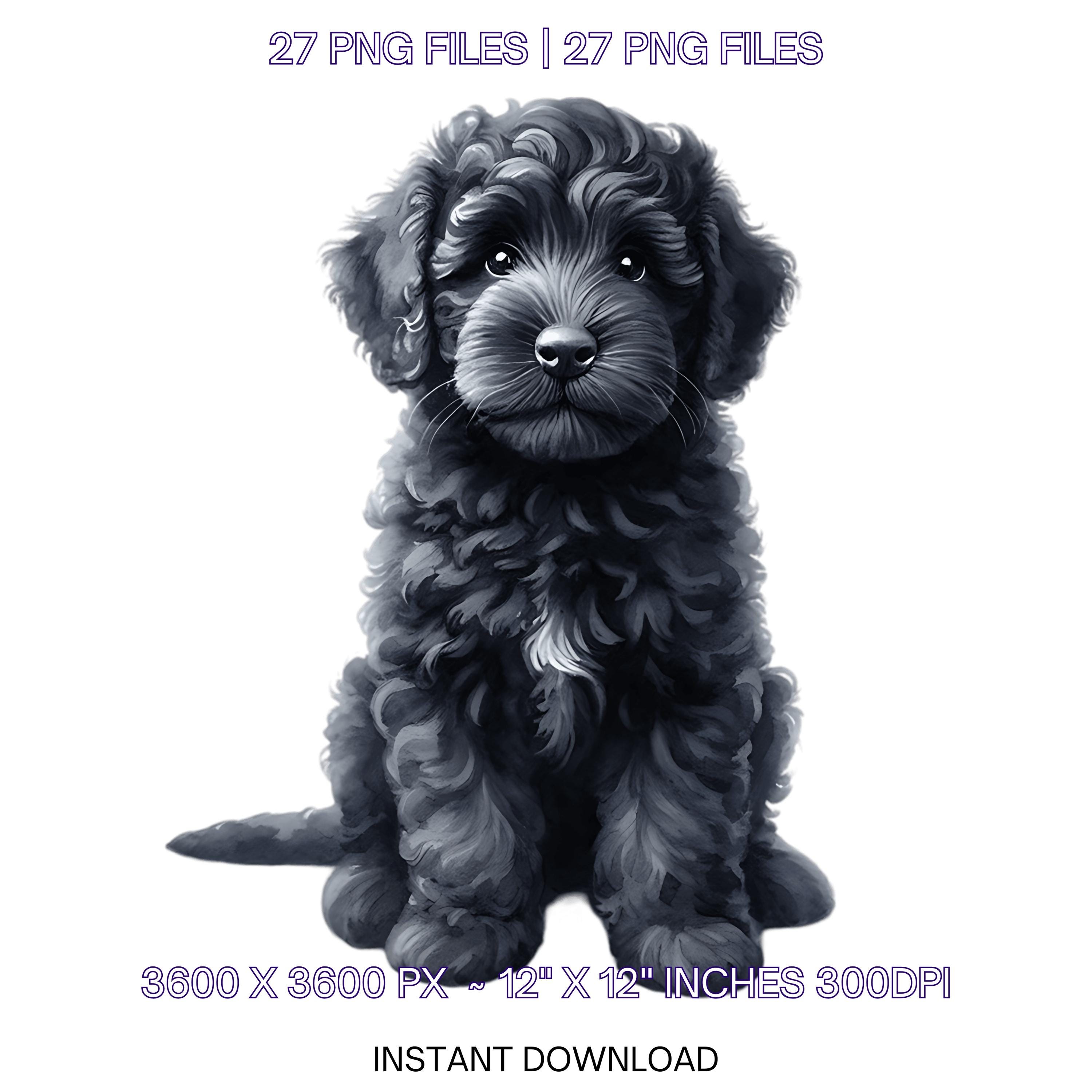 Black Goldendoodle Puppy Clipart | 27 PNG 27 JPG | Watercolor Baby Golden Doodle for Sublimation, Card Making, Papercrafts | Commercial Use is an eye-catching, high-resolution digital asset designed for creators, crafters, teachers, and small business owners looking to elevate their visuals.