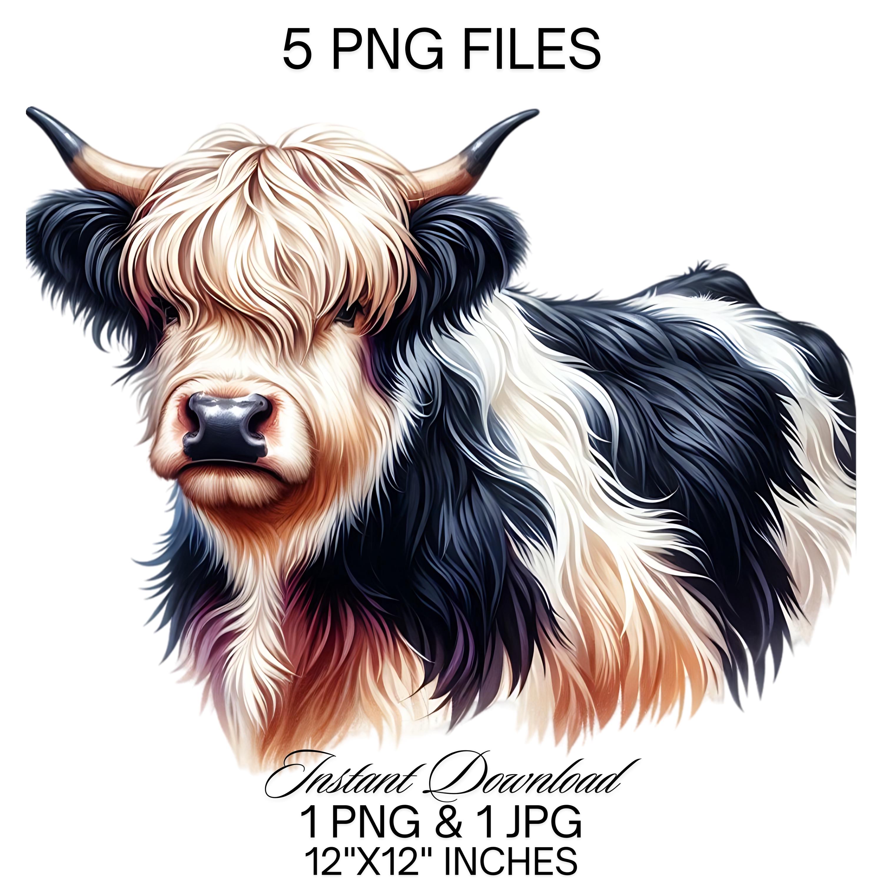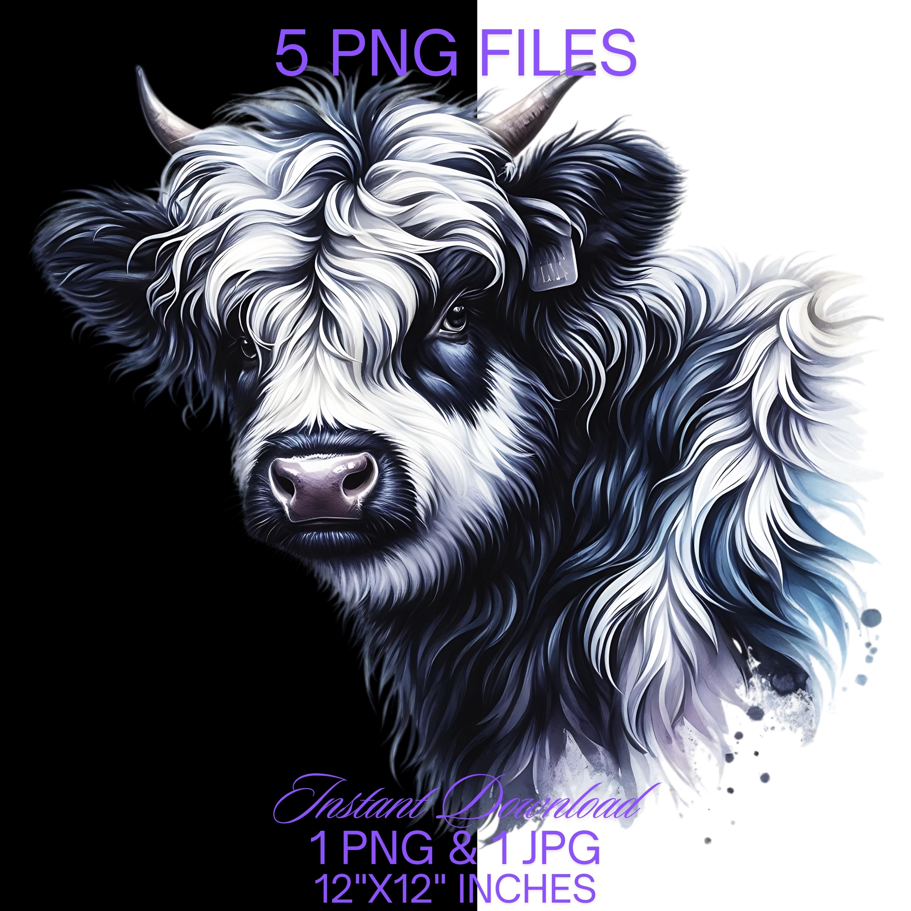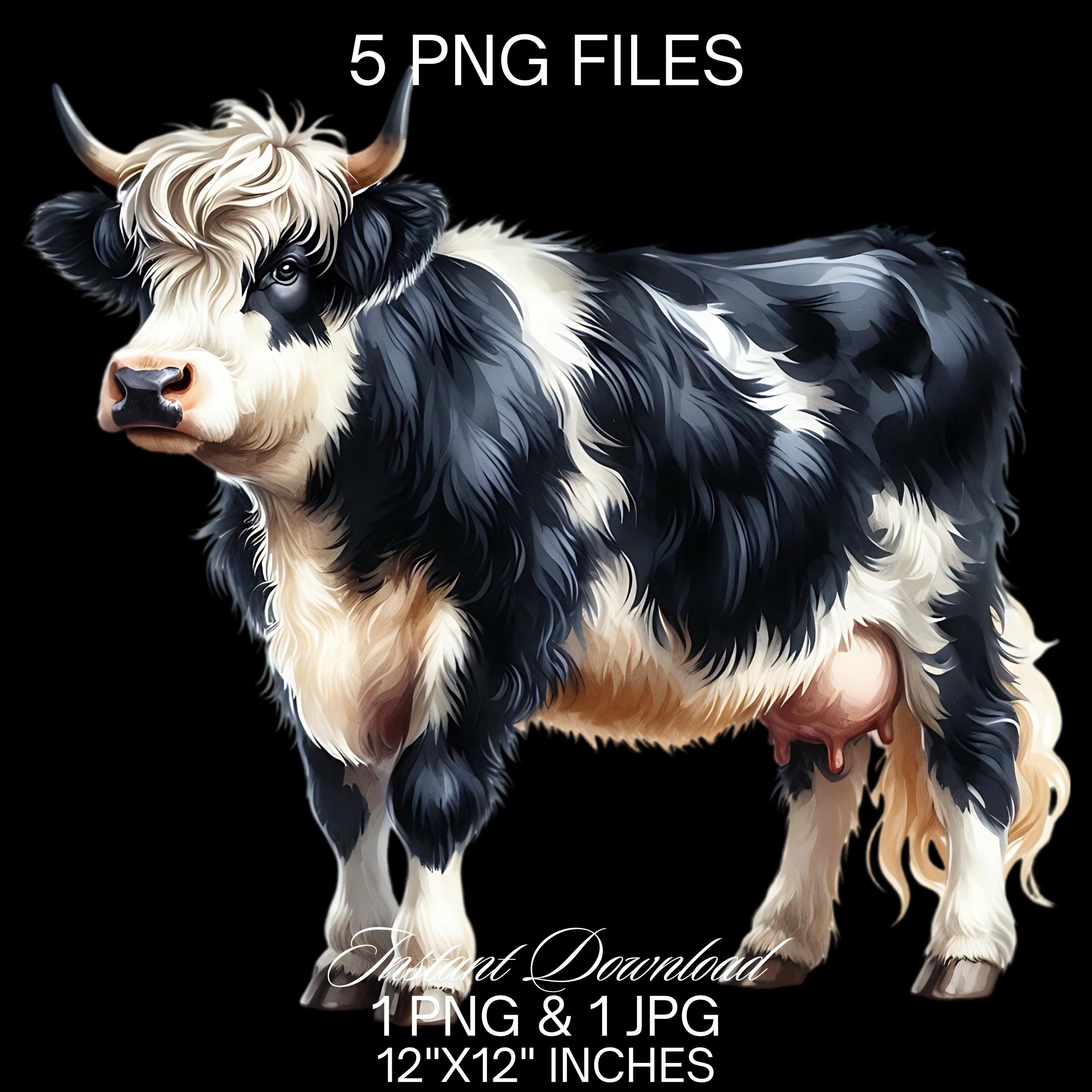 Black & White Cow Clipart PNG | 5 Watercolor Highland Dairy Milk Cow Commercial Use | Farm Milk Cow Graphic Dairy Cattle Design Illustration – Instant Digital Download - TumblersGalaxy