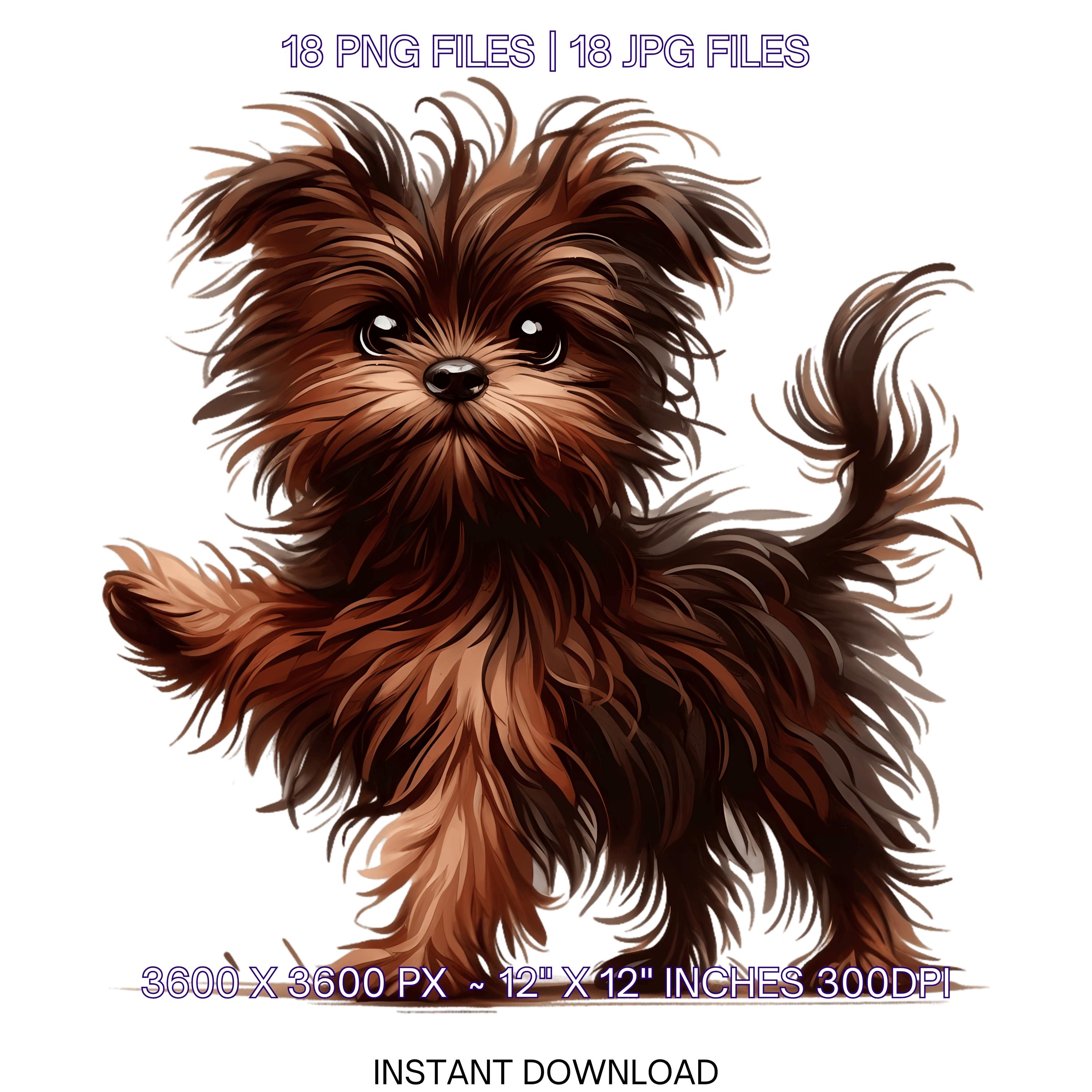 Brown Affenpinscher Clipart | 18 Watercolor Brown Affenpinscher Puppy Dog PNG for Card Making, Scrapbooking, Sublimation, Commercial Use is an eye-catching, high-resolution digital asset designed for creators, crafters, teachers, and small business owners looking to elevate their visuals.
