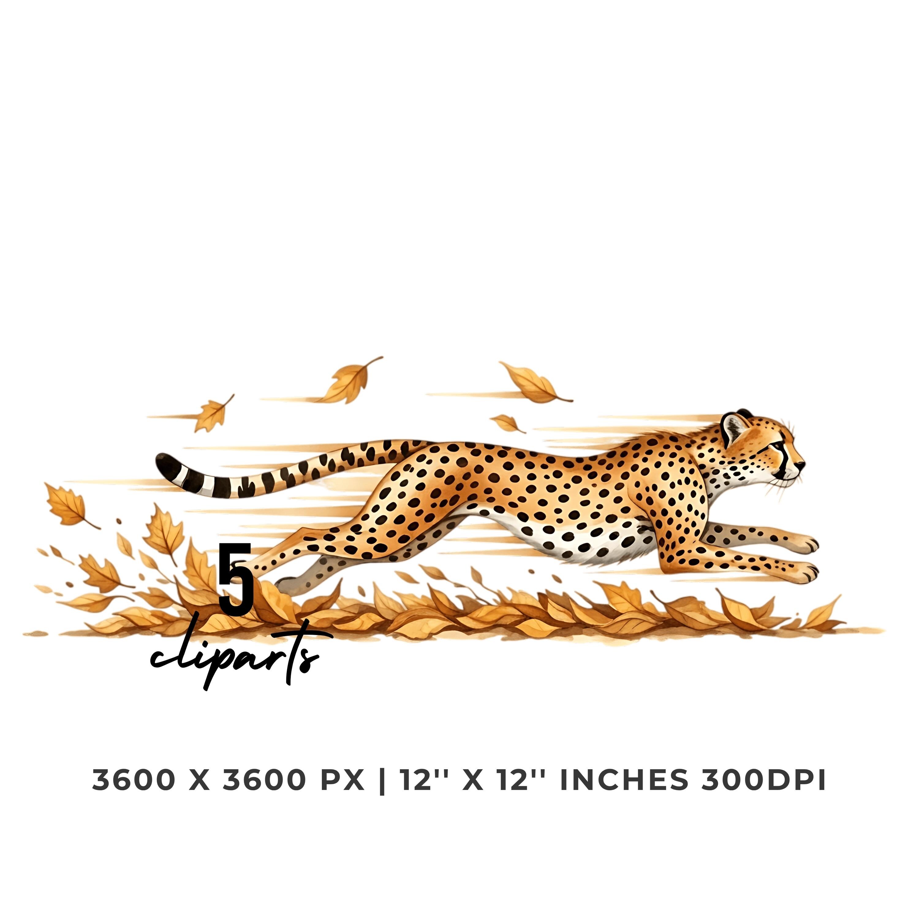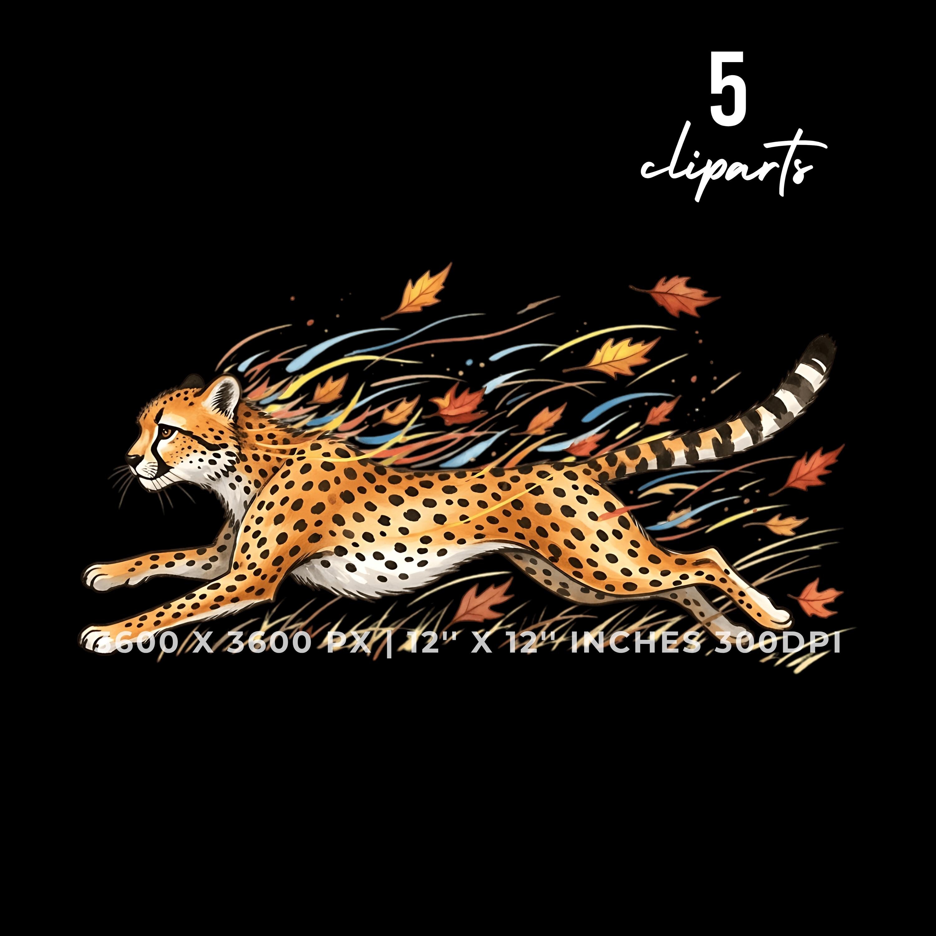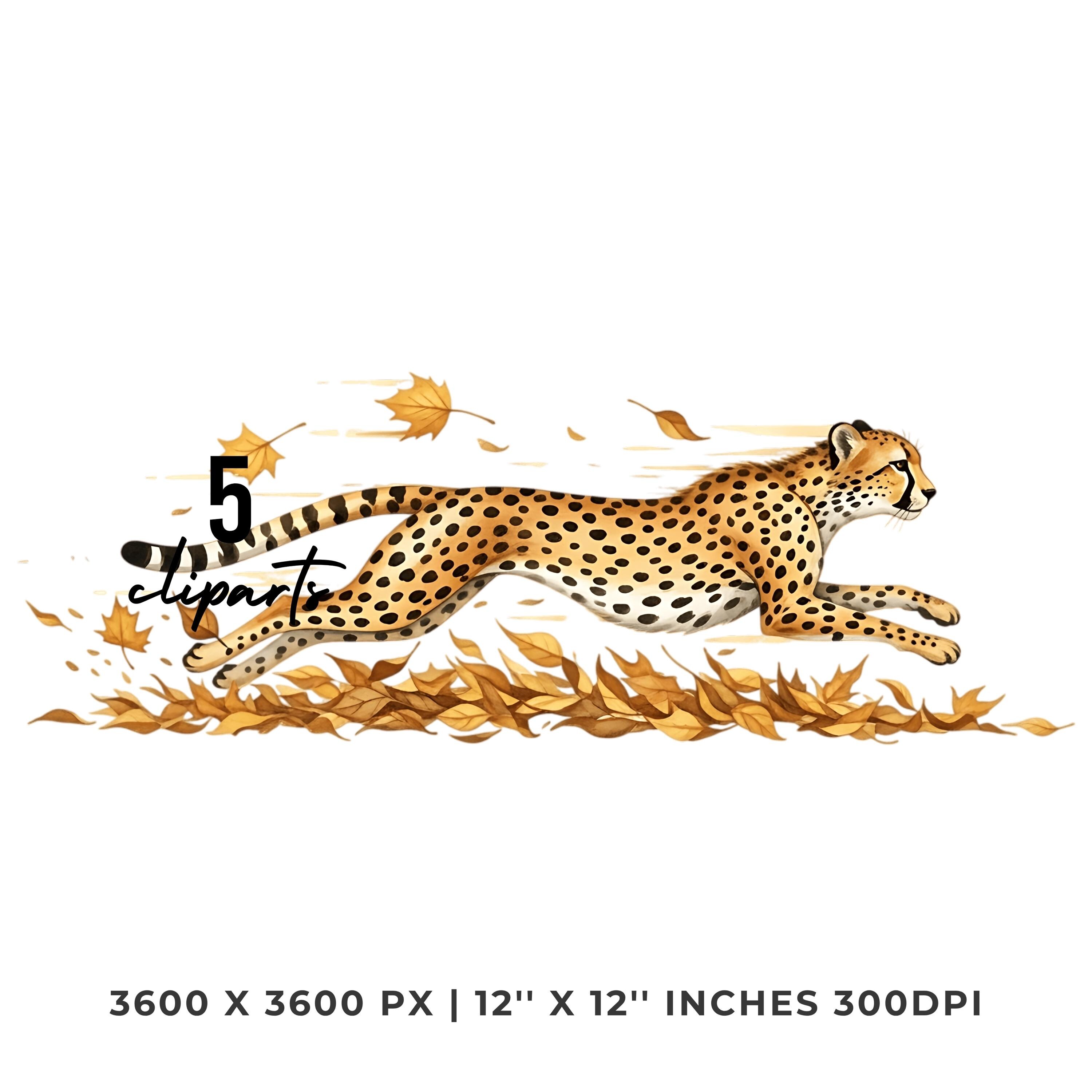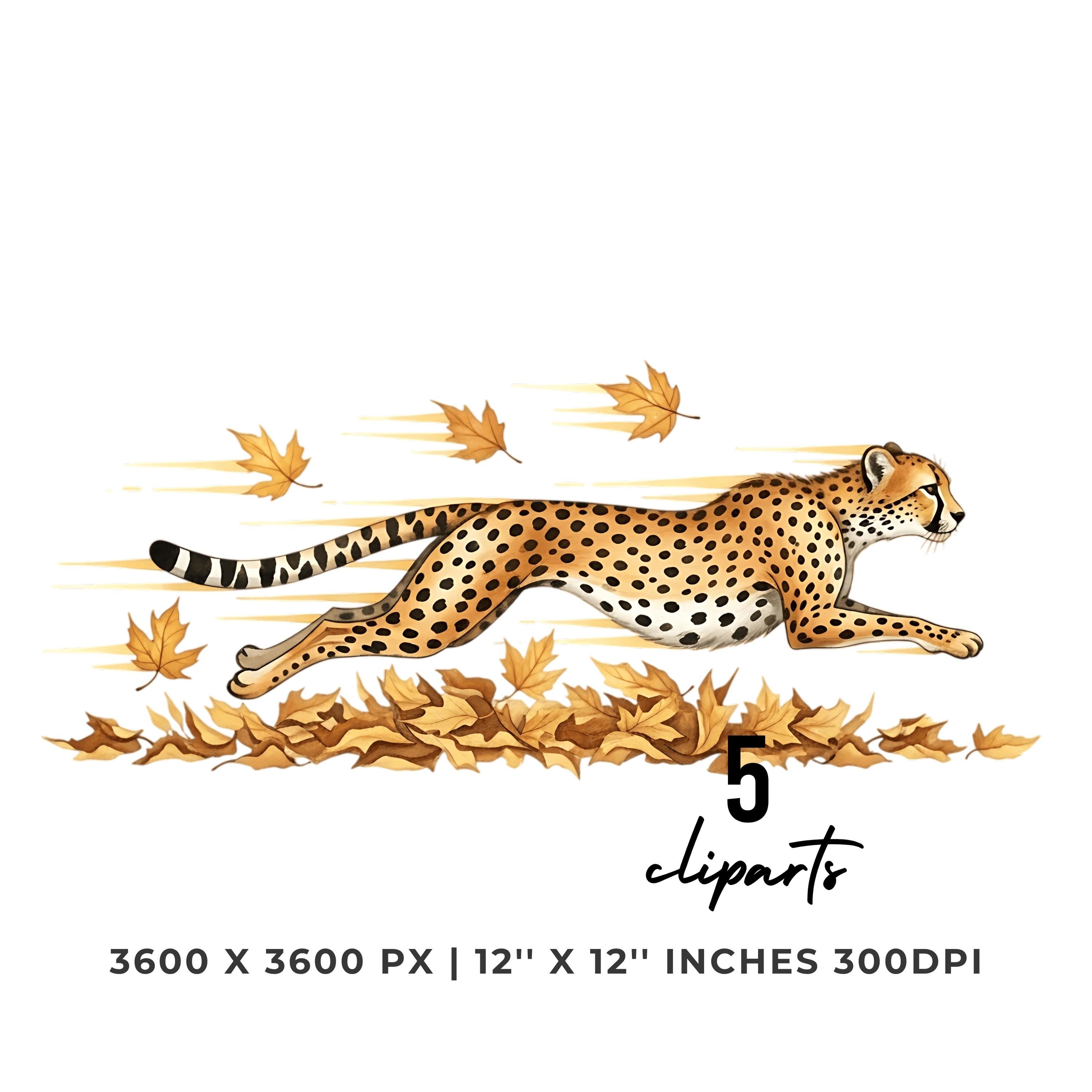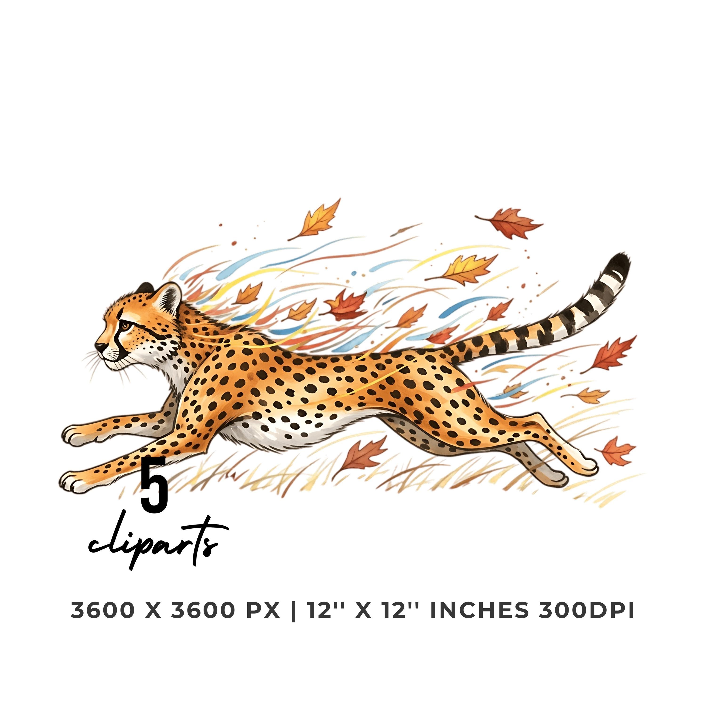 Cheetah Running with Autumn Leaves Clipart | Fall Cheetah Speed Illustration | Instant Download | 5 PNG & 5 JPG Sublimation Commercial Use is an eye-catching, high-resolution digital asset designed for creators, crafters, teachers, and small business owners looking to elevate their visuals.