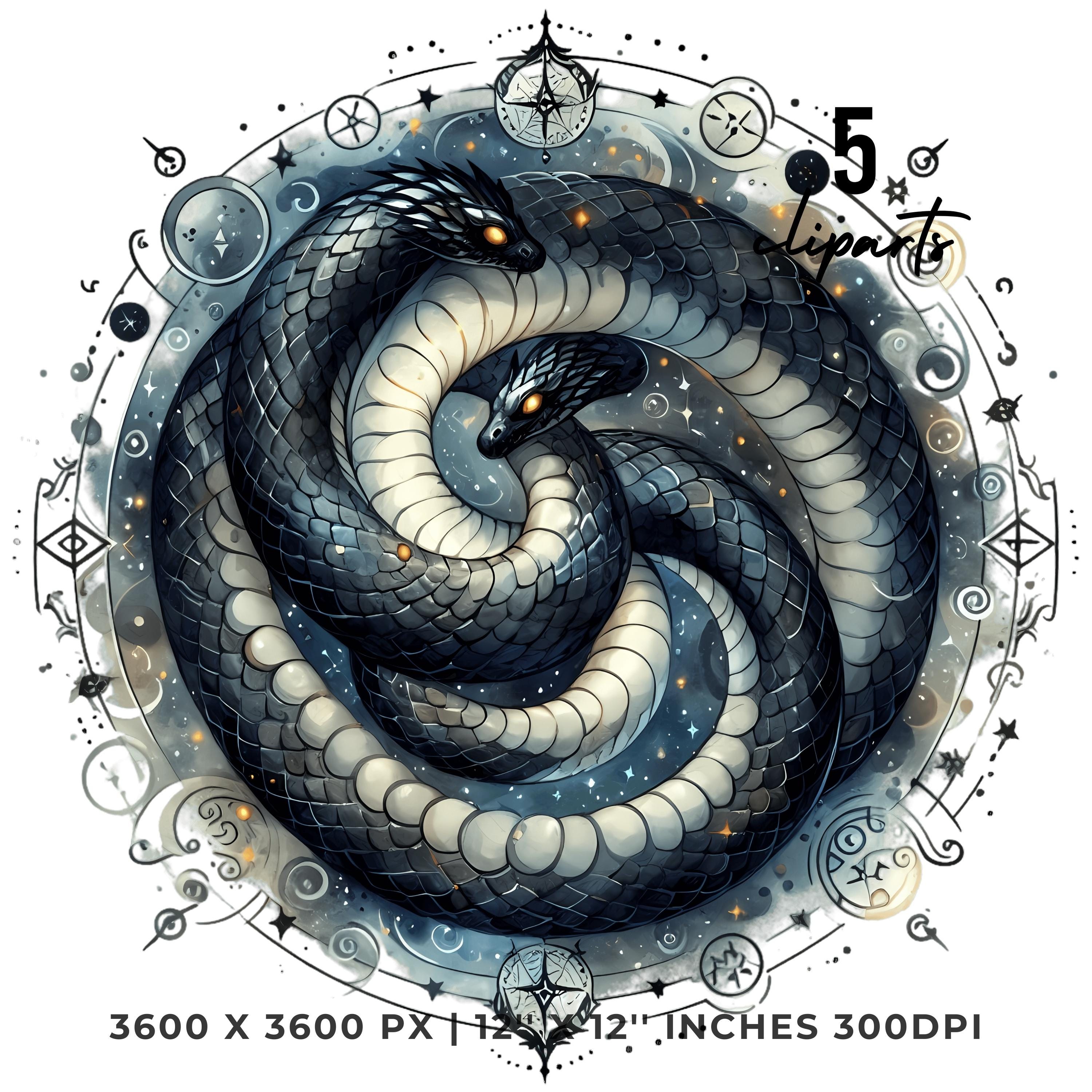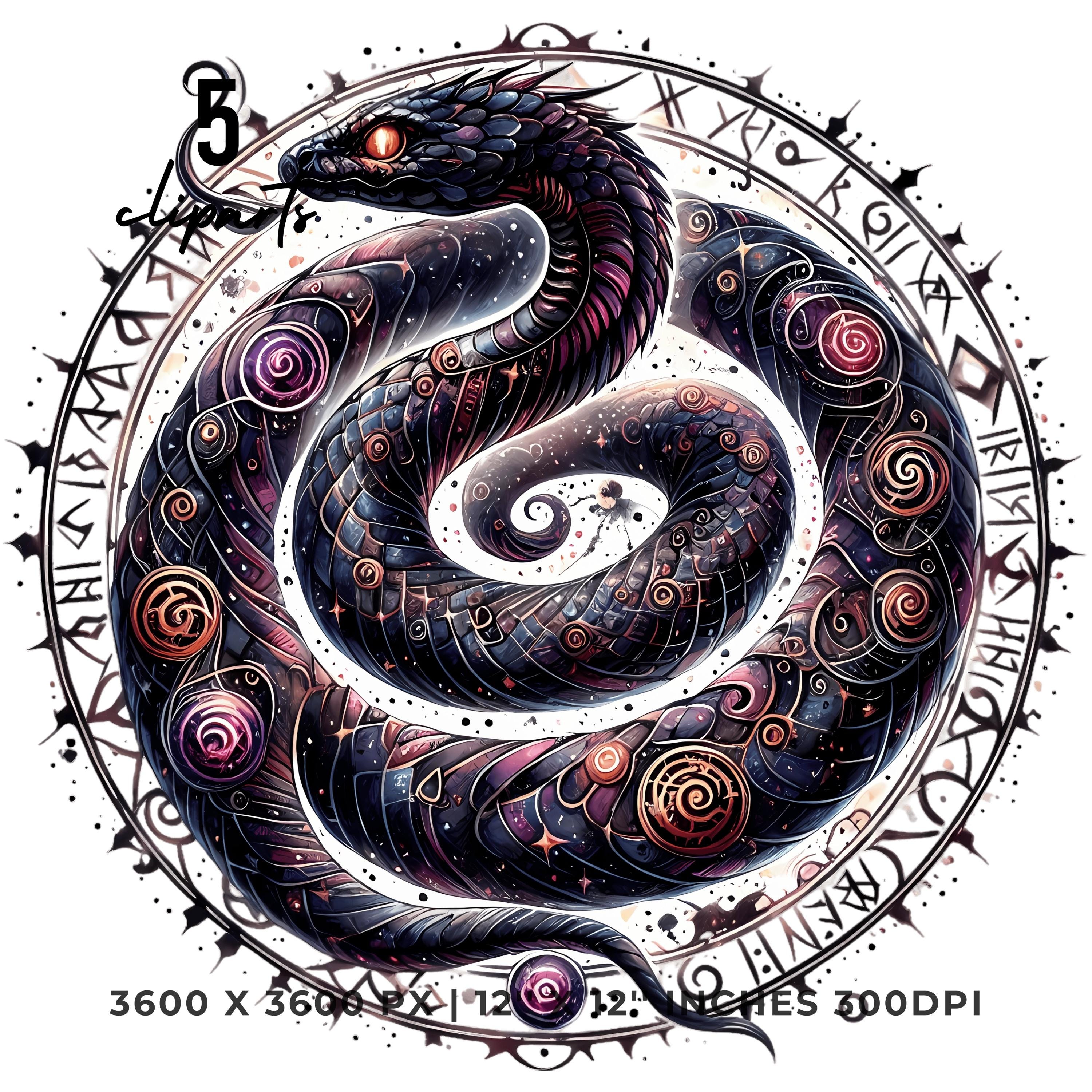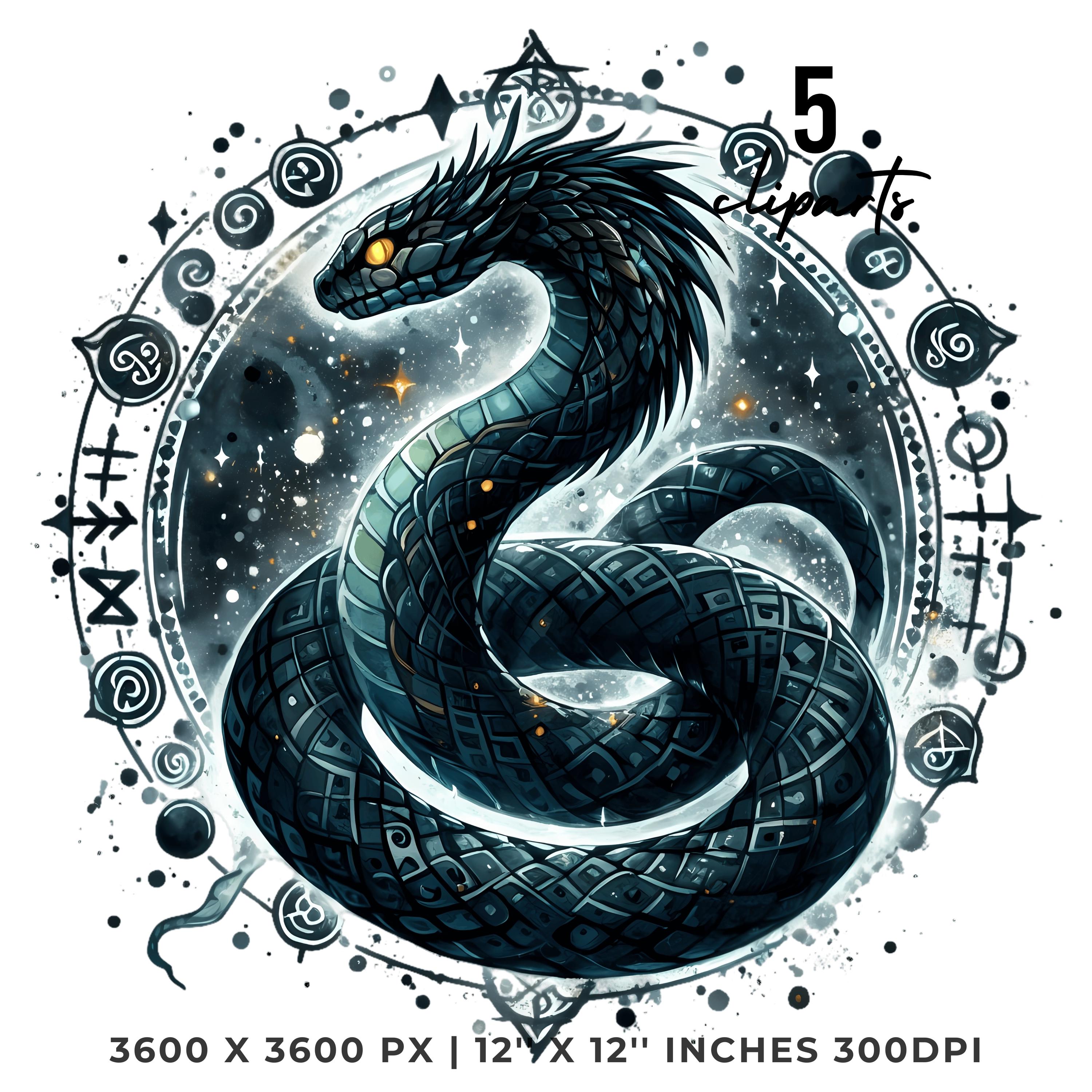 Coiled Serpent Clipart PNG | 5 Watercolor Coiled Serpent, glowing eyes, and mystical runes | | Sublimation Transparent Commercial Use is an eye-catching, high-resolution digital asset designed for creators, crafters, teachers, and small business owners looking to elevate their visuals.