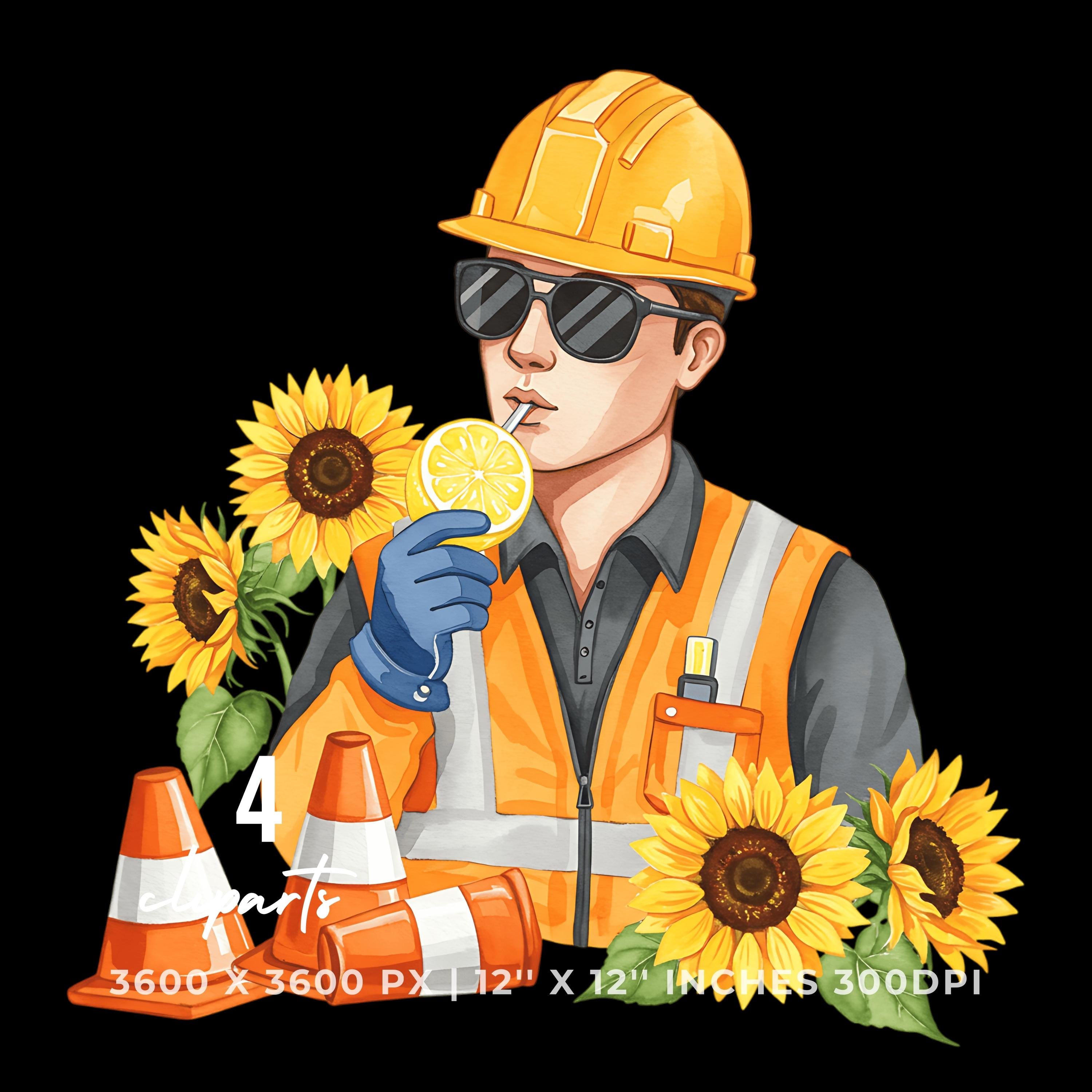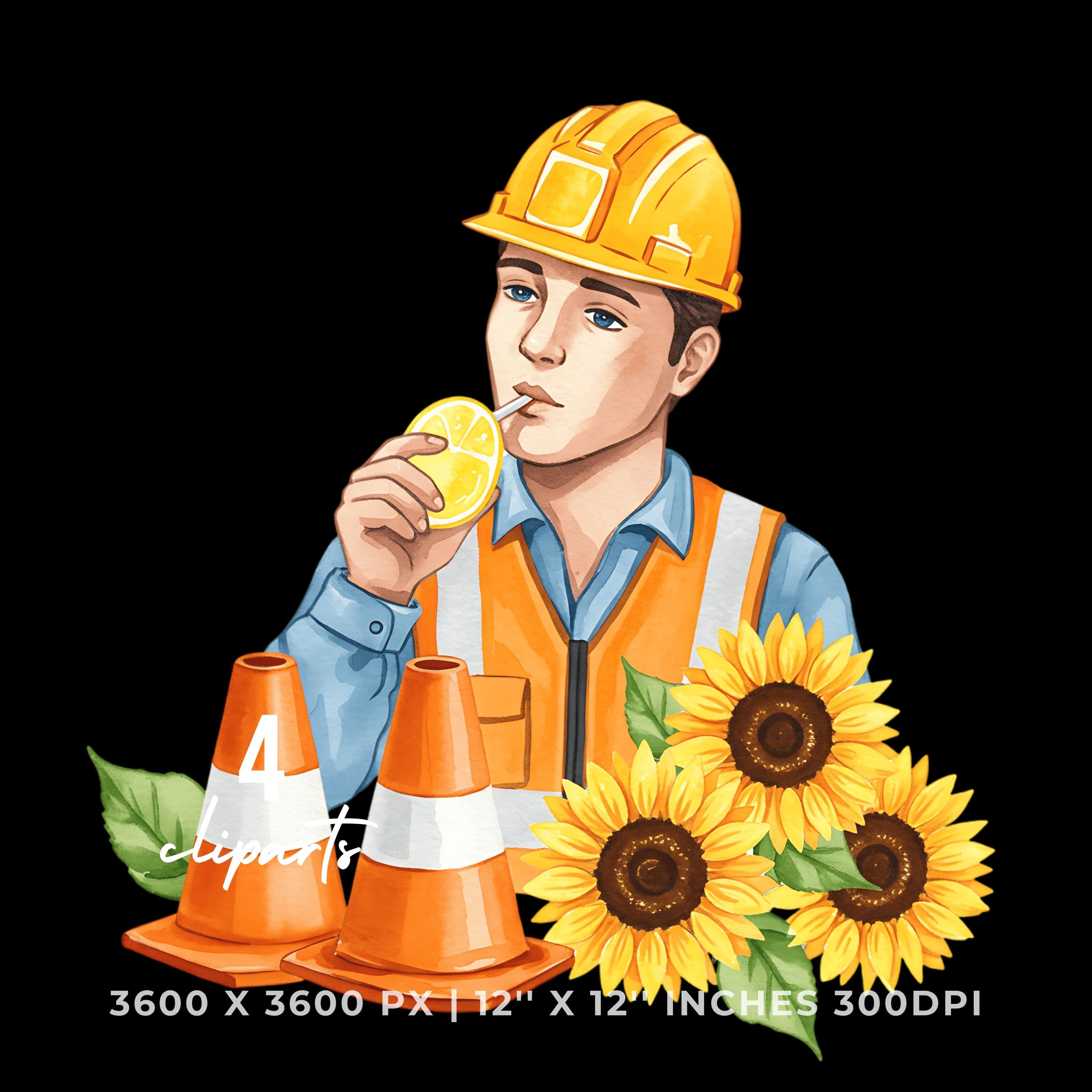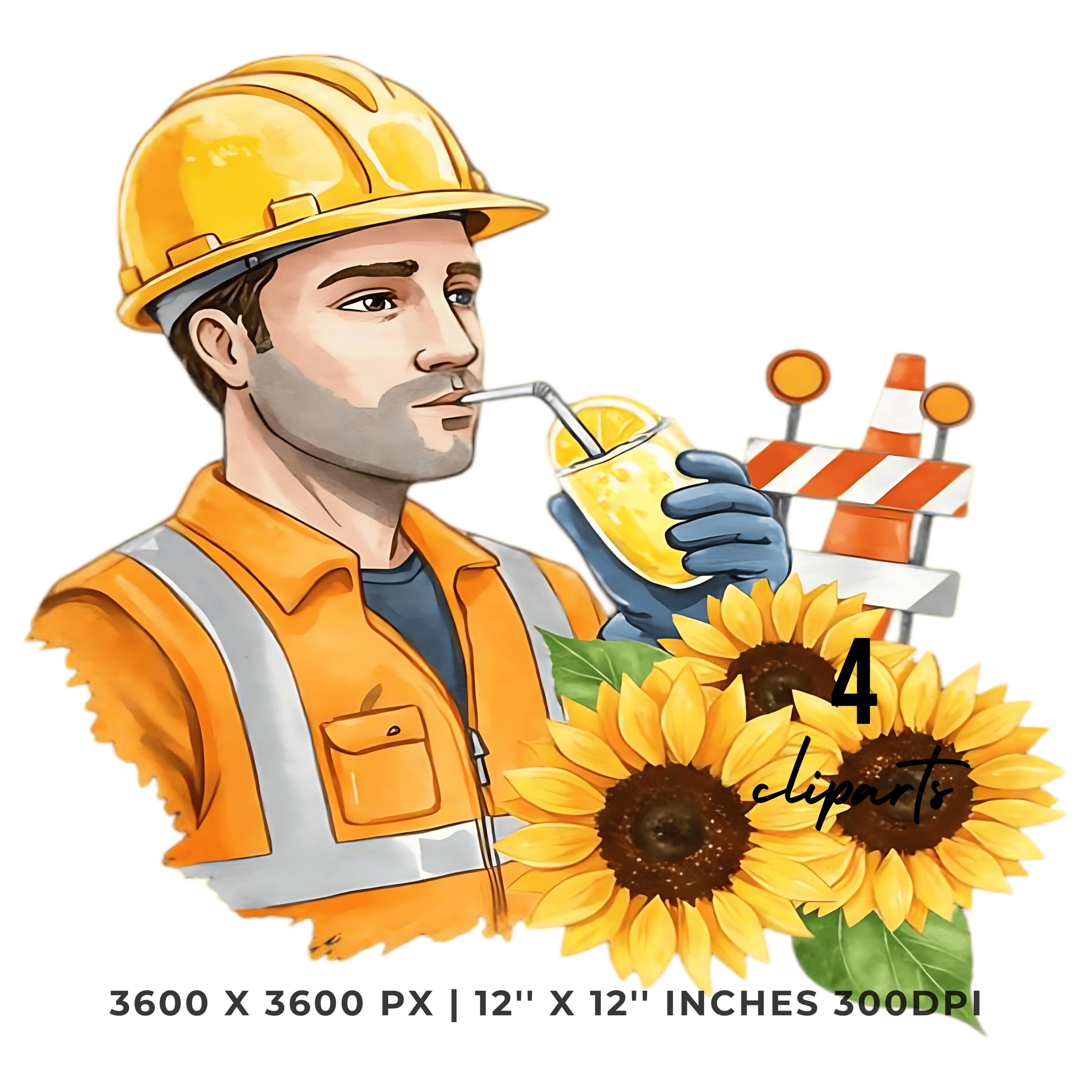 Construction Worker Clipart 4 PNG 4 JPG | Hard Hat Builder Sipping Drink | 12″x12″ 300DPI | Instant Download Graphic Commercial Use is an eye-catching, high-resolution digital asset designed for creators, crafters, teachers, and small business owners looking to elevate their visuals.