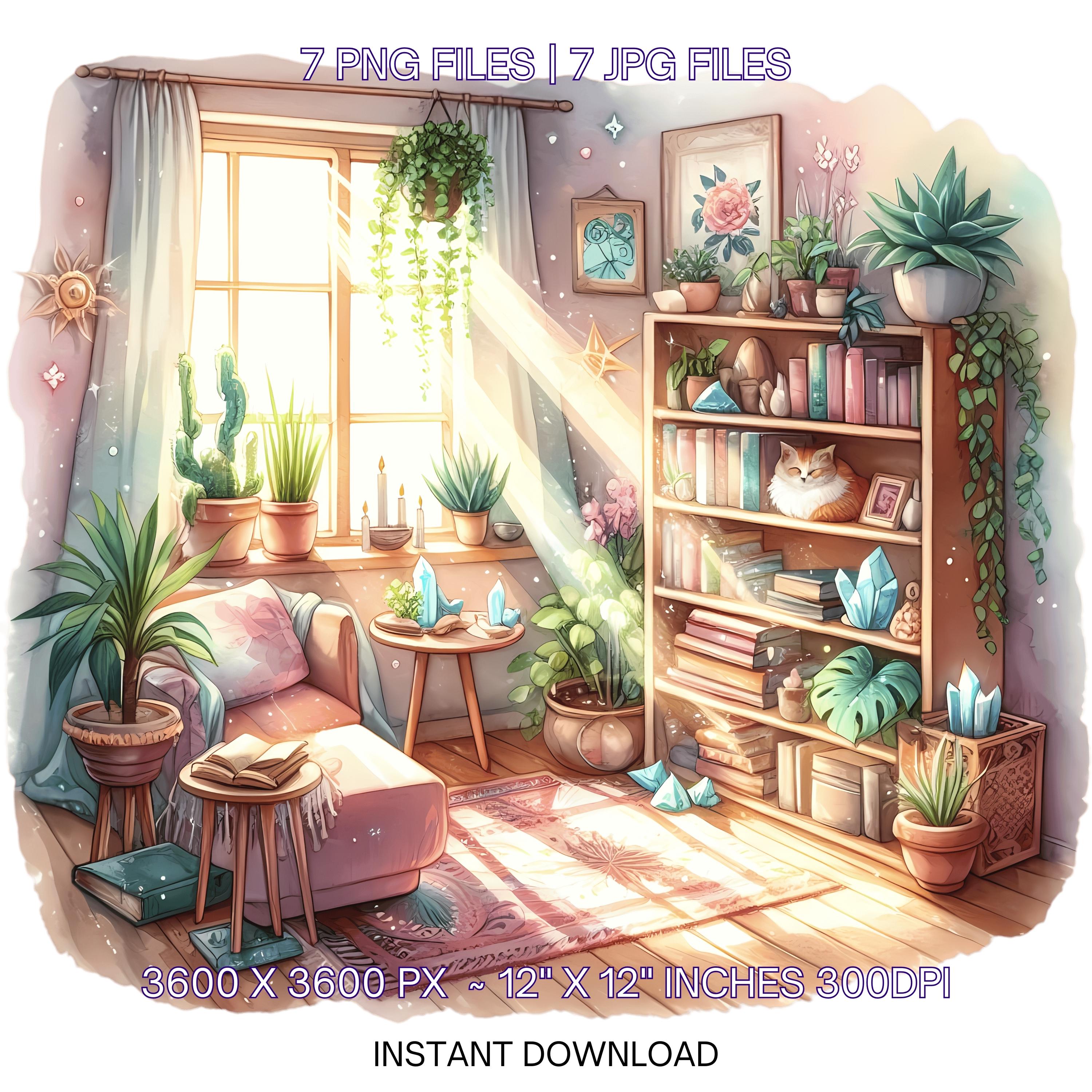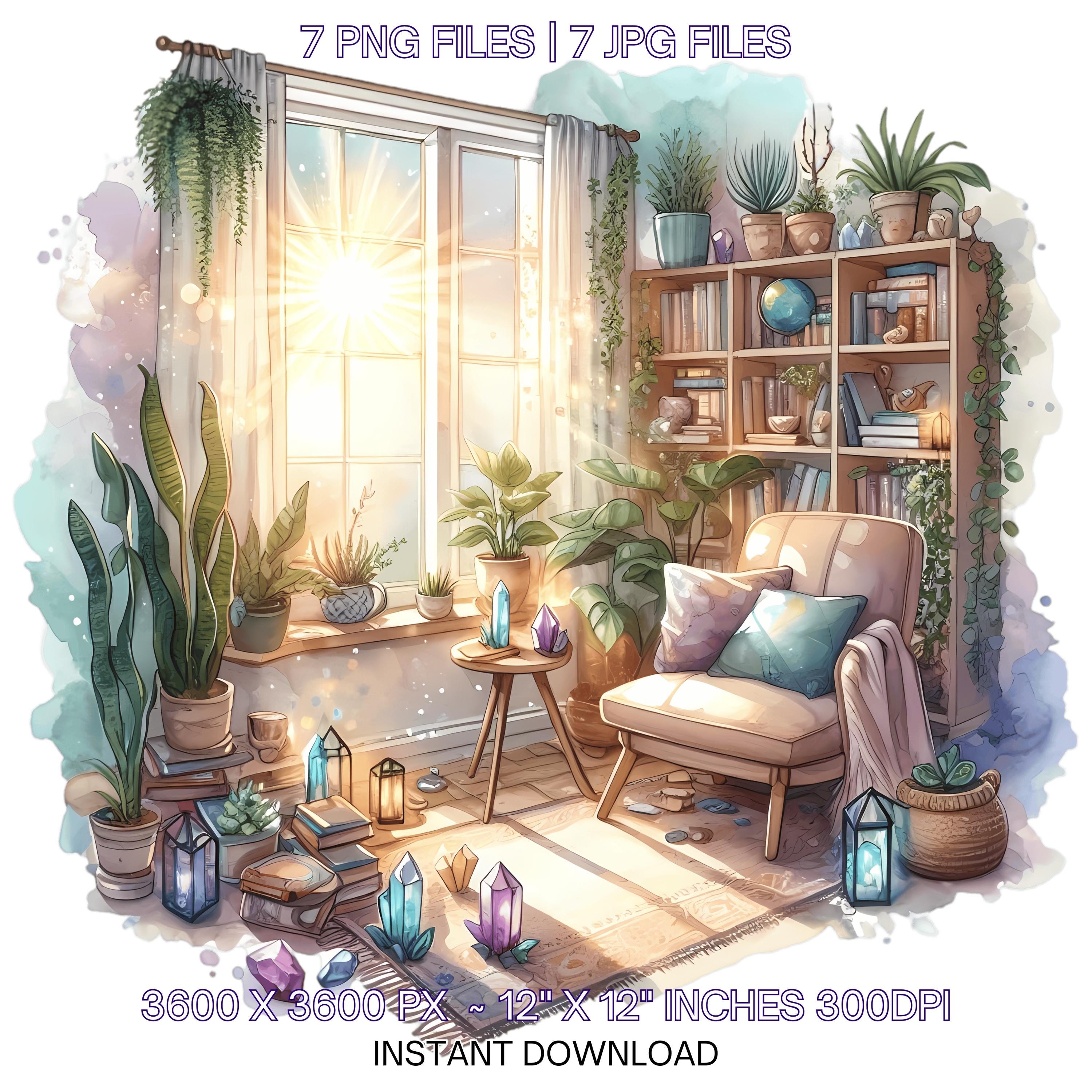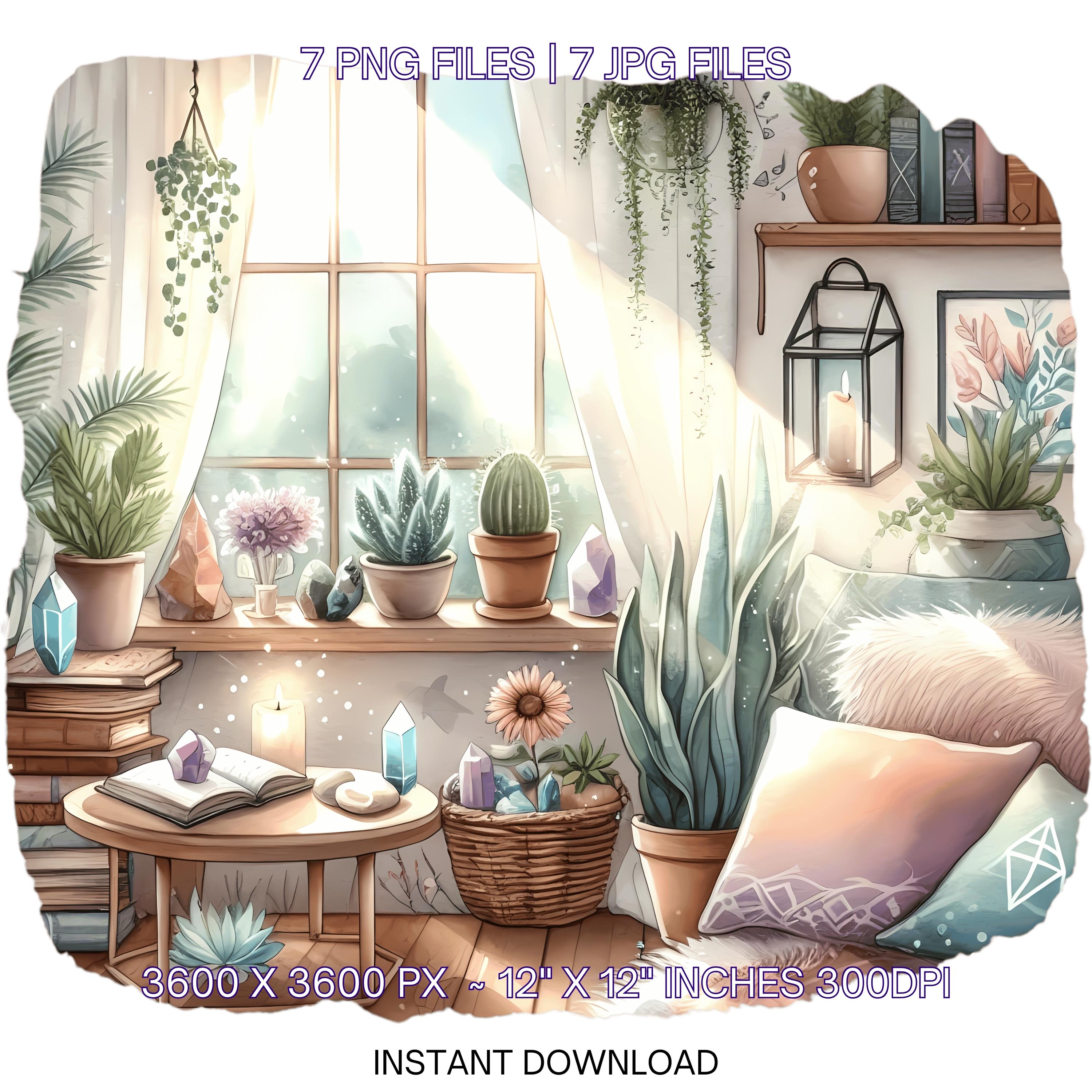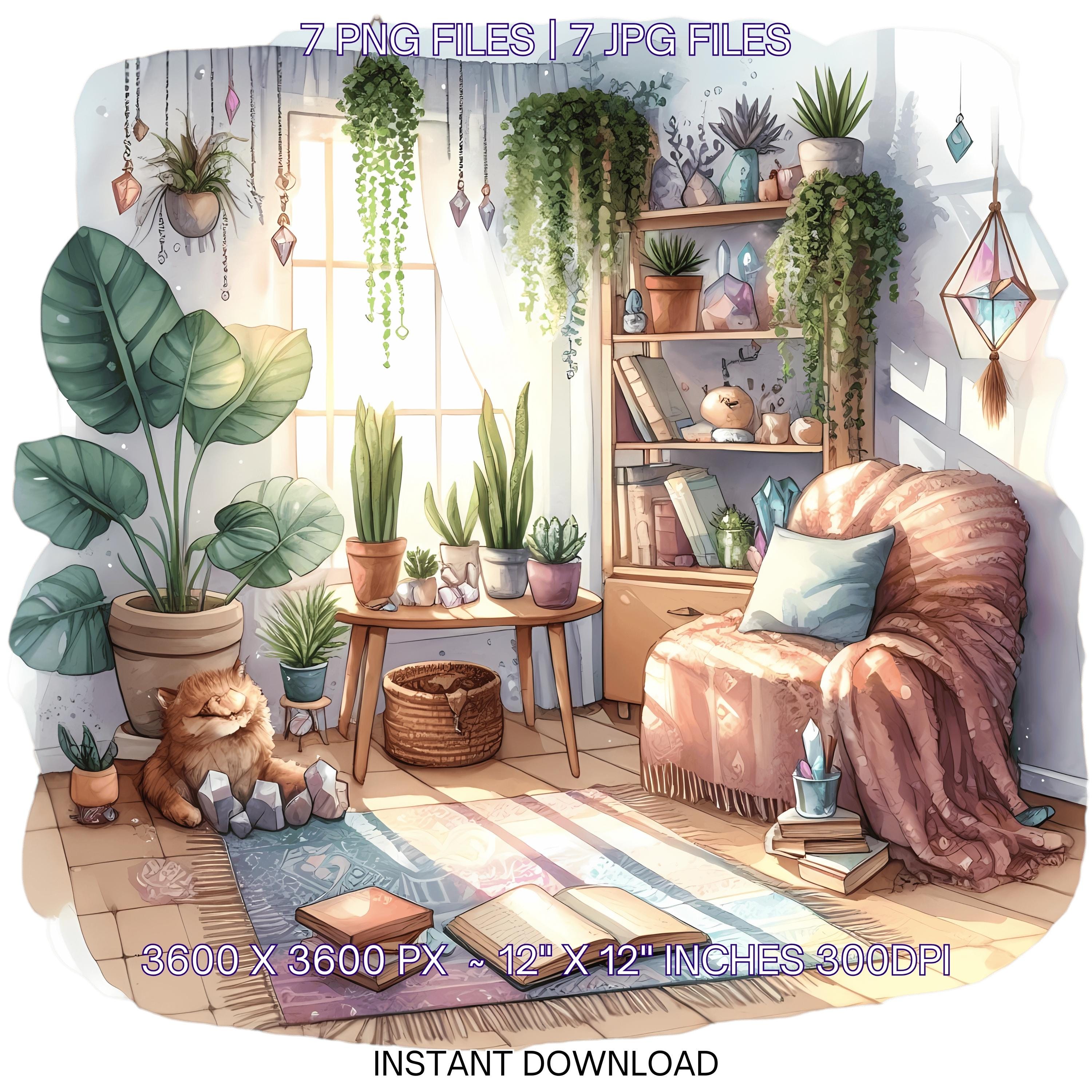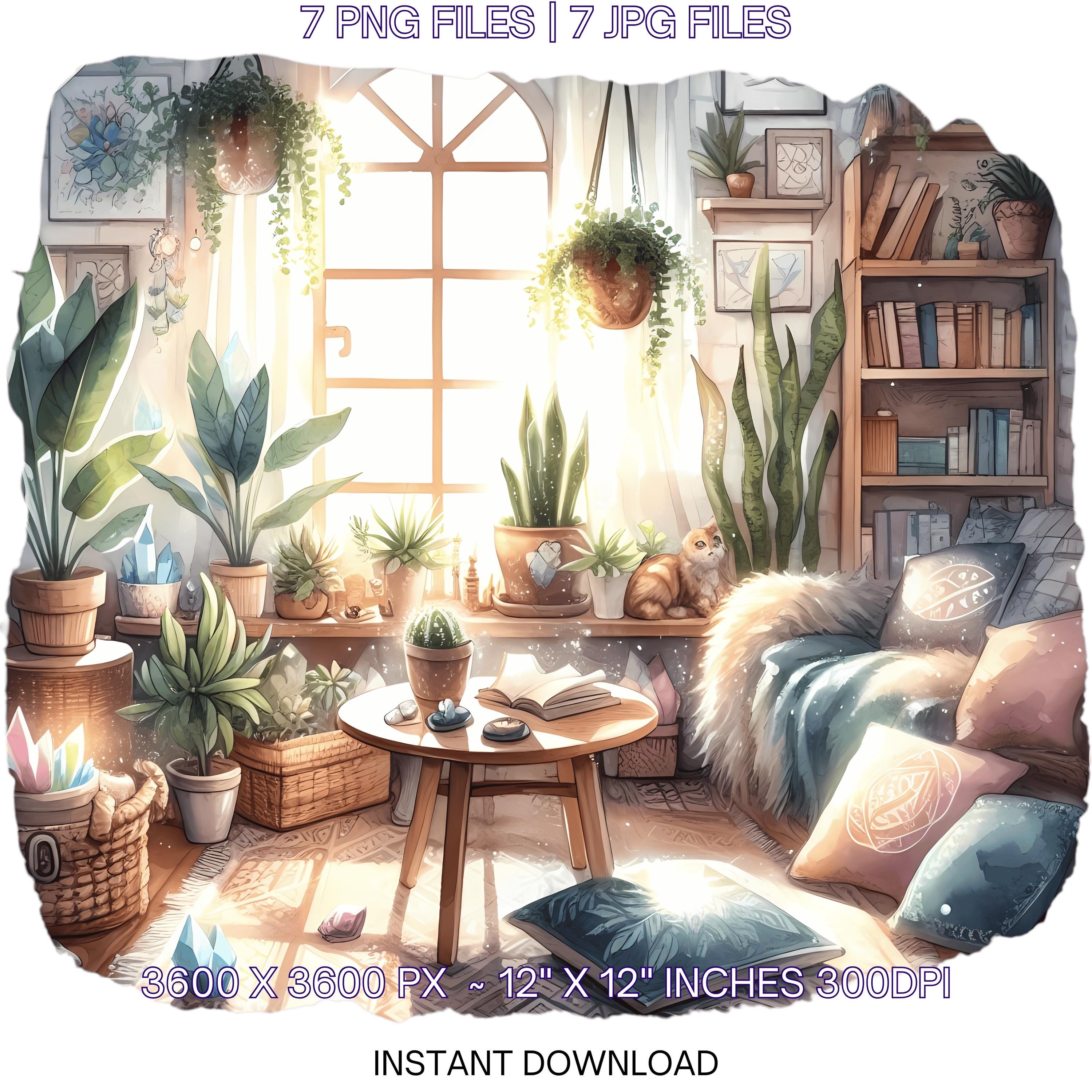 Cozy Room with Plants PNG Clipart | Watercolor Cozy Room with Plants | Watercolor Illustration | 7 JPG – 7 PNG Sublimation Commercial Use is an eye-catching, high-resolution digital asset designed for creators, crafters, teachers, and small business owners looking to elevate their visuals.