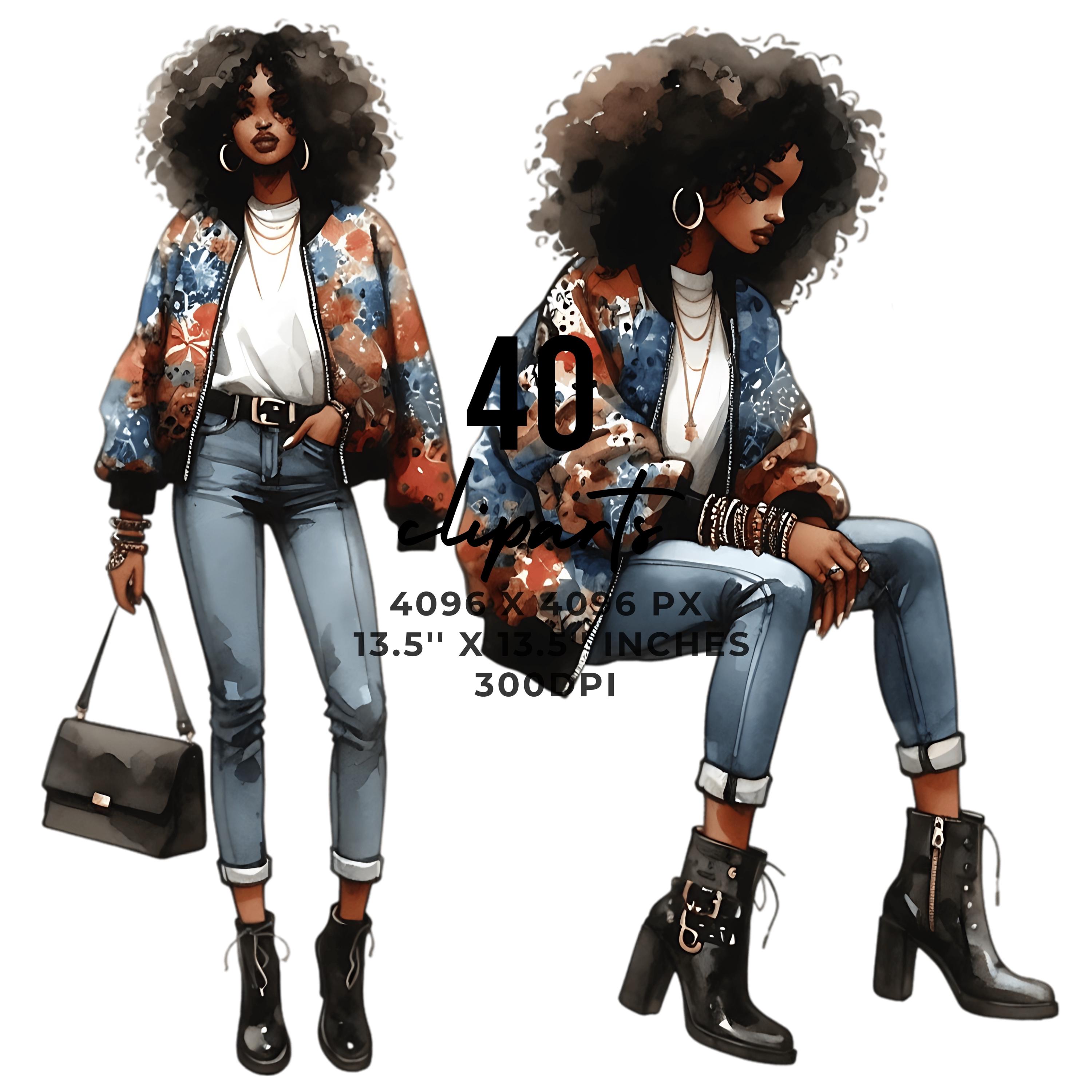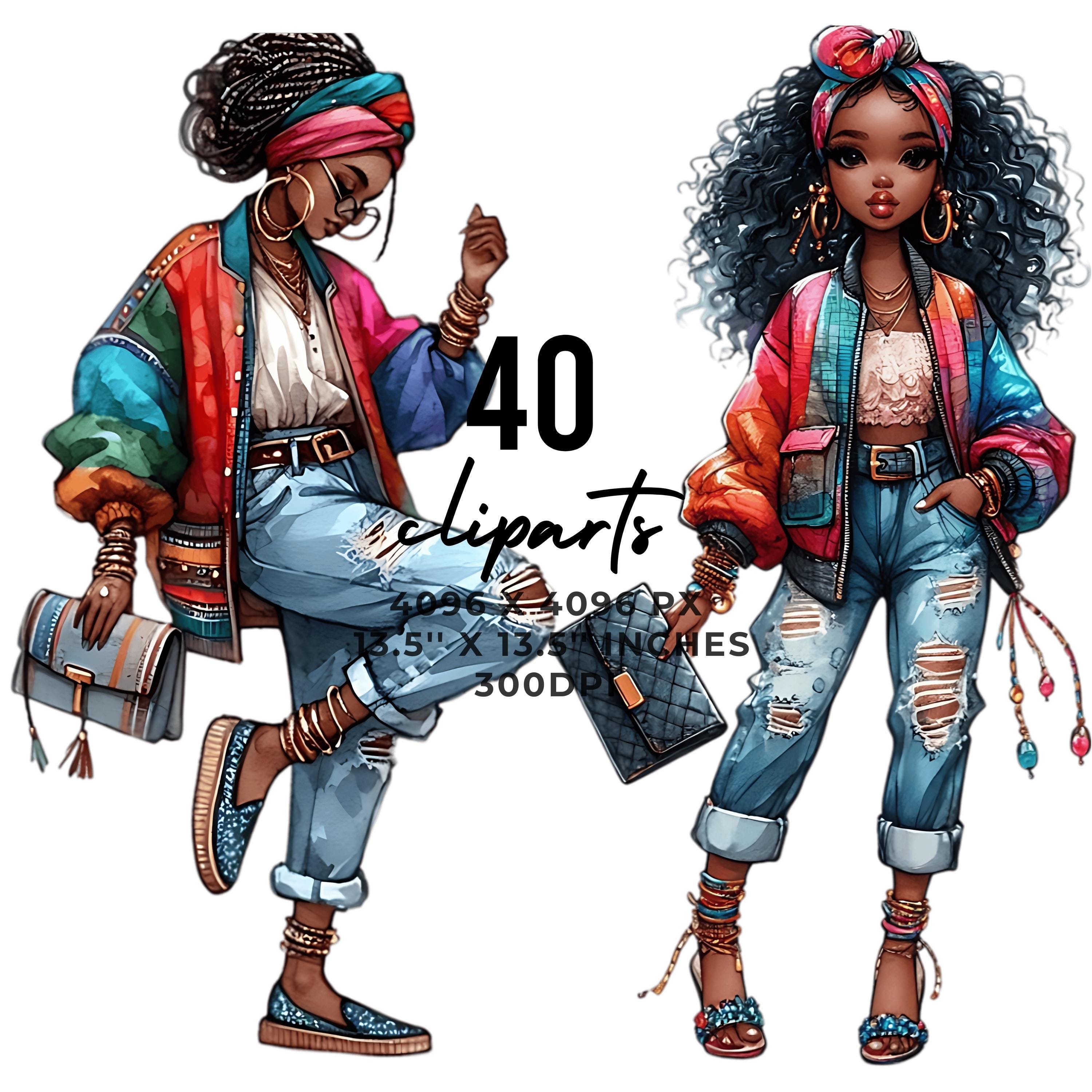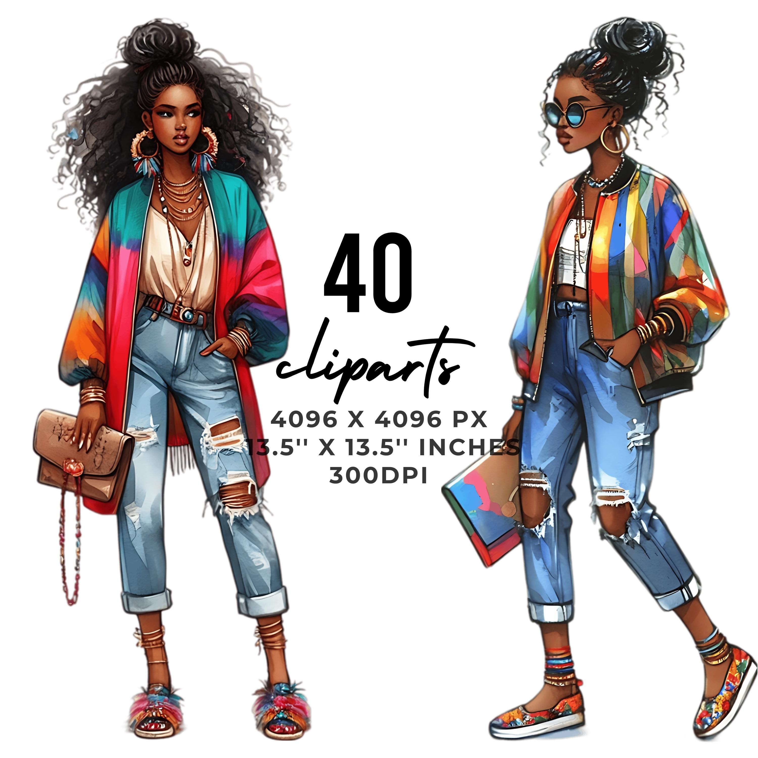 Crafting Black Girl Clipart 40 PNG 40 JPG | Afro Planner Girl Clipart | Crafty Black Girl Graphic for Scrapbooking & Commercial Use is an eye-catching, high-resolution digital asset designed for creators, crafters, teachers, and small business owners looking to elevate their visuals.