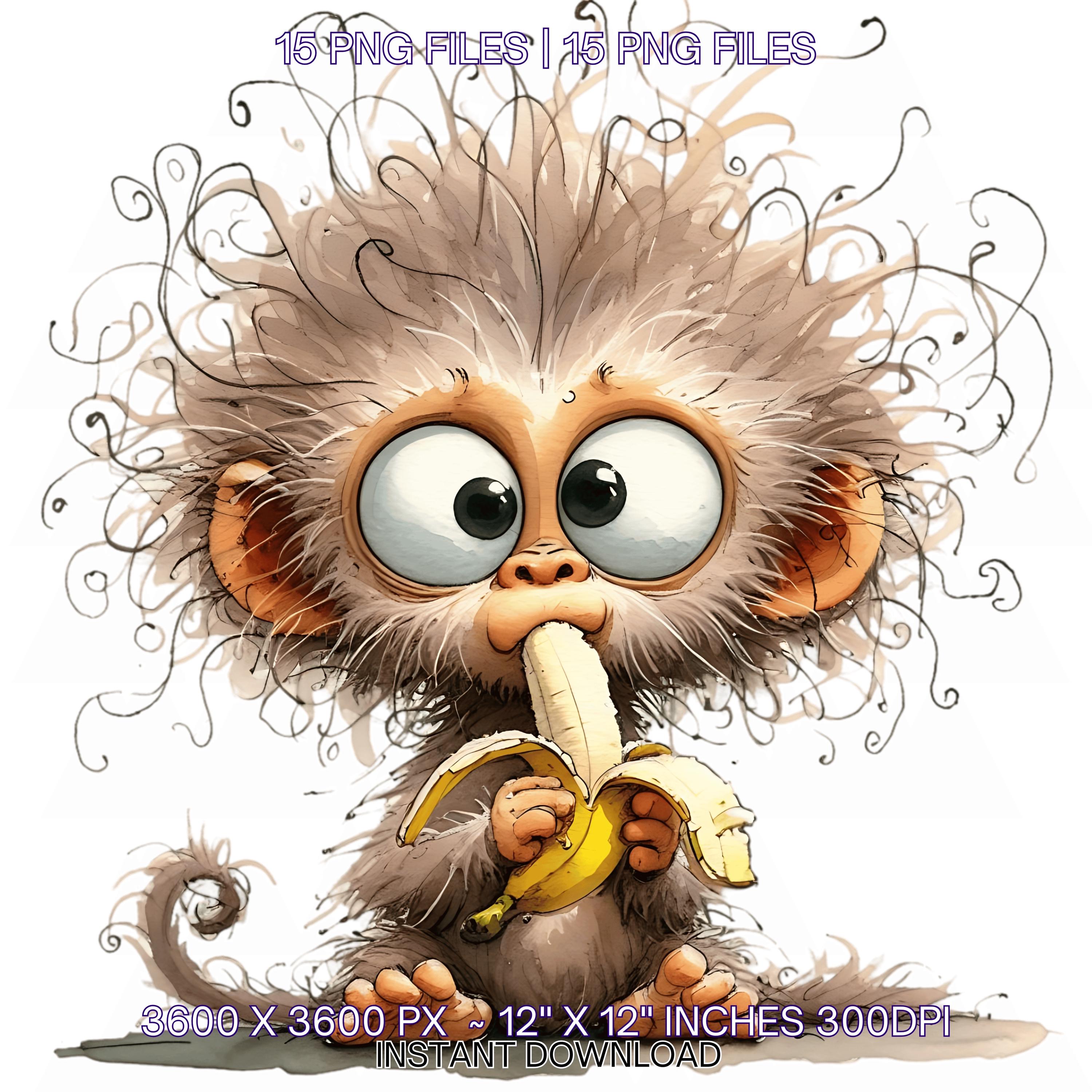 Crazy Monkey Clip Art Bundle | Quirky Frazzled Monkey in Tree | Whimsical Animal Clipart for Scrapbooking | 15 PNG + 15 JPG Commercial Use is an eye-catching, high-resolution digital asset designed for creators, crafters, teachers, and small business owners looking to elevate their visuals.