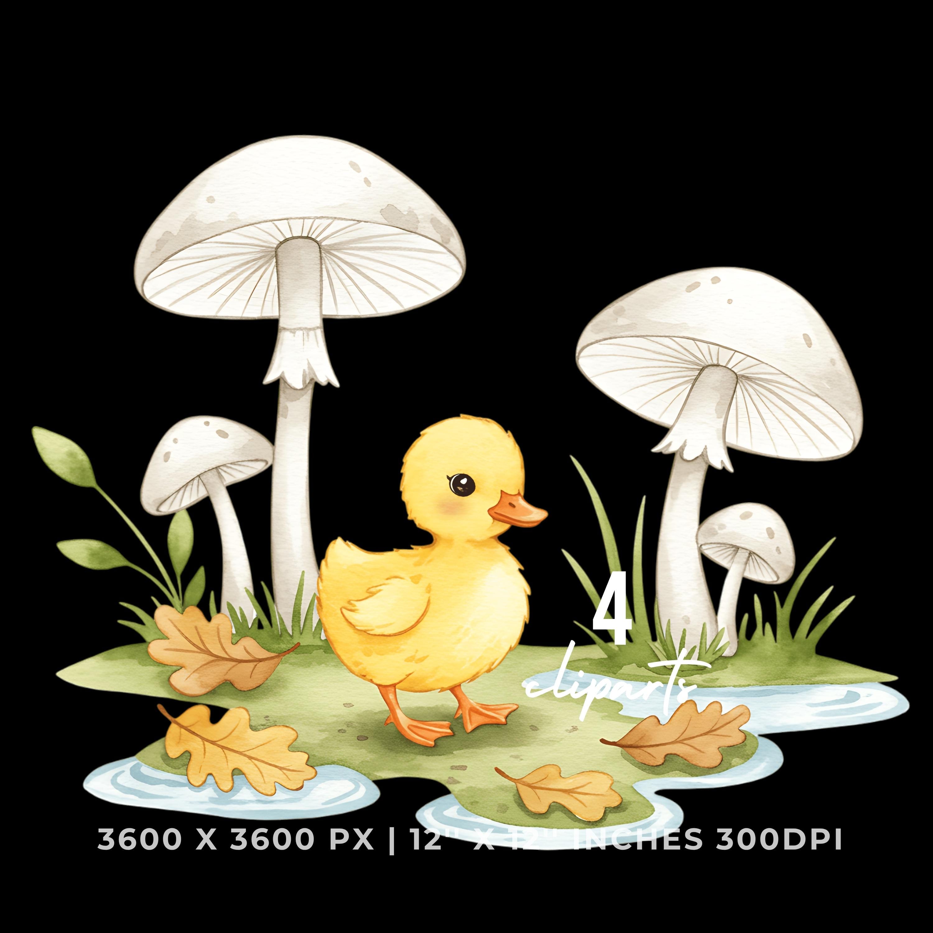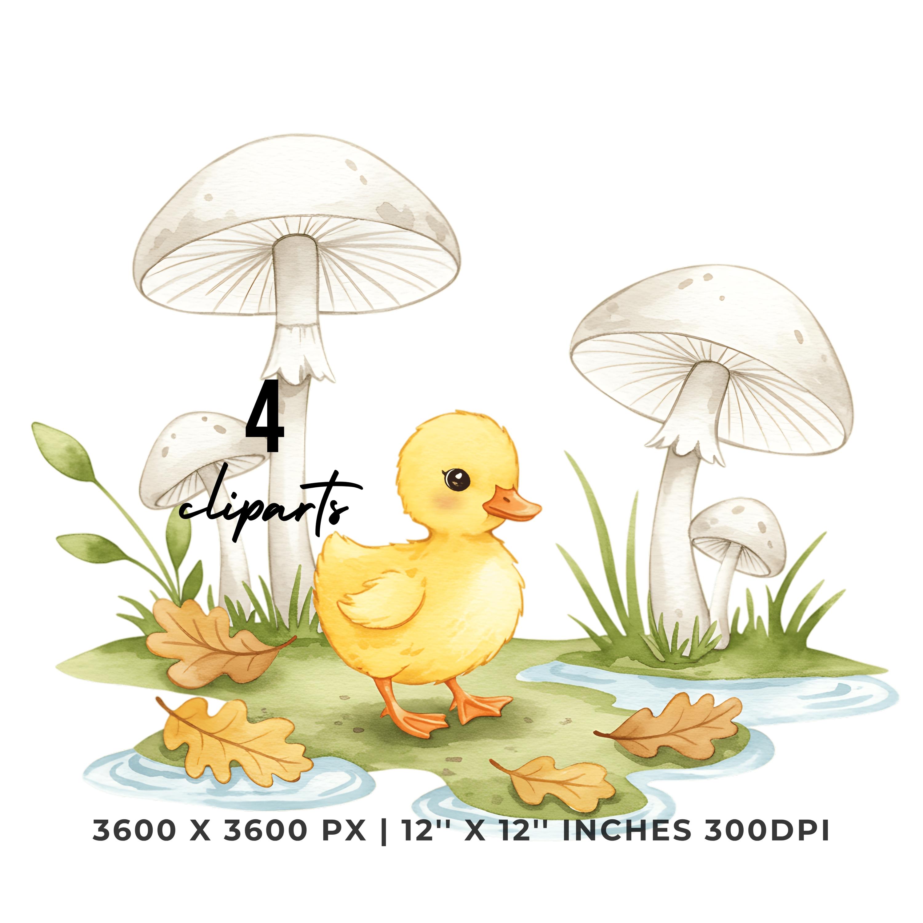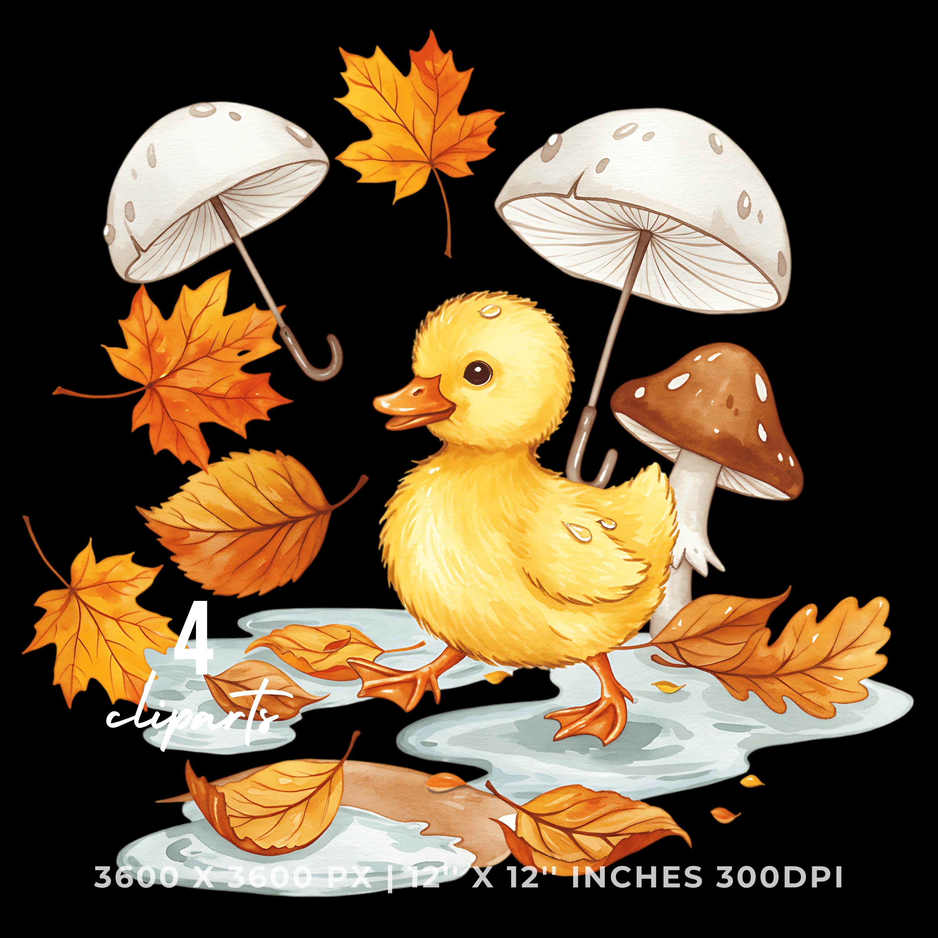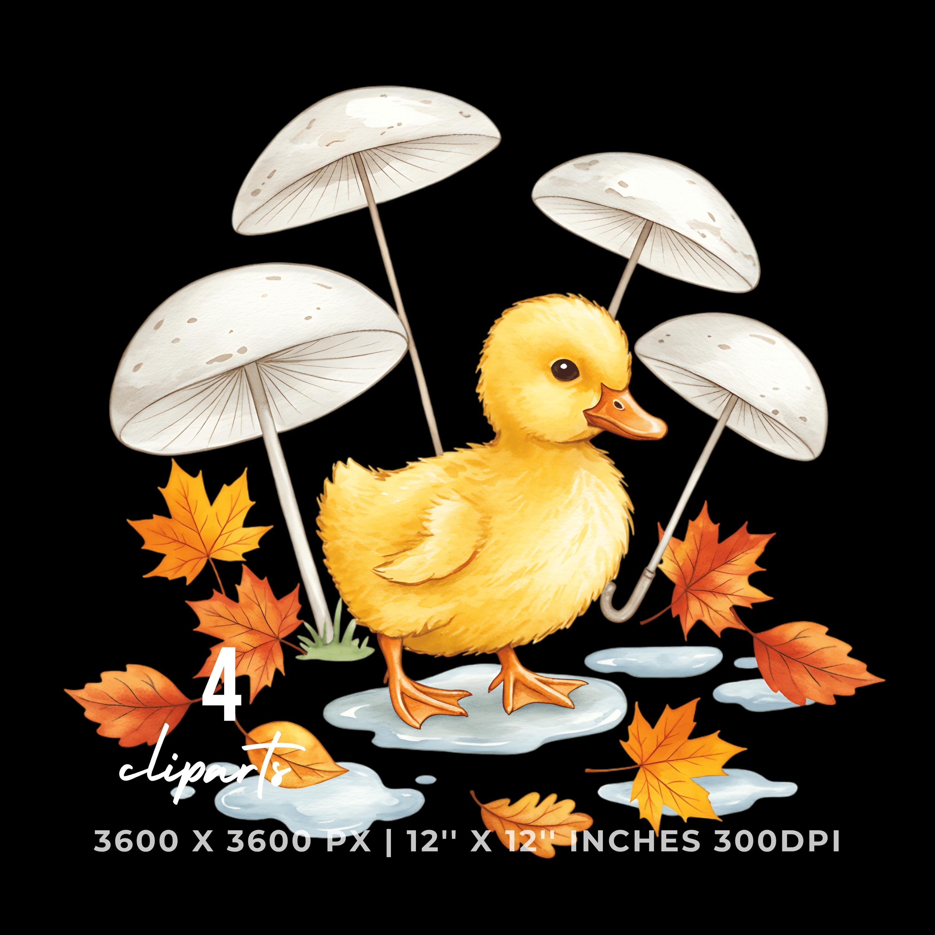 Cute Duckling with White Mushroom Umbrella Clipart | Fall Autumn Rainy Day Art | 4 PNG JPG | 12″x12″ | 300 DPI for Sublimation, Stickers & Crafts | Commercial Use