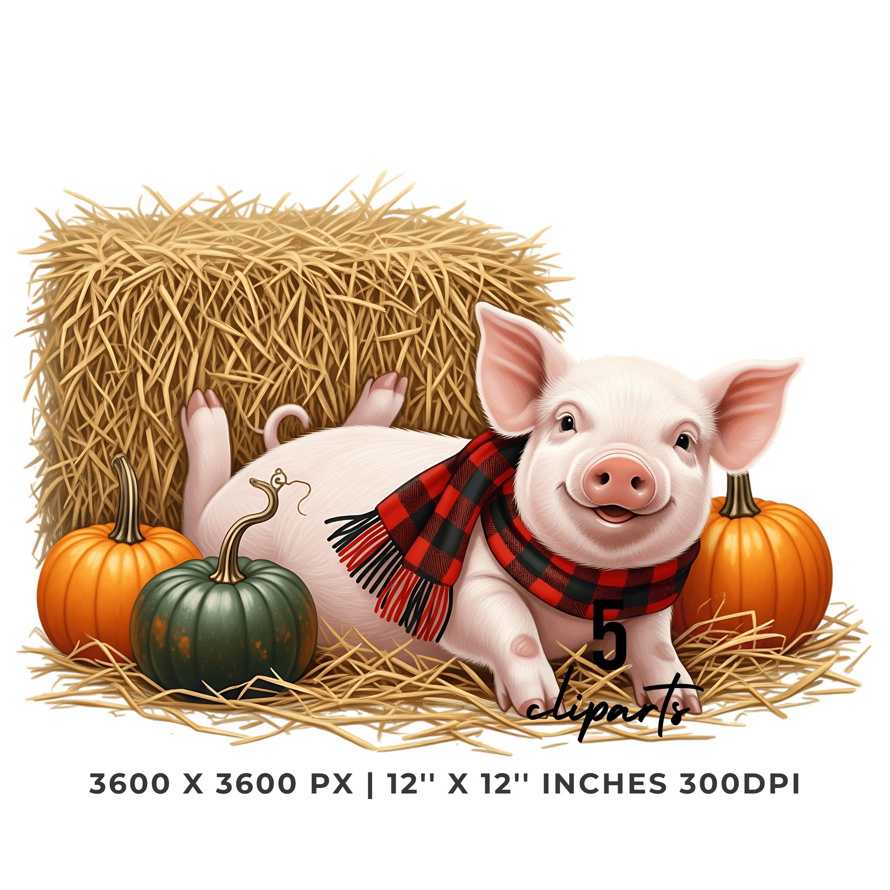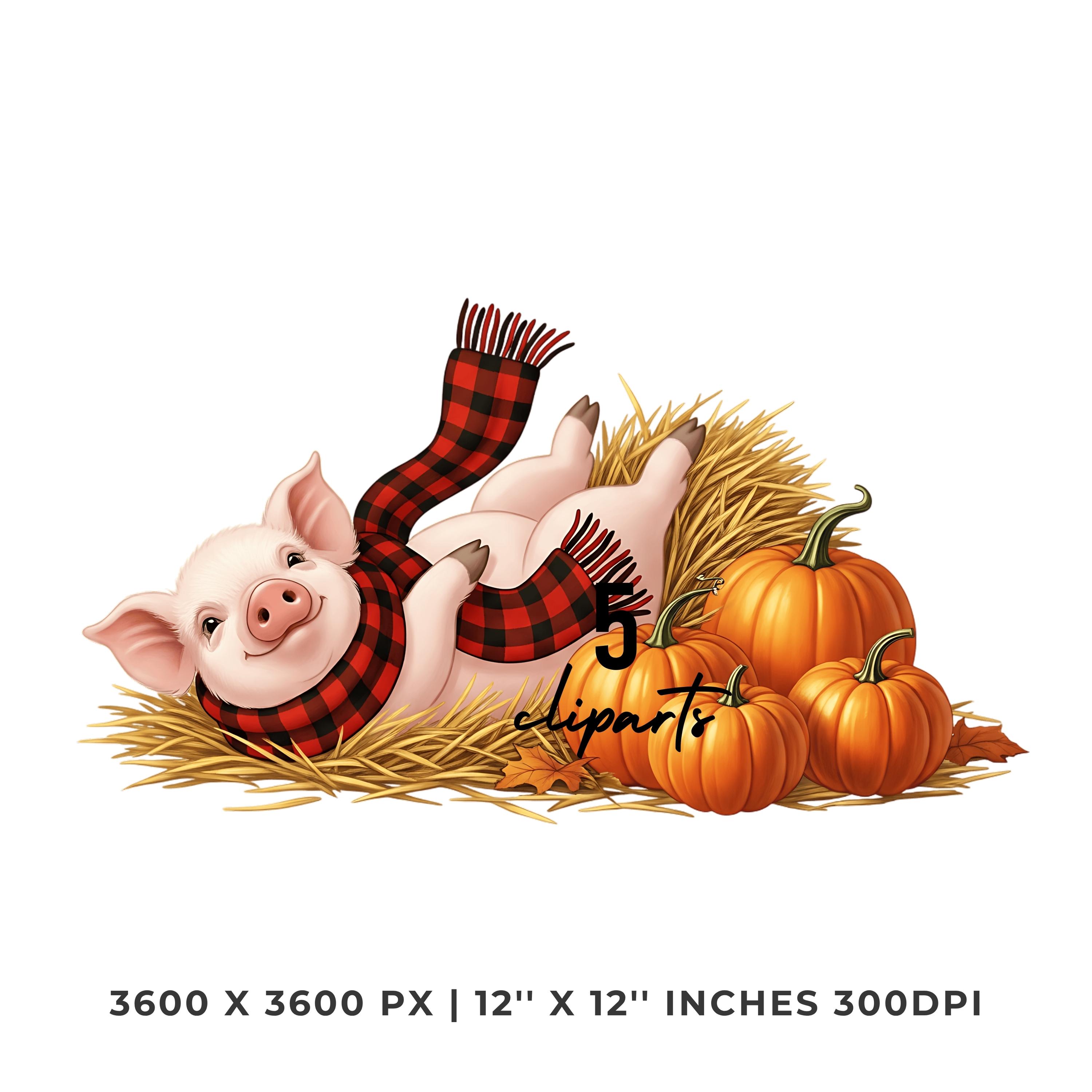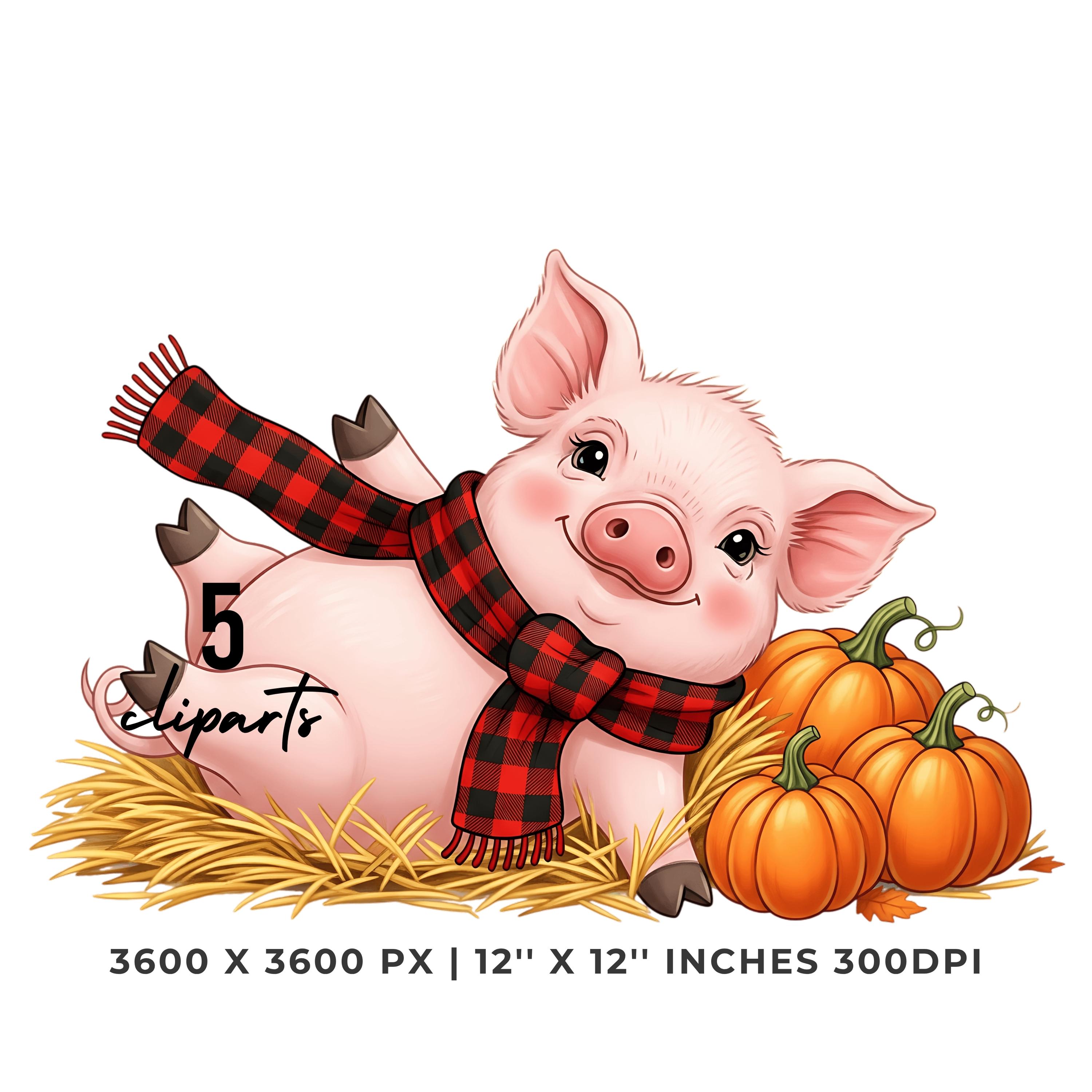 Cute Piglet in Plaid Scarf with Pumpkins Clipart | Fall Pig PNG Bundle | Autumn Farm Animal | 5 PNG 5 JPG | Sublimation Commercial Use is an eye-catching, high-resolution digital asset designed for creators, crafters, teachers, and small business owners looking to elevate their visuals.