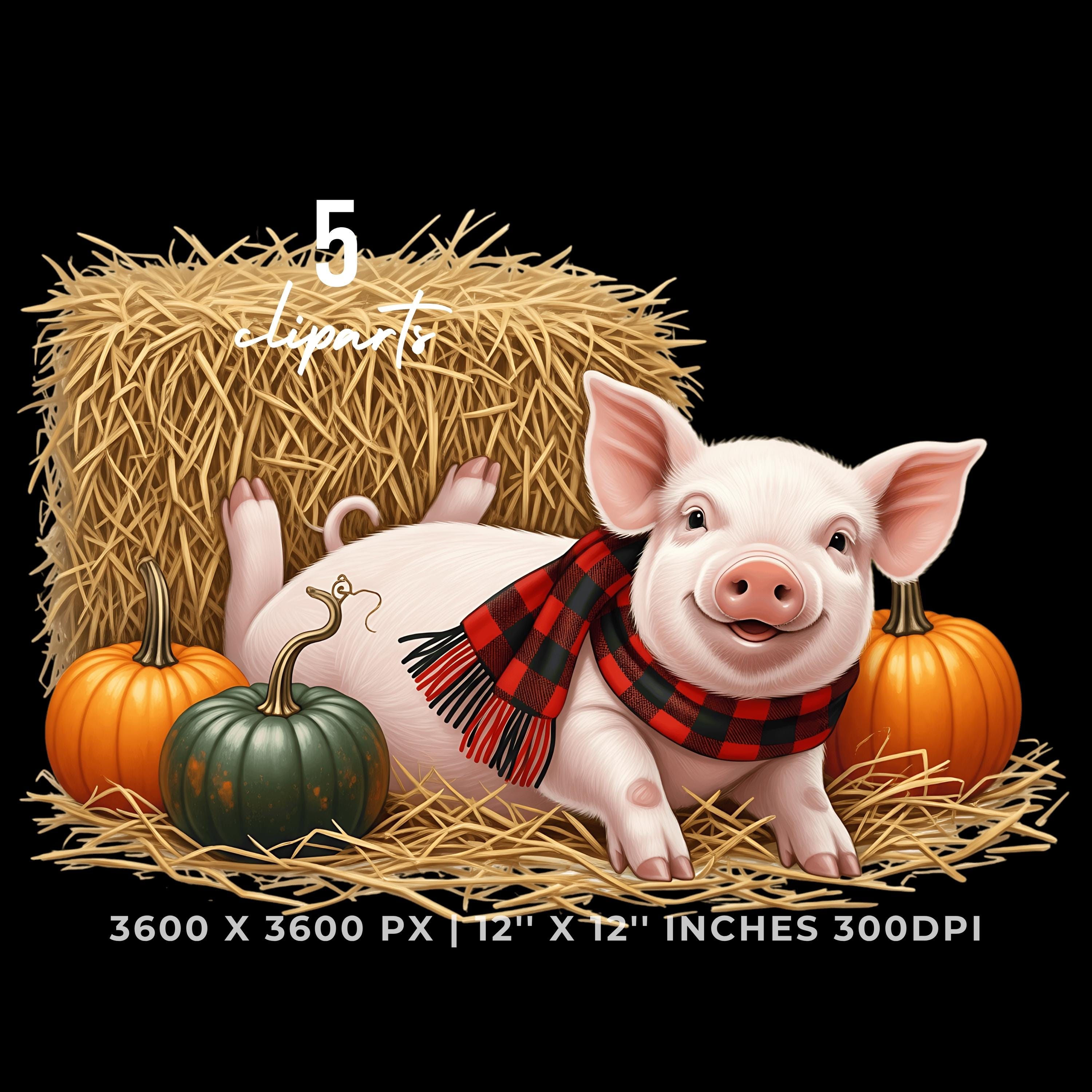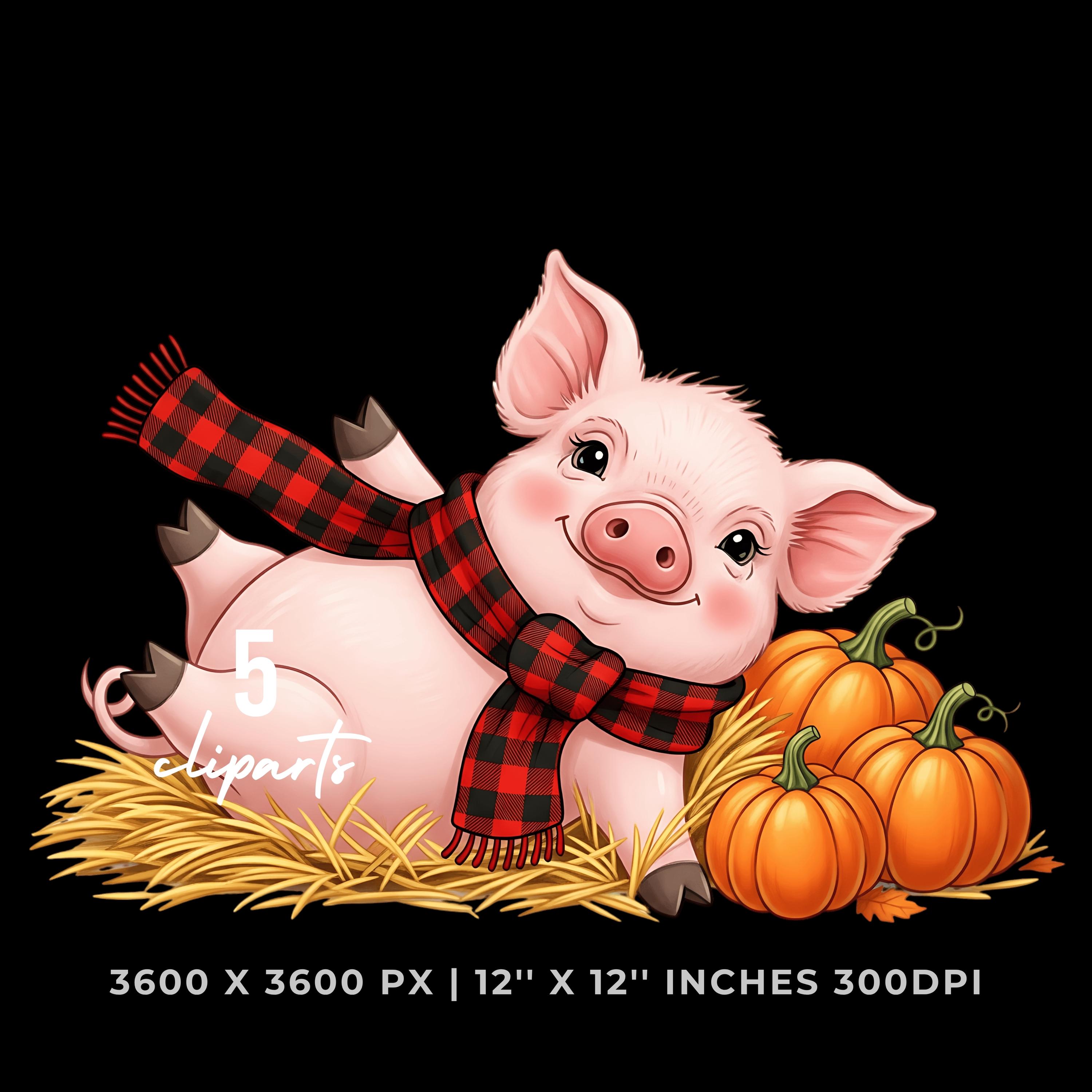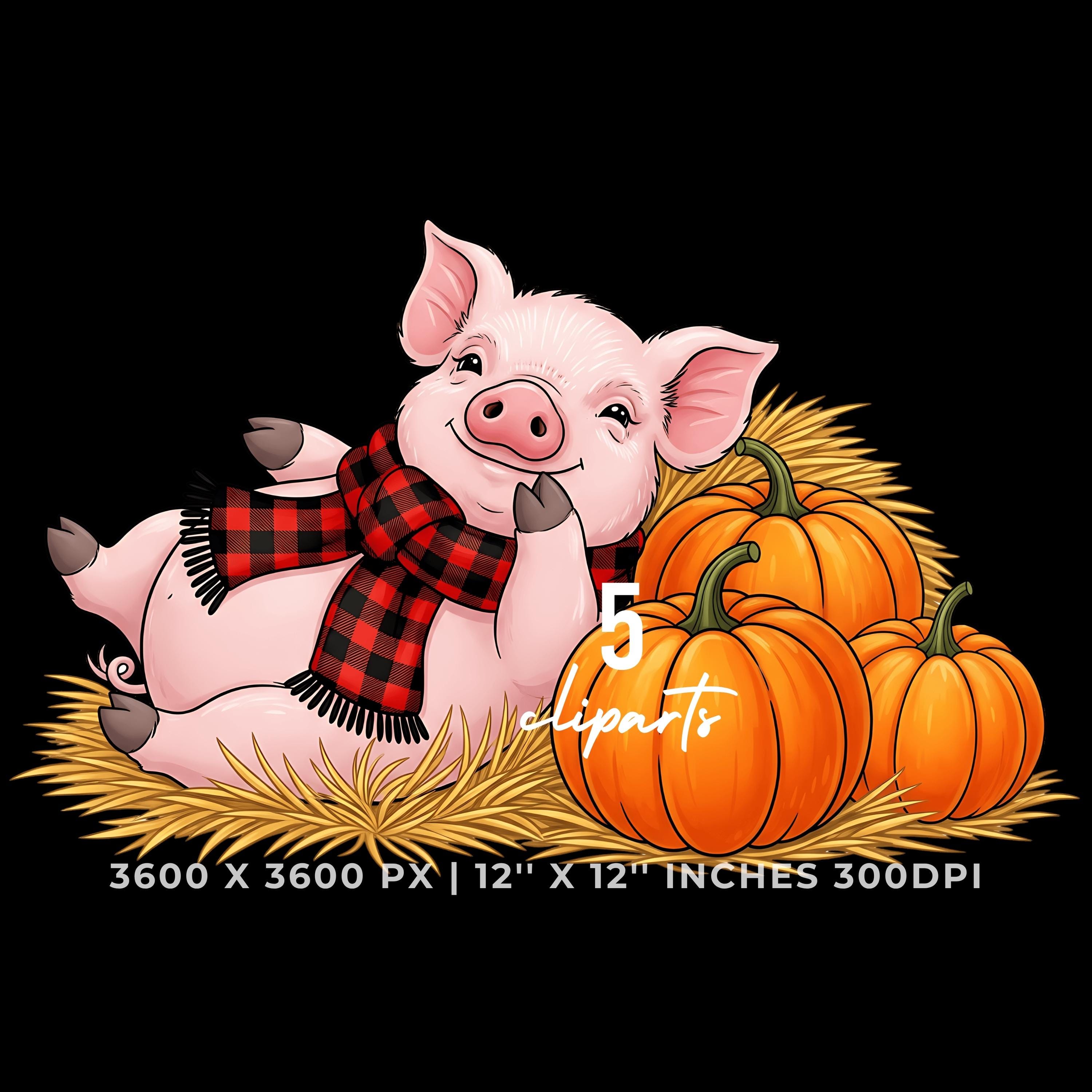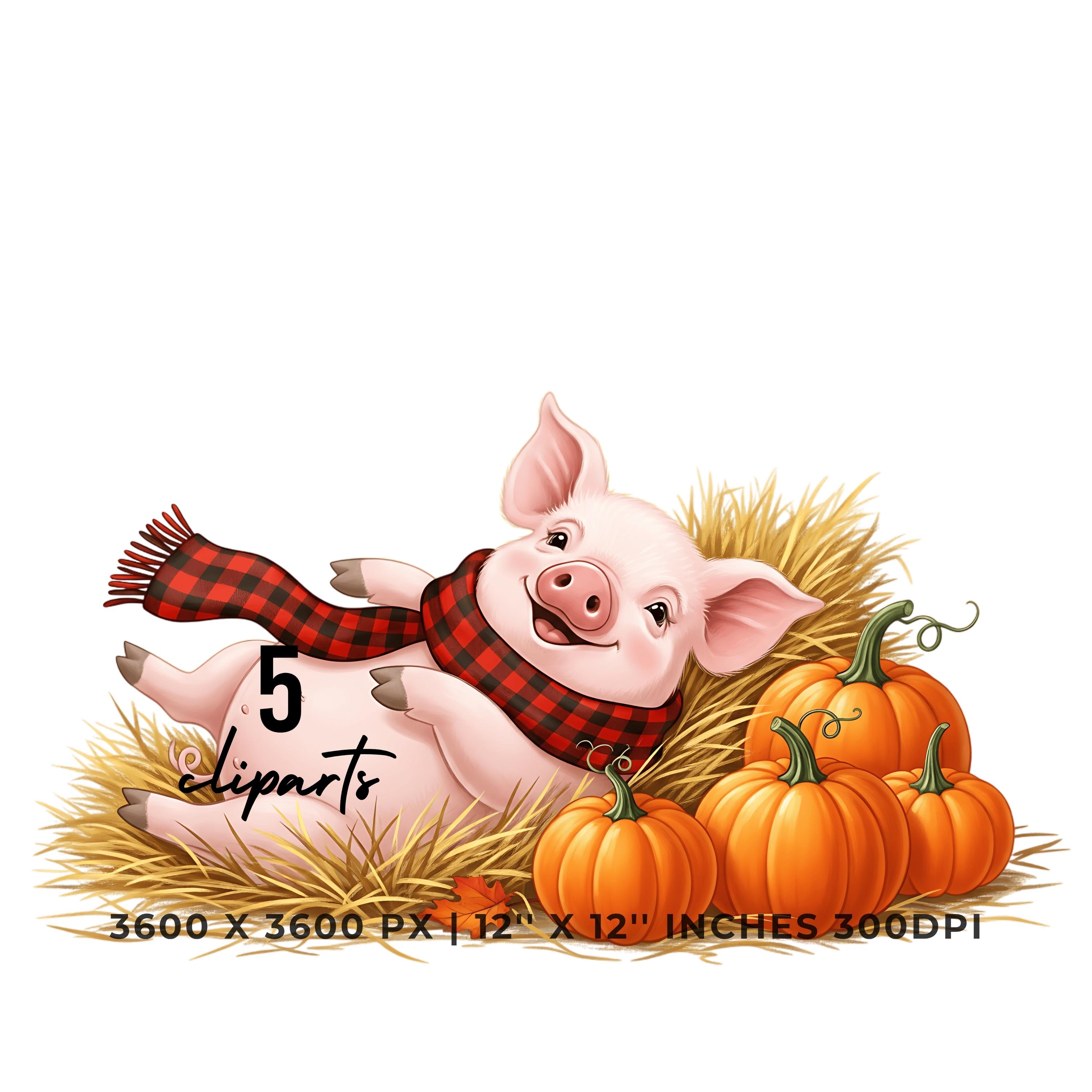 Cute Piglet in Plaid Scarf with Pumpkins Clipart | Fall Pig PNG Bundle | Autumn Farm Animal | 5 PNG 5 JPG | Sublimation Commercial Use is an eye-catching, high-resolution digital asset designed for creators, crafters, teachers, and small business owners looking to elevate their visuals.